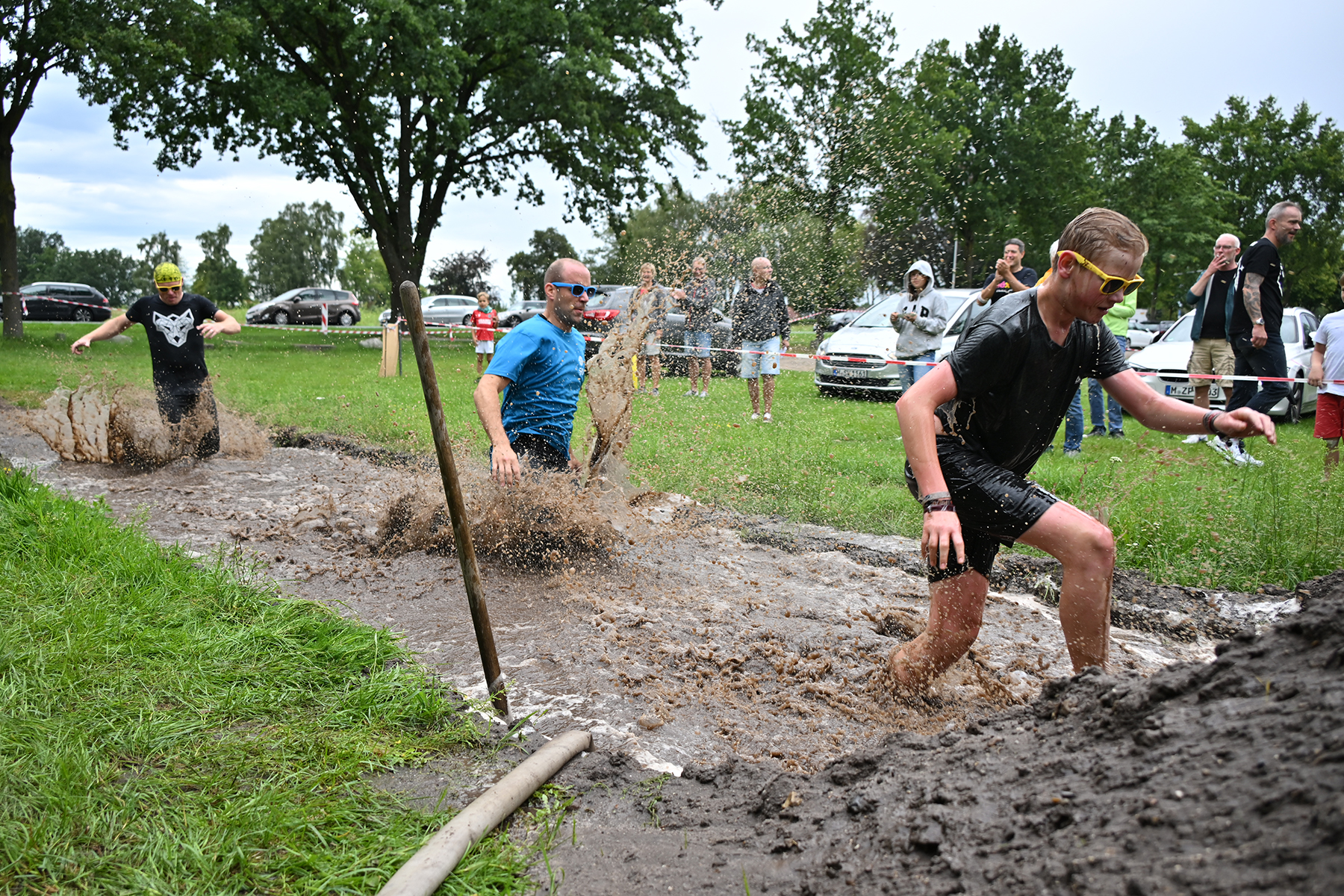Zwei Tage durfte rund um und auf dem Sportgelände des Heesseler SV wieder durch Schlamm und Wasser gelaufen werden: 16 verschiedene Aufgaben waren auf der 2,5-Kilometer langen Rundstrecke zu bewältigen. In diesem Jahr waren zudem, mehr Wasserstellen udn auch mehr Schlamm als üblich in den Parcours eingebaut worden. Streckenkoordinatorin Birgit Wilz hatte den Rundlauf ausgearbeitet und auch viele Tipps von den Mitgliedern des HSV bekommen. "Die Platzwarte waren besonders kreativ, wo es wirklich eklig wird", ließ sie wissen.
