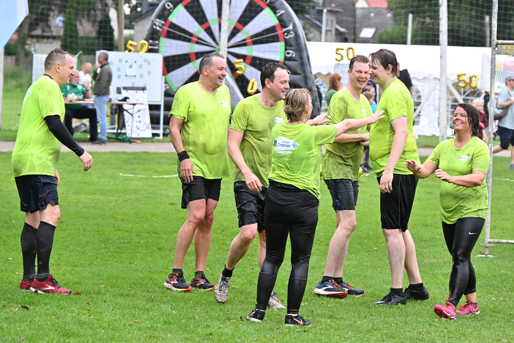 Die Teilnehmer kamen so voll auf ihre Kosten. Rund 50 spontane Teilnehmer ließen das Feld auf mehr als 300 Läufer anschwellen, die von Moderatorin Tanja Kicza auf die Strecke geschickt wurden. "Niemand hat gesagt, dass das hier Spaß macht", war so schon mal vor der Kriechstrecke zu hören. Und auch E-Center-Geschäftsführer Sebastian Cramer musste nach den beiden Wasserlöchern aus seinem Team hören: "Ich hasse meinen Job". Am Ende aber kamen alle mit einem Lächeln im Ziel an. Nicht die Zeit war entscheidend, sondern das Miteinander.