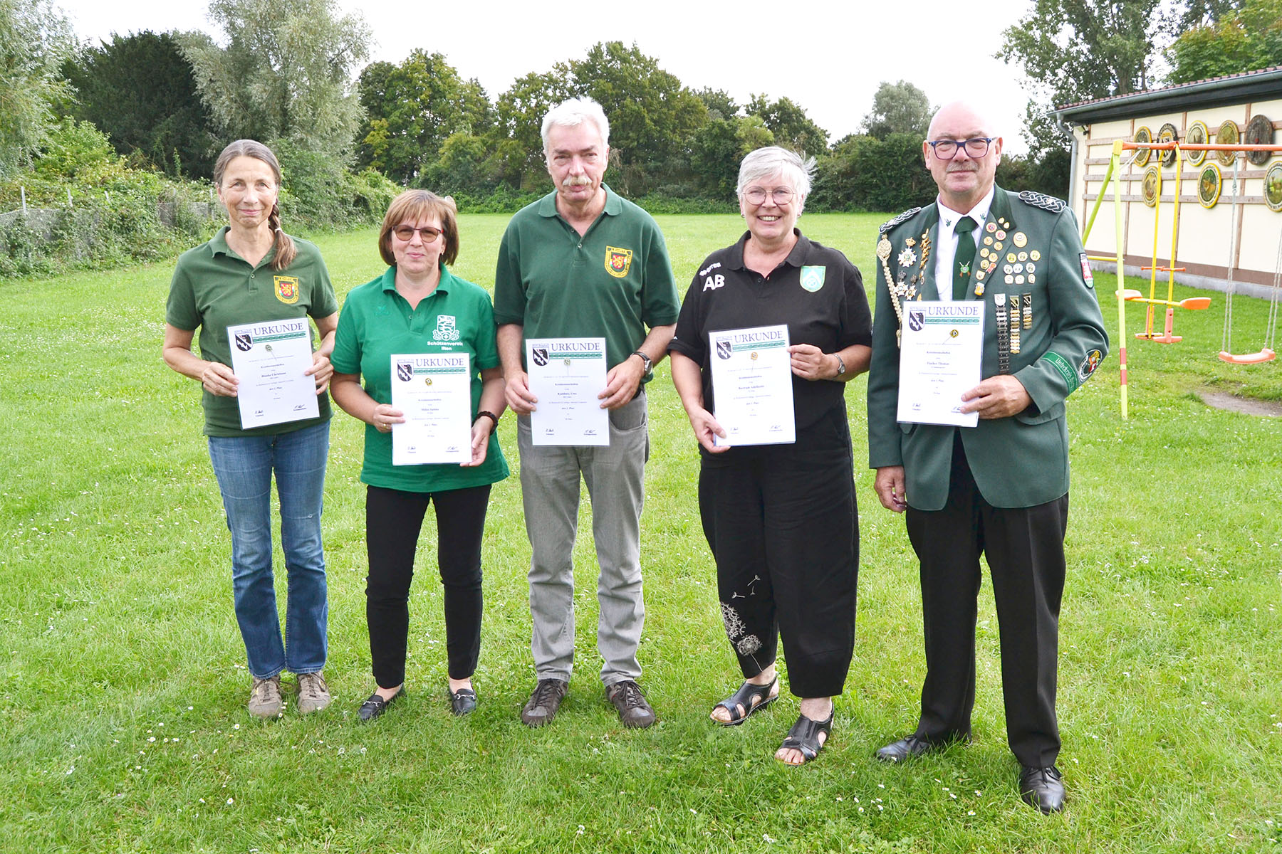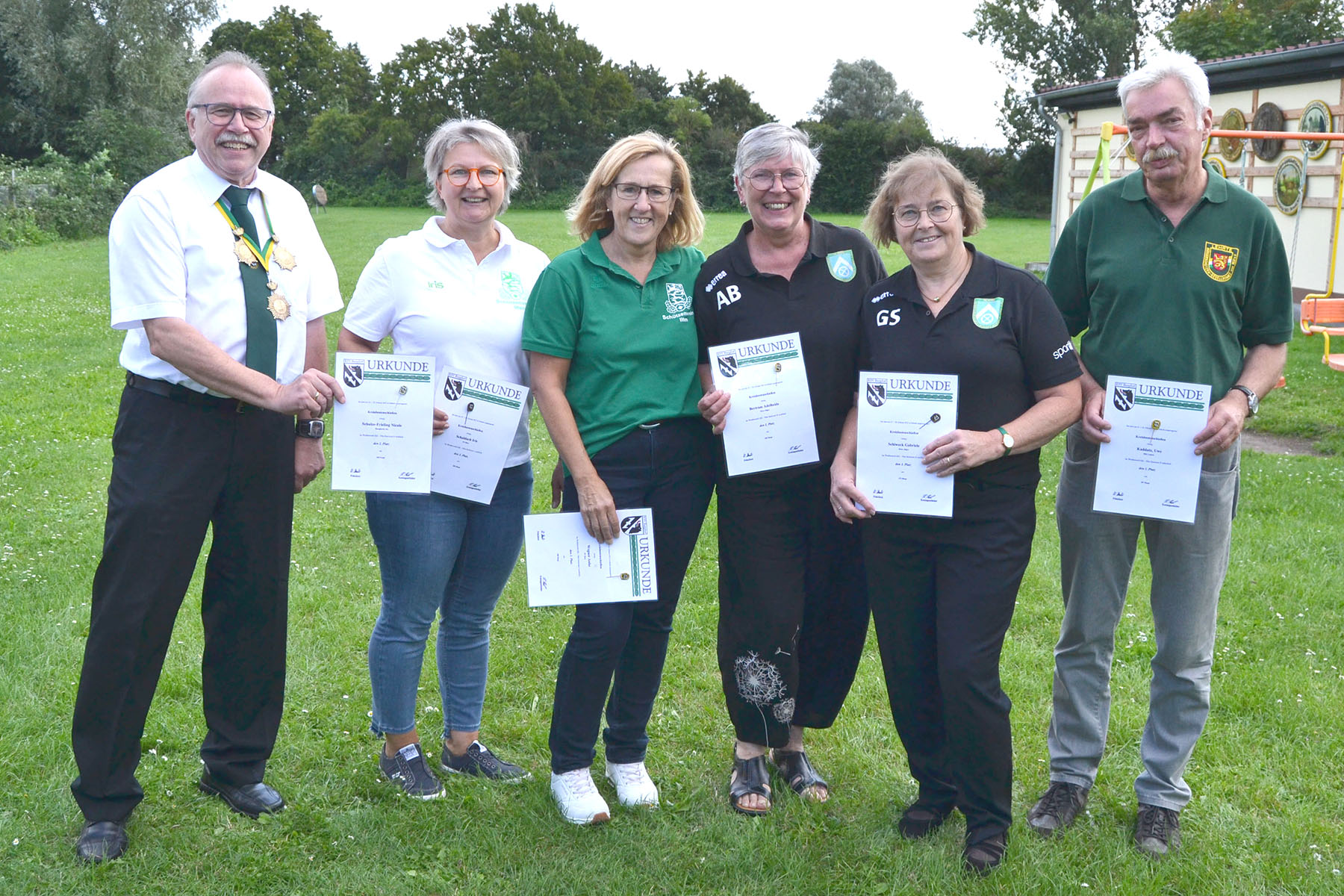 Viele hervorragende Ergebnisse in verschieden Altersklassen konnten mit Urkunden und Nadeln an die erfolgreichen Sportler überreicht werden. Mit einem dreifachen "Gut Schuss" wurden die Sieger und Platzierten geehrt.