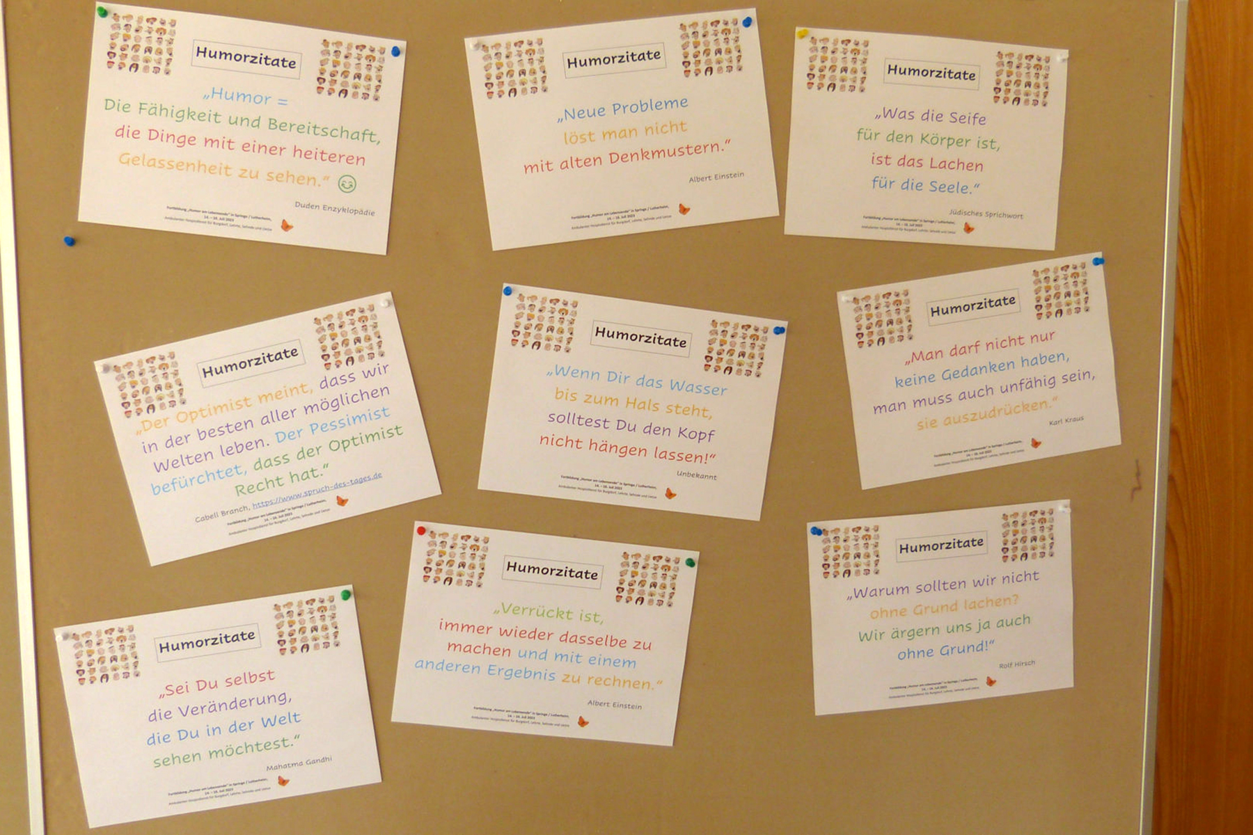 Humor ist nicht nur ein hilfreiches Instrument, das einen souveränen Umgang mit schwierigen Situationen wie diesen ermöglicht, sondern kann zur Grundhaltung einer humorvollen Lebenseinstellung werden. Mit diesem Thema haben sich die Mitarbeitenden des Hospizdienstes im Juli dieses Jahres im Tagungshaus Lutherheim in Springe ein Wochenende lang beschäftigt.