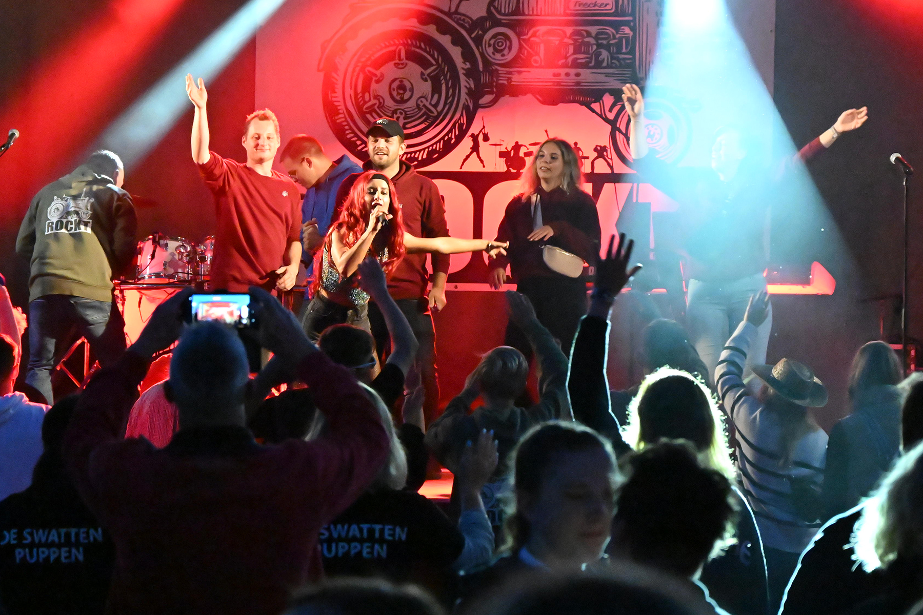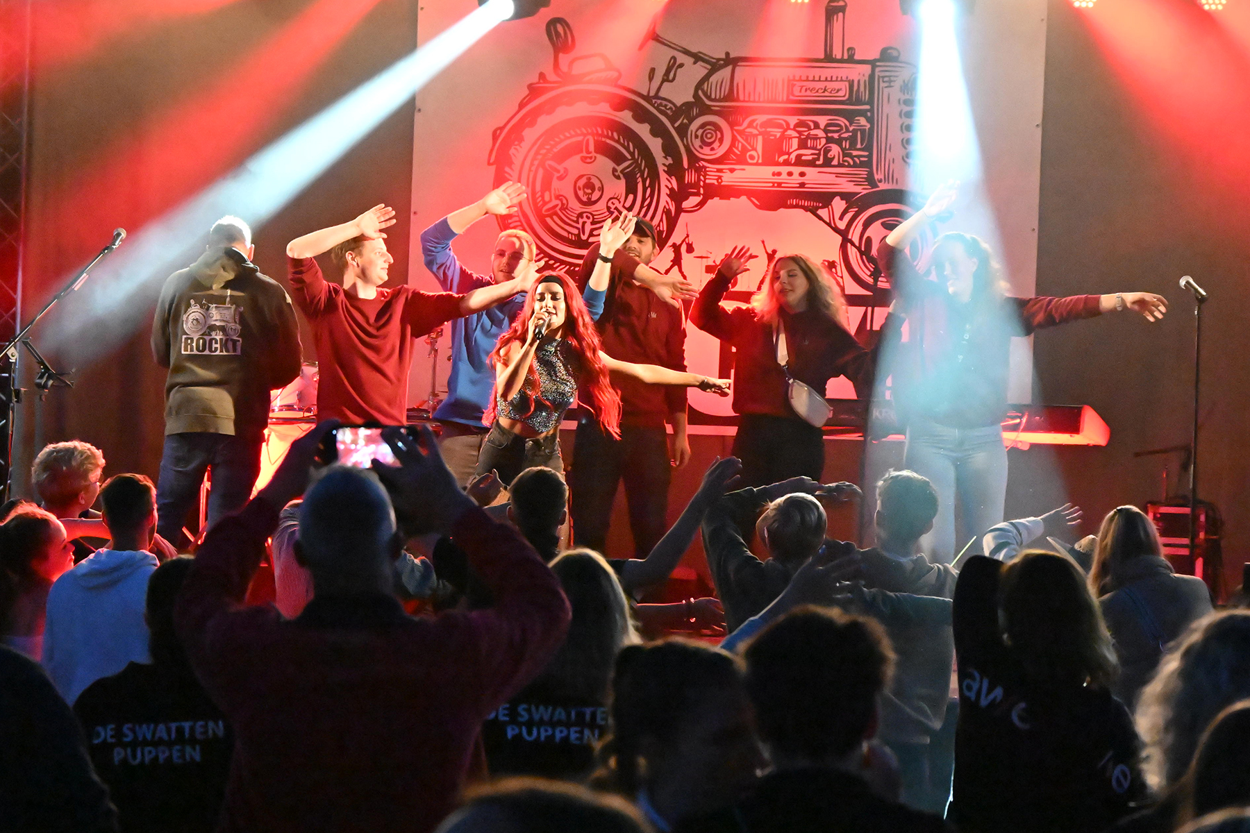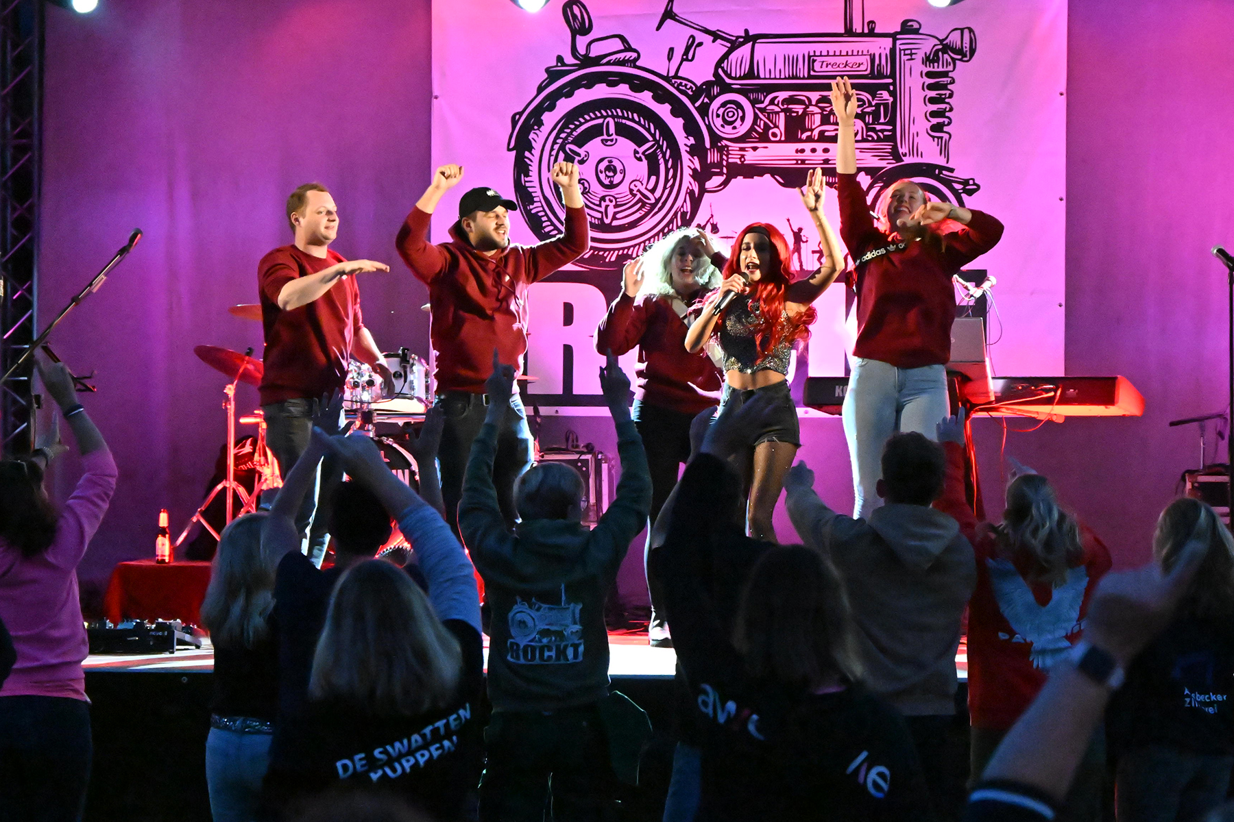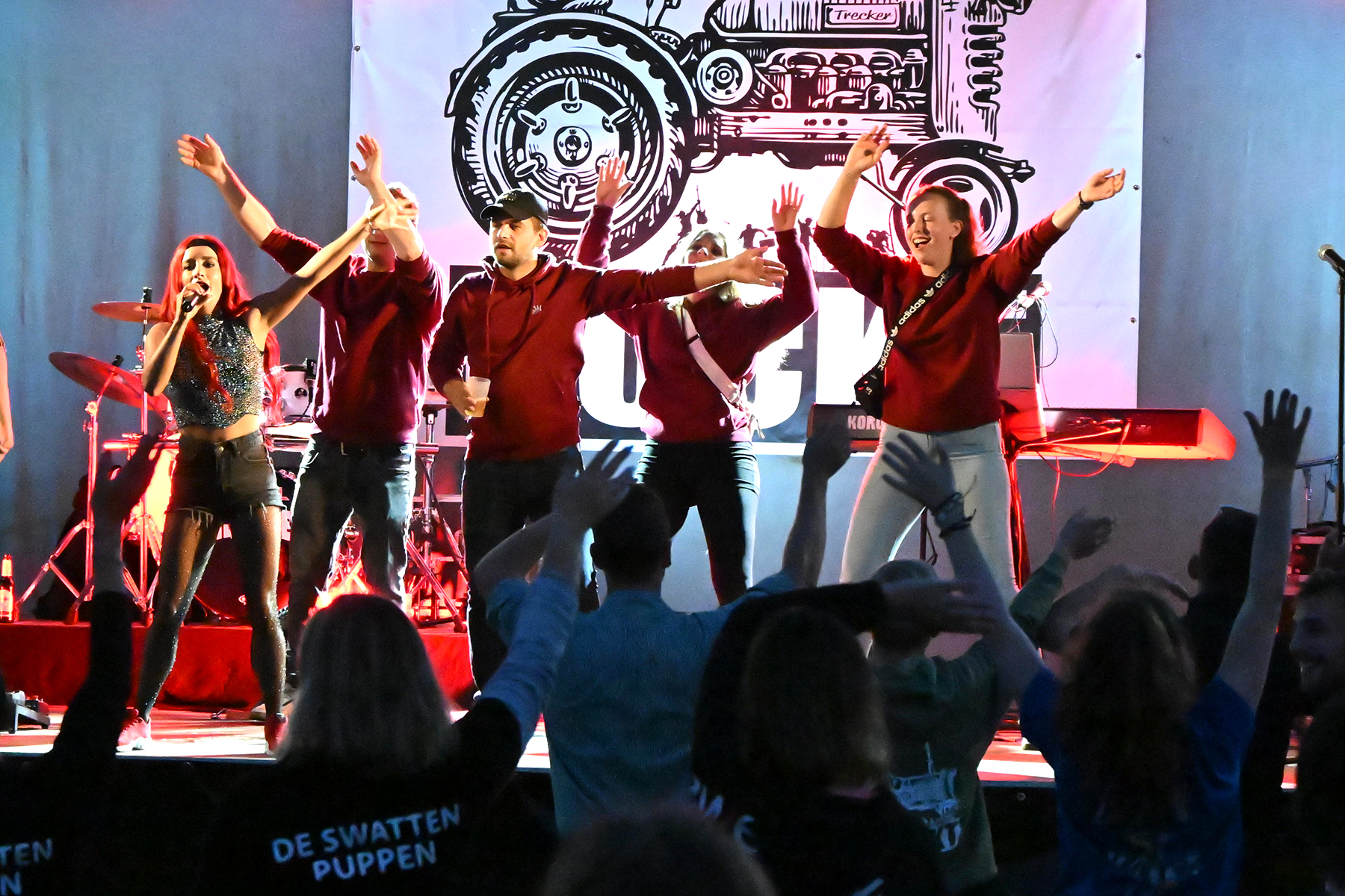 Fendt, Deutz andere Trecker-Marken und dazwischen eine Scania-Zugmaschine von Prinz-Stelzer Transporte aus Eicklingen mit extra Terrasse über dem Führerhaus. Party-Sängerin Marie Käfer, die die Gäste mit eingängiger Mallorca-Musik unterhielt, hatte die Gäste aus dem Landkreis Celle sodann gleich im Auge. Mit Johannes, Lukas, Richard und Madeleine holte sie sich vier Gasttänzer vom Scania auf die Bühne, die sichtlich Spaß an ihrer neuen Aufgabe hatten. "Ich find`s mega hier", ließ die rothaarige Marie Käfer die Zuhörer wissen. Wie schon andere Musiker vor ihr war der Anblick von der Bühne auf fast 240 Trecker für sie ein ungewohntes Bild. "Wenn ich nun noch Trecker fahren könnte, dann würde ich das niemals vergessen", erklärte sie mit einem Augenzwinkern. Ihrer Stimmung in nichts nach standen Sängerin Ina Colada sowie Partyband "Meilenstein", die die Solo-Auftritte umrahmte und so für ein mehrstündige Live-Event sorgte.