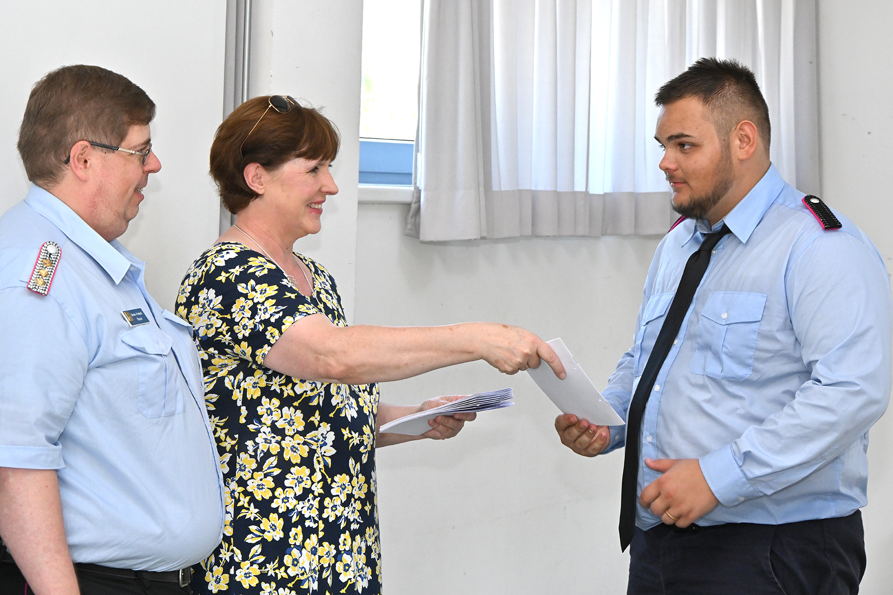 "Sehr zufrieden" mit den Ergebnissen zeigte sich Stadtbrandmeister Dennis-Frederik Heuer. Auch wenn der Lehrgang stark unter den klimatischen Bedingungen gelitten habe, so habe es ihm Spaß gemacht, den Teilnehmern zuzusehen. Alle Prüflinge haben durchweg gute Ergebnisse in den beiden Prüfungsteilen gemacht. Besonders geehrt wurden Lina Leder von der Ortsfeuerwehr Heeßel, die die volle Punktzahl beim praktischen wie auch theoretischen Teil erlangte wie auch Thomas Gebhardt von der Ortsfeuerwehr Burgdorf, der 15 und 14 Punkte in beiden Teilen erreichte und ebenso durch Burgdorfs Bürgermeister einen Burgdorfer Geschenkgutschein erhielt.