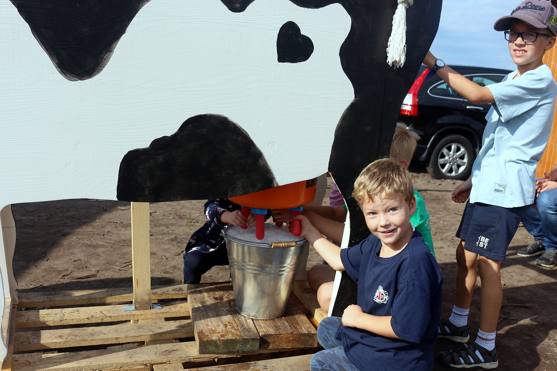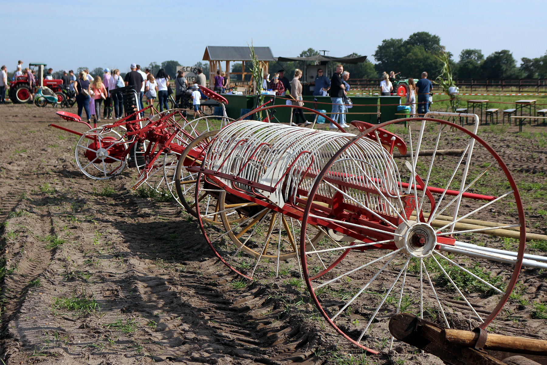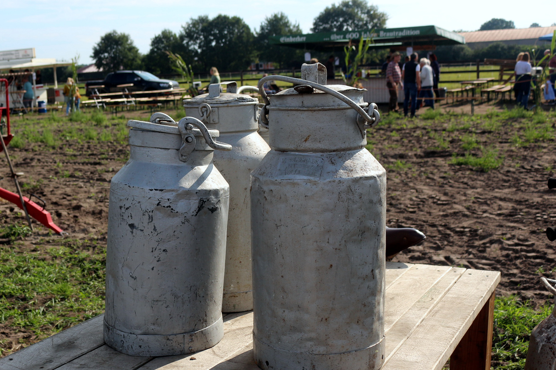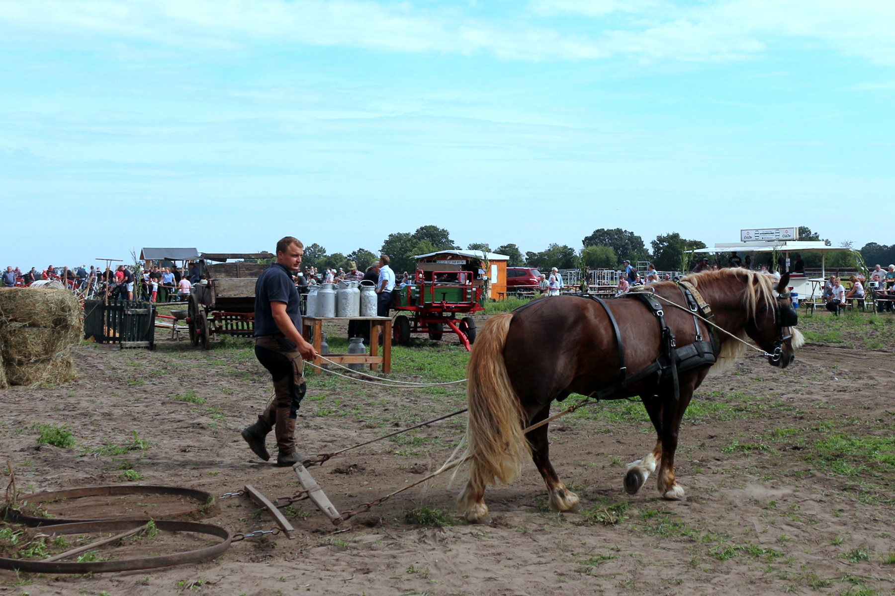 Schillerslage ist zwar nicht der Ort, wo "Milch und Honig fließen", aber der Platz, an dem sich einen Spätsommertag lang alles um das Thema "Milch" drehte. Um den großen und kleinen Besuchern zu zeigen, wie zu Großvaters Zeiten, oder noch früher, mit Pferden in der Landwirtschaft gearbeitet wurde, ließen FOS-Vorsitzender Heiner Wehrs und Ortsbürgermeister Cord Reißer den Andachtskreis flugs in einen Aktionskreis verwandeln, in dem die Wiese für die (Kuh-)Milchgewinnung vorbereitet wurde. Bei fantastischem Heuwetter drehten anschließend zwei "Schwarzwälder Füchse" mit Schleppe für die Bodenbearbeitung ihre Runden.
