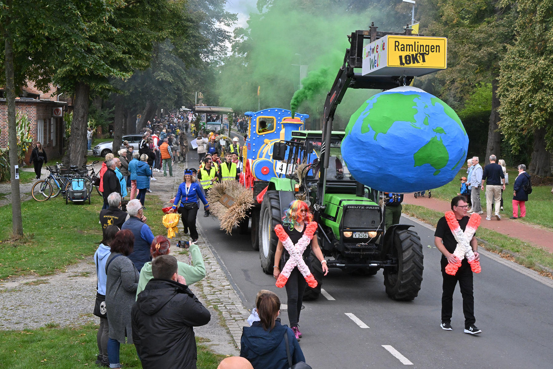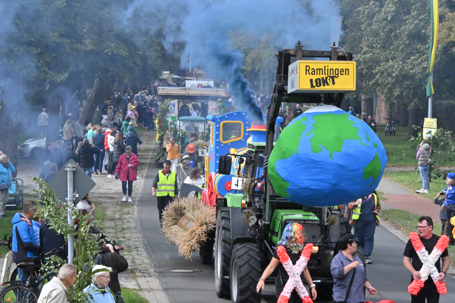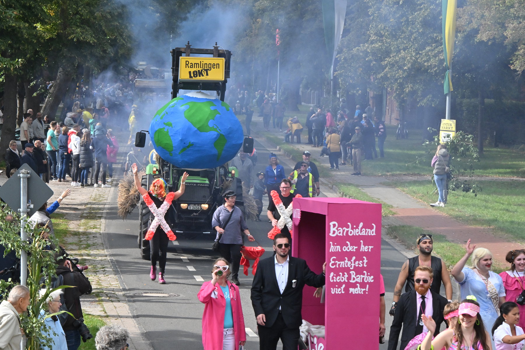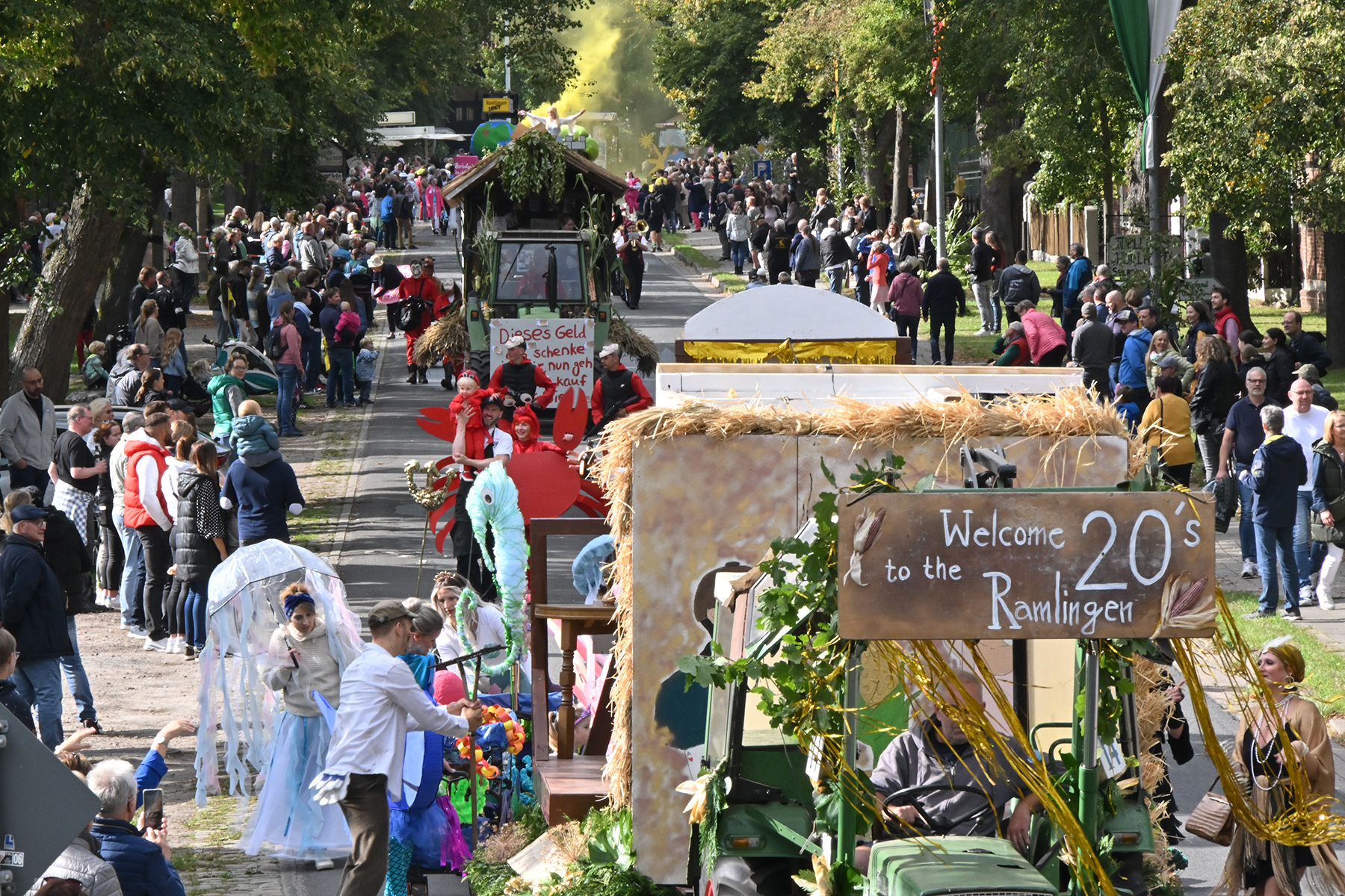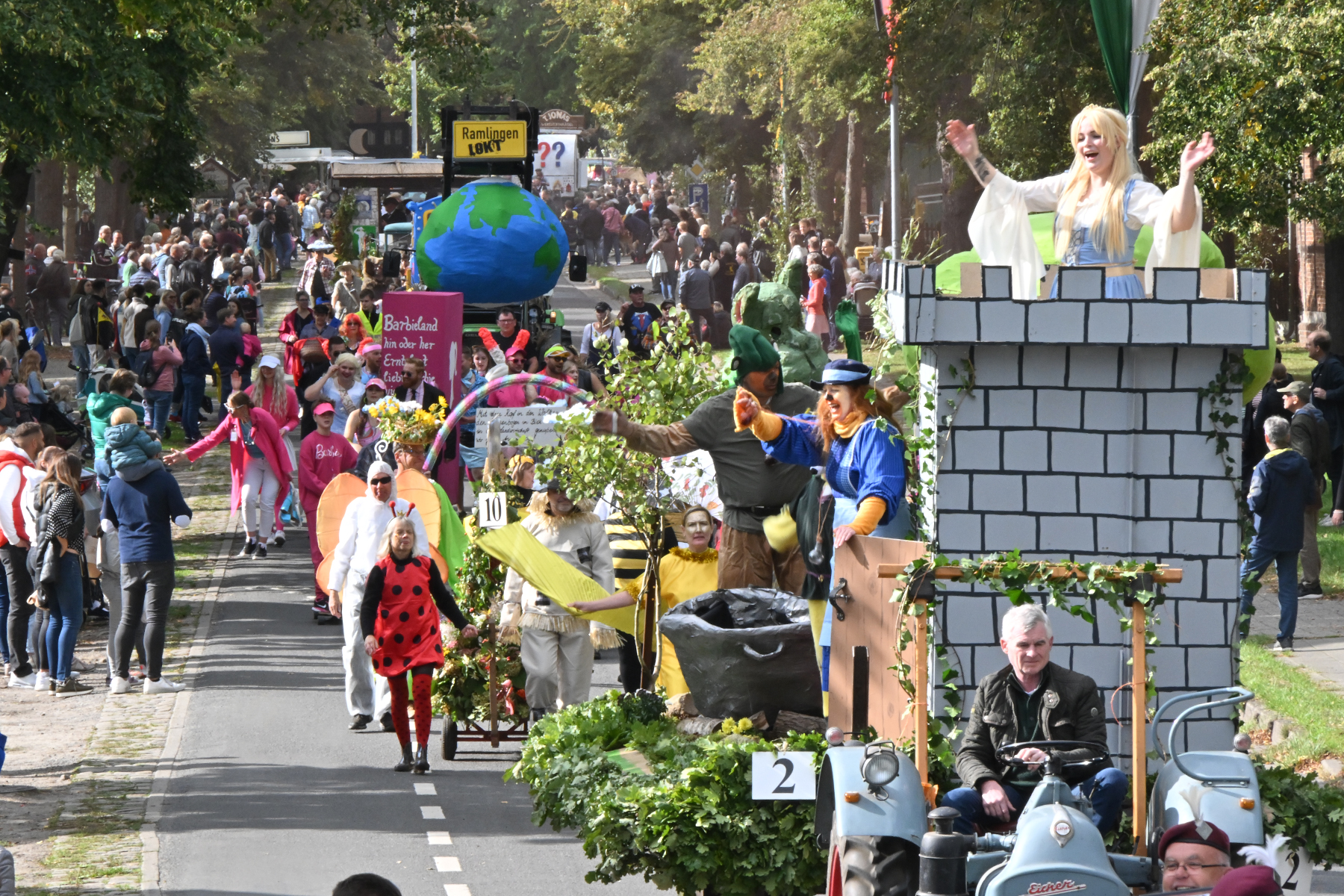 Der Festumzug, der am morgigen Sonntag erneut durch den Ort führt, hat auch in diesem Jahr wieder viele Gruppen animiert, Mottowagen für diesen zu bauen. Sind es in diesem Jahr nicht die ganz großen Erntewagen, so überzeugen alle durch viel Detailreichtum. "Wieviel Zeit, Energie und Einsatz in das Fertigen der Erntewagen gesteckt wird, ist unglaublich"; so Manfred Meyer, der in diesem Jahr aus der Dorfgemeinschaft Ramlingen verabschiedet wurde. Die achtköpfige "Dorfgemeinschaft Ramlingen" ist das Organisationsteam, das hinter dem Erntefest steht, aber auch auf viele ehrenamtliche Helfer zurückgreifen kann. Wie beispielsweise Kräfte der Ortsfeuerwehr Weferlingsen, die auch in diesem Jahr die Umzugsstrecke sicherten. "Das Fest wird es immer geben", ist sich Manfred Meyer sicher. Das sehe man an den vielen jungen Menschen, die sich am Umzug beteiligen.