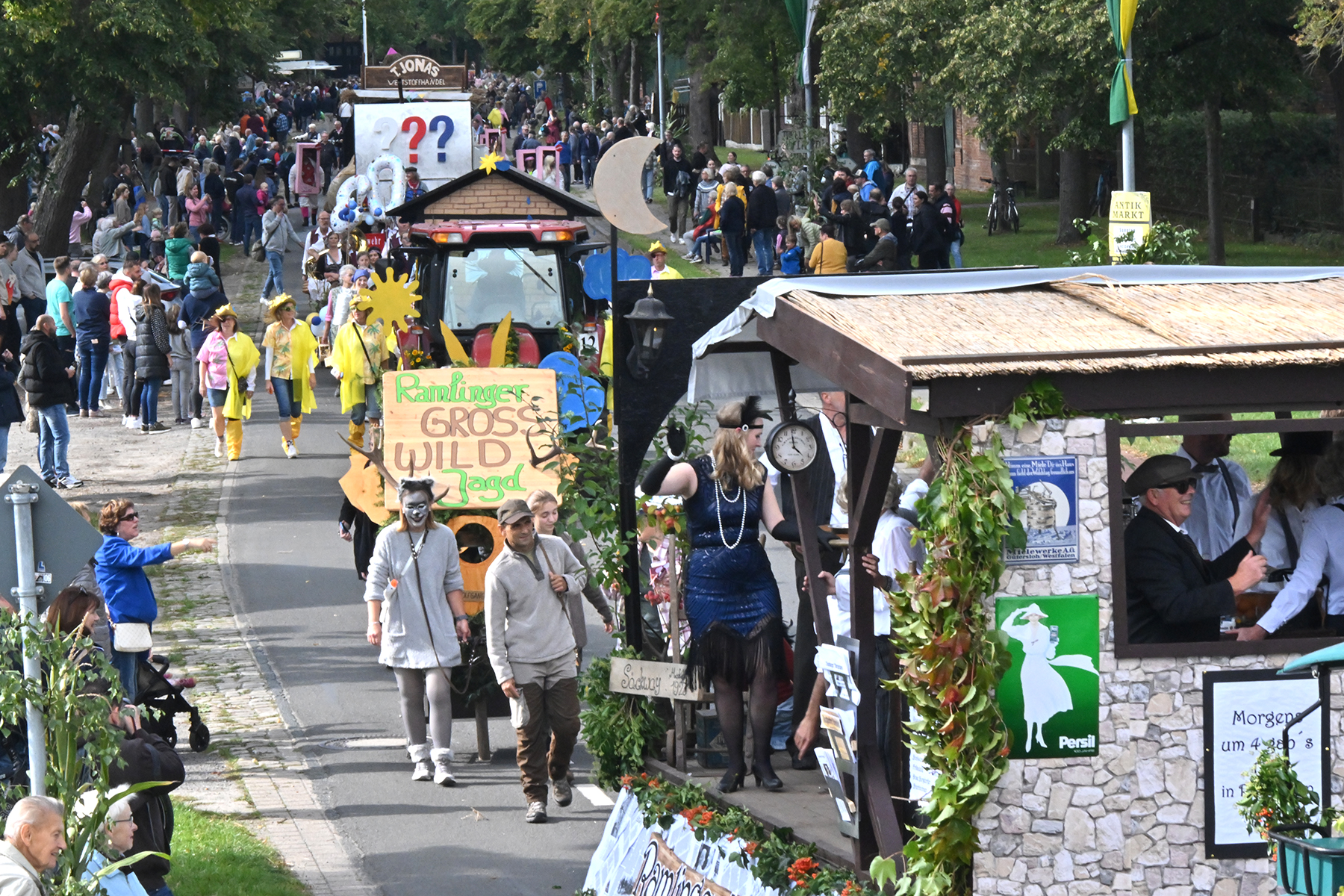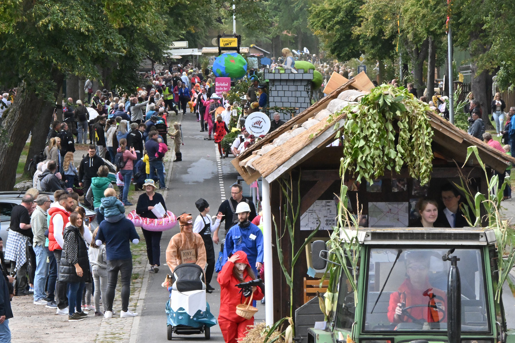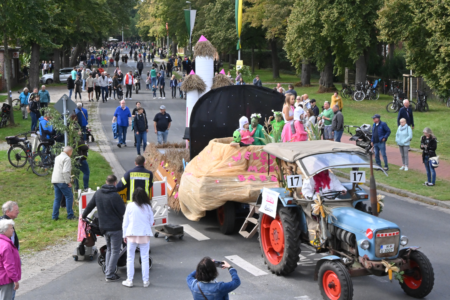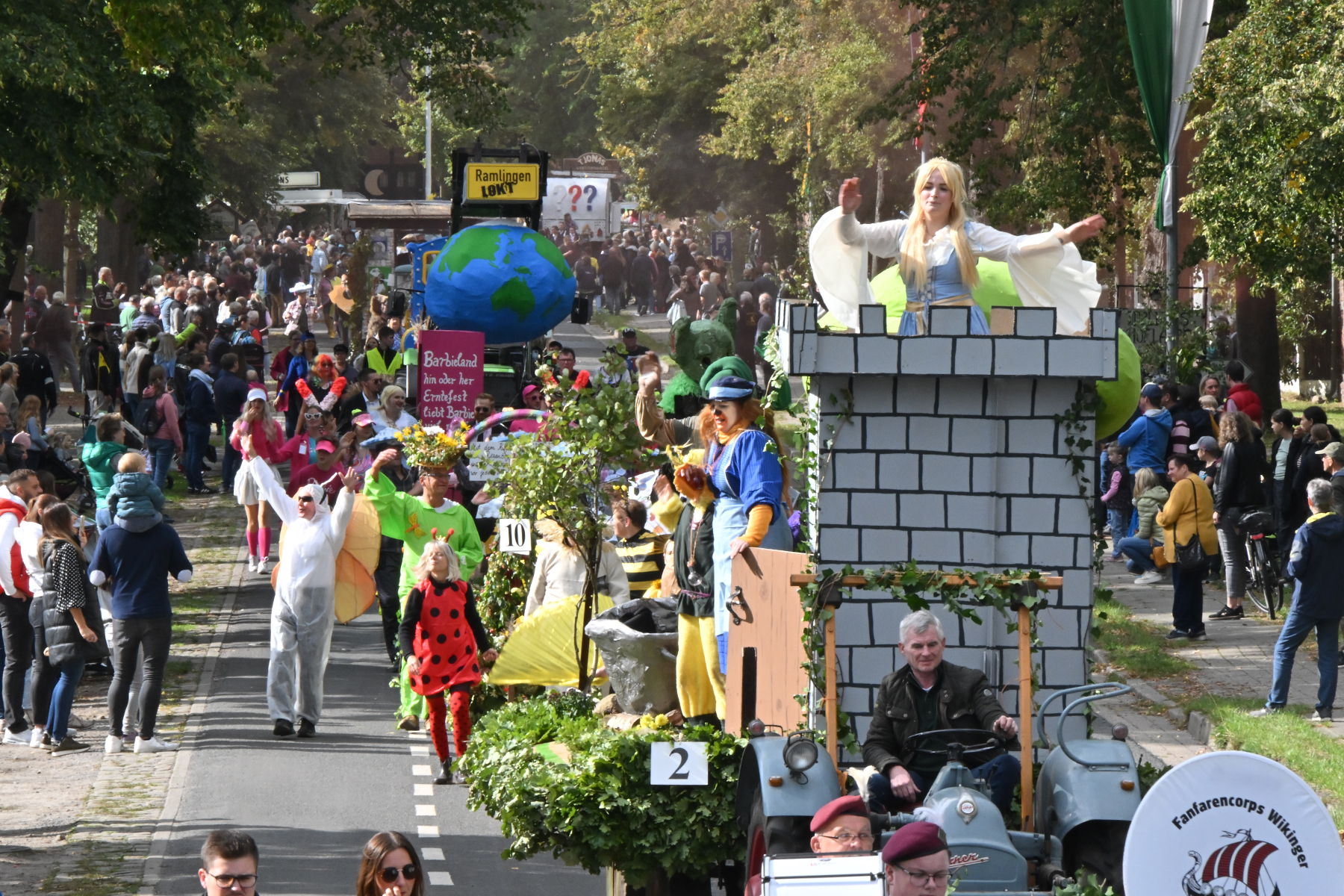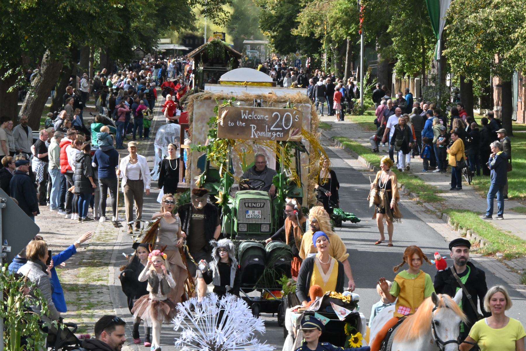 Der Festumzug, der am morgigen Sonntag erneut durch den Ort führt, hat auch in diesem Jahr wieder viele Gruppen animiert, Mottowagen für diesen zu bauen. Sind es in diesem Jahr nicht die ganz großen Erntewagen, so überzeugen alle durch viel Detailreichtum. "Wieviel Zeit, Energie und Einsatz in das Fertigen der Erntewagen gesteckt wird, ist unglaublich"; so Manfred Meyer, der in diesem Jahr aus der Dorfgemeinschaft Ramlingen verabschiedet wurde. Die achtköpfige "Dorfgemeinschaft Ramlingen" ist das Organisationsteam, das hinter dem Erntefest steht, aber auch auf viele ehrenamtliche Helfer zurückgreifen kann. Wie beispielsweise Kräfte der Ortsfeuerwehr Weferlingsen, die auch in diesem Jahr die Umzugsstrecke sicherten. "Das Fest wird es immer geben", ist sich Manfred Meyer sicher. Das sehe man an den vielen jungen Menschen, die sich am Umzug beteiligen.