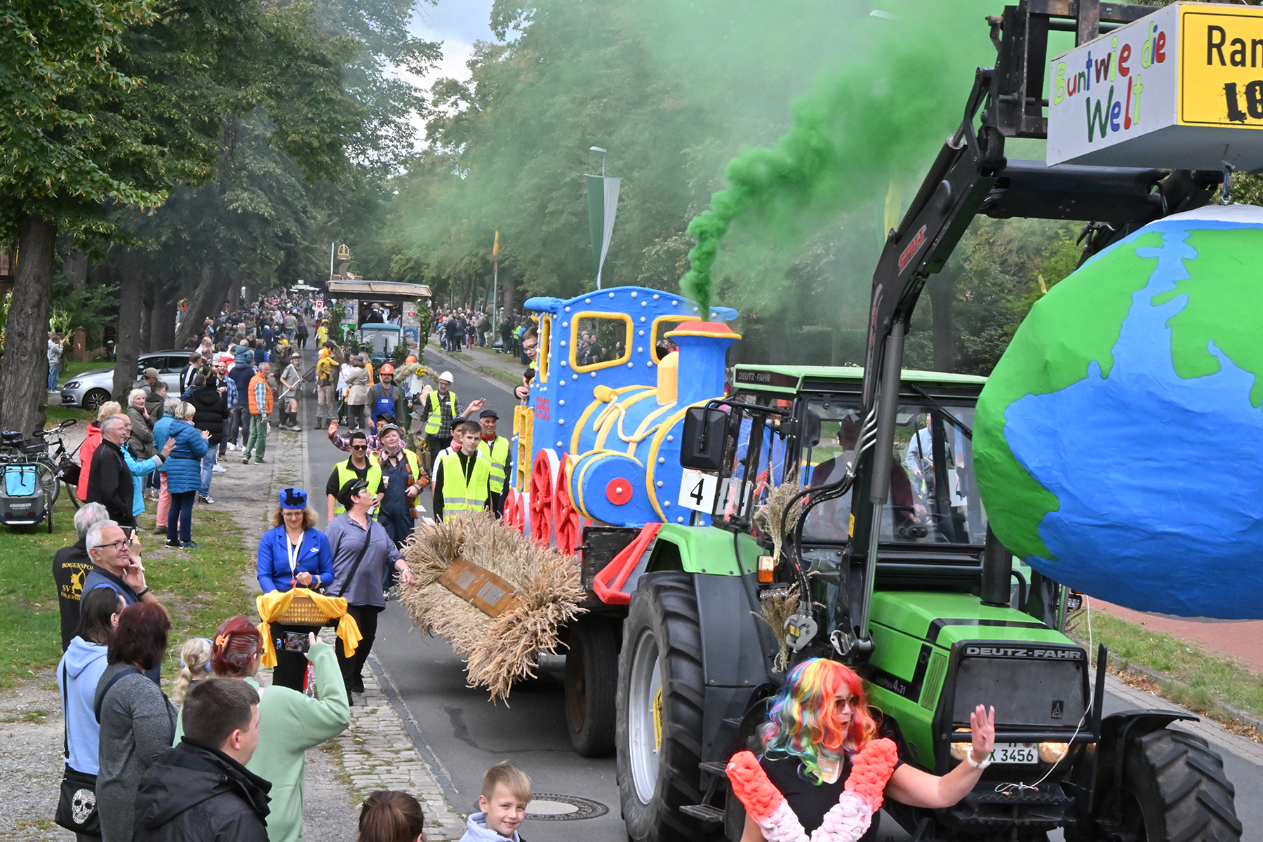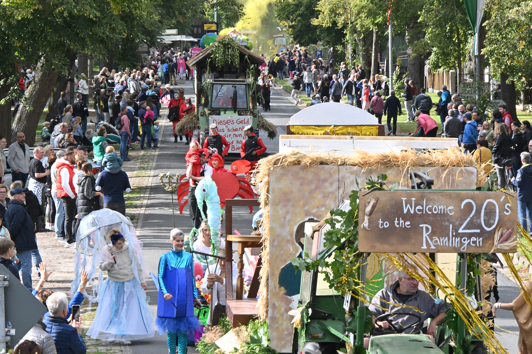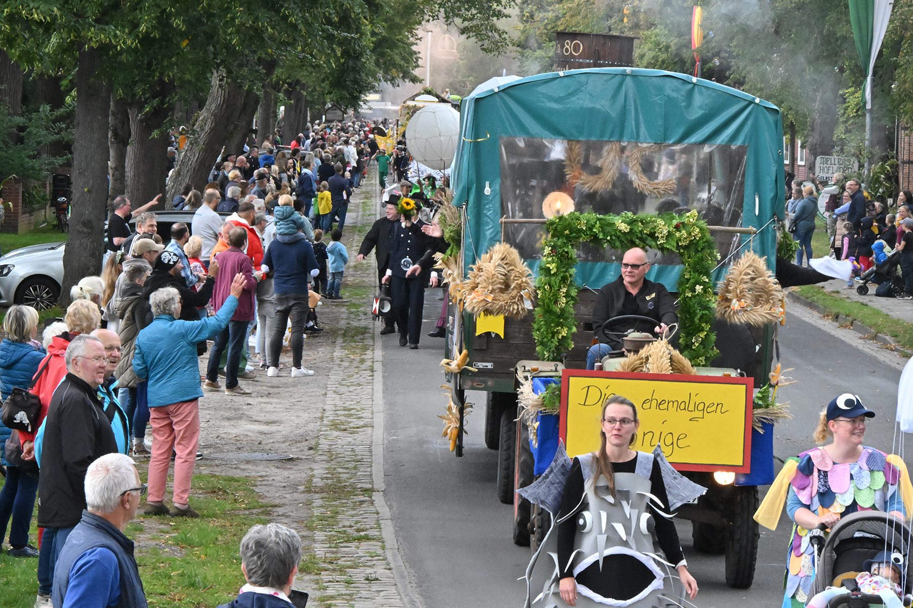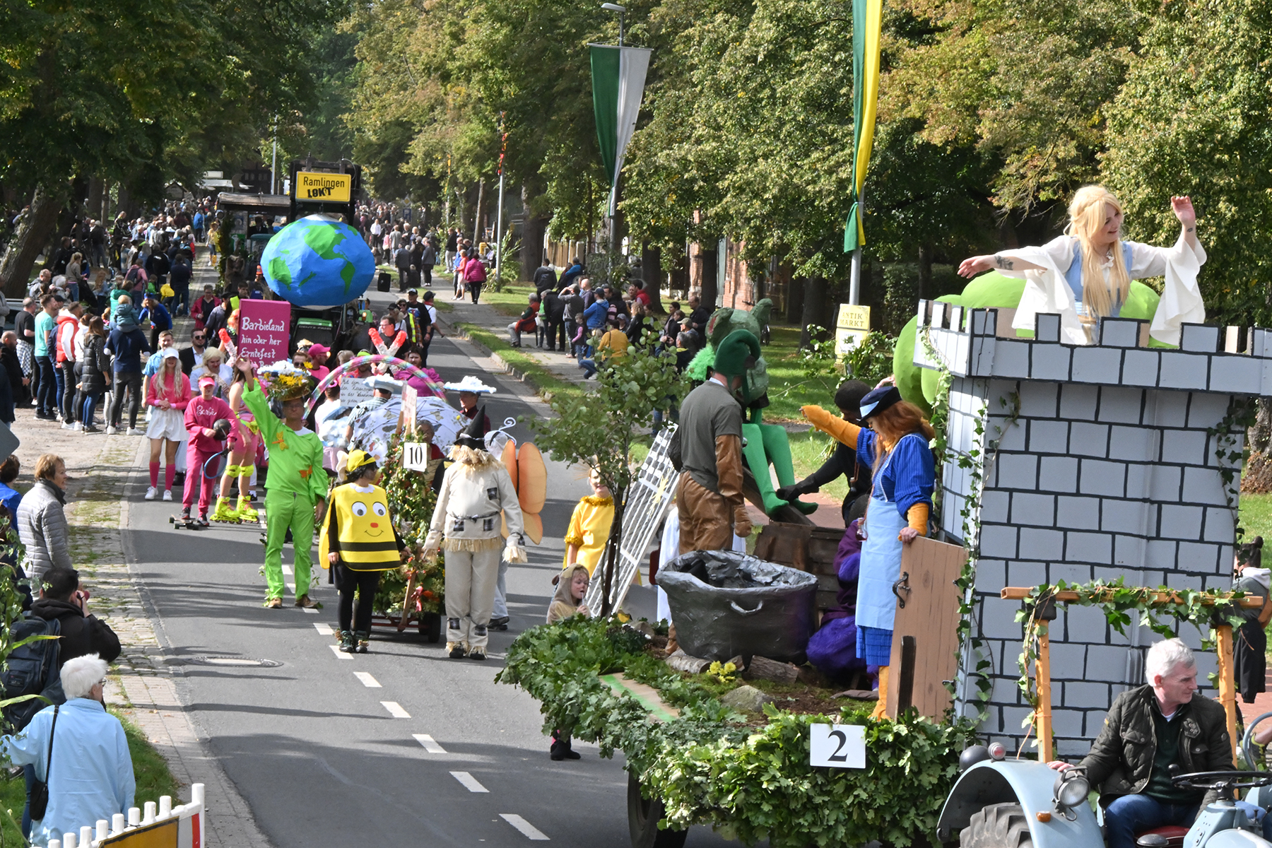 Der Festumzug, der am morgigen Sonntag erneut durch den Ort führt, hat auch in diesem Jahr wieder viele Gruppen animiert, Mottowagen für diesen zu bauen. Sind es in diesem Jahr nicht die ganz großen Erntewagen, so überzeugen alle durch viel Detailreichtum. "Wieviel Zeit, Energie und Einsatz in das Fertigen der Erntewagen gesteckt wird, ist unglaublich"; so Manfred Meyer, der in diesem Jahr aus der Dorfgemeinschaft Ramlingen verabschiedet wurde. Die achtköpfige "Dorfgemeinschaft Ramlingen" ist das Organisationsteam, das hinter dem Erntefest steht, aber auch auf viele ehrenamtliche Helfer zurückgreifen kann. Wie beispielsweise Kräfte der Ortsfeuerwehr Weferlingsen, die auch in diesem Jahr die Umzugsstrecke sicherten. "Das Fest wird es immer geben", ist sich Manfred Meyer sicher. Das sehe man an den vielen jungen Menschen, die sich am Umzug beteiligen.