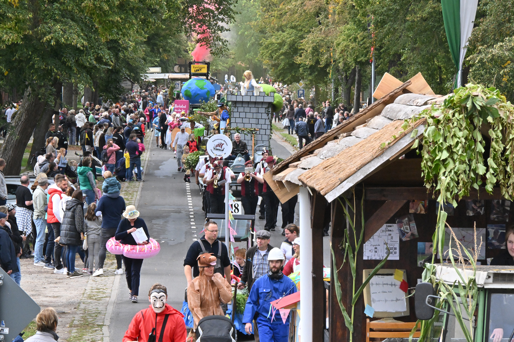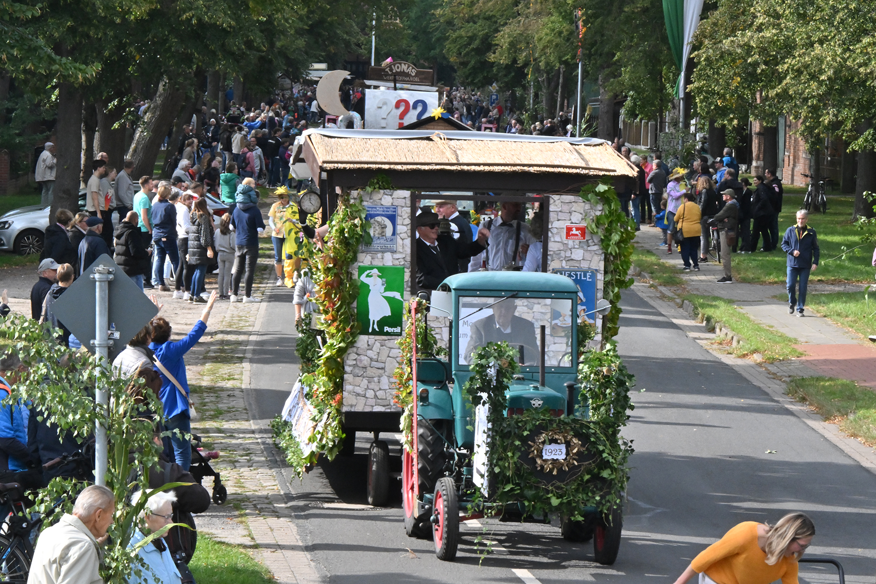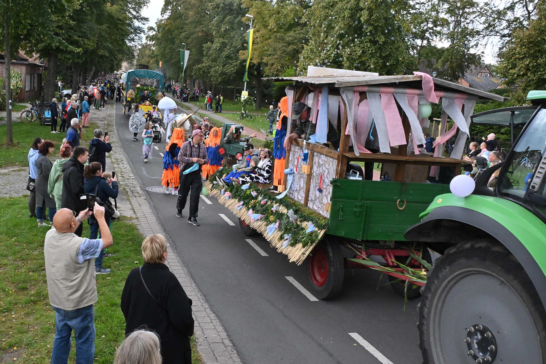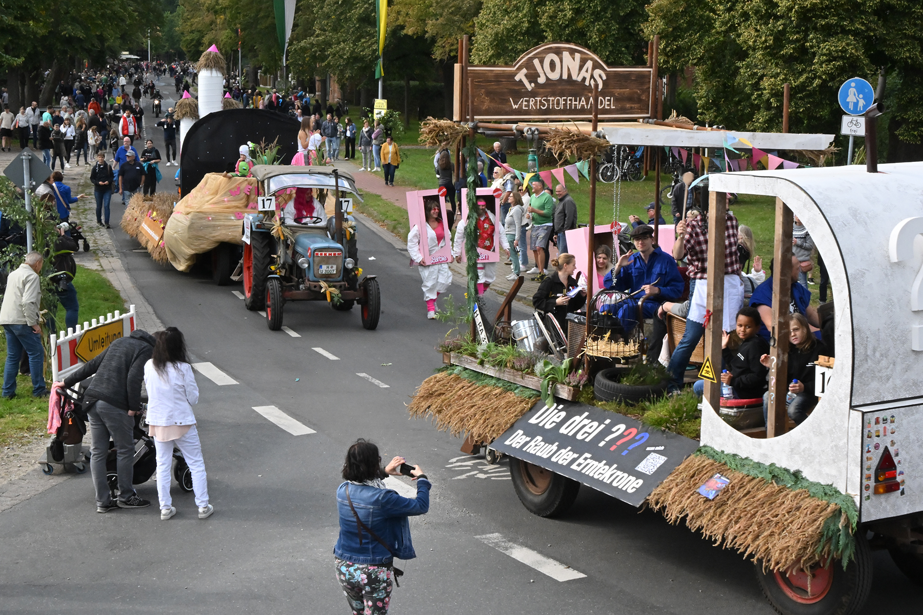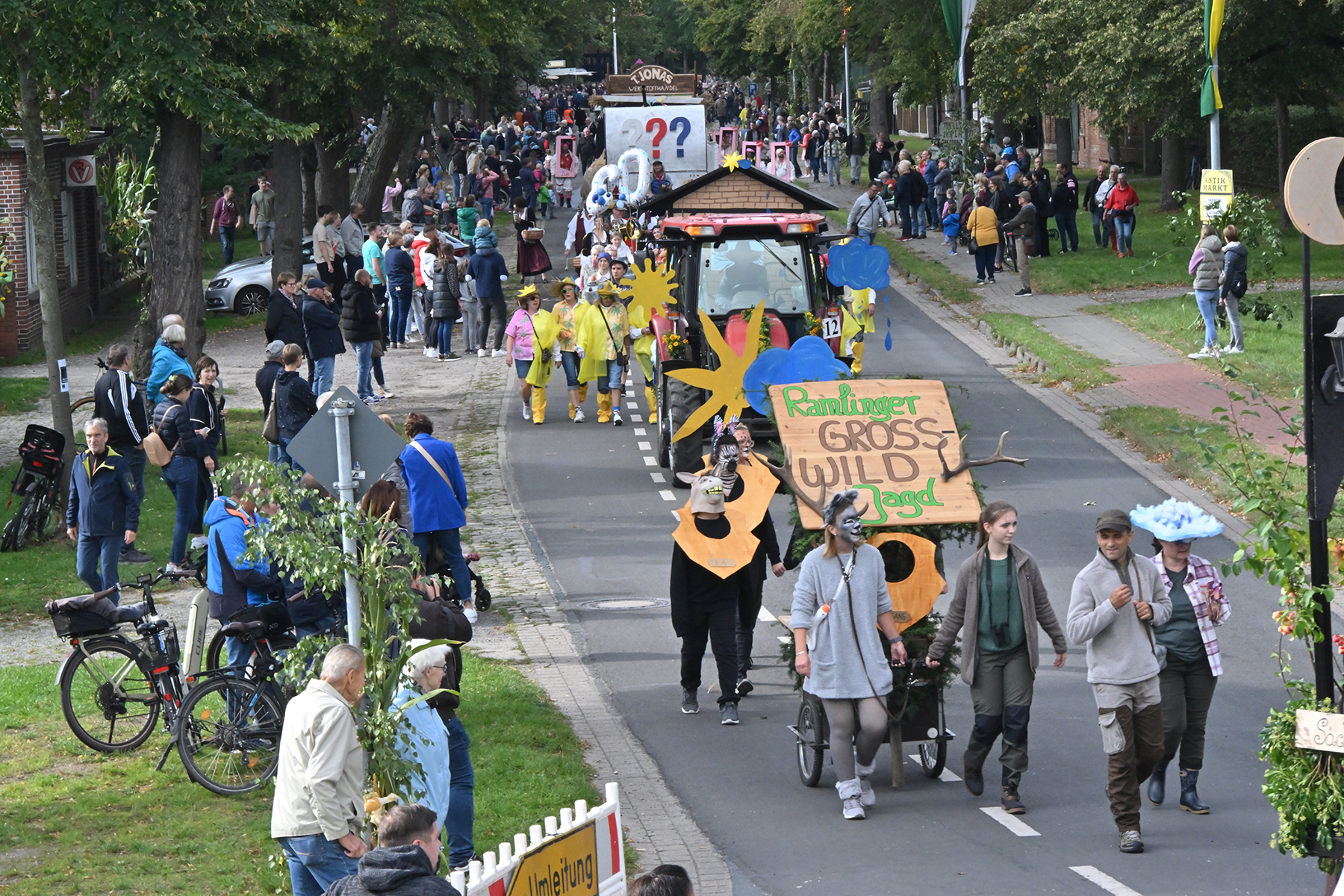 Der Festumzug, der am morgigen Sonntag erneut durch den Ort führt, hat auch in diesem Jahr wieder viele Gruppen animiert, Mottowagen für diesen zu bauen. Sind es in diesem Jahr nicht die ganz großen Erntewagen, so überzeugen alle durch viel Detailreichtum. "Wieviel Zeit, Energie und Einsatz in das Fertigen der Erntewagen gesteckt wird, ist unglaublich"; so Manfred Meyer, der in diesem Jahr aus der Dorfgemeinschaft Ramlingen verabschiedet wurde. Die achtköpfige "Dorfgemeinschaft Ramlingen" ist das Organisationsteam, das hinter dem Erntefest steht, aber auch auf viele ehrenamtliche Helfer zurückgreifen kann. Wie beispielsweise Kräfte der Ortsfeuerwehr Weferlingsen, die auch in diesem Jahr die Umzugsstrecke sicherten. "Das Fest wird es immer geben", ist sich Manfred Meyer sicher. Das sehe man an den vielen jungen Menschen, die sich am Umzug beteiligen.