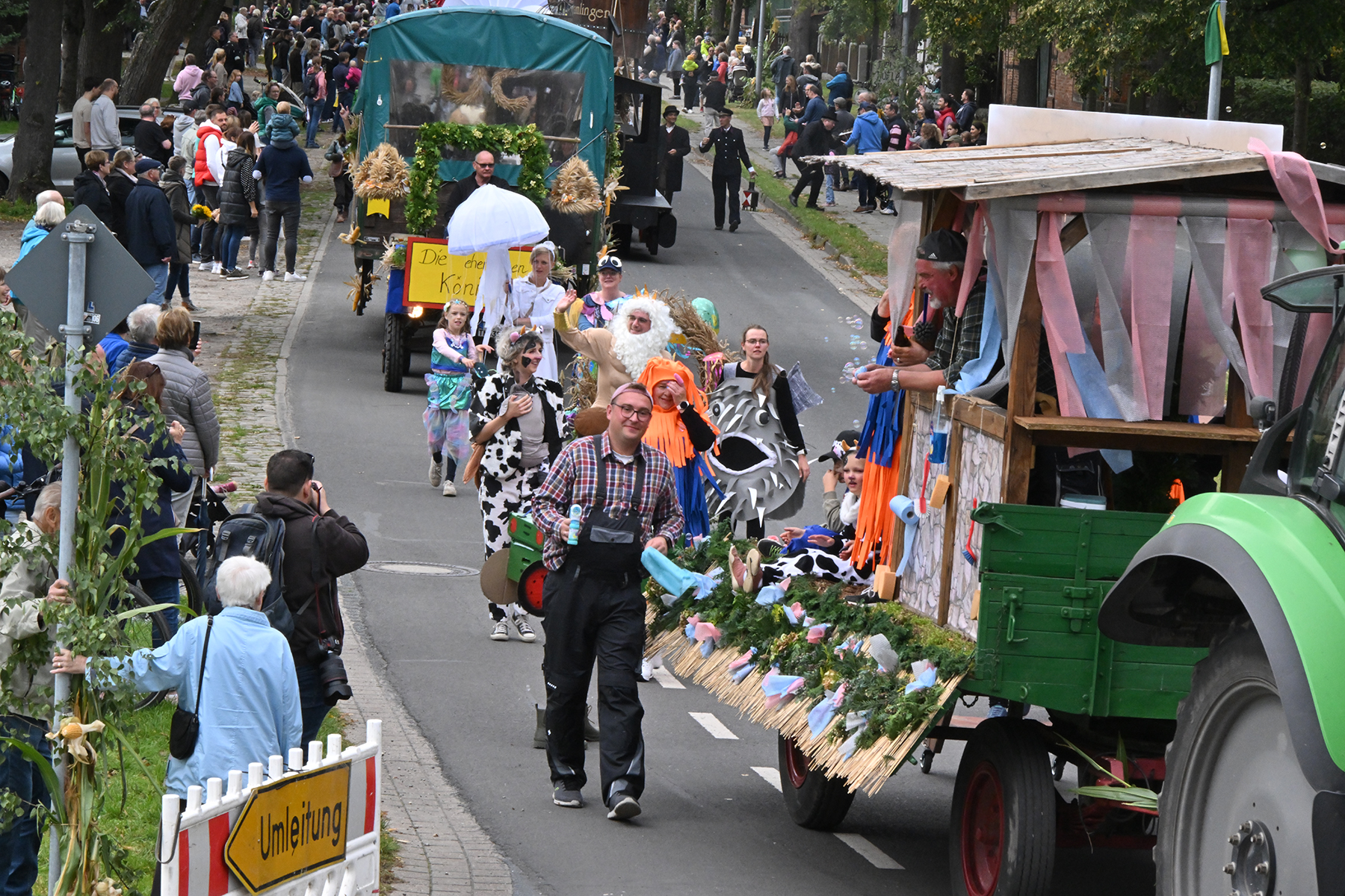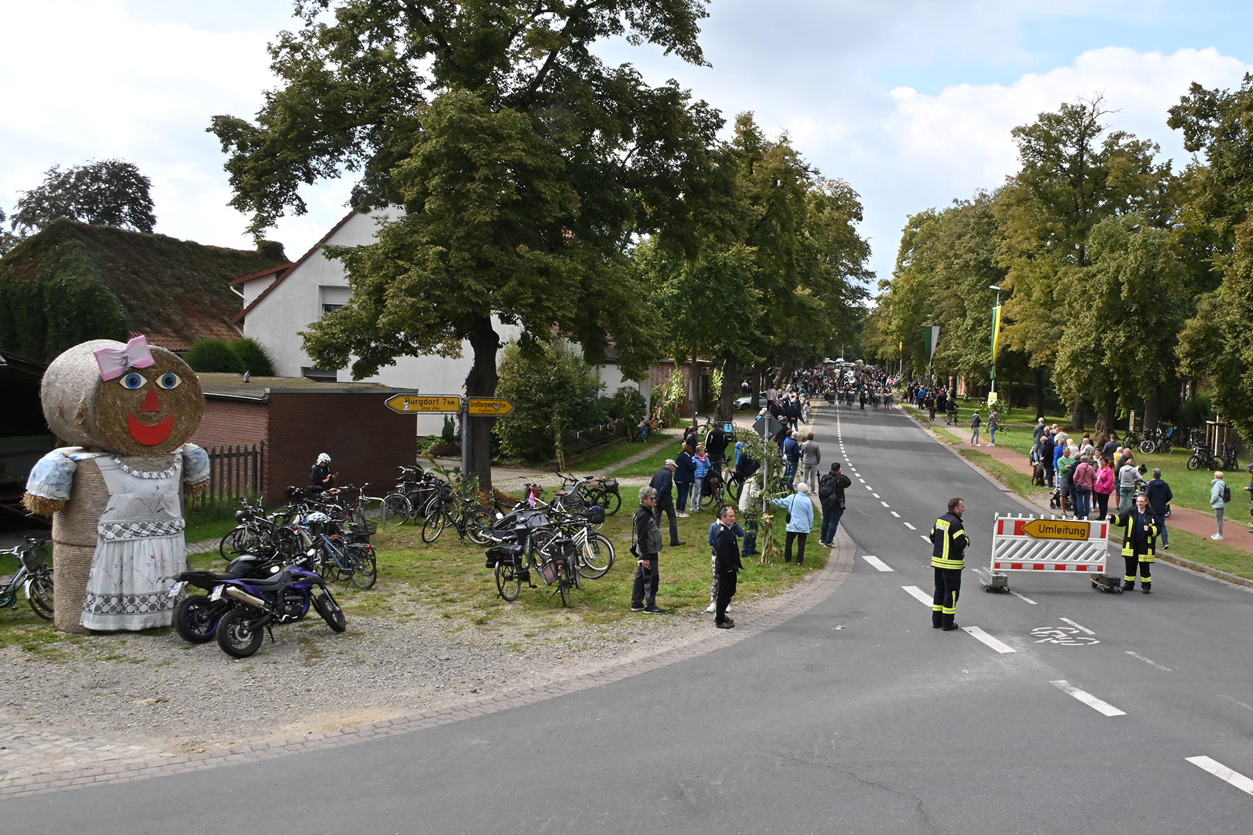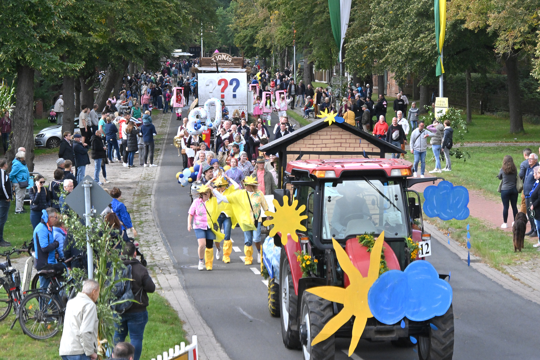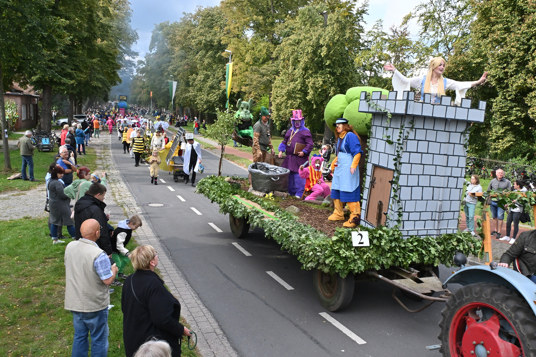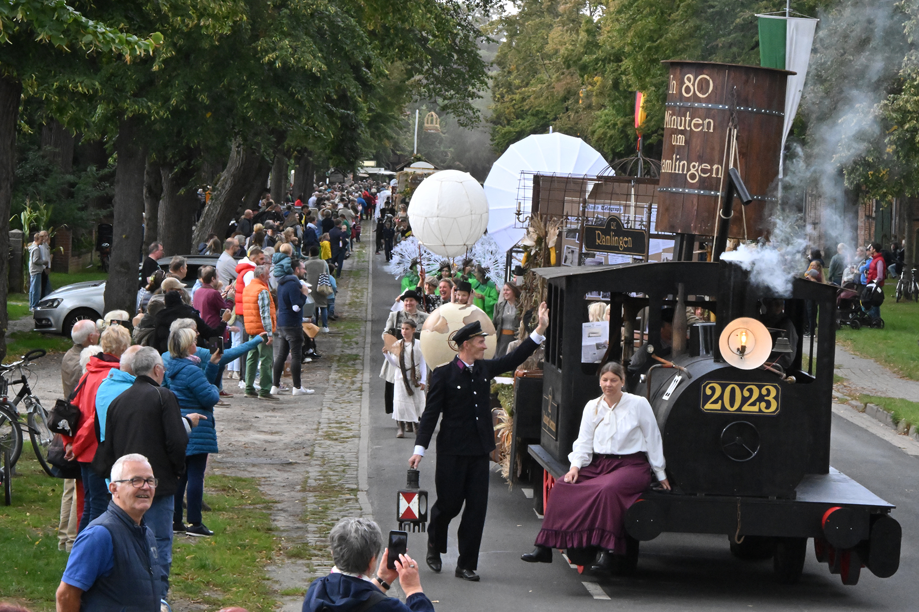 Der Festumzug, der am morgigen Sonntag erneut durch den Ort führt, hat auch in diesem Jahr wieder viele Gruppen animiert, Mottowagen für diesen zu bauen. Sind es in diesem Jahr nicht die ganz großen Erntewagen, so überzeugen alle durch viel Detailreichtum. "Wieviel Zeit, Energie und Einsatz in das Fertigen der Erntewagen gesteckt wird, ist unglaublich"; so Manfred Meyer, der in diesem Jahr aus der Dorfgemeinschaft Ramlingen verabschiedet wurde. Die achtköpfige "Dorfgemeinschaft Ramlingen" ist das Organisationsteam, das hinter dem Erntefest steht, aber auch auf viele ehrenamtliche Helfer zurückgreifen kann. Wie beispielsweise Kräfte der Ortsfeuerwehr Weferlingsen, die auch in diesem Jahr die Umzugsstrecke sicherten. "Das Fest wird es immer geben", ist sich Manfred Meyer sicher. Das sehe man an den vielen jungen Menschen, die sich am Umzug beteiligen.