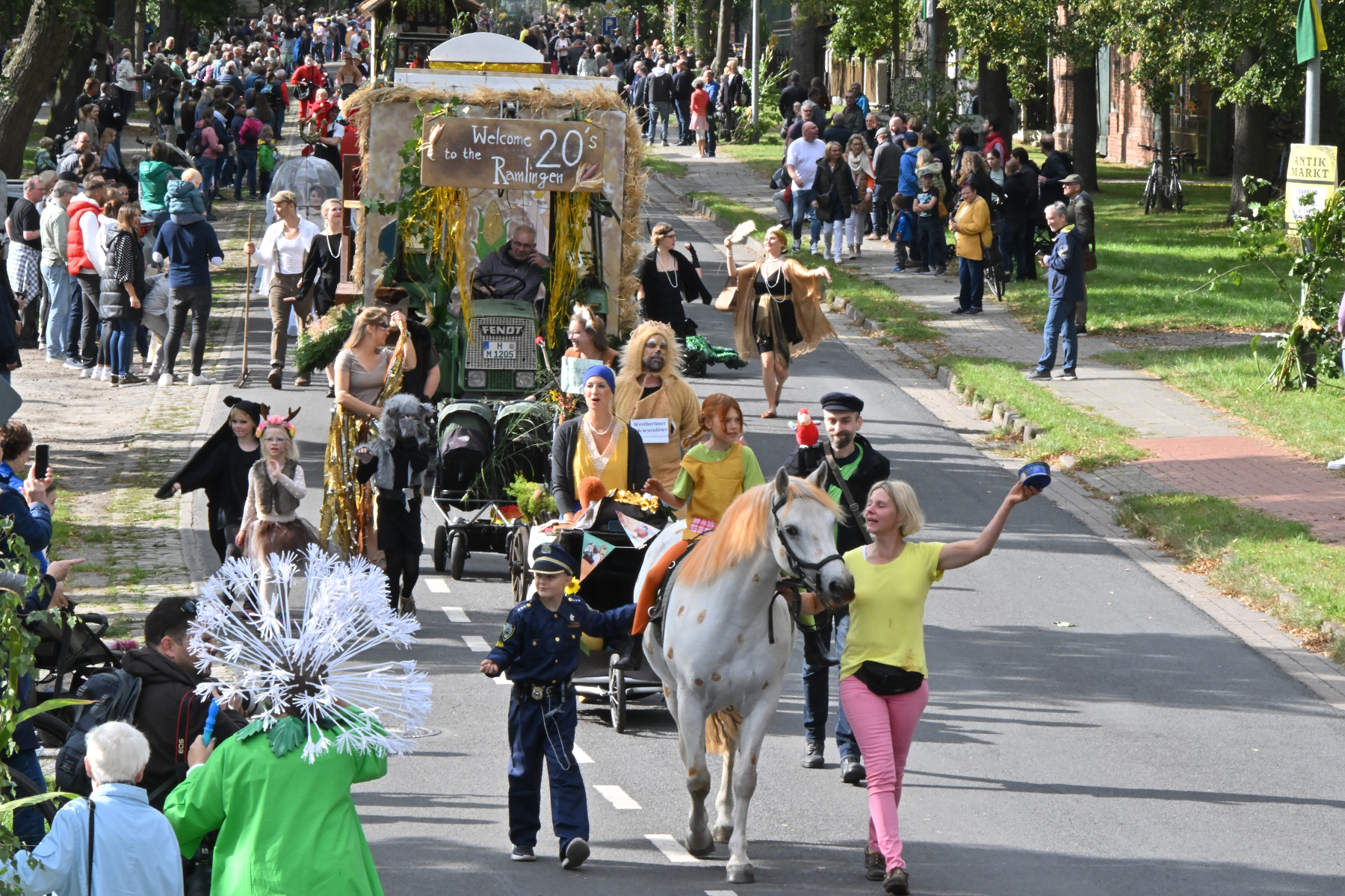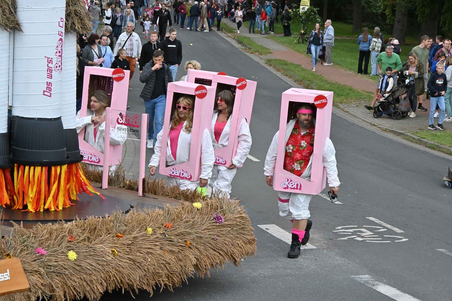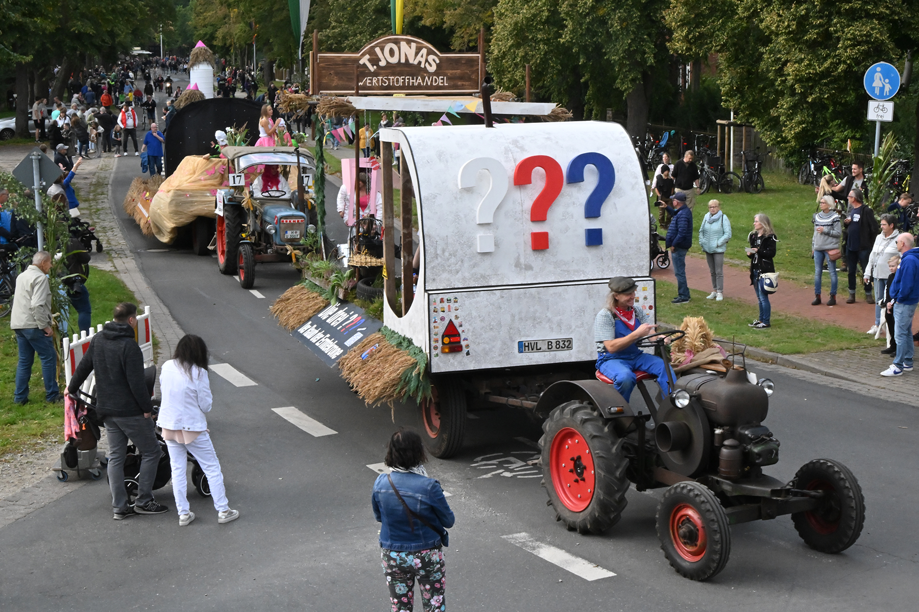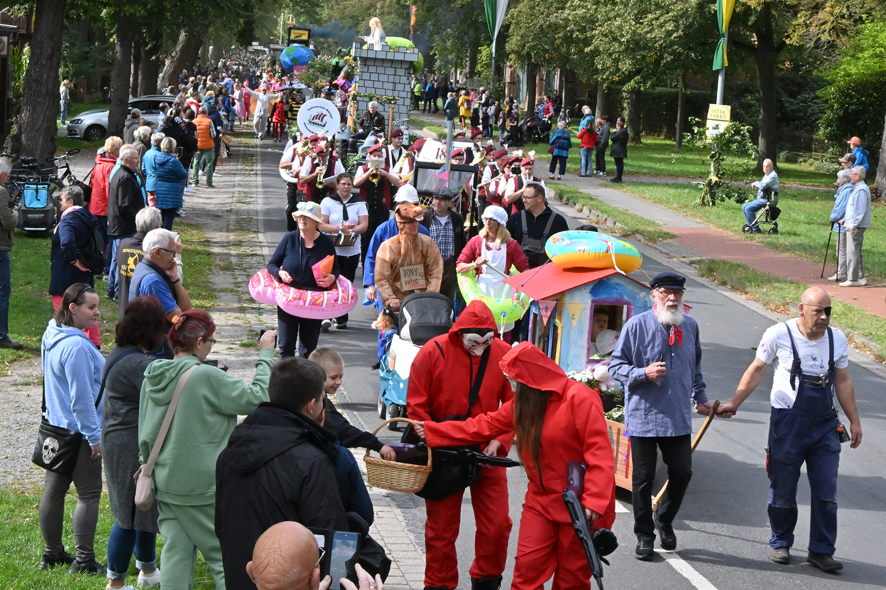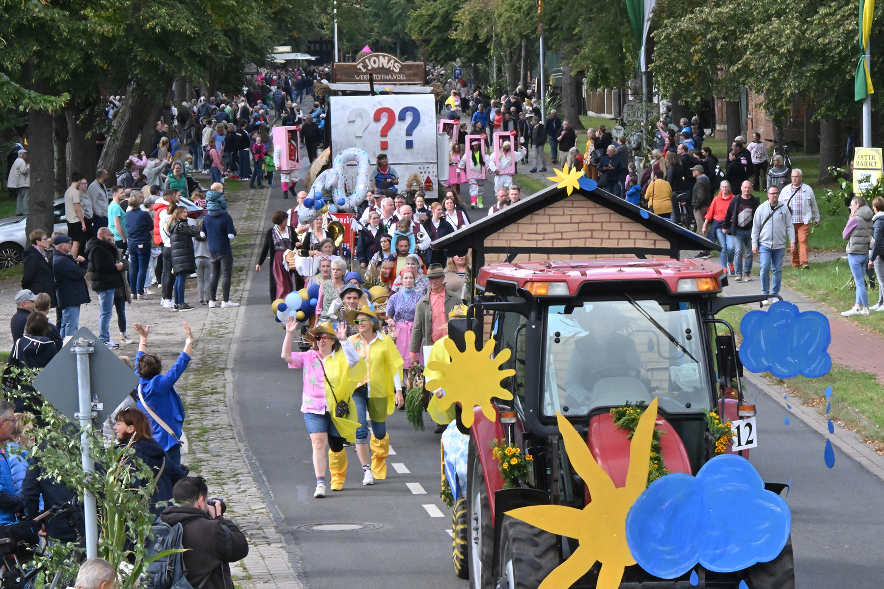 Der Festumzug, der am morgigen Sonntag erneut durch den Ort führt, hat auch in diesem Jahr wieder viele Gruppen animiert, Mottowagen für diesen zu bauen. Sind es in diesem Jahr nicht die ganz großen Erntewagen, so überzeugen alle durch viel Detailreichtum. "Wieviel Zeit, Energie und Einsatz in das Fertigen der Erntewagen gesteckt wird, ist unglaublich"; so Manfred Meyer, der in diesem Jahr aus der Dorfgemeinschaft Ramlingen verabschiedet wurde. Die achtköpfige "Dorfgemeinschaft Ramlingen" ist das Organisationsteam, das hinter dem Erntefest steht, aber auch auf viele ehrenamtliche Helfer zurückgreifen kann. Wie beispielsweise Kräfte der Ortsfeuerwehr Weferlingsen, die auch in diesem Jahr die Umzugsstrecke sicherten. "Das Fest wird es immer geben", ist sich Manfred Meyer sicher. Das sehe man an den vielen jungen Menschen, die sich am Umzug beteiligen.