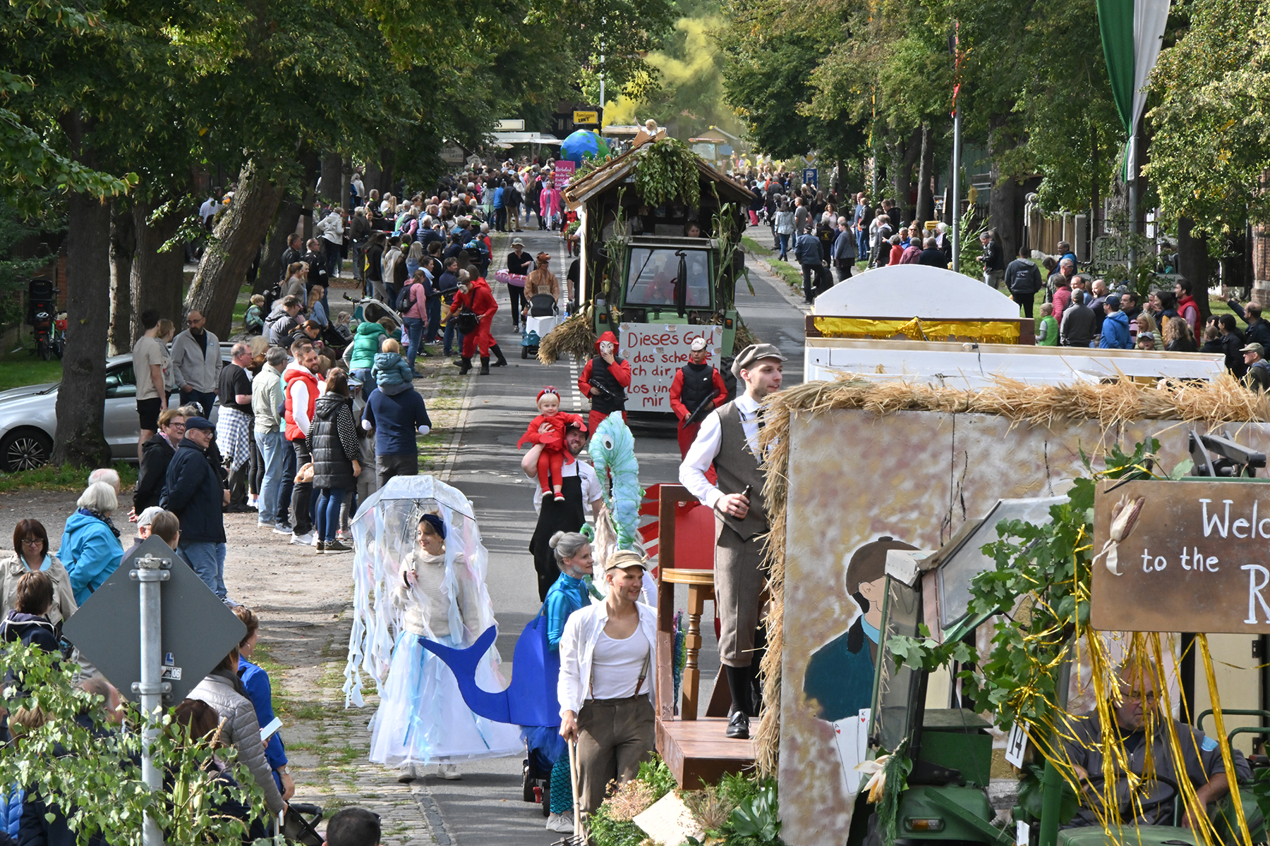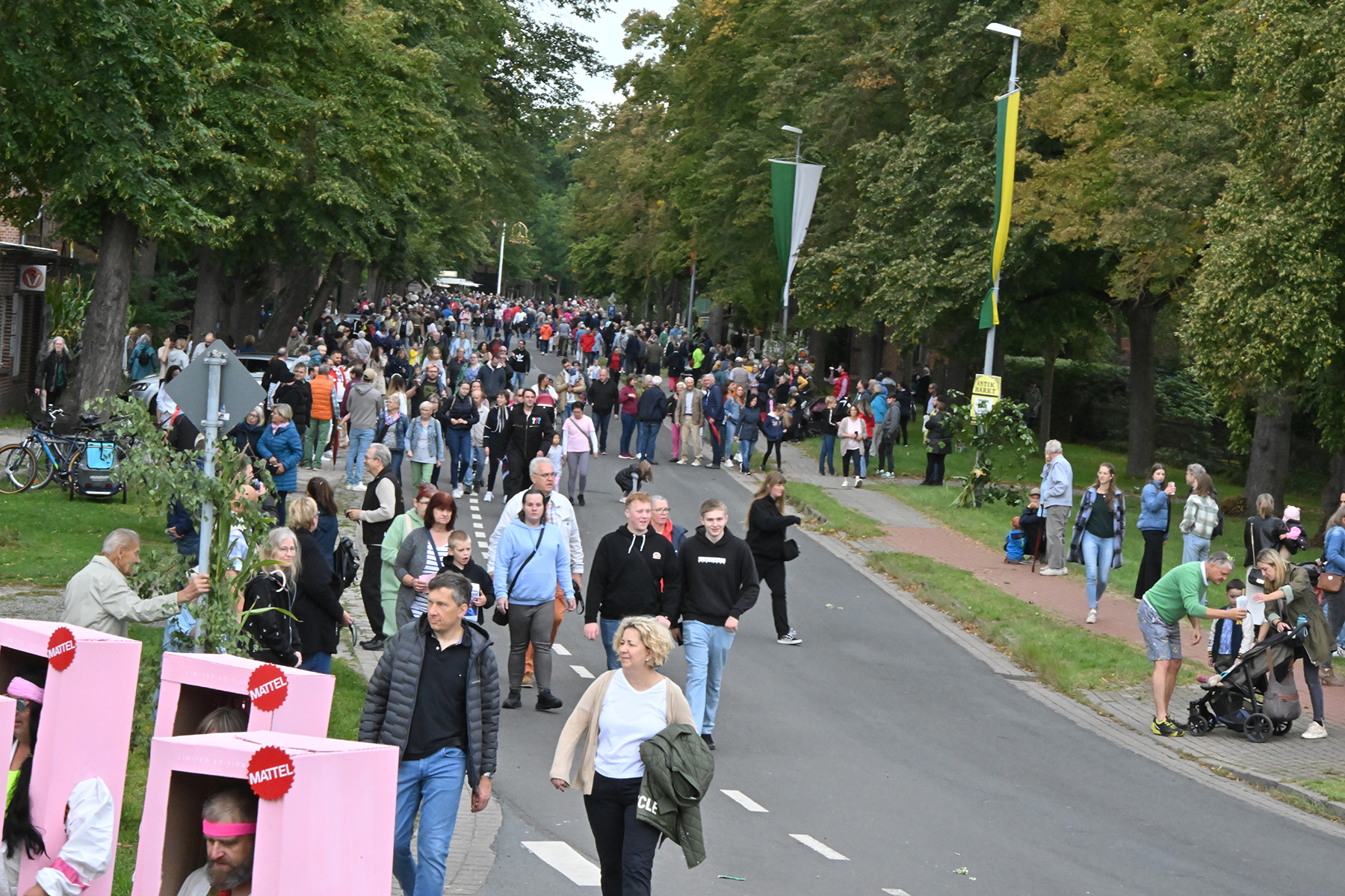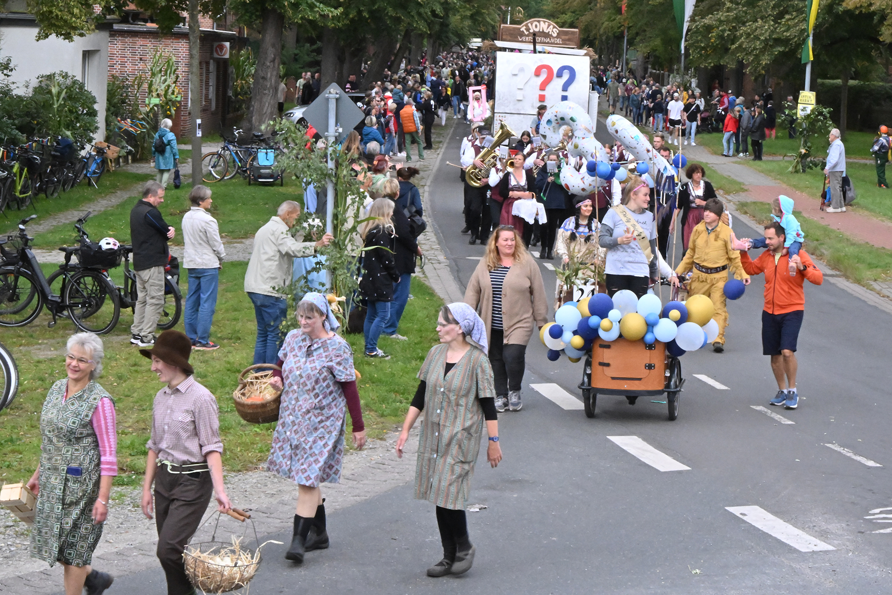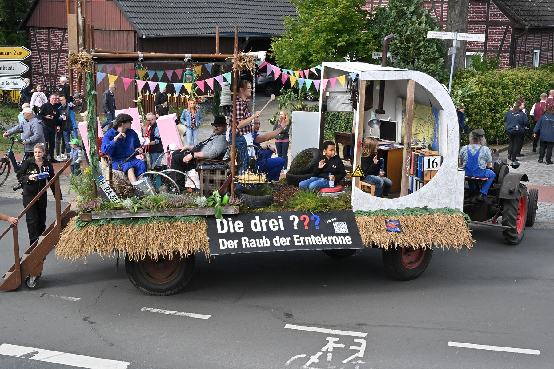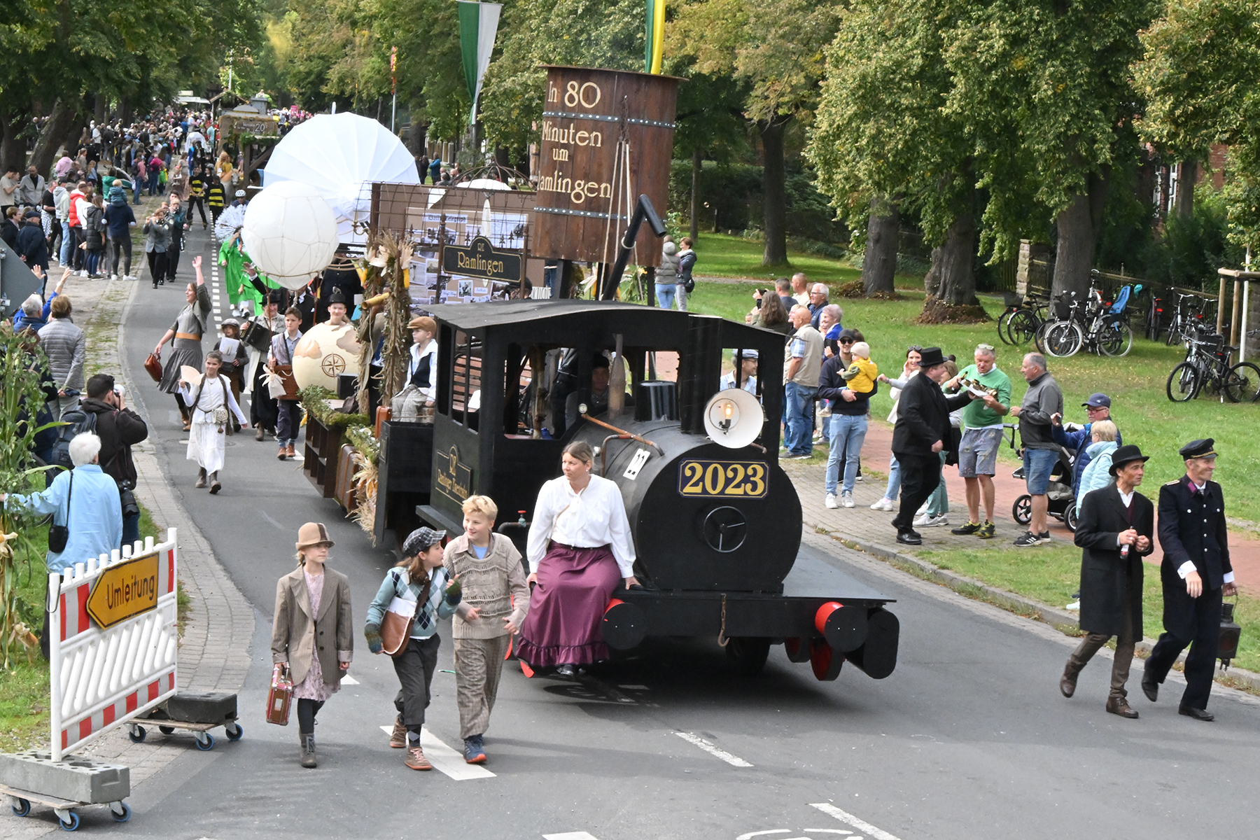 Der Festumzug, der am morgigen Sonntag erneut durch den Ort führt, hat auch in diesem Jahr wieder viele Gruppen animiert, Mottowagen für diesen zu bauen. Sind es in diesem Jahr nicht die ganz großen Erntewagen, so überzeugen alle durch viel Detailreichtum. "Wieviel Zeit, Energie und Einsatz in das Fertigen der Erntewagen gesteckt wird, ist unglaublich"; so Manfred Meyer, der in diesem Jahr aus der Dorfgemeinschaft Ramlingen verabschiedet wurde. Die achtköpfige "Dorfgemeinschaft Ramlingen" ist das Organisationsteam, das hinter dem Erntefest steht, aber auch auf viele ehrenamtliche Helfer zurückgreifen kann. Wie beispielsweise Kräfte der Ortsfeuerwehr Weferlingsen, die auch in diesem Jahr die Umzugsstrecke sicherten. "Das Fest wird es immer geben", ist sich Manfred Meyer sicher. Das sehe man an den vielen jungen Menschen, die sich am Umzug beteiligen.