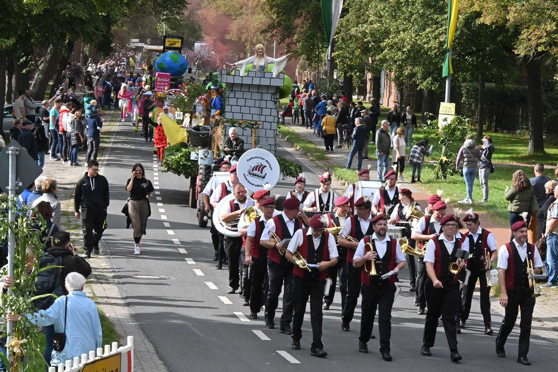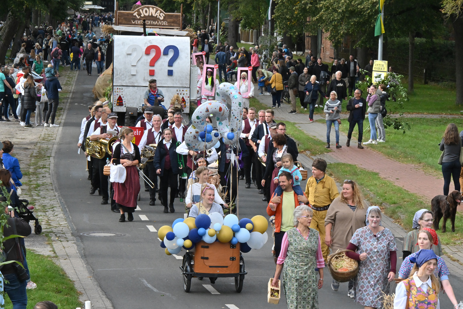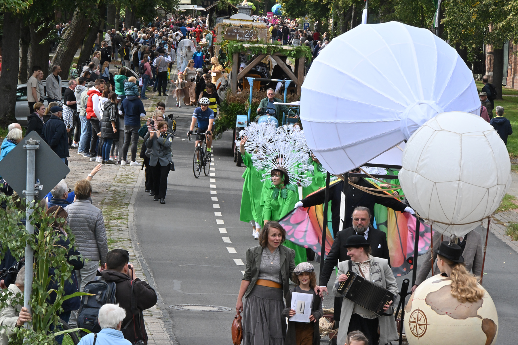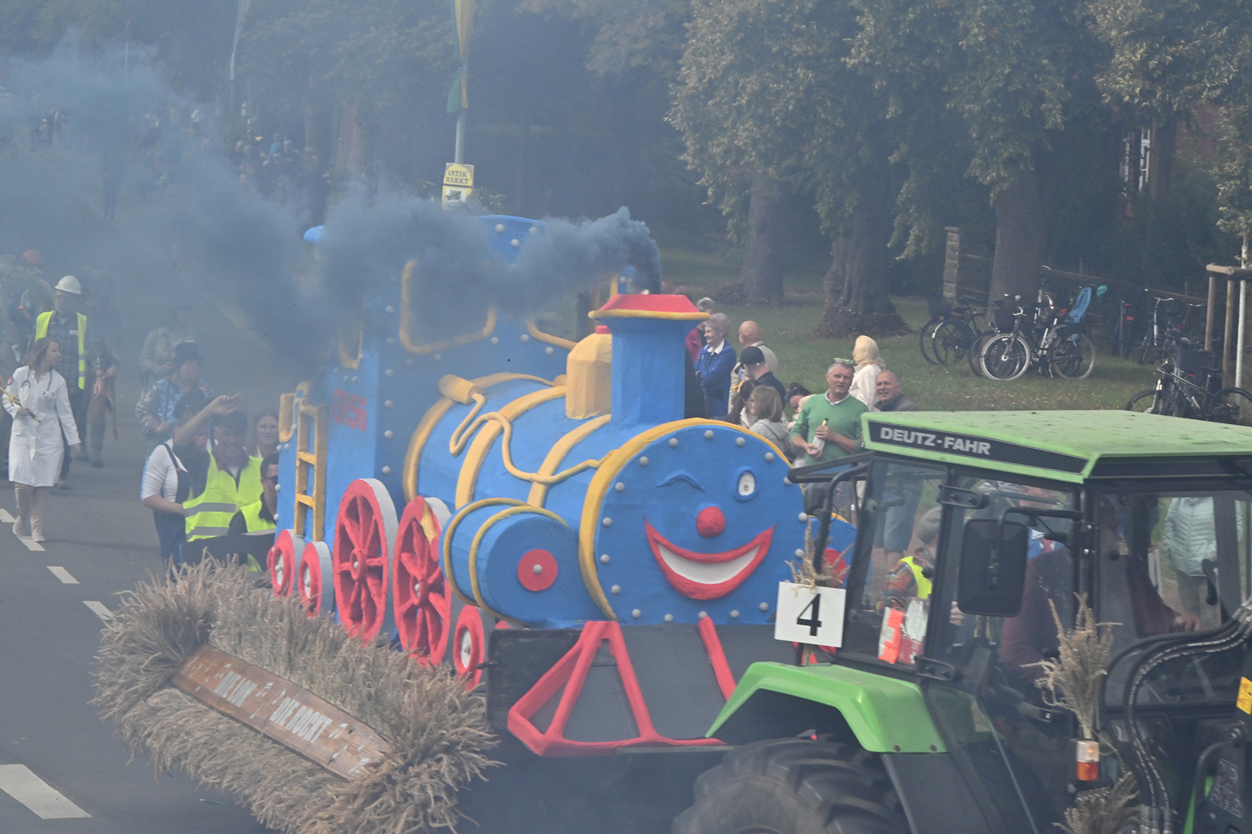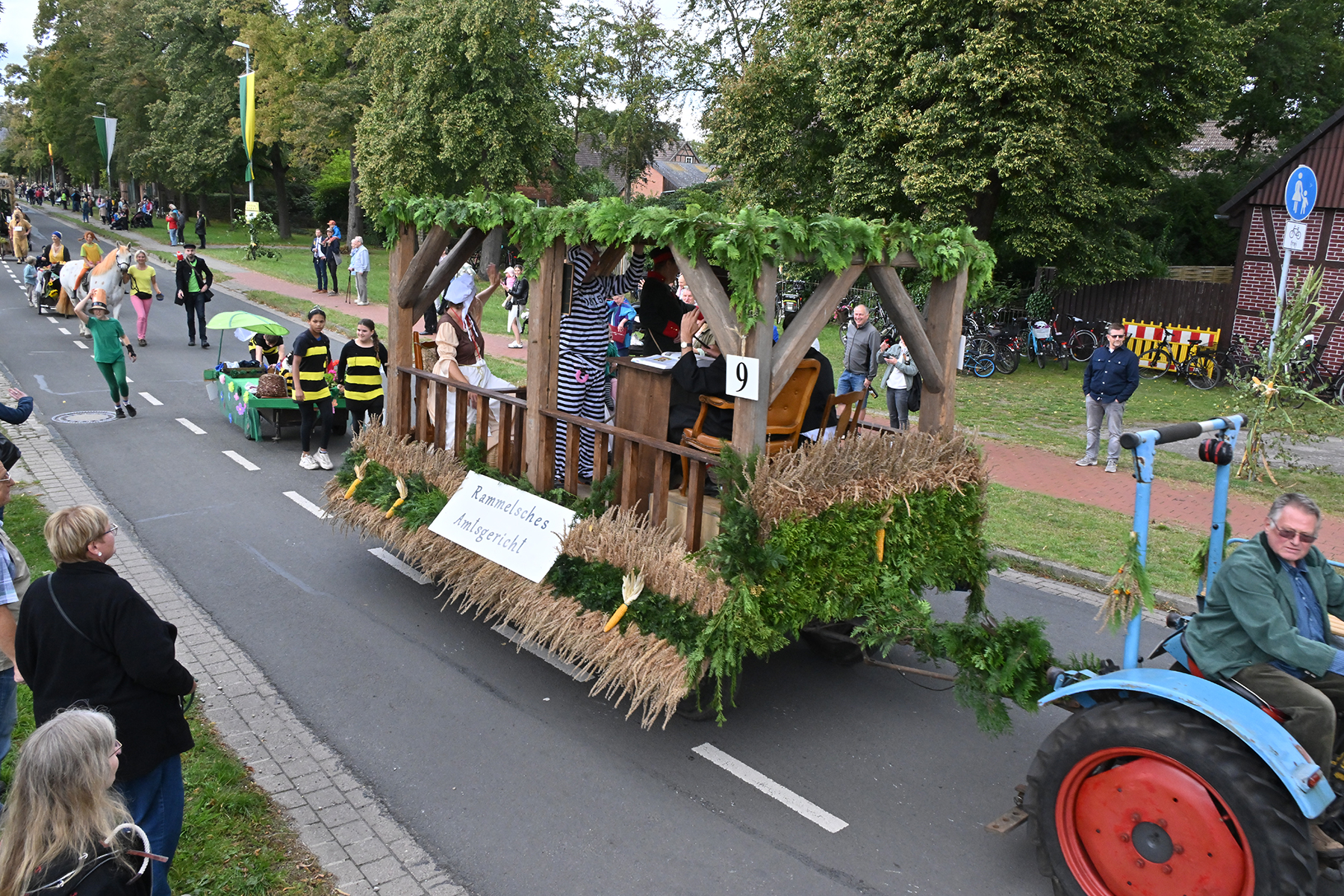 Der Festumzug, der am morgigen Sonntag erneut durch den Ort führt, hat auch in diesem Jahr wieder viele Gruppen animiert, Mottowagen für diesen zu bauen. Sind es in diesem Jahr nicht die ganz großen Erntewagen, so überzeugen alle durch viel Detailreichtum. "Wieviel Zeit, Energie und Einsatz in das Fertigen der Erntewagen gesteckt wird, ist unglaublich"; so Manfred Meyer, der in diesem Jahr aus der Dorfgemeinschaft Ramlingen verabschiedet wurde. Die achtköpfige "Dorfgemeinschaft Ramlingen" ist das Organisationsteam, das hinter dem Erntefest steht, aber auch auf viele ehrenamtliche Helfer zurückgreifen kann. Wie beispielsweise Kräfte der Ortsfeuerwehr Weferlingsen, die auch in diesem Jahr die Umzugsstrecke sicherten. "Das Fest wird es immer geben", ist sich Manfred Meyer sicher. Das sehe man an den vielen jungen Menschen, die sich am Umzug beteiligen.
