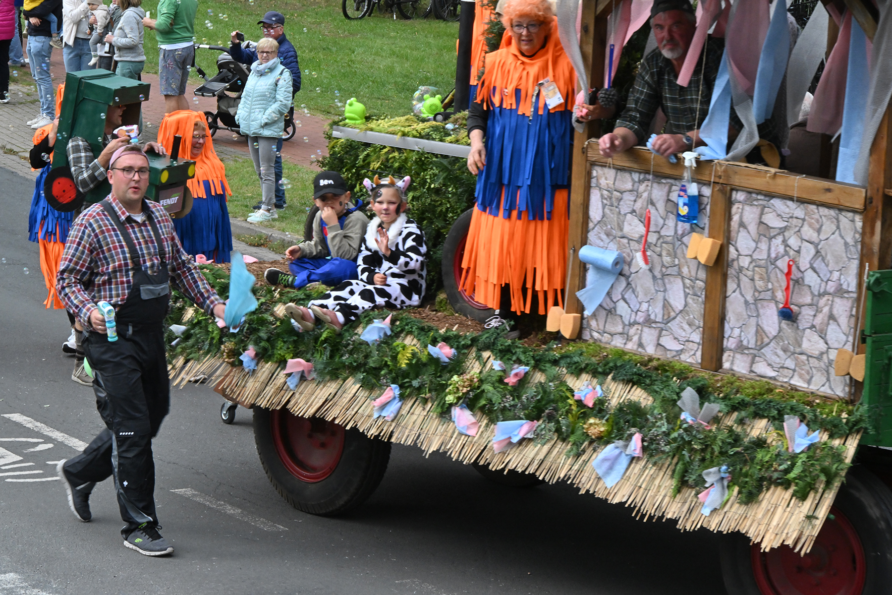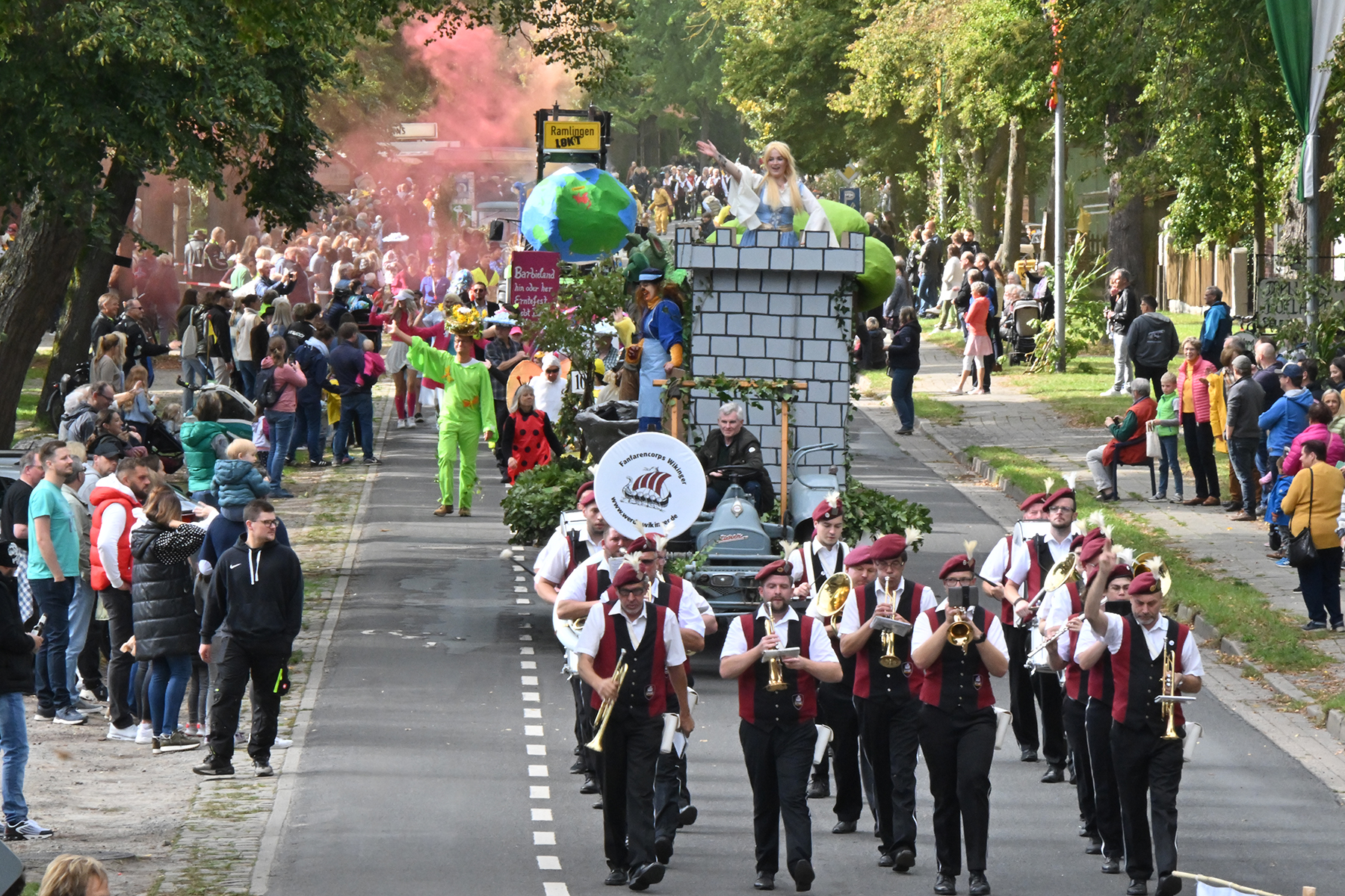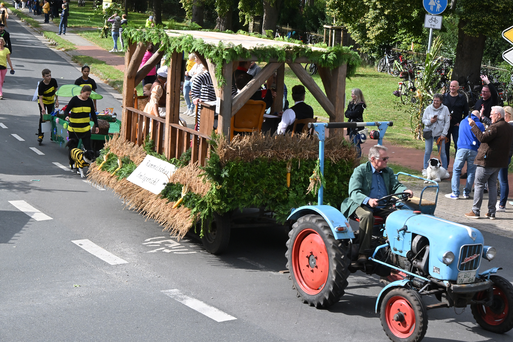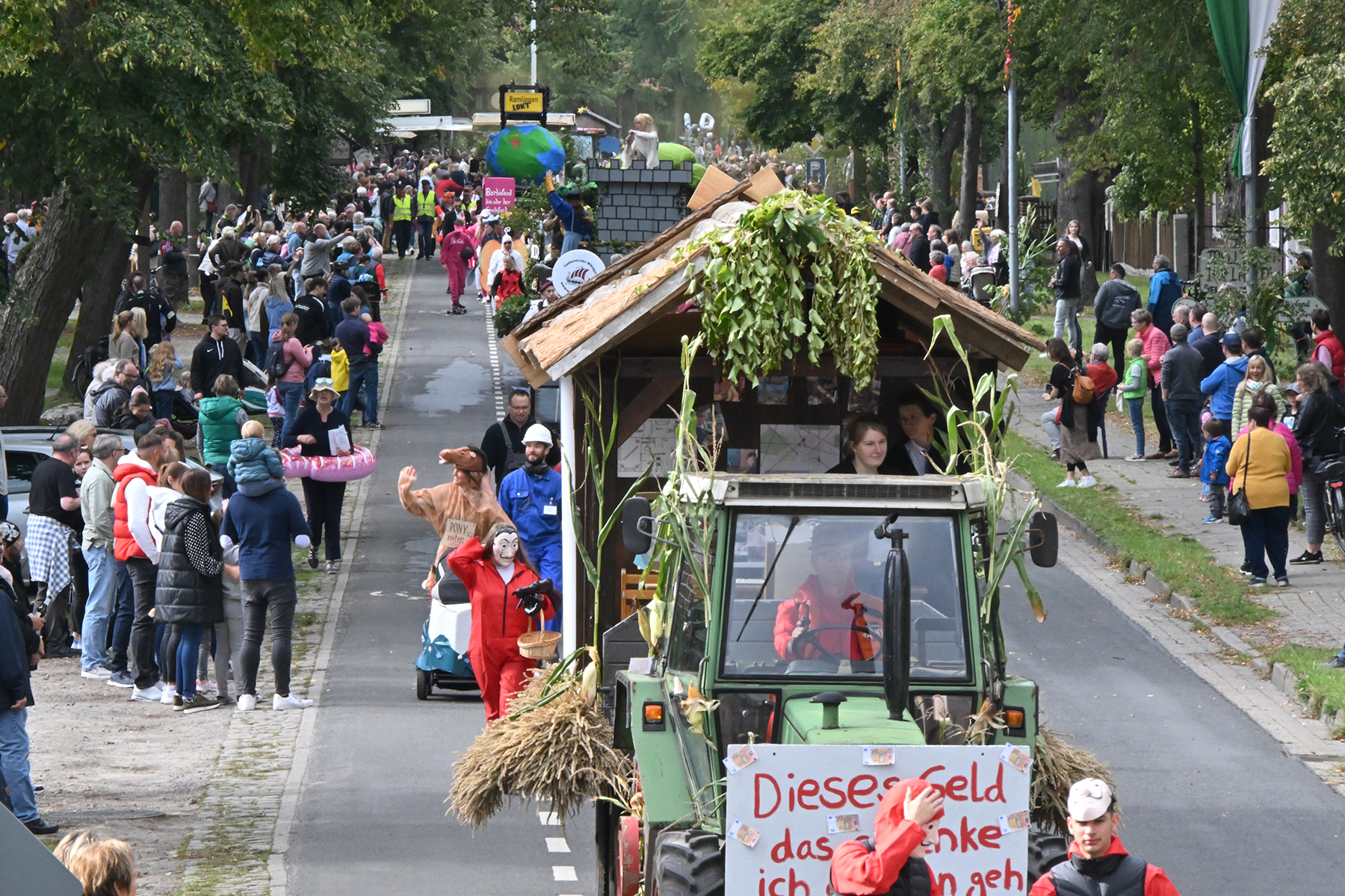 Der Festumzug, der am morgigen Sonntag erneut durch den Ort führt, hat auch in diesem Jahr wieder viele Gruppen animiert, Mottowagen für diesen zu bauen. Sind es in diesem Jahr nicht die ganz großen Erntewagen, so überzeugen alle durch viel Detailreichtum. "Wieviel Zeit, Energie und Einsatz in das Fertigen der Erntewagen gesteckt wird, ist unglaublich"; so Manfred Meyer, der in diesem Jahr aus der Dorfgemeinschaft Ramlingen verabschiedet wurde. Die achtköpfige "Dorfgemeinschaft Ramlingen" ist das Organisationsteam, das hinter dem Erntefest steht, aber auch auf viele ehrenamtliche Helfer zurückgreifen kann. Wie beispielsweise Kräfte der Ortsfeuerwehr Weferlingsen, die auch in diesem Jahr die Umzugsstrecke sicherten. "Das Fest wird es immer geben", ist sich Manfred Meyer sicher. Das sehe man an den vielen jungen Menschen, die sich am Umzug beteiligen.
