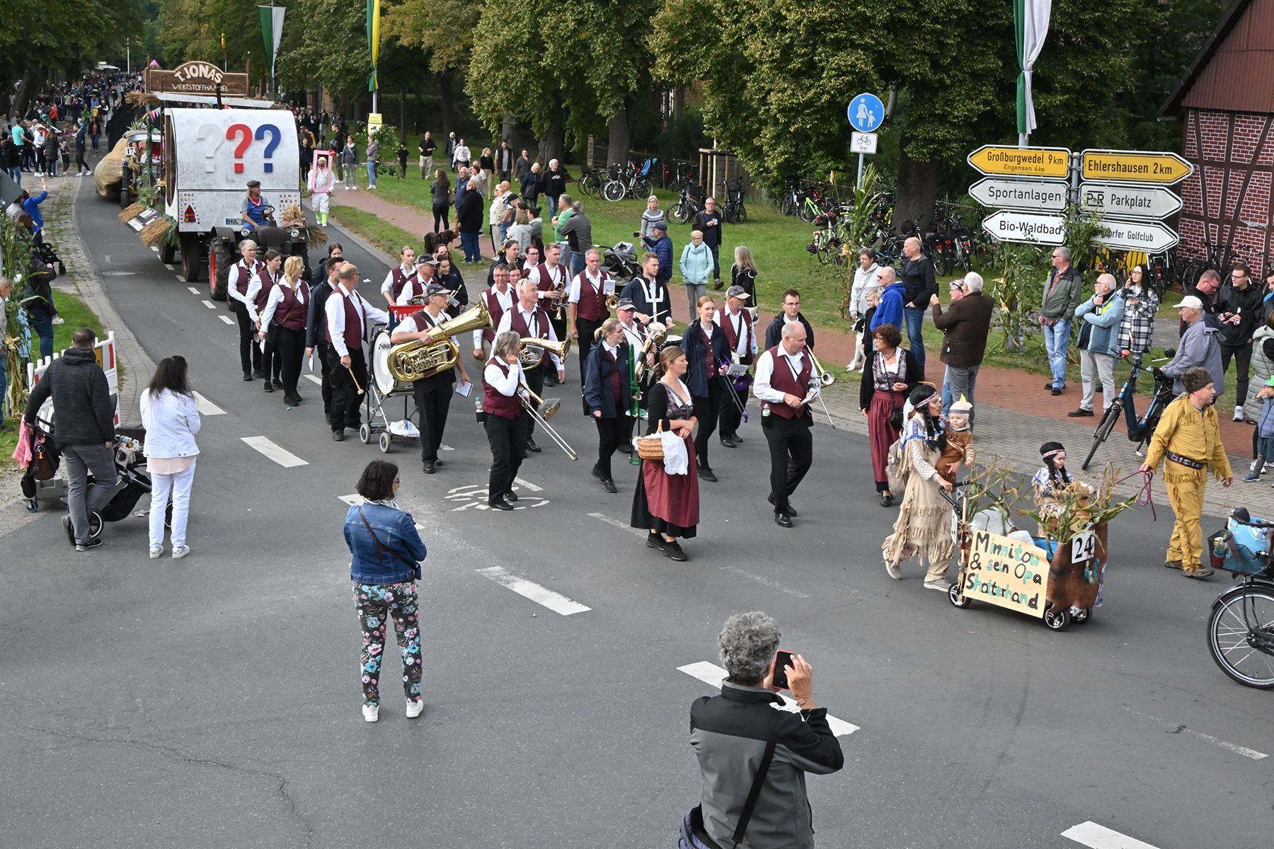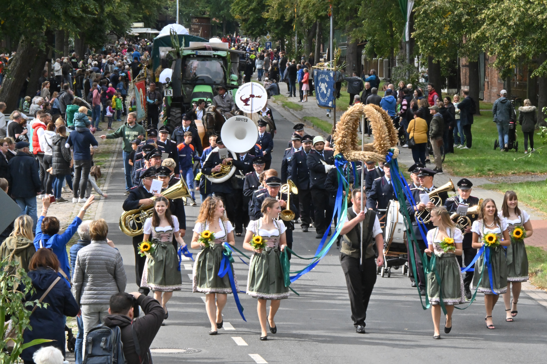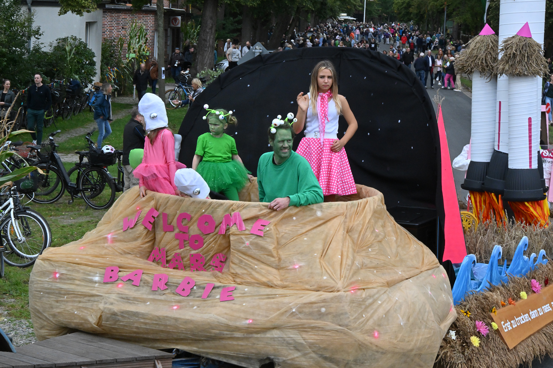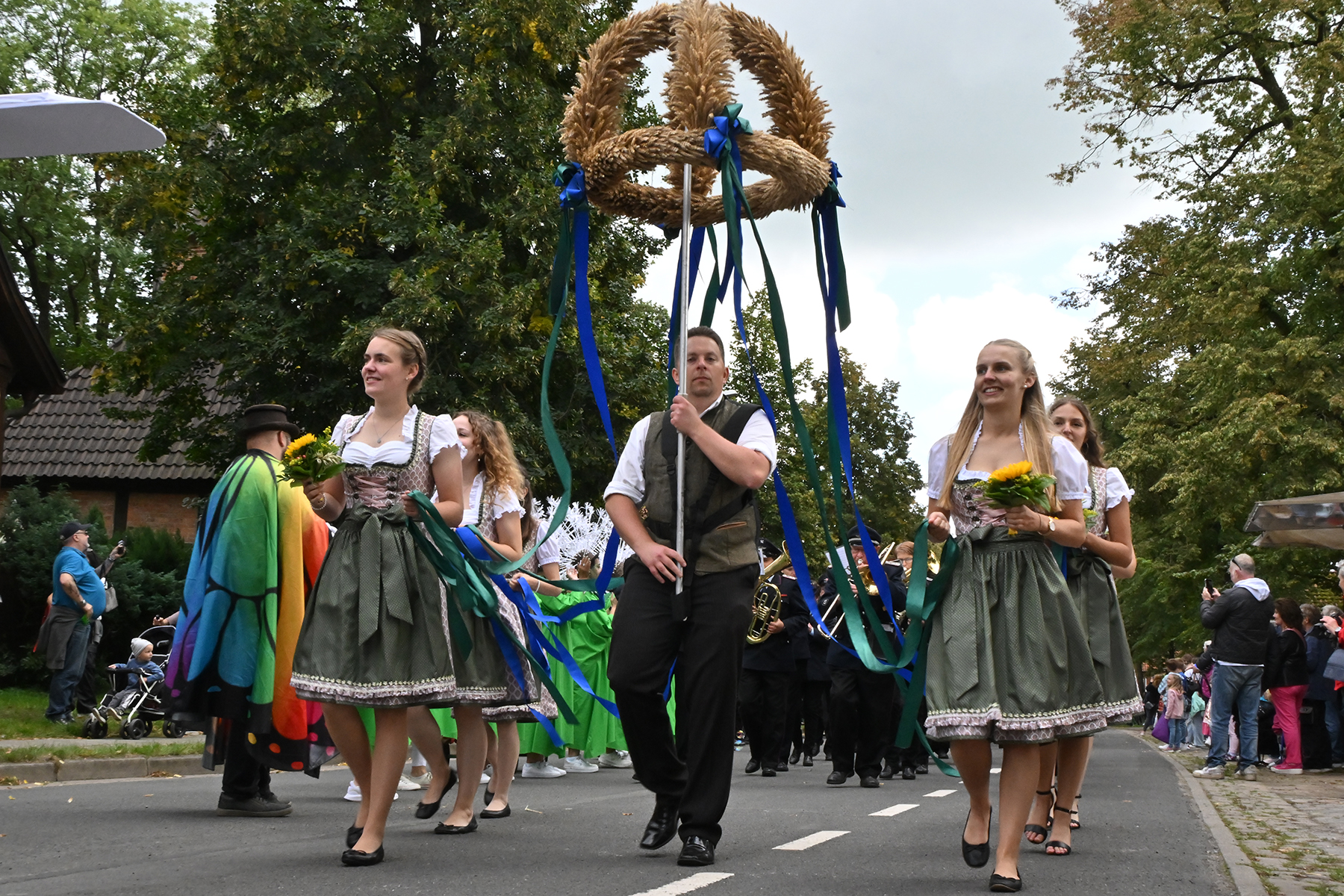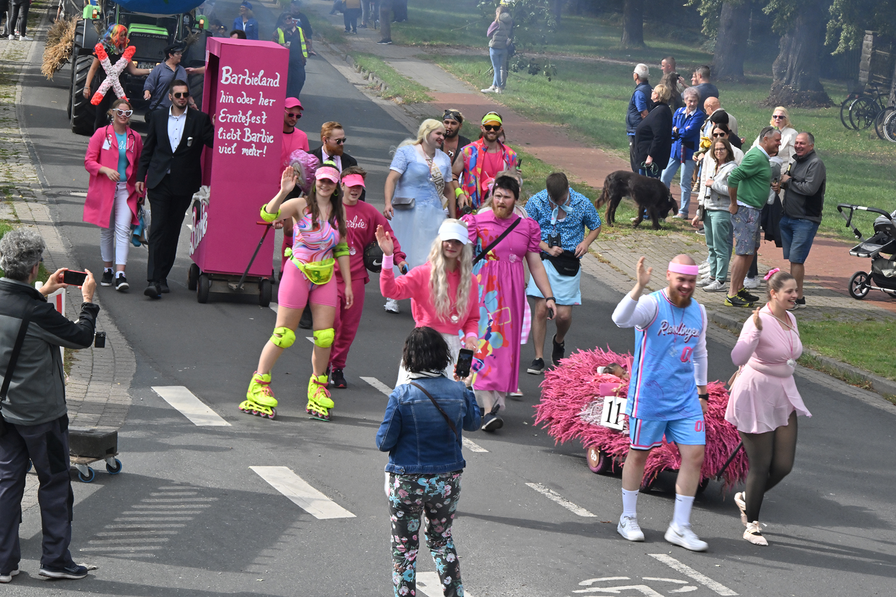 Der Festumzug, der am morgigen Sonntag erneut durch den Ort führt, hat auch in diesem Jahr wieder viele Gruppen animiert, Mottowagen für diesen zu bauen. Sind es in diesem Jahr nicht die ganz großen Erntewagen, so überzeugen alle durch viel Detailreichtum. "Wieviel Zeit, Energie und Einsatz in das Fertigen der Erntewagen gesteckt wird, ist unglaublich"; so Manfred Meyer, der in diesem Jahr aus der Dorfgemeinschaft Ramlingen verabschiedet wurde. Die achtköpfige "Dorfgemeinschaft Ramlingen" ist das Organisationsteam, das hinter dem Erntefest steht, aber auch auf viele ehrenamtliche Helfer zurückgreifen kann. Wie beispielsweise Kräfte der Ortsfeuerwehr Weferlingsen, die auch in diesem Jahr die Umzugsstrecke sicherten. "Das Fest wird es immer geben", ist sich Manfred Meyer sicher. Das sehe man an den vielen jungen Menschen, die sich am Umzug beteiligen.