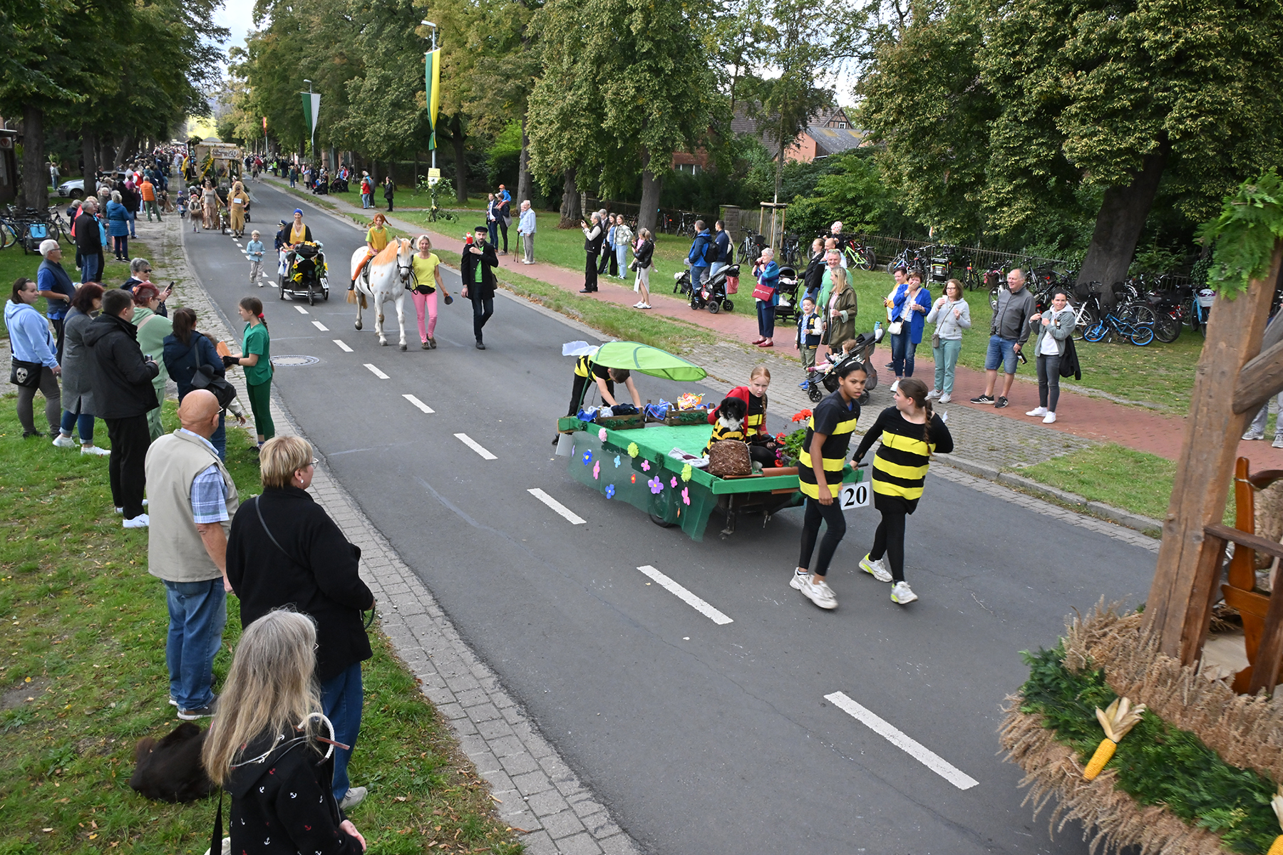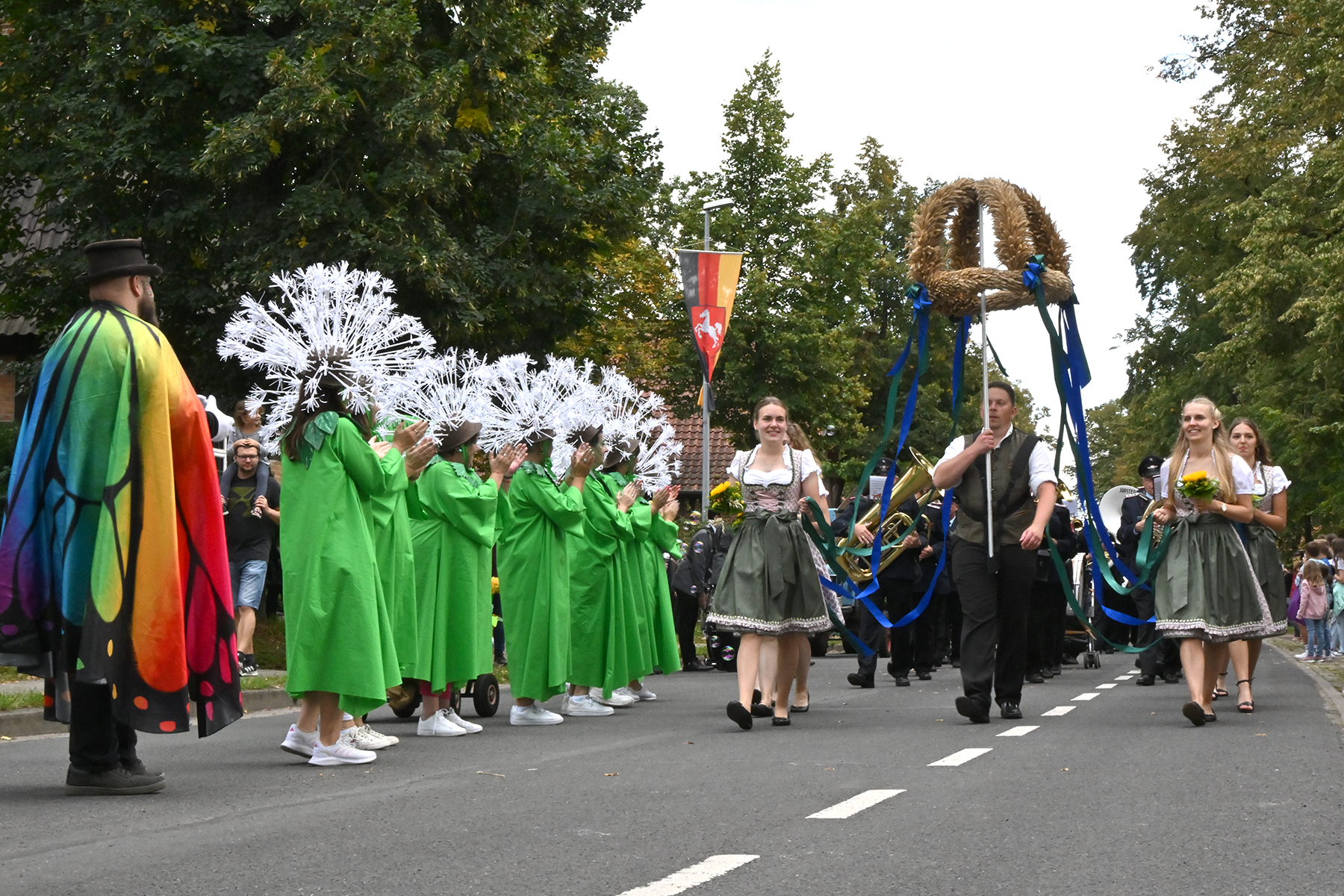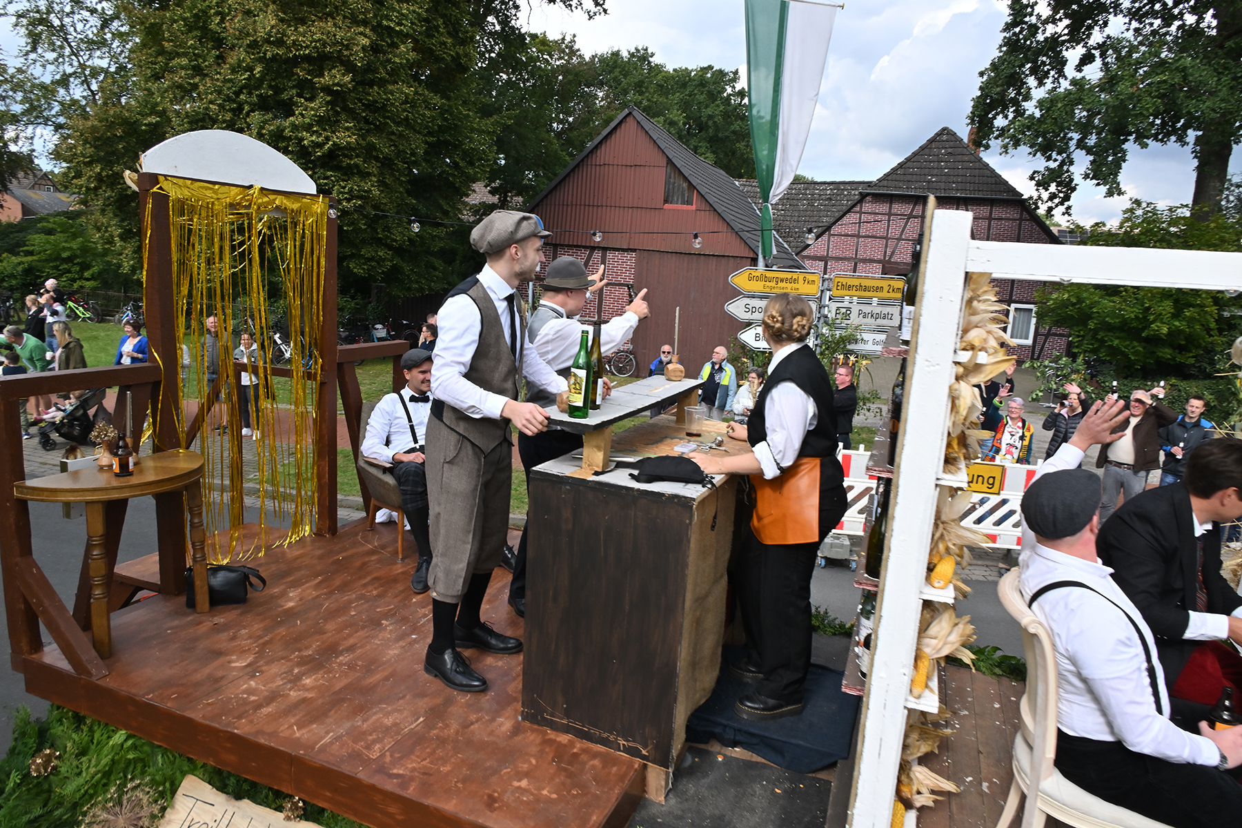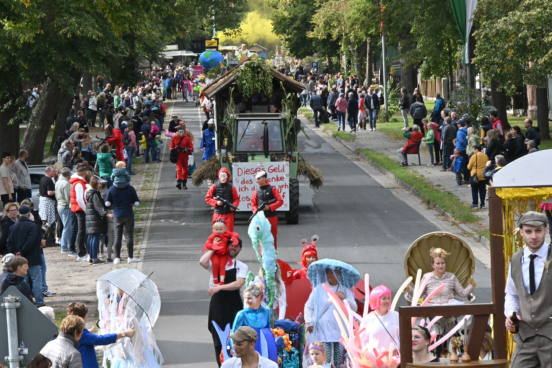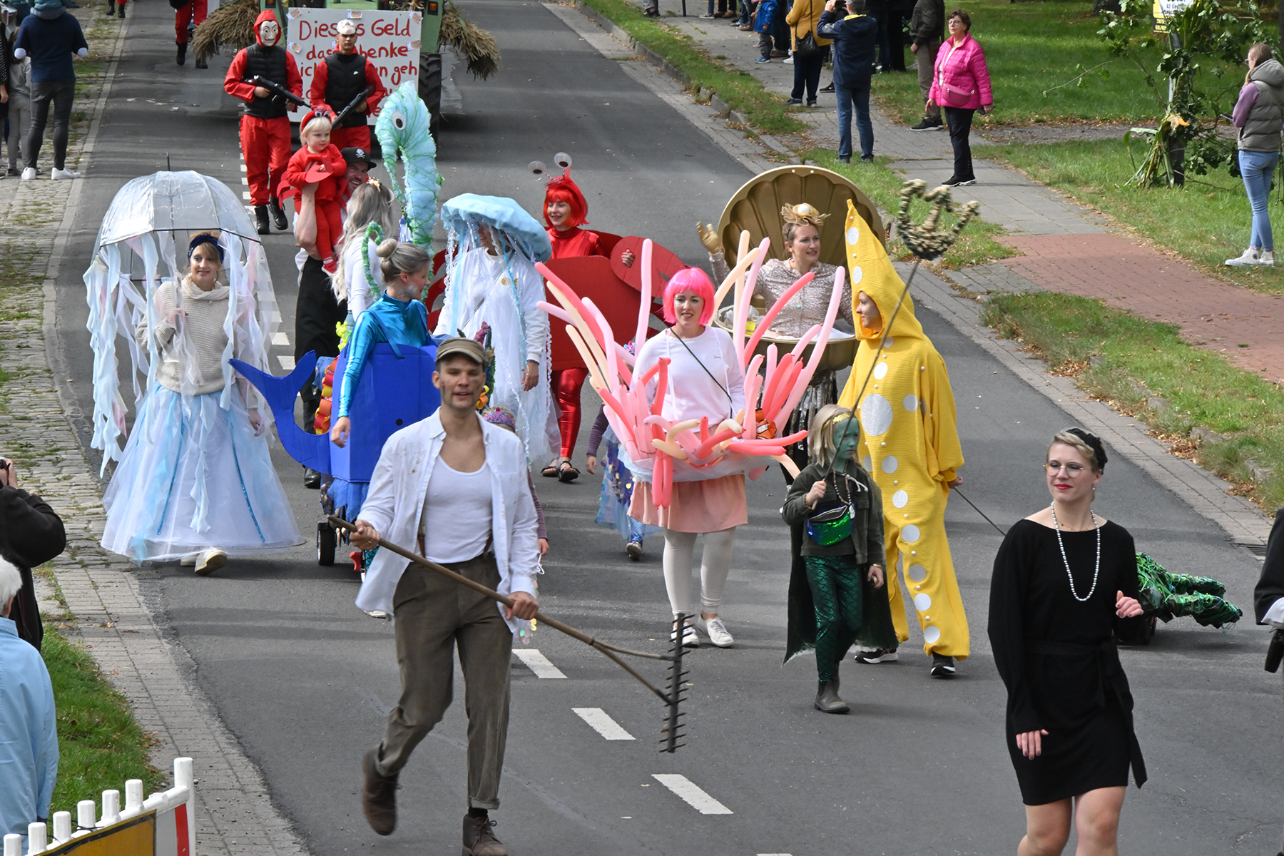 Der Festumzug, der am morgigen Sonntag erneut durch den Ort führt, hat auch in diesem Jahr wieder viele Gruppen animiert, Mottowagen für diesen zu bauen. Sind es in diesem Jahr nicht die ganz großen Erntewagen, so überzeugen alle durch viel Detailreichtum. "Wieviel Zeit, Energie und Einsatz in das Fertigen der Erntewagen gesteckt wird, ist unglaublich"; so Manfred Meyer, der in diesem Jahr aus der Dorfgemeinschaft Ramlingen verabschiedet wurde. Die achtköpfige "Dorfgemeinschaft Ramlingen" ist das Organisationsteam, das hinter dem Erntefest steht, aber auch auf viele ehrenamtliche Helfer zurückgreifen kann. Wie beispielsweise Kräfte der Ortsfeuerwehr Weferlingsen, die auch in diesem Jahr die Umzugsstrecke sicherten. "Das Fest wird es immer geben", ist sich Manfred Meyer sicher. Das sehe man an den vielen jungen Menschen, die sich am Umzug beteiligen.