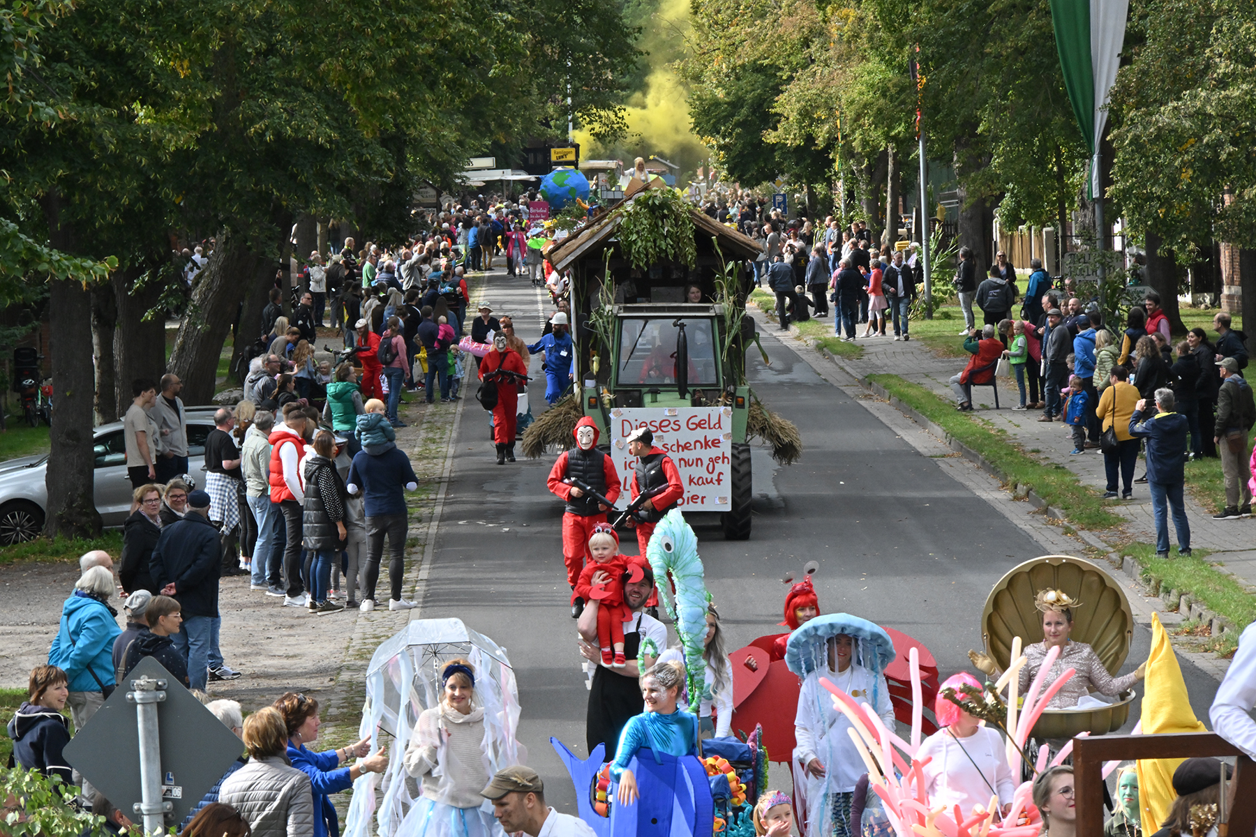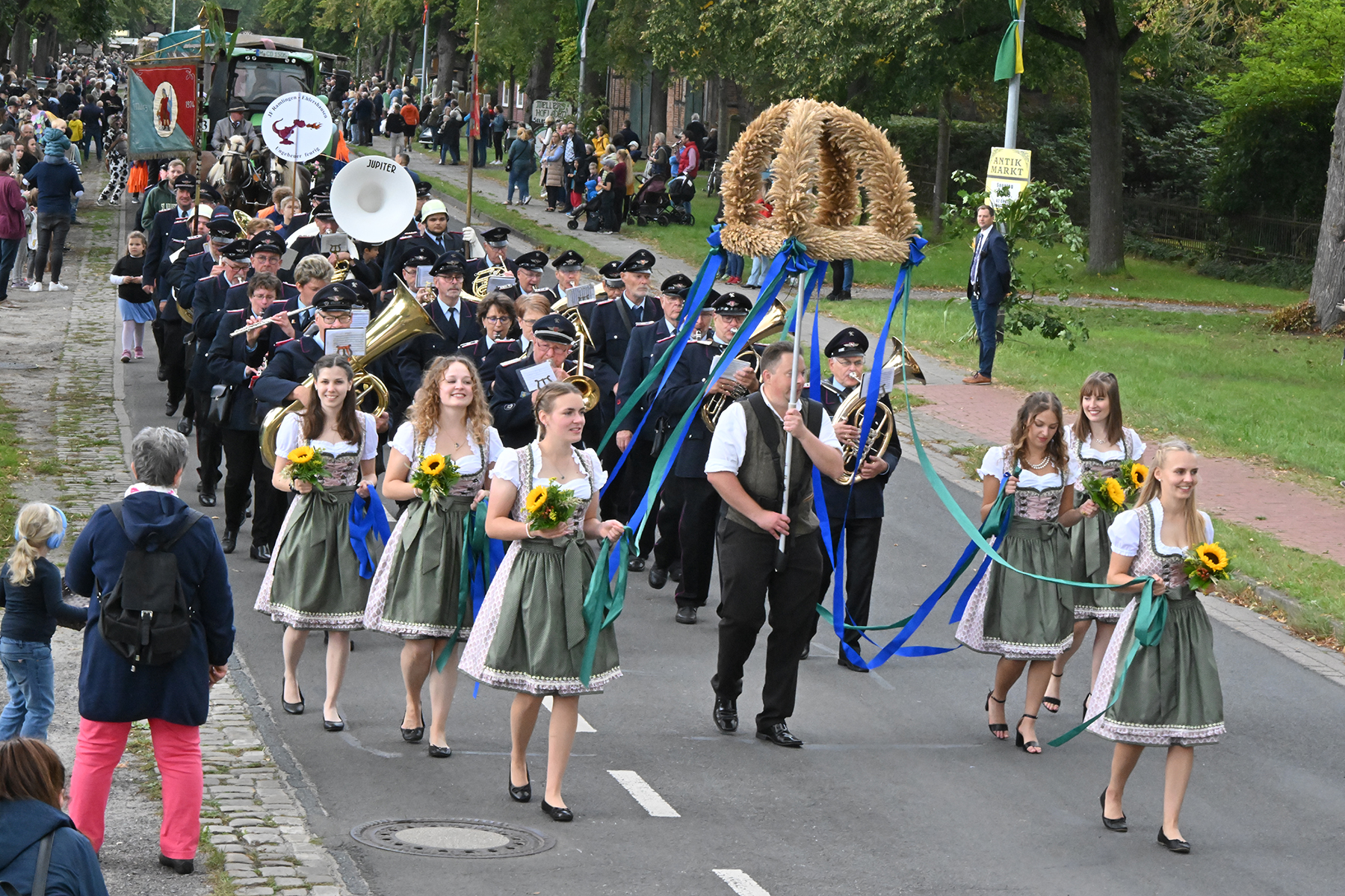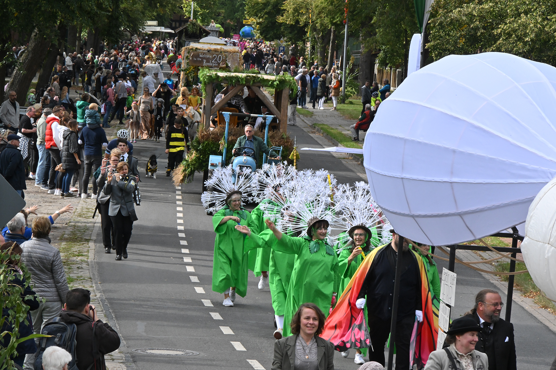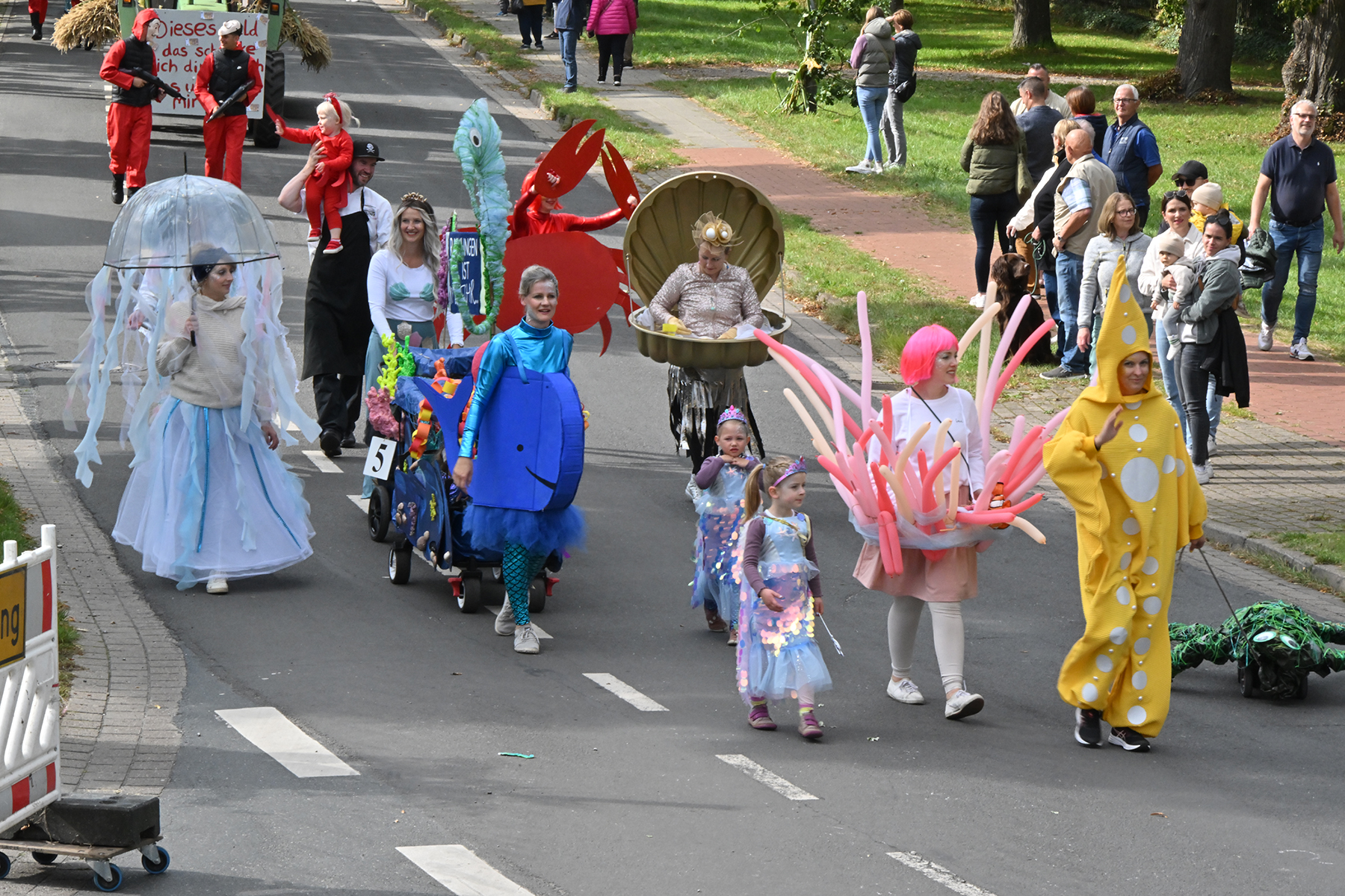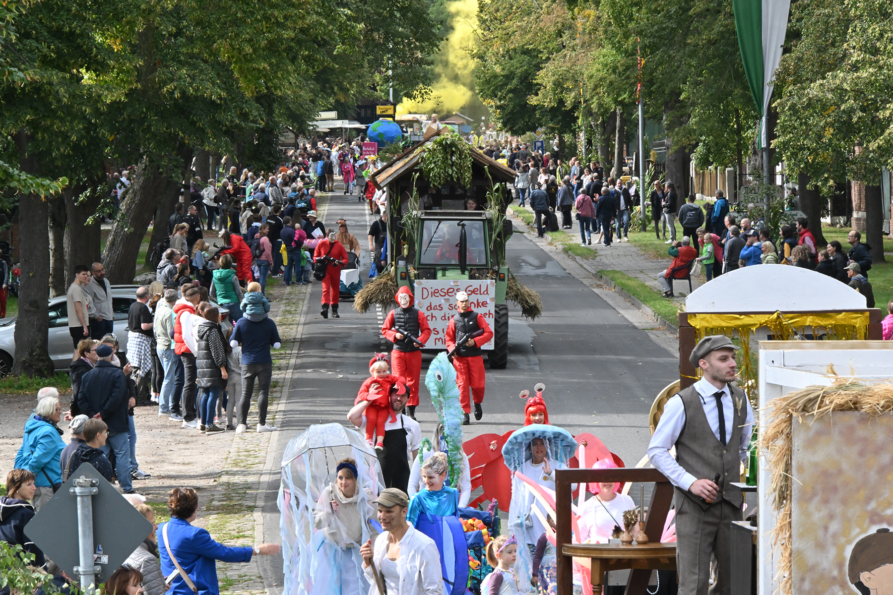 Der Festumzug, der am morgigen Sonntag erneut durch den Ort führt, hat auch in diesem Jahr wieder viele Gruppen animiert, Mottowagen für diesen zu bauen. Sind es in diesem Jahr nicht die ganz großen Erntewagen, so überzeugen alle durch viel Detailreichtum. "Wieviel Zeit, Energie und Einsatz in das Fertigen der Erntewagen gesteckt wird, ist unglaublich"; so Manfred Meyer, der in diesem Jahr aus der Dorfgemeinschaft Ramlingen verabschiedet wurde. Die achtköpfige "Dorfgemeinschaft Ramlingen" ist das Organisationsteam, das hinter dem Erntefest steht, aber auch auf viele ehrenamtliche Helfer zurückgreifen kann. Wie beispielsweise Kräfte der Ortsfeuerwehr Weferlingsen, die auch in diesem Jahr die Umzugsstrecke sicherten. "Das Fest wird es immer geben", ist sich Manfred Meyer sicher. Das sehe man an den vielen jungen Menschen, die sich am Umzug beteiligen.
