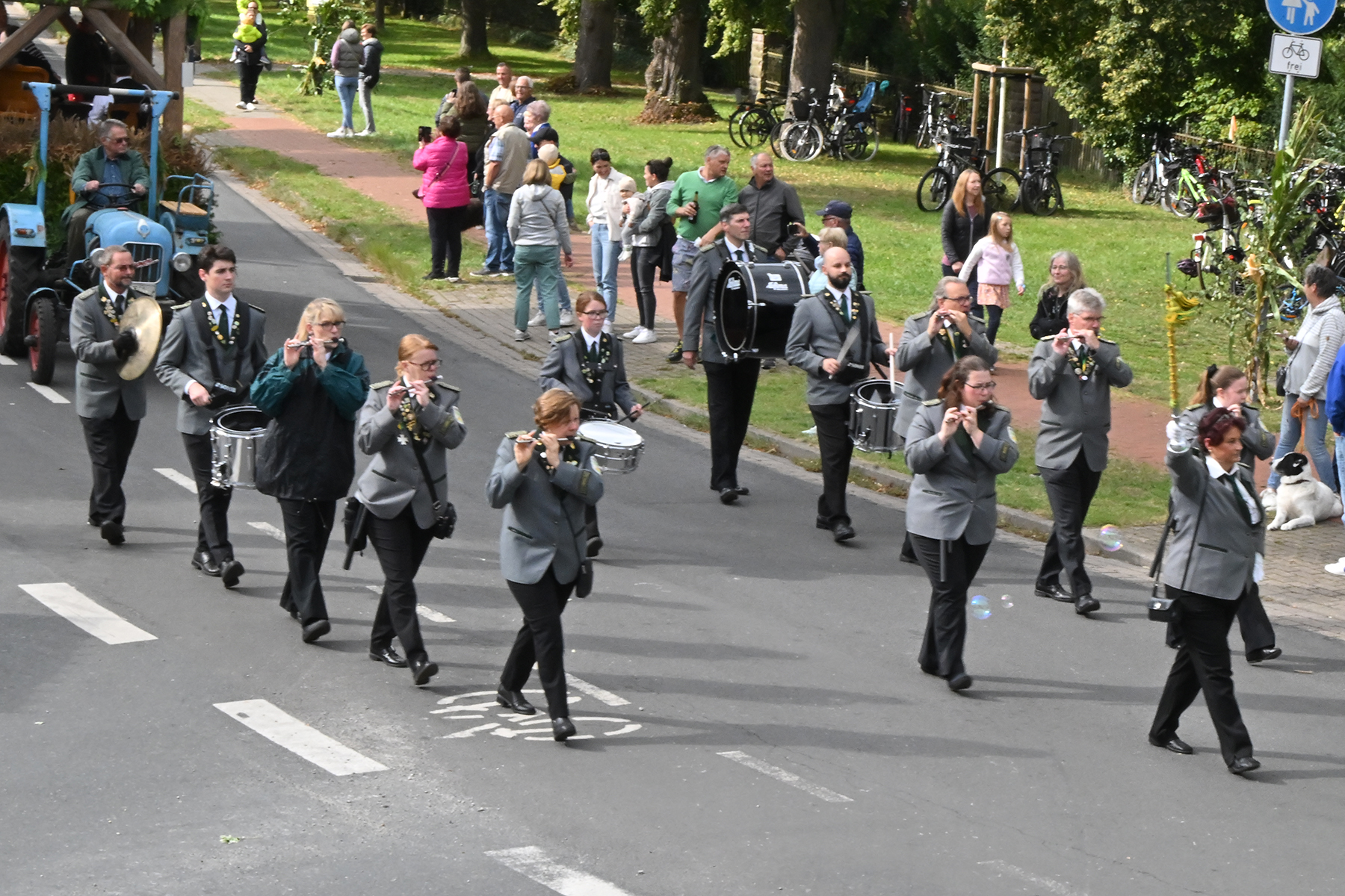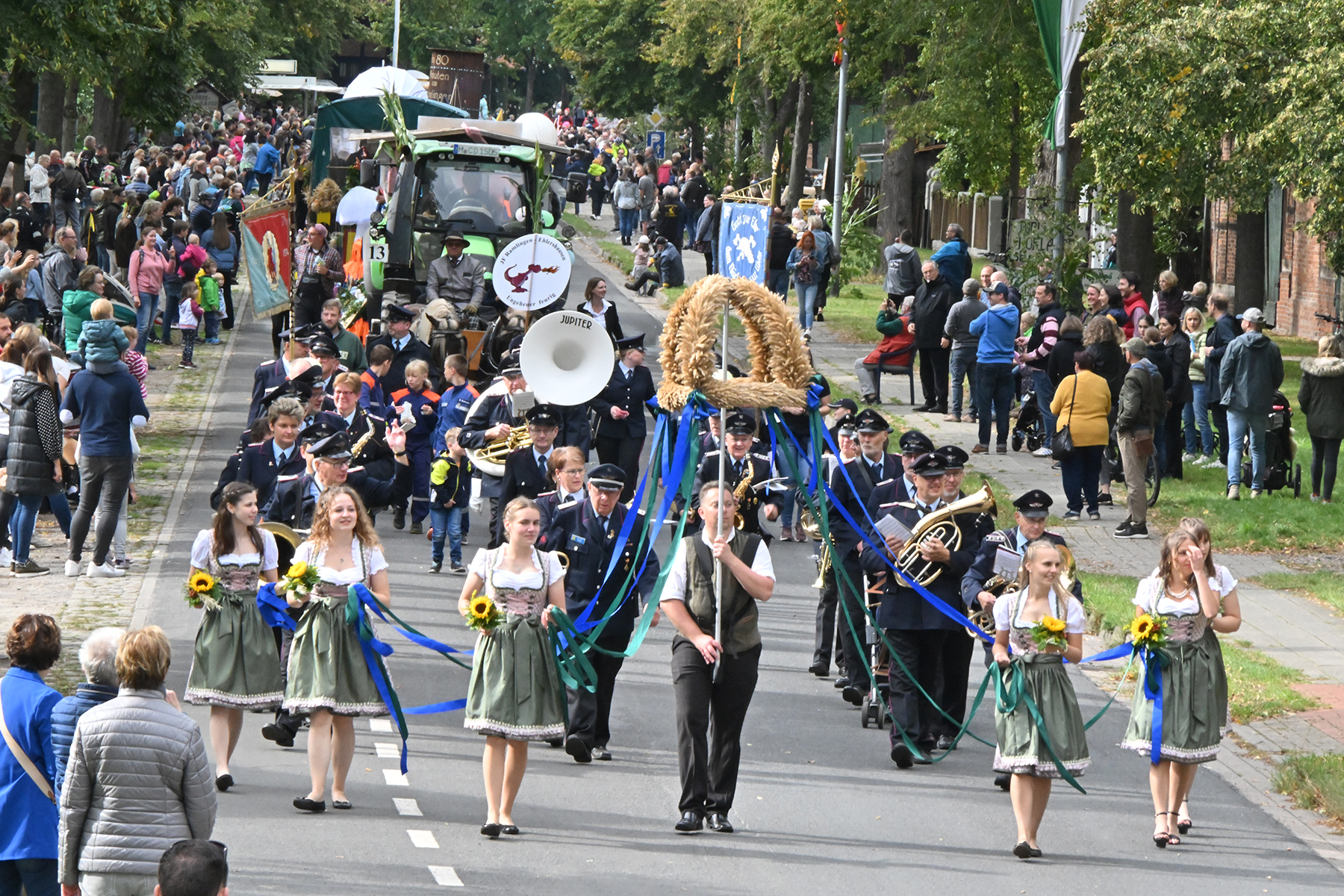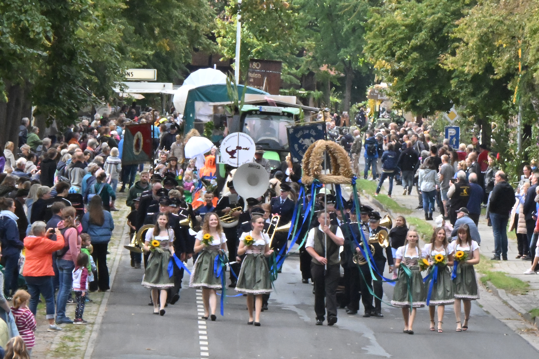 Am morgen Sonntag startet der Tag mit einem gemeinsamen Frühstück um 11 Uhr. Um 14:30 Uhr wird dann vor dem Landgasthaus Voltmer der neue König begrüßt und anschließend startet der zweite Festumzug durch den Ort. Bereist am heutigen Sonnabend hat sich eine Jury die Teilnehmer angesehen und die Wagen und Fußgruppen bewertet. In beiden Kategorien werden morgen die Sieger bekannt gegeben. Im Festzelt spielen die Musikzüge noch einmal auf und es wird zu Kaffee und Kuchen eingeladen. Um 20 Uhr beginnt dann der zweite Ernteball.