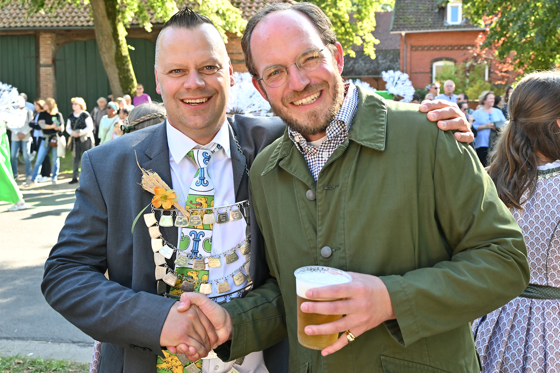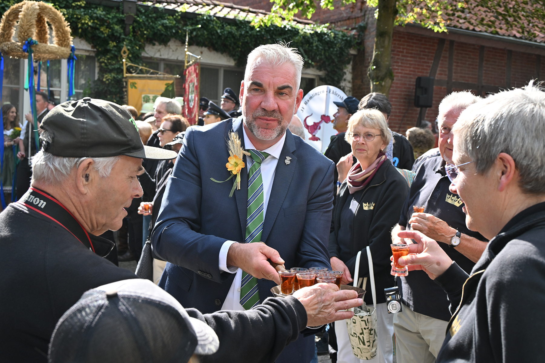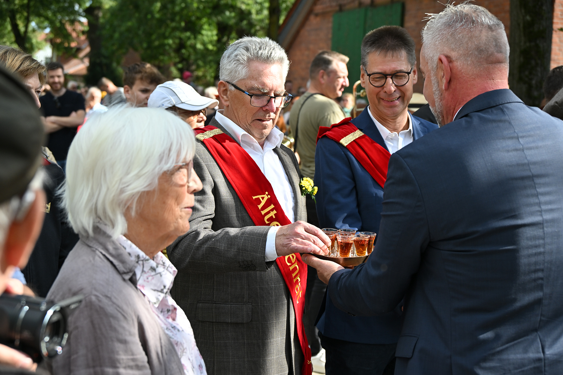 "Es gibt in diesem Jahr wieder viele schöne Wagen und Fußgruppen. Wir sind stolz darauf, dass wir es schaffen, die ganze Straße durch das Dorf mit Wagen und Fußgruppen zu füllen", so Timo Wöhler, Sprecher der Dorfgemeinschaft. Zu den Besuchern gehörte auch Burgdorfs Bürgermeister Armin Pollehn, der zusammen mit den Mitgliedern des Ortsrates und den ehemaligen Königen einen Rammlinger trank, der mit den Worten "Von de Panne, up de Panne" ausgeschenkt wurde.