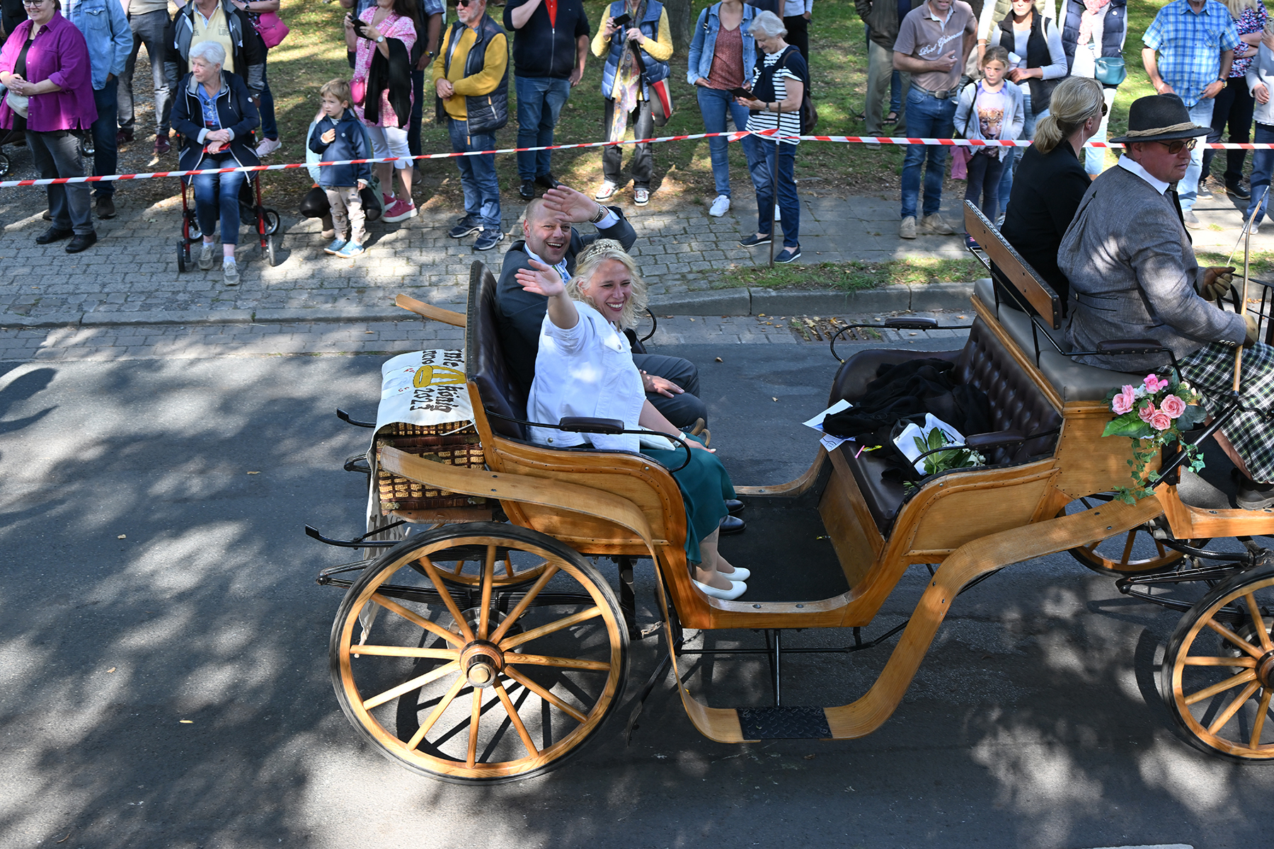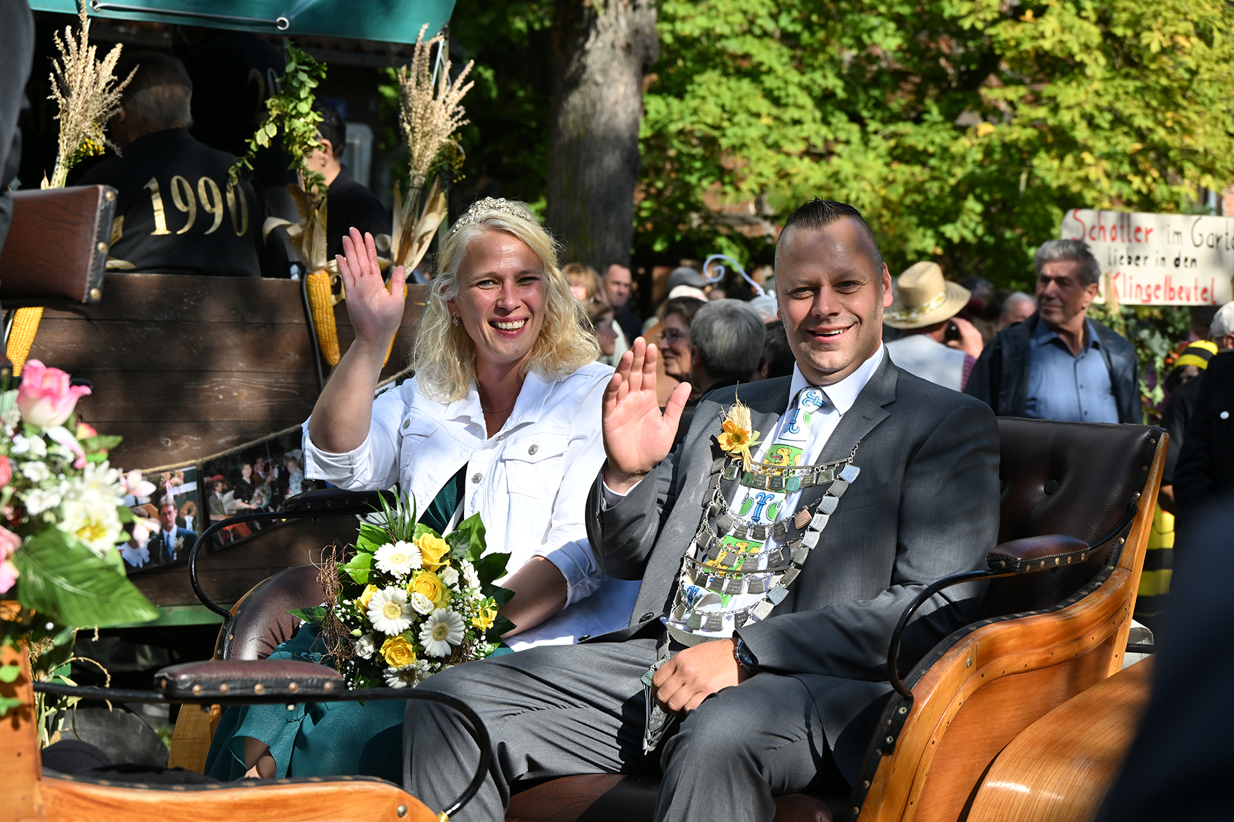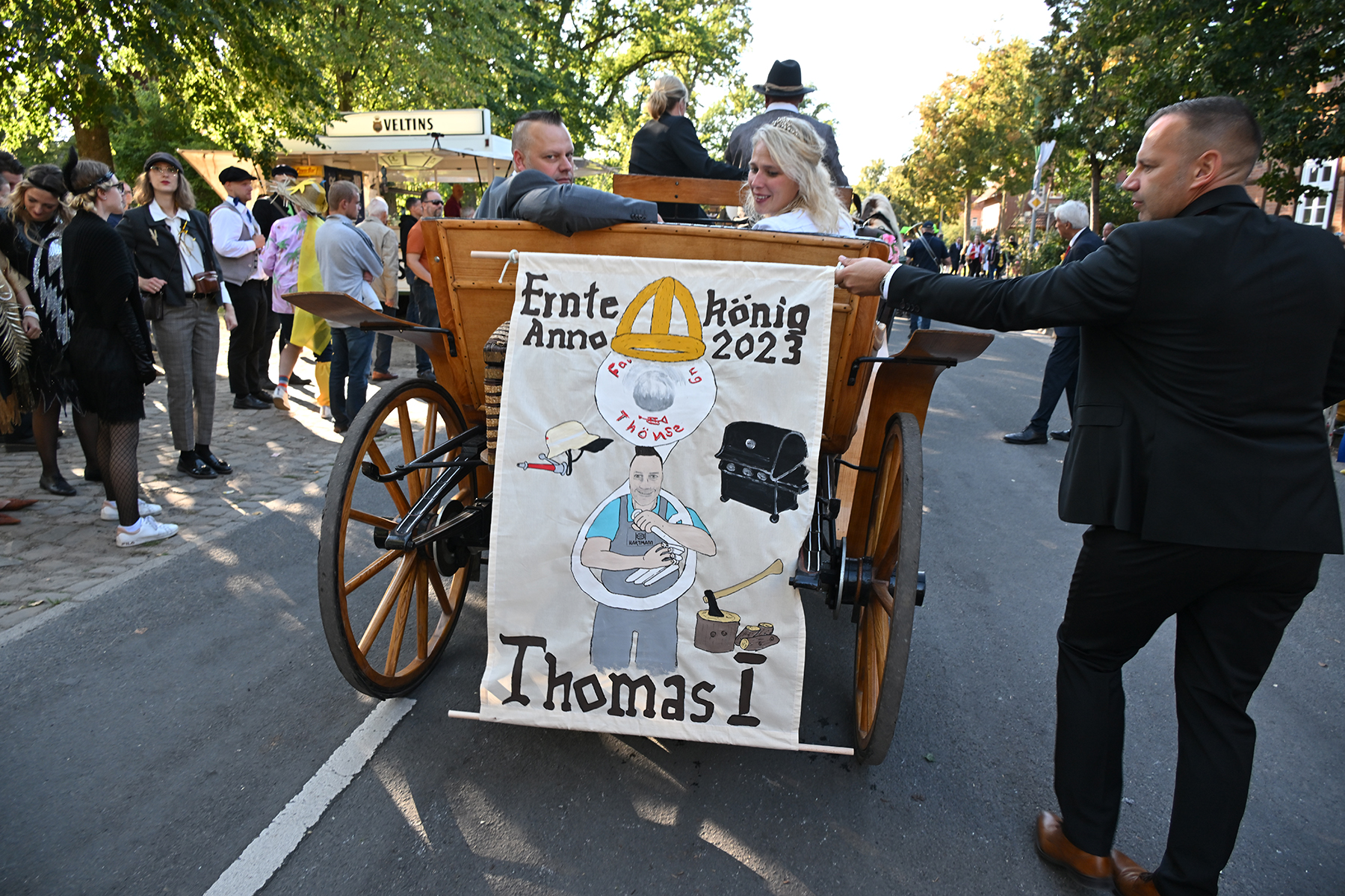Vor dem Umzug wurde den Gästen aus nah und fern noch einmal der neue Erntekönig vorgestellt. Thomas Wöhler, nun Thomas I, mit seiner Steffi. "Mir fehlen die Worte", ließ Ortsbürgermeister Wolfram Nolte die Gäste wissen. "Es ist unglaublich, was ihr hier auf die Beine gestellt hab und was ihr hin in Ramlingen bewegt", rief er den Teilnehmern des Umzugs zu. "Ich liebe es und ich bin stolz auf den Ort. Großer Dank an die Dorfgemeinschaft", so der Ortsbürgermeister.