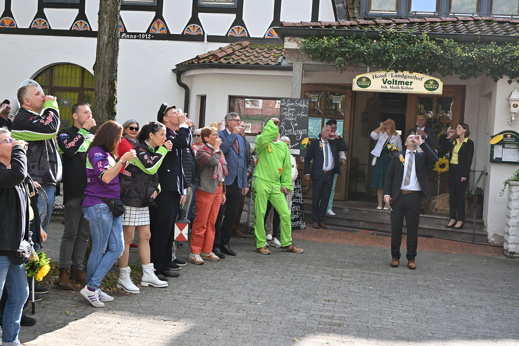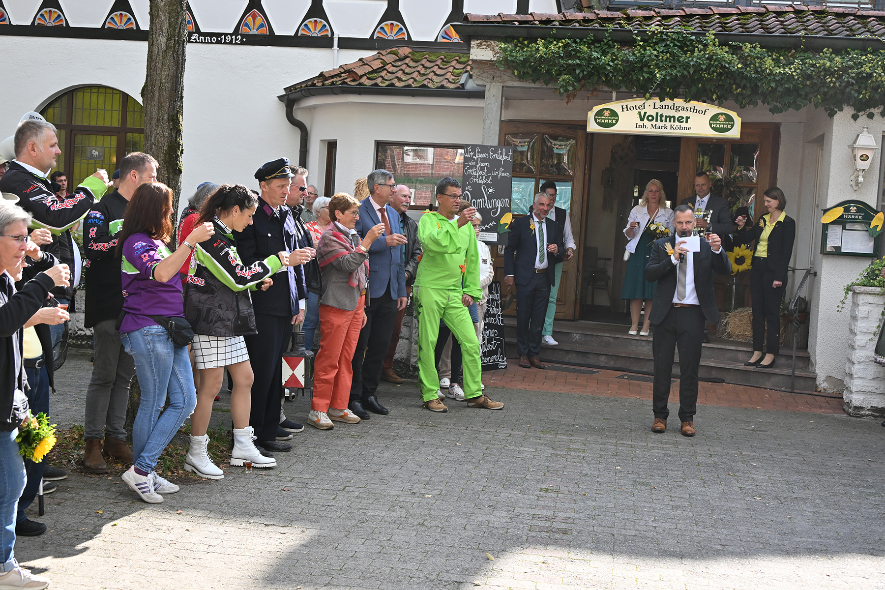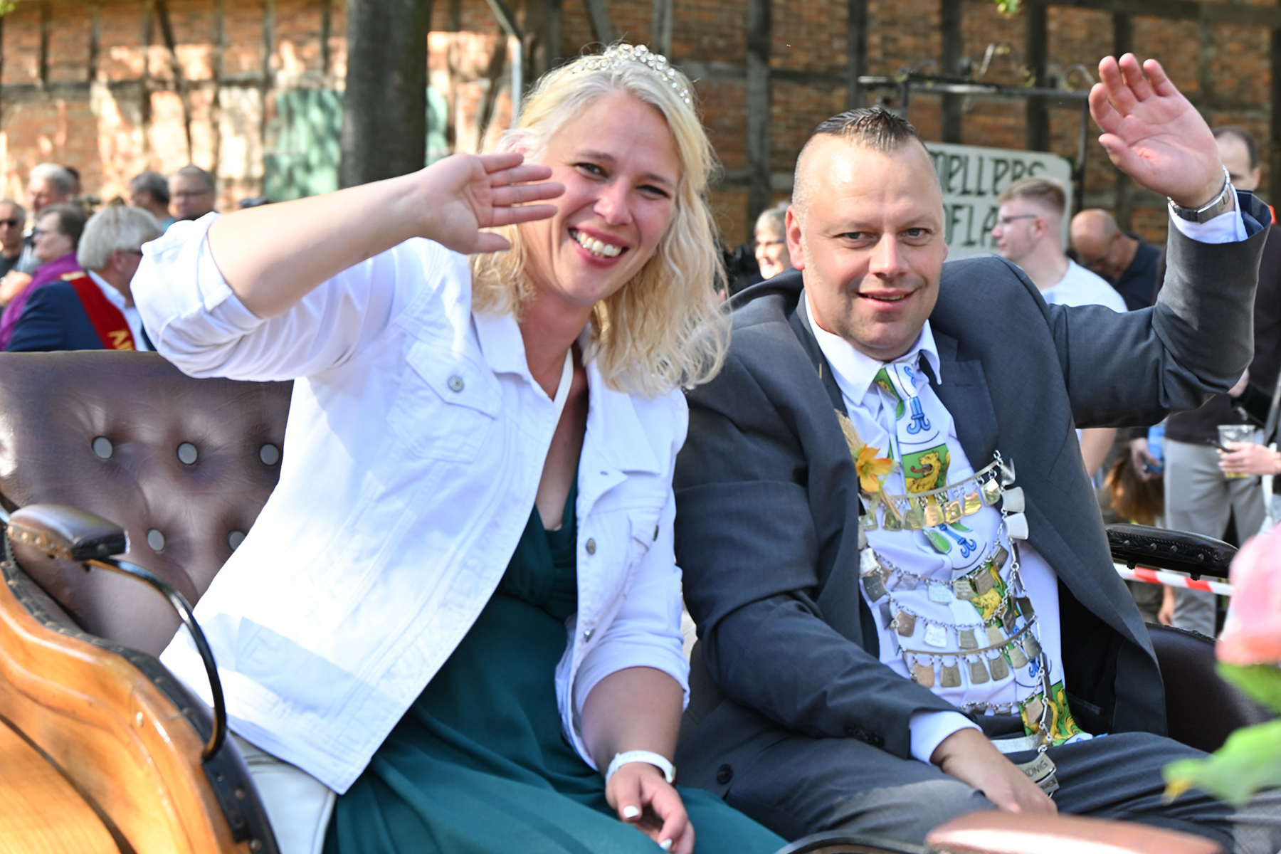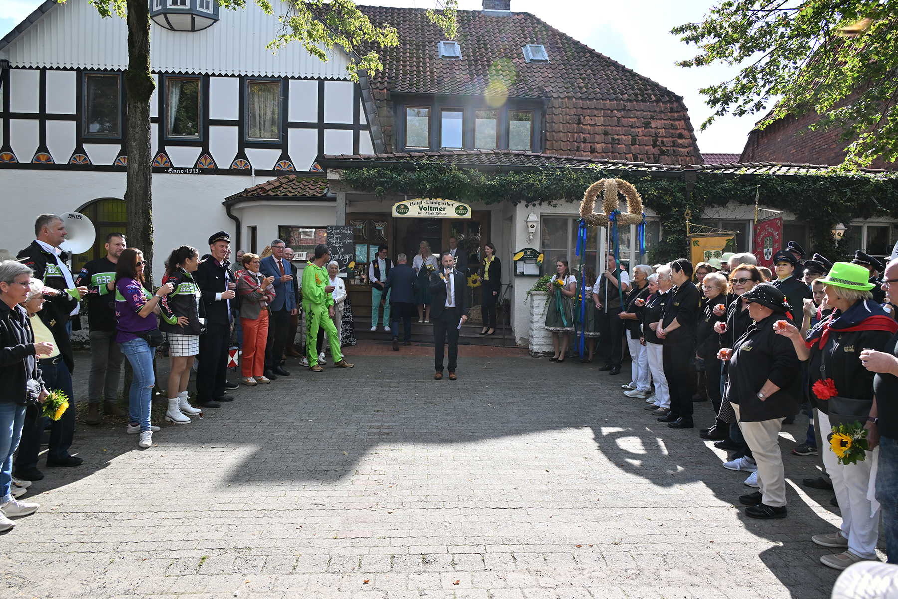 Vor dem Umzug wurde den Gästen aus nah und fern noch einmal der neue Erntekönig vorgestellt. Thomas Wöhler, nun Thomas I, mit seiner Steffi. "Mir fehlen die Worte", ließ Ortsbürgermeister Wolfram Nolte die Gäste wissen. "Es ist unglaublich, was ihr hier auf die Beine gestellt hab und was ihr hin in Ramlingen bewegt", rief er den Teilnehmern des Umzugs zu. "Ich liebe es und ich bin stolz auf den Ort. Großer Dank an die Dorfgemeinschaft", so der Ortsbürgermeister.