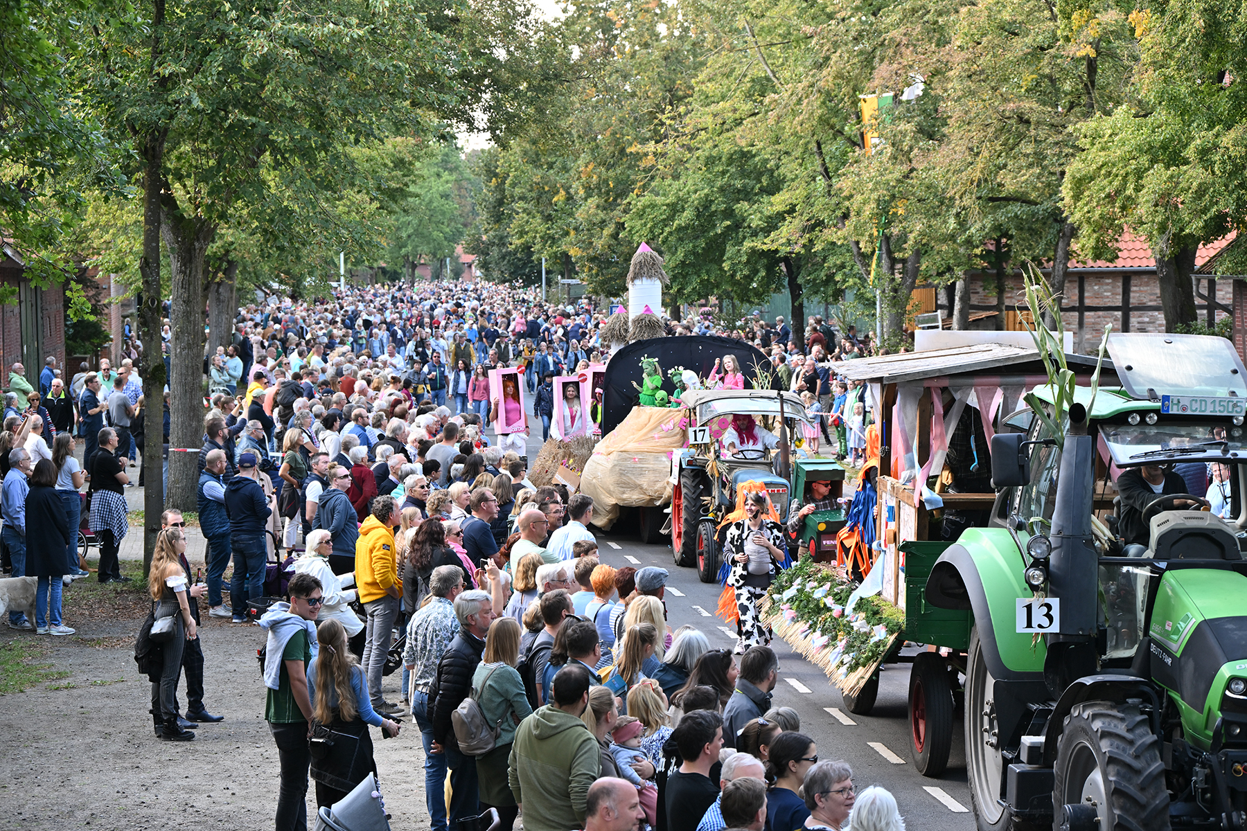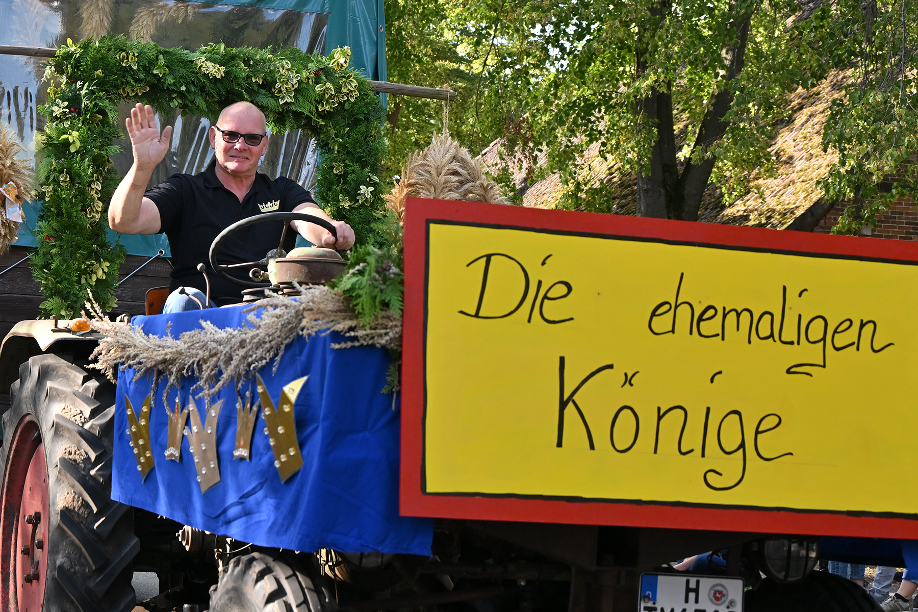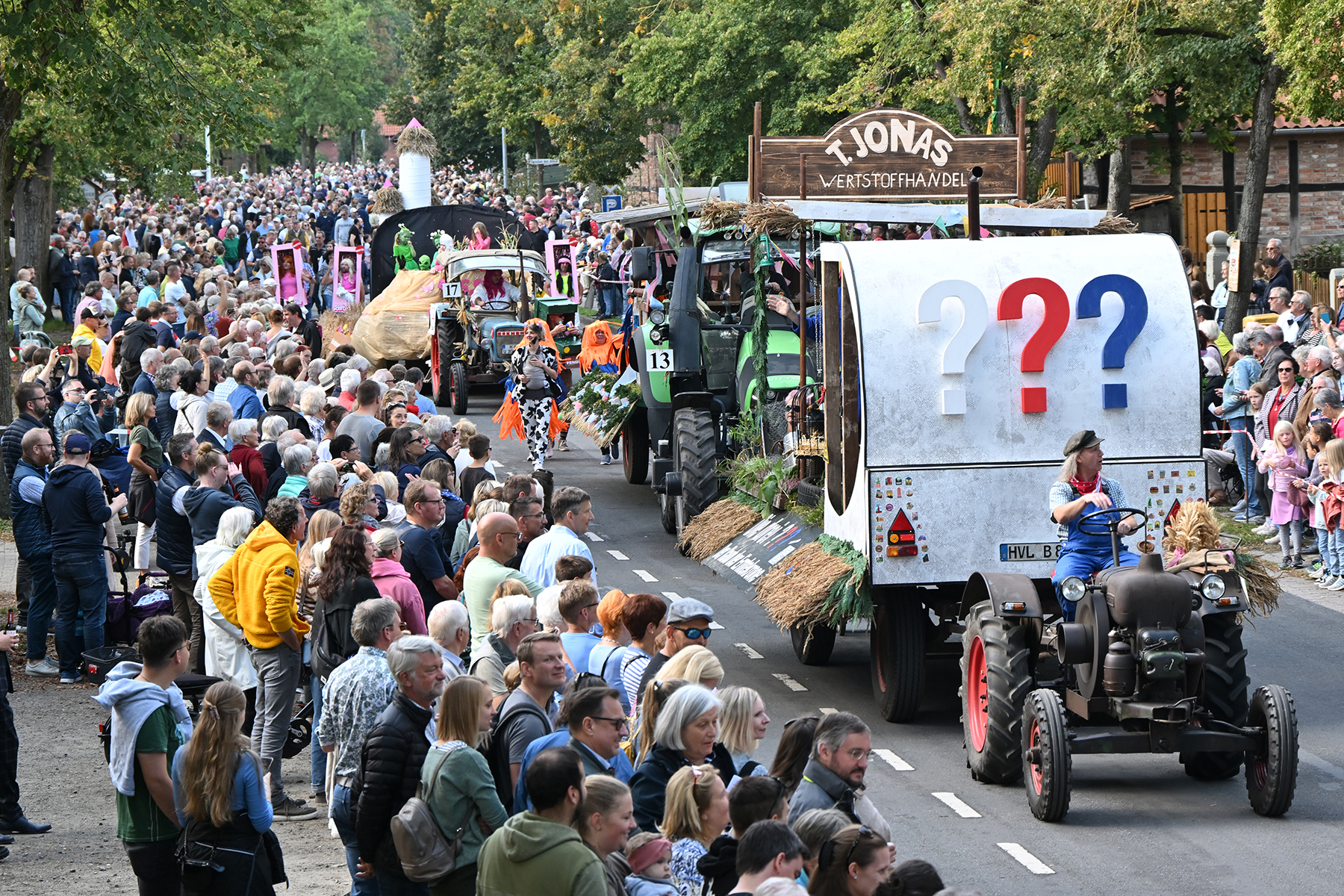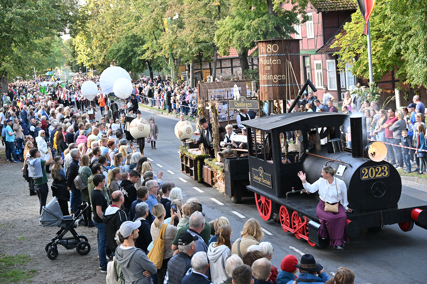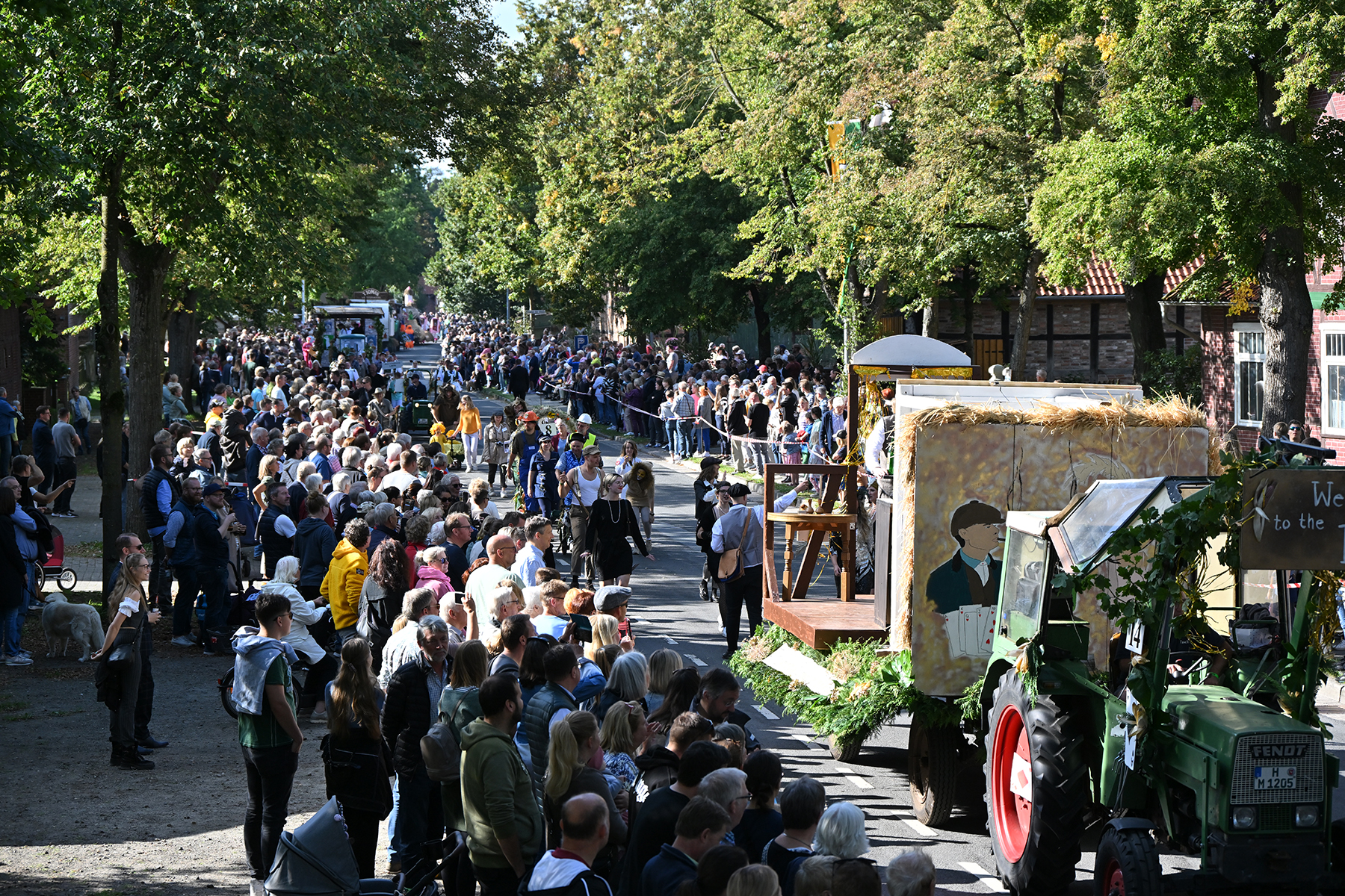 Königswetter beim großen Festumzug im Dorf der Könige: Am heutigen Sonntag, 24. September 2023, war der Burgdorfer Ortsteil Ramlingen der Mittelpunkt der Region. 27 Erntewagen und Fußgruppen machten sich zum Erntefest auf den Weg durch den Ort. Mit geschätzten 4000 Besuchern waren die Grüne Allee und der Festplatz von so vielen Besuchern gesäumt wie noch nie.