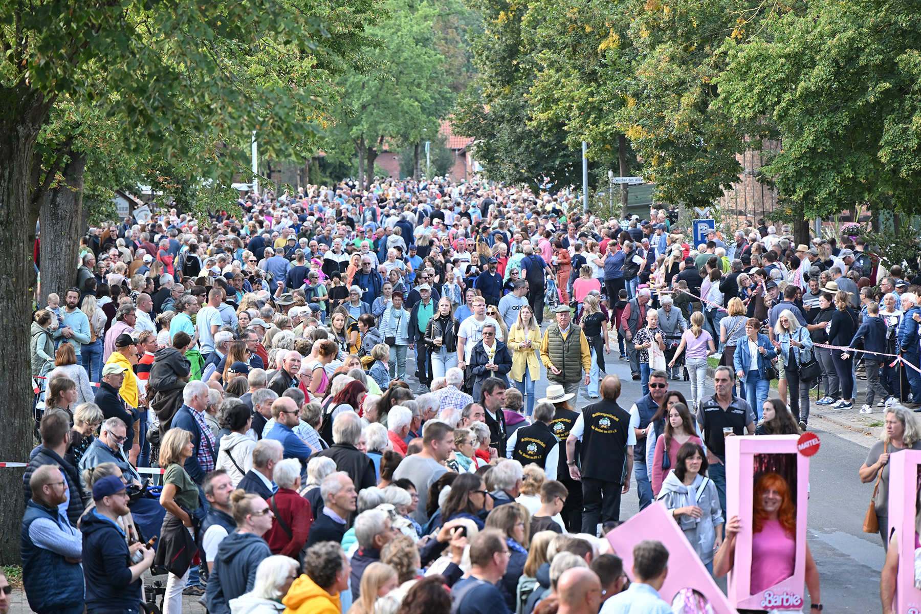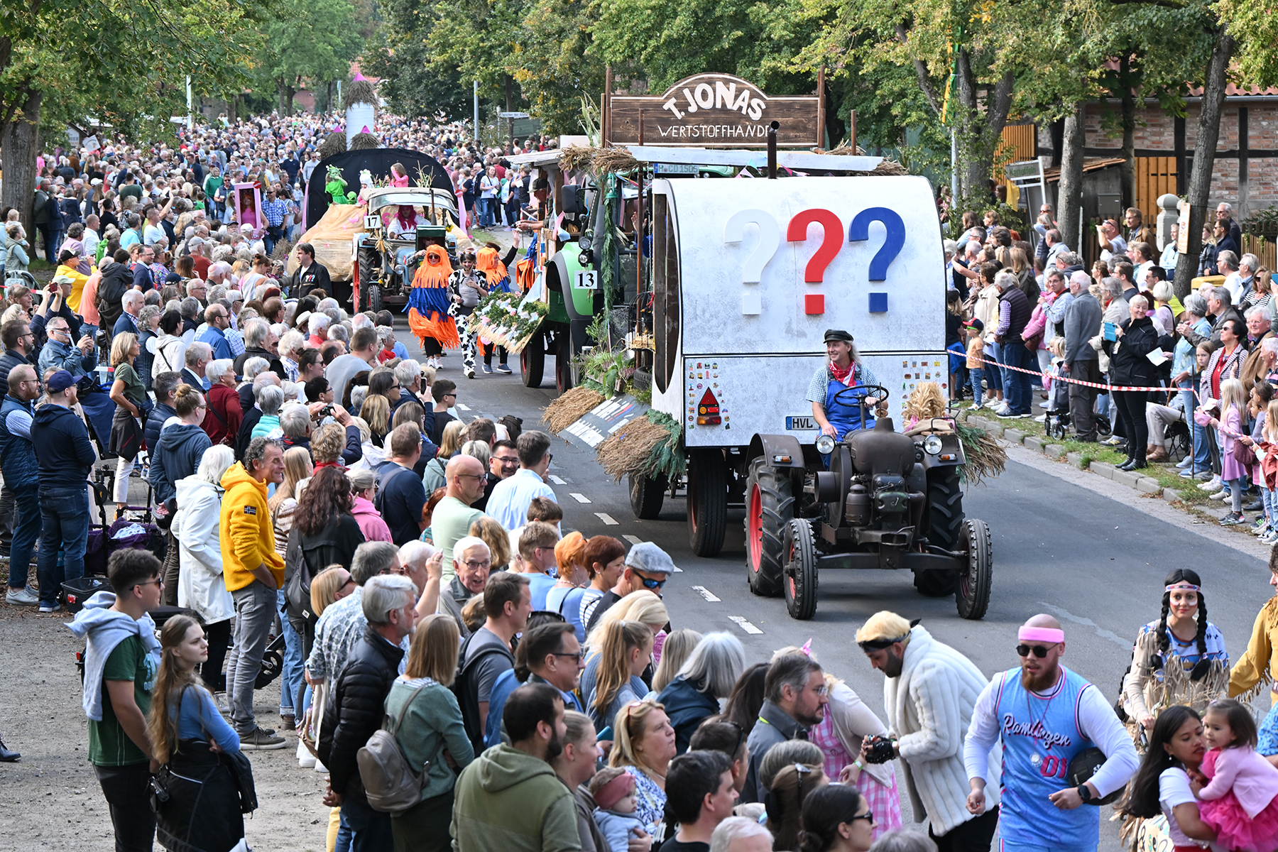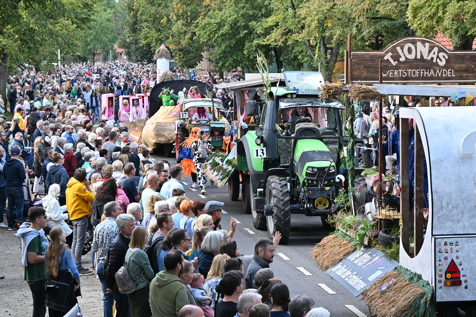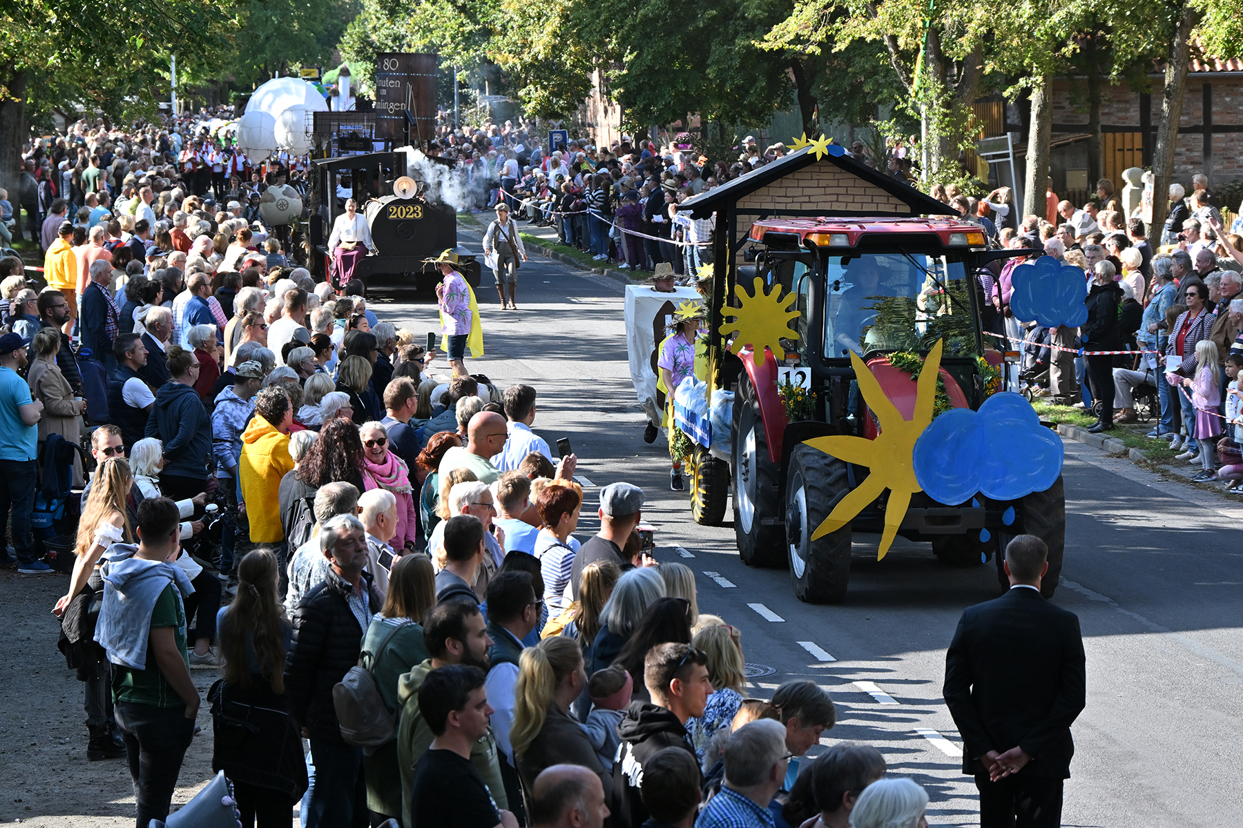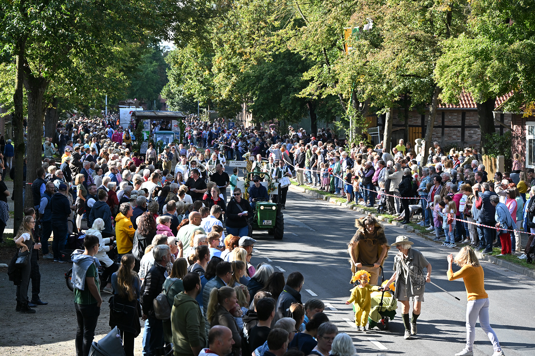 Königswetter beim großen Festumzug im Dorf der Könige: Am heutigen Sonntag, 24. September 2023, war der Burgdorfer Ortsteil Ramlingen der Mittelpunkt der Region. 27 Erntewagen und Fußgruppen machten sich zum Erntefest auf den Weg durch den Ort. Mit geschätzten 4000 Besuchern waren die Grüne Allee und der Festplatz von so vielen Besuchern gesäumt wie noch nie.