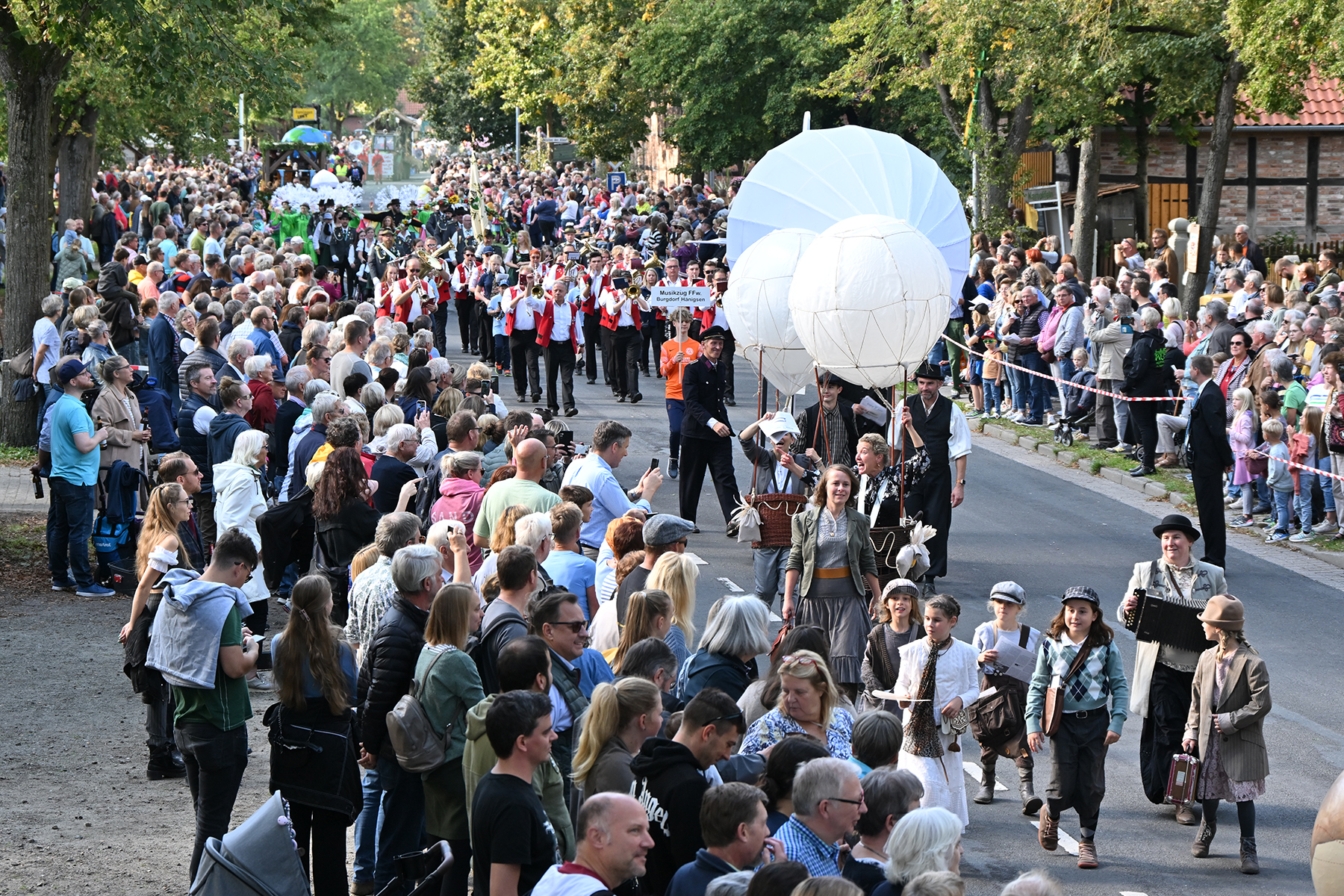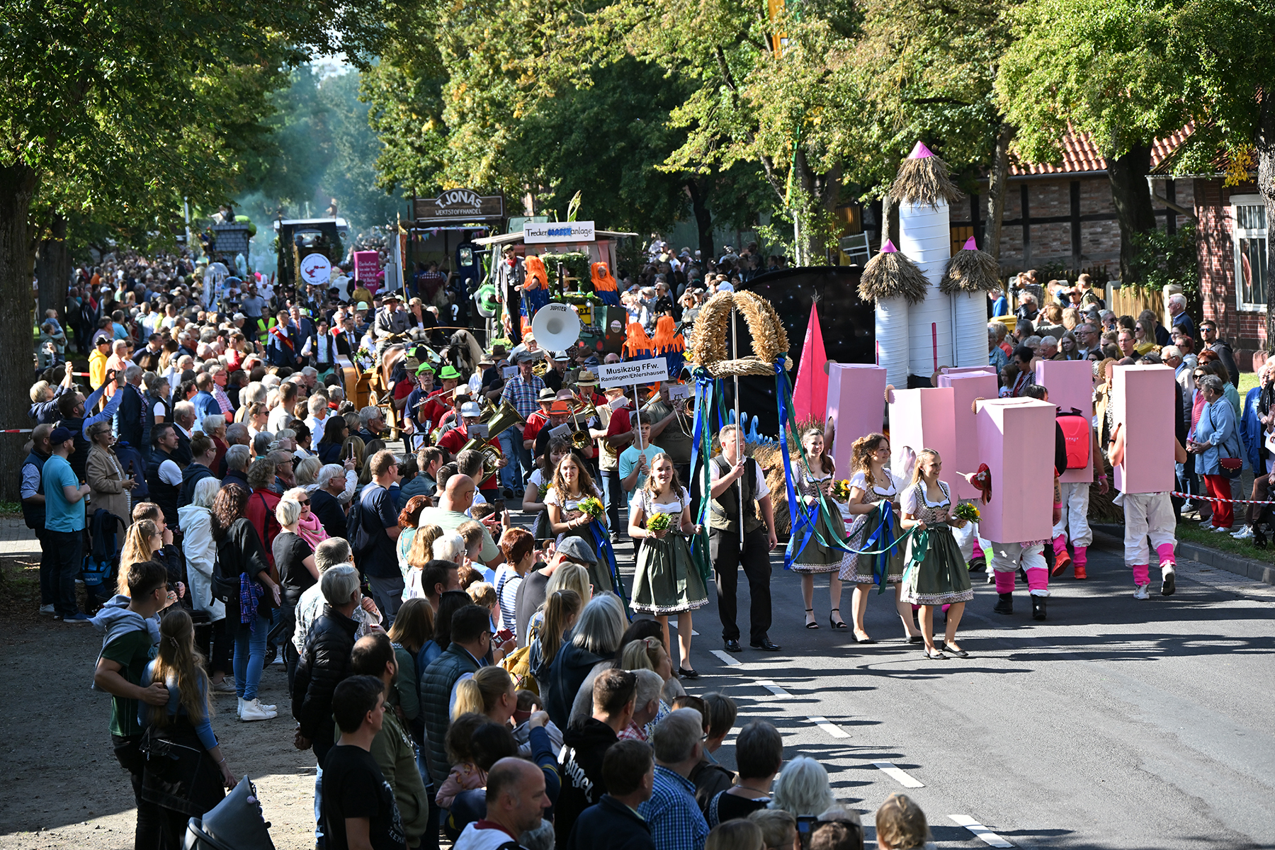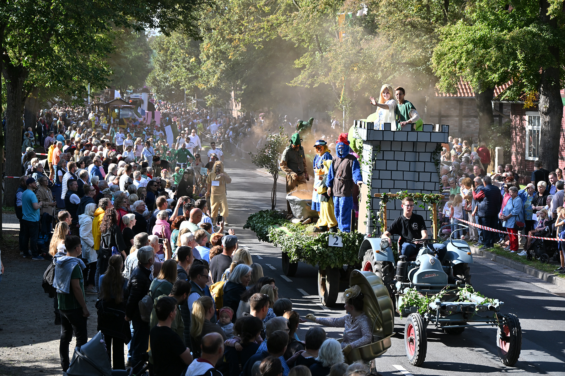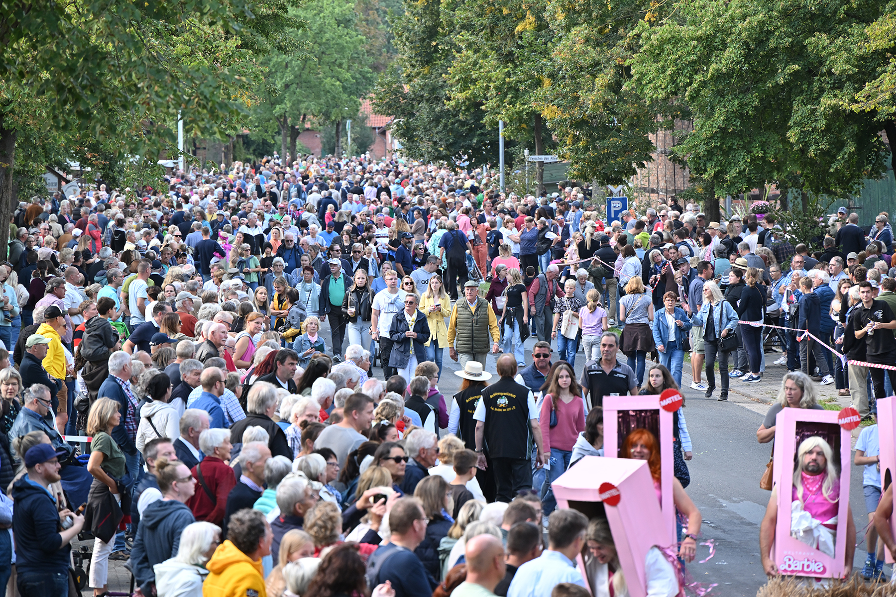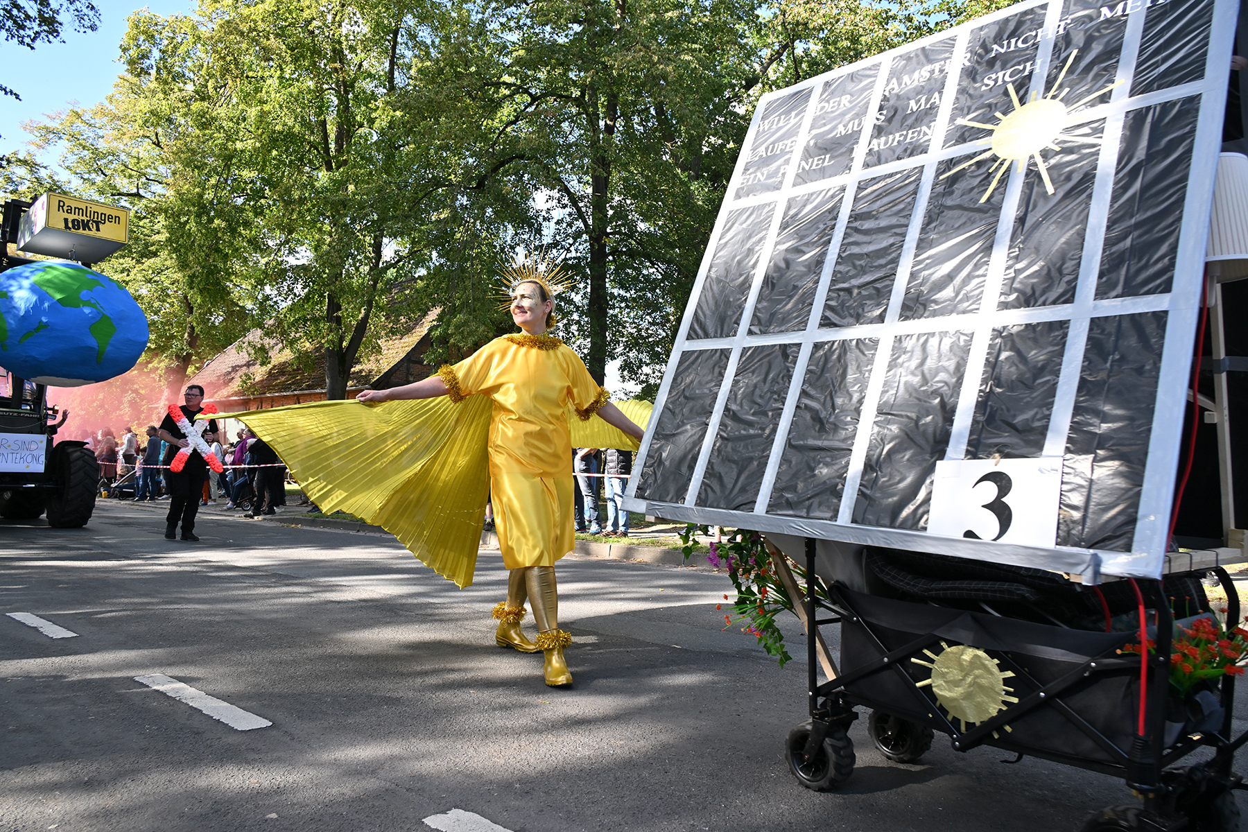 Königswetter beim großen Festumzug im Dorf der Könige: Am heutigen Sonntag, 24. September 2023, war der Burgdorfer Ortsteil Ramlingen der Mittelpunkt der Region. 27 Erntewagen und Fußgruppen machten sich zum Erntefest auf den Weg durch den Ort. Mit geschätzten 4000 Besuchern waren die Grüne Allee und der Festplatz von so vielen Besuchern gesäumt wie noch nie.
