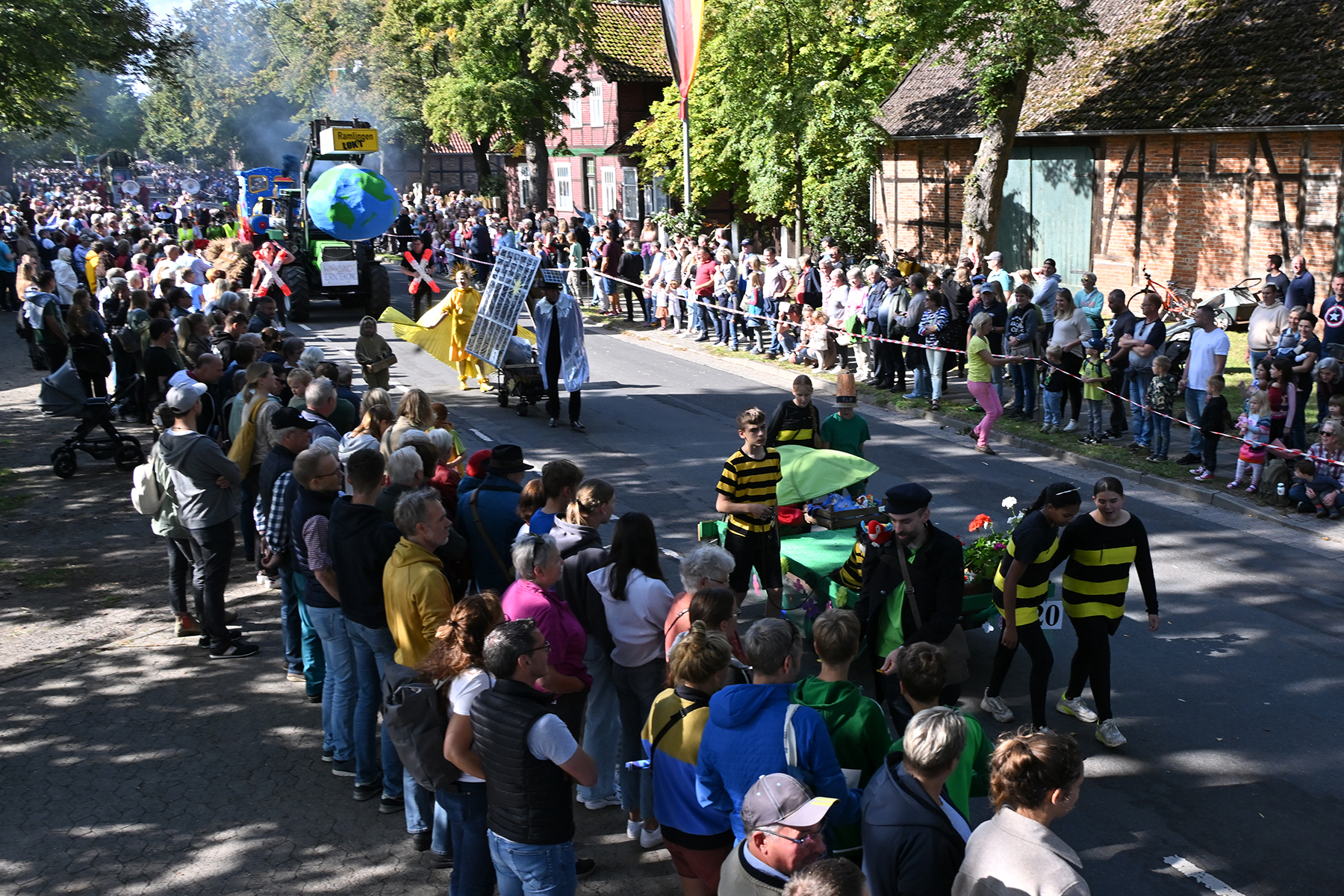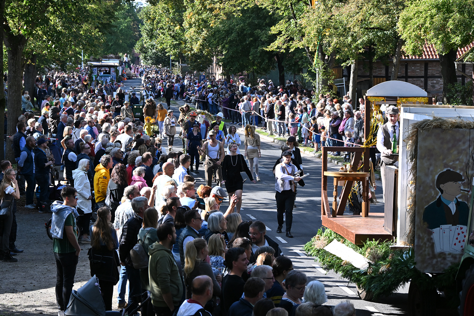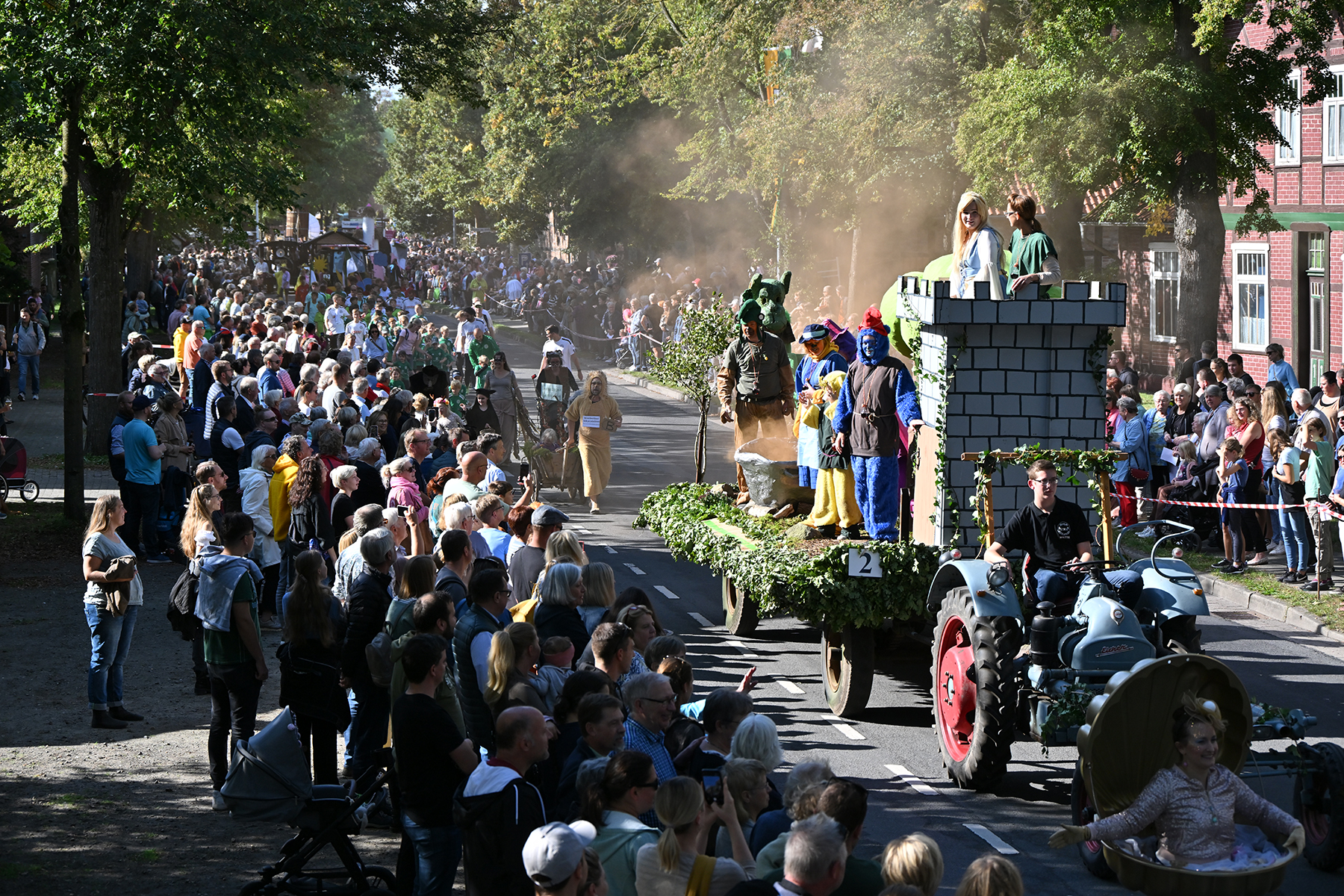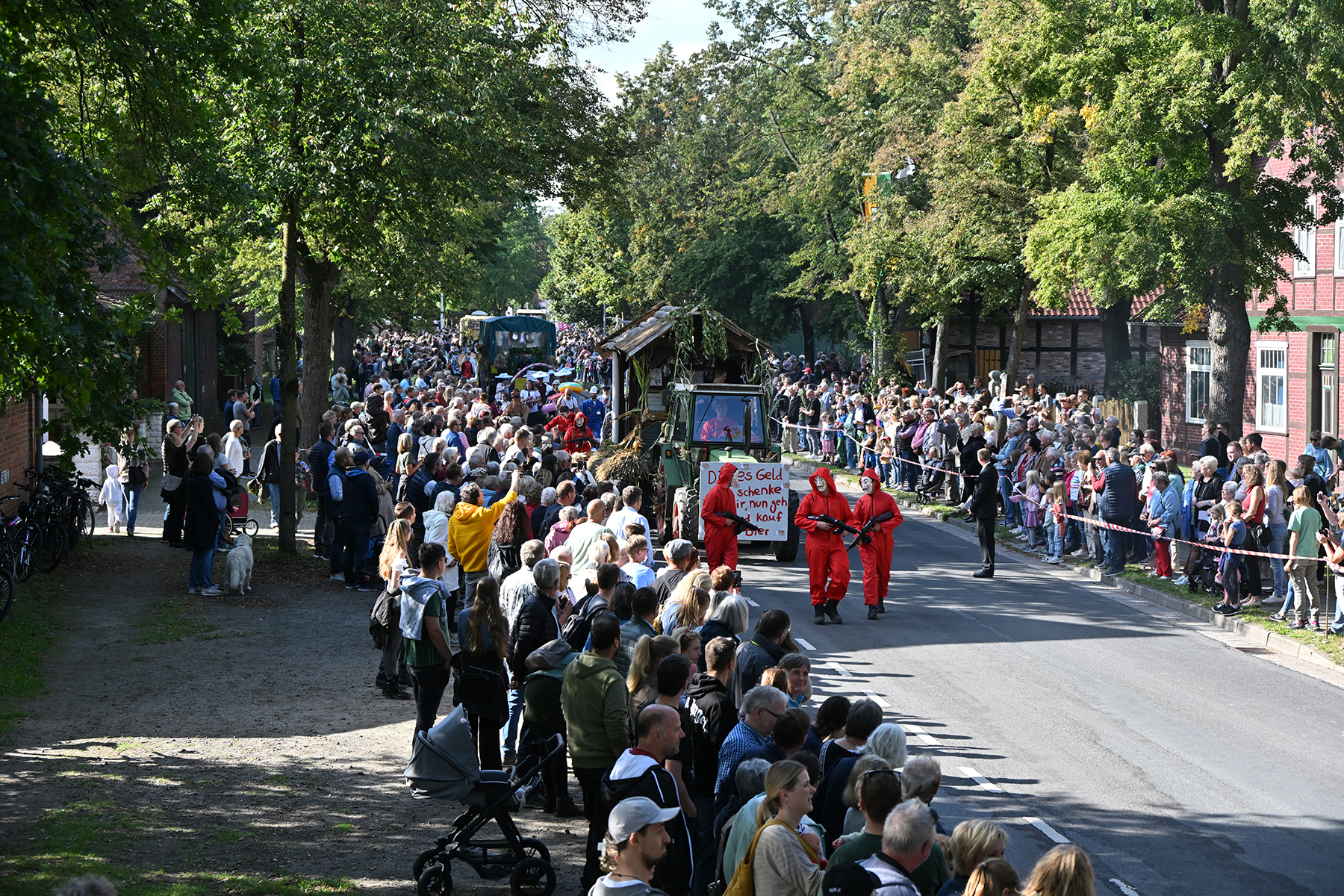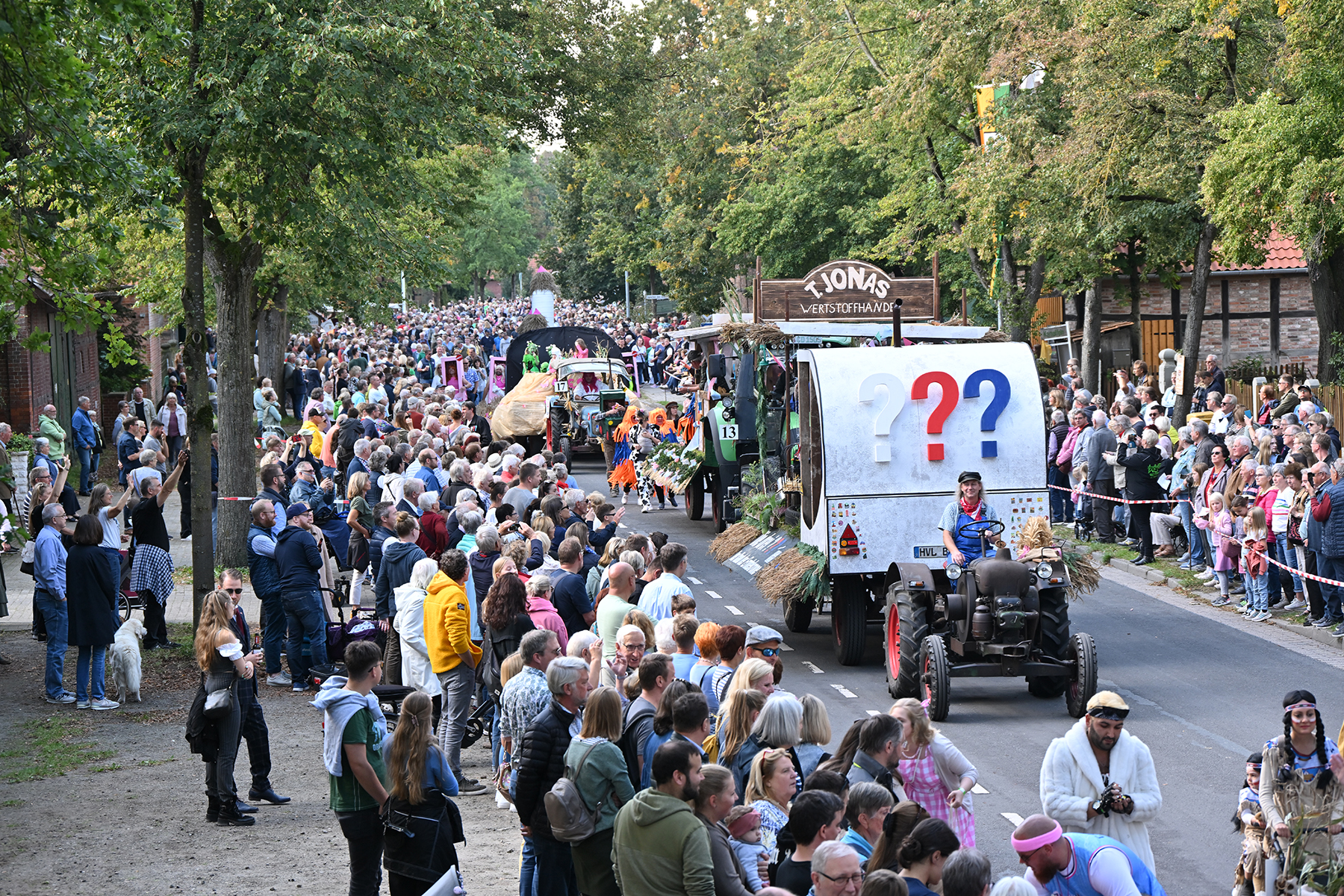 Königswetter beim großen Festumzug im Dorf der Könige: Am heutigen Sonntag, 24. September 2023, war der Burgdorfer Ortsteil Ramlingen der Mittelpunkt der Region. 27 Erntewagen und Fußgruppen machten sich zum Erntefest auf den Weg durch den Ort. Mit geschätzten 4000 Besuchern waren die Grüne Allee und der Festplatz von so vielen Besuchern gesäumt wie noch nie.