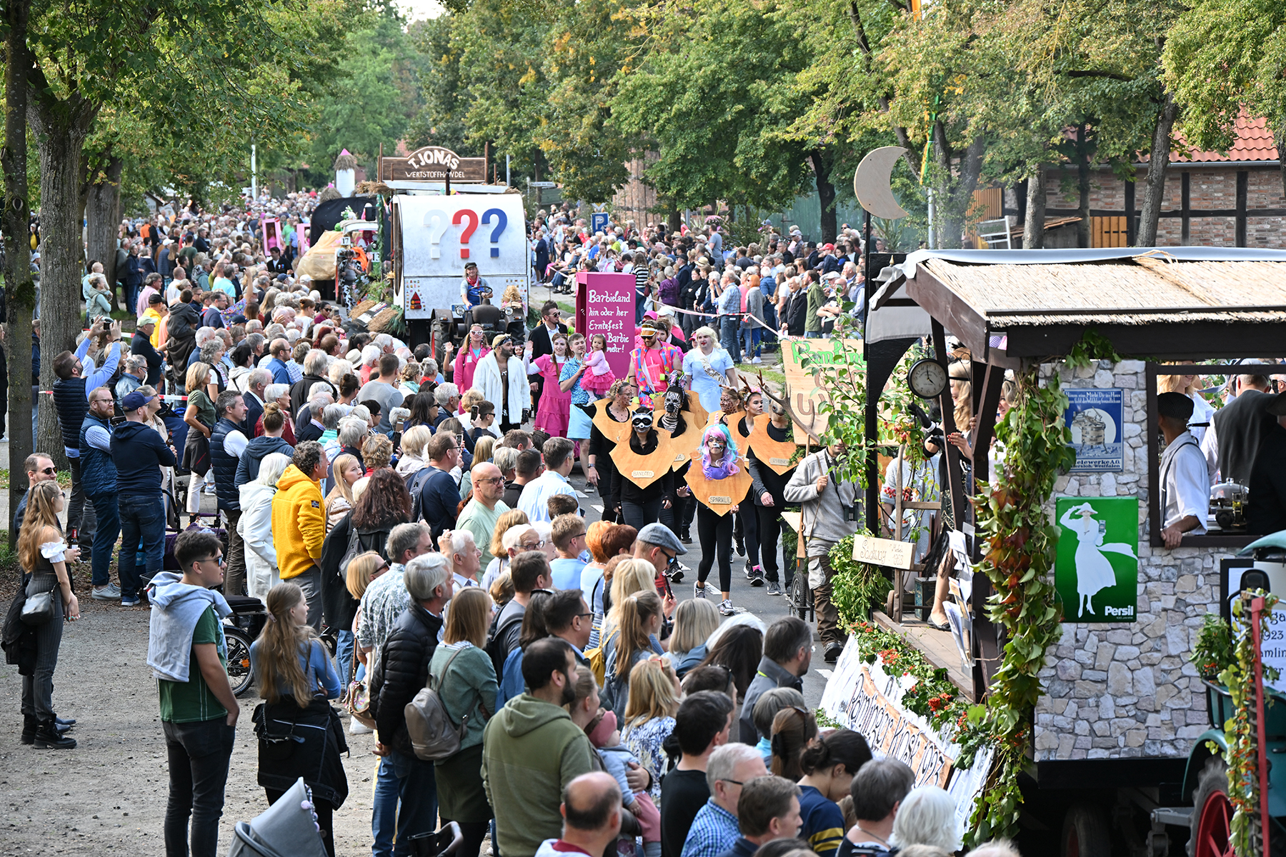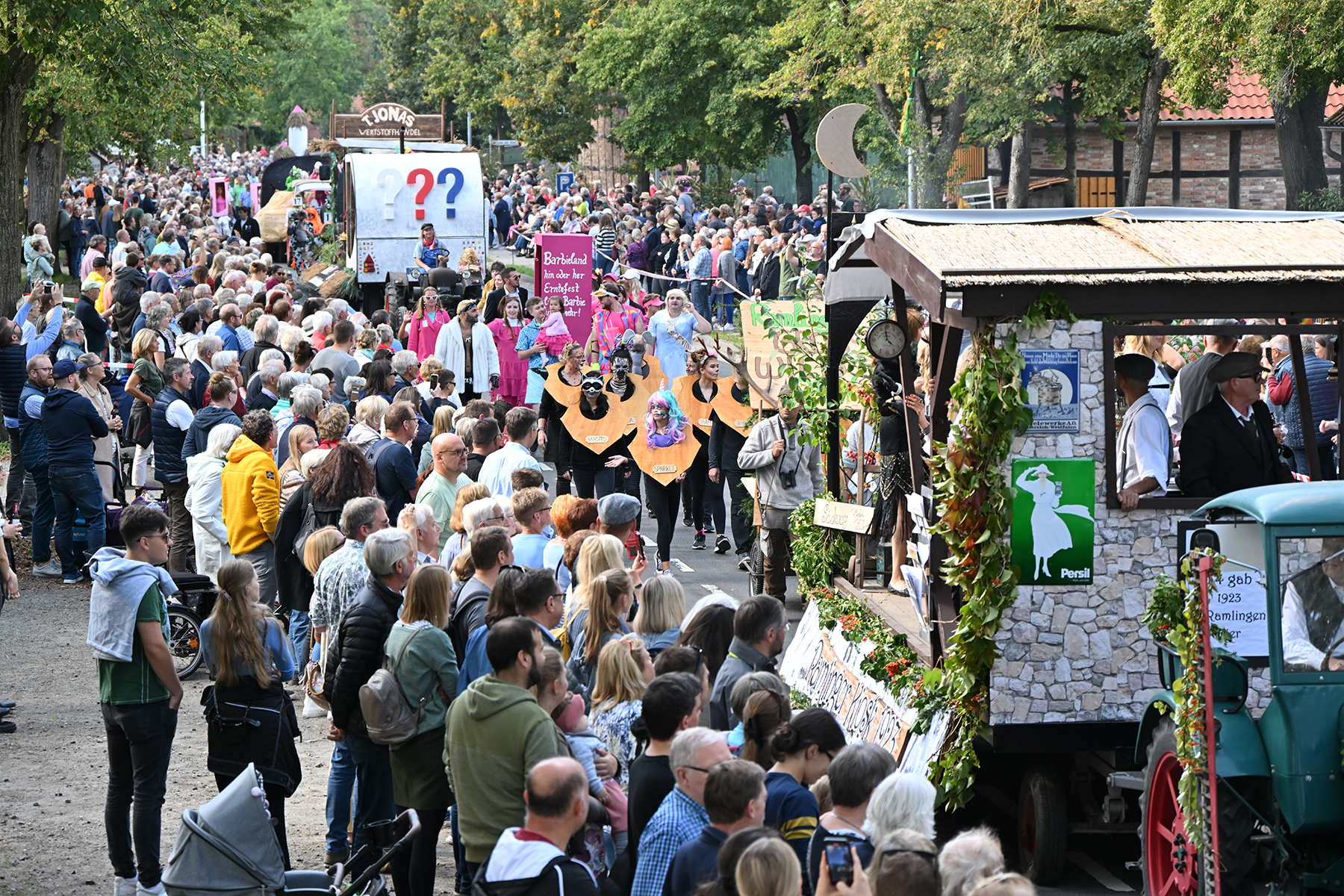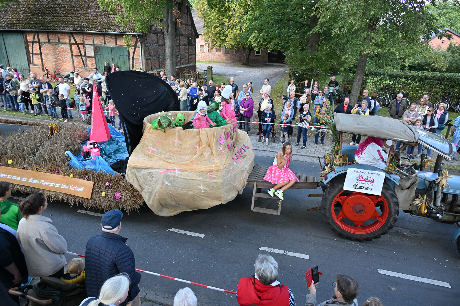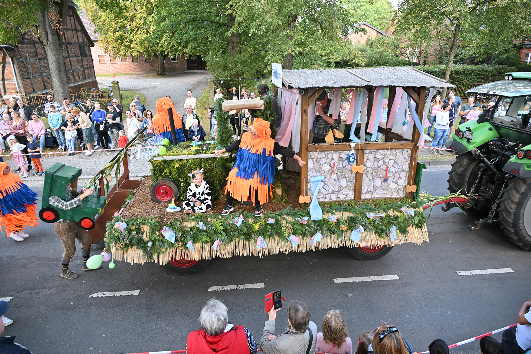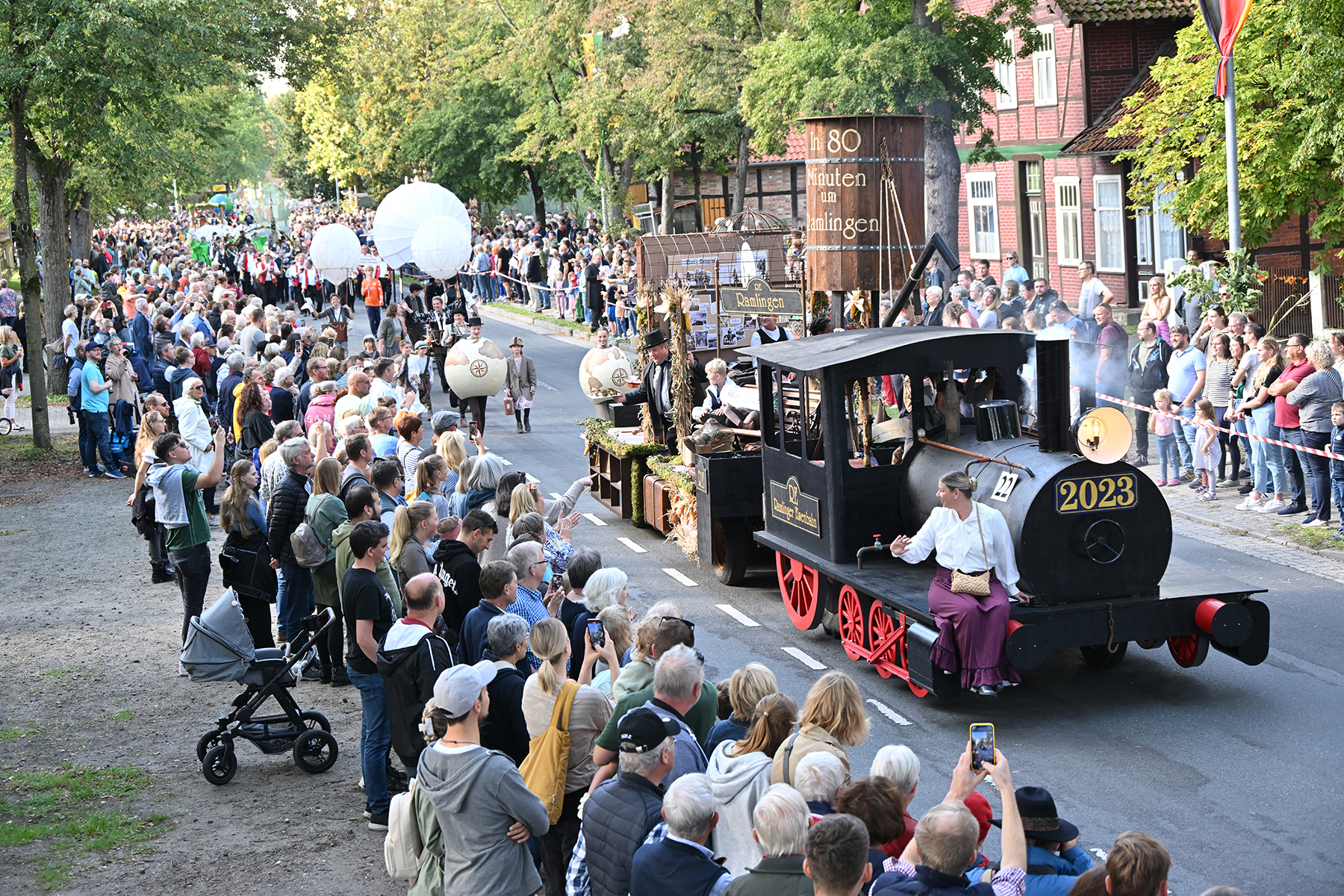 Königswetter beim großen Festumzug im Dorf der Könige: Am heutigen Sonntag, 24. September 2023, war der Burgdorfer Ortsteil Ramlingen der Mittelpunkt der Region. 27 Erntewagen und Fußgruppen machten sich zum Erntefest auf den Weg durch den Ort. Mit geschätzten 4000 Besuchern waren die Grüne Allee und der Festplatz von so vielen Besuchern gesäumt wie noch nie.