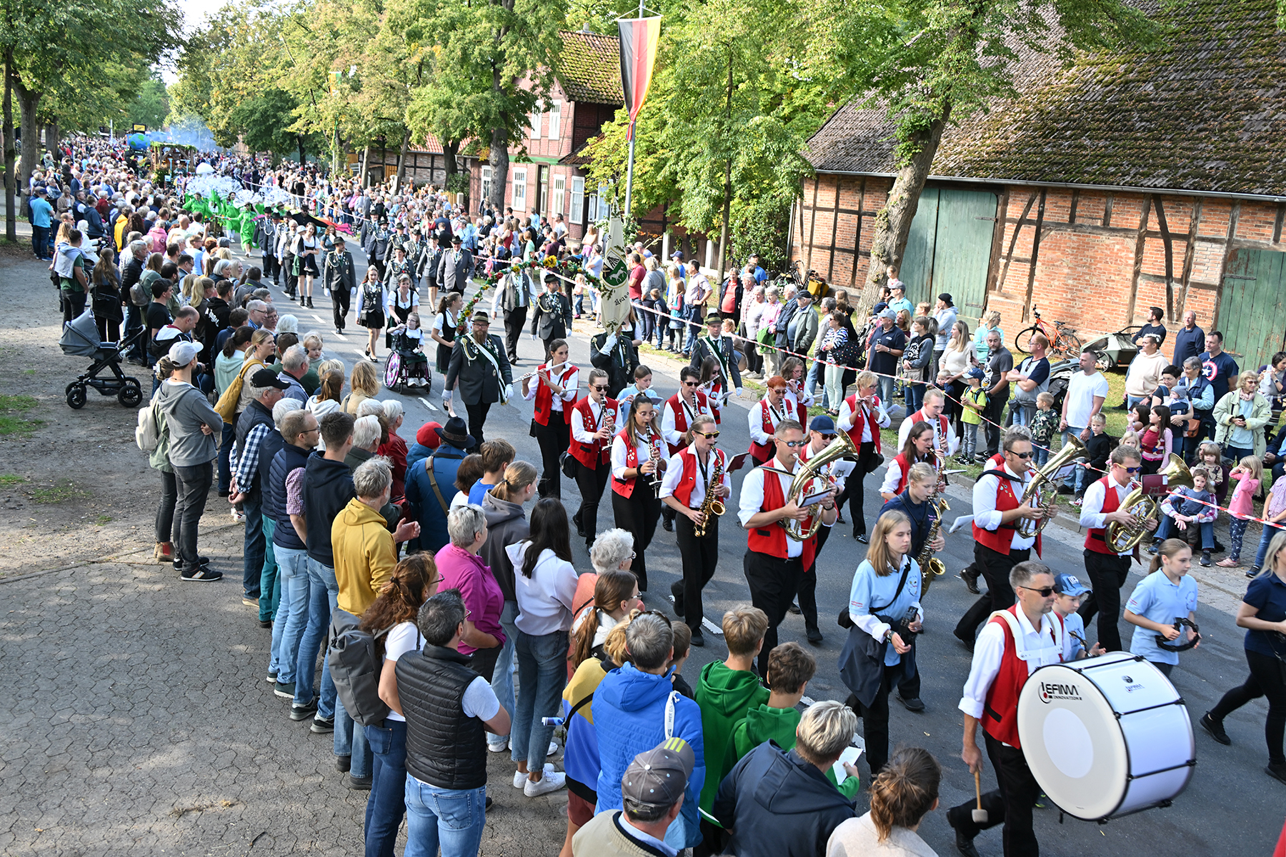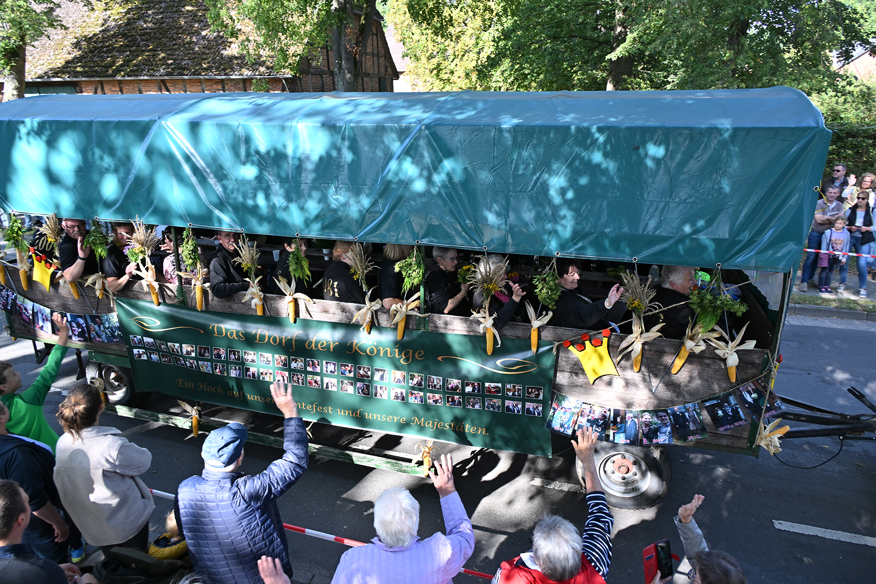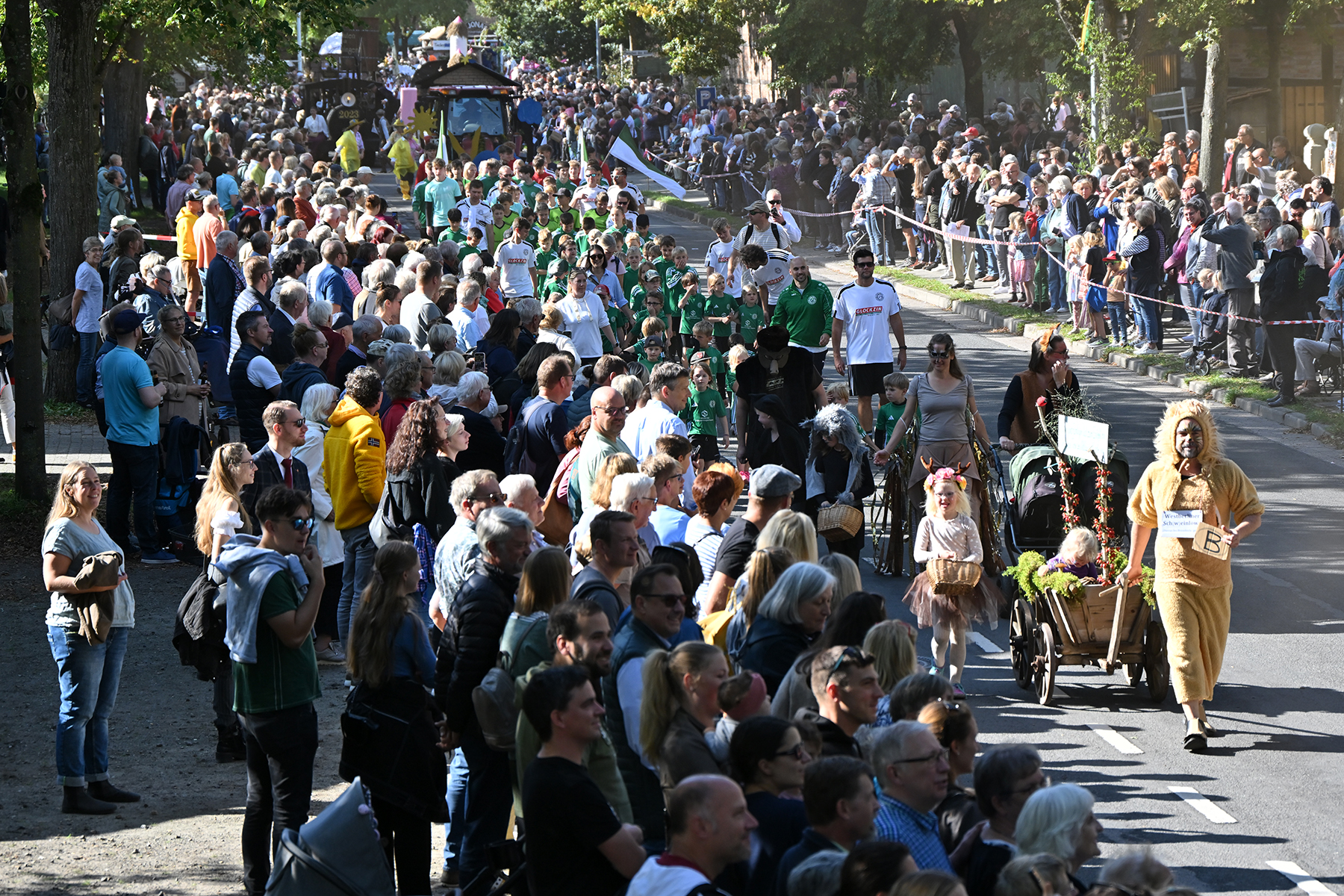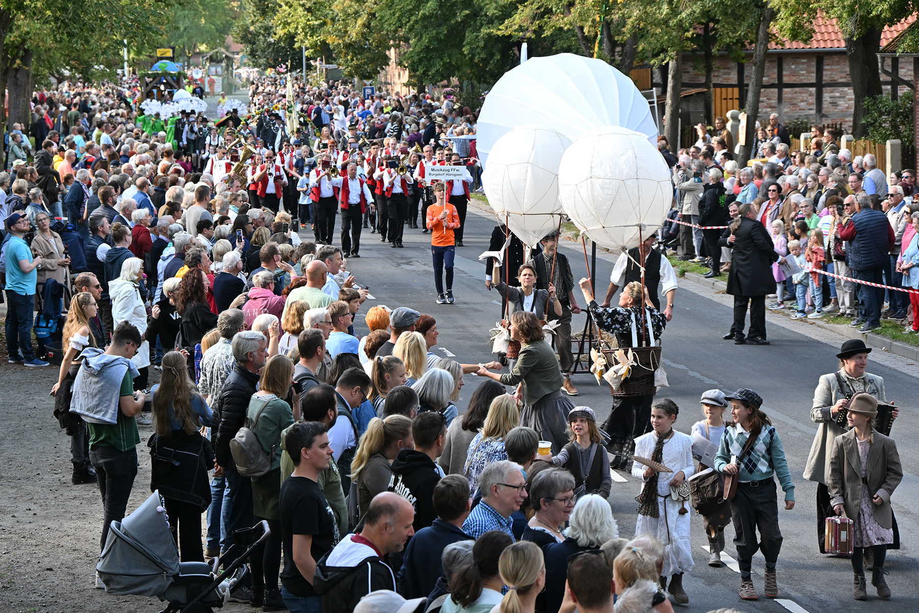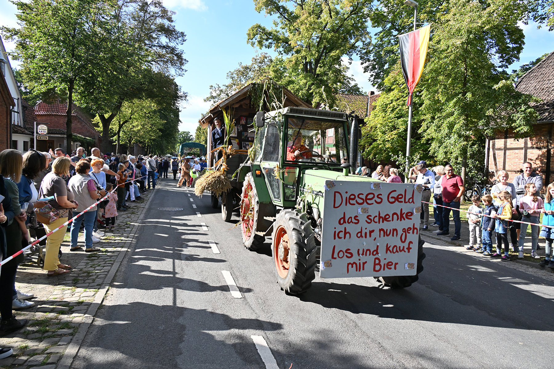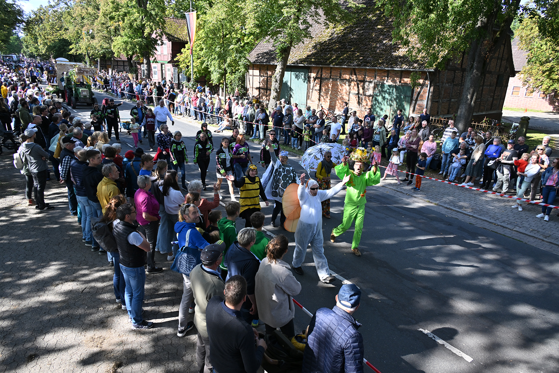 Königswetter beim großen Festumzug im Dorf der Könige: Am heutigen Sonntag, 24. September 2023, war der Burgdorfer Ortsteil Ramlingen der Mittelpunkt der Region. 27 Erntewagen und Fußgruppen machten sich zum Erntefest auf den Weg durch den Ort. Mit geschätzten 4000 Besuchern waren die Grüne Allee und der Festplatz von so vielen Besuchern gesäumt wie noch nie.