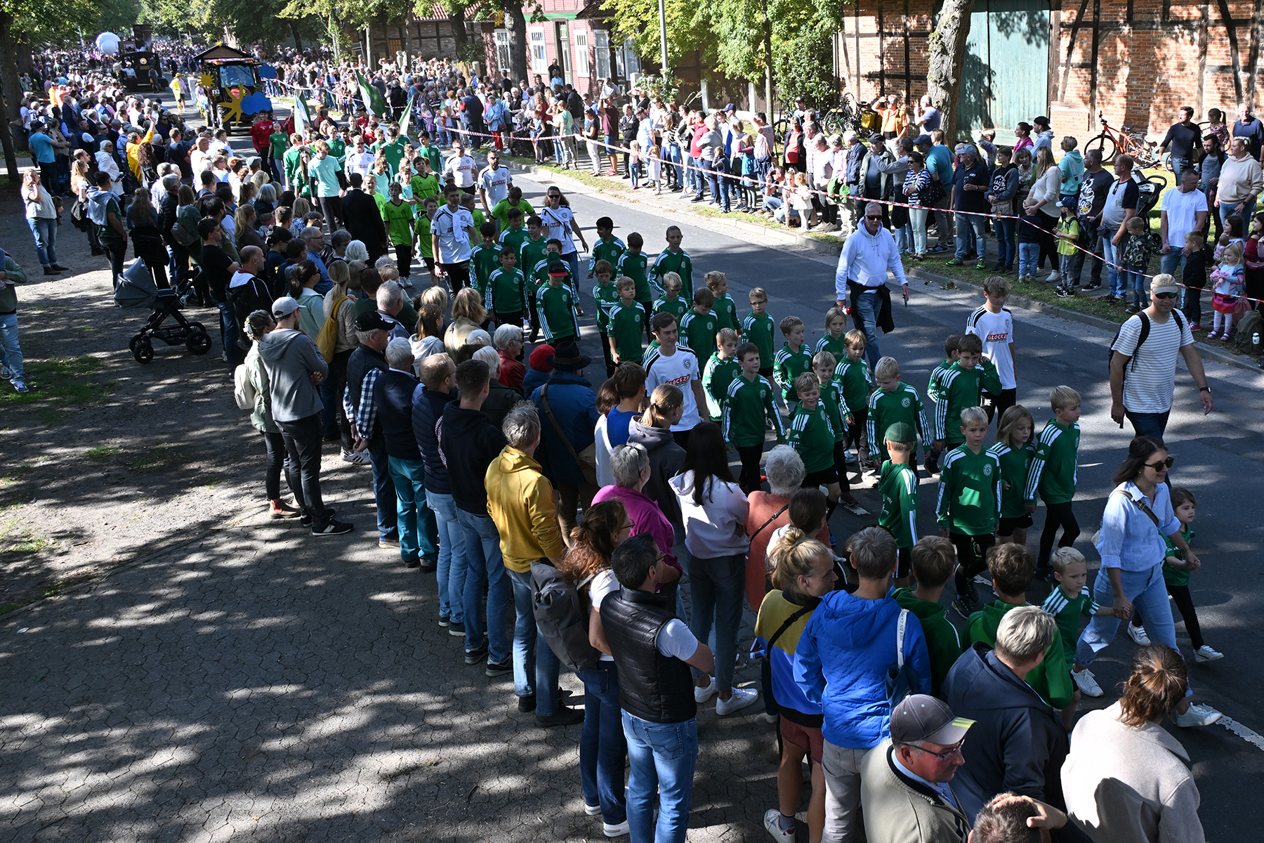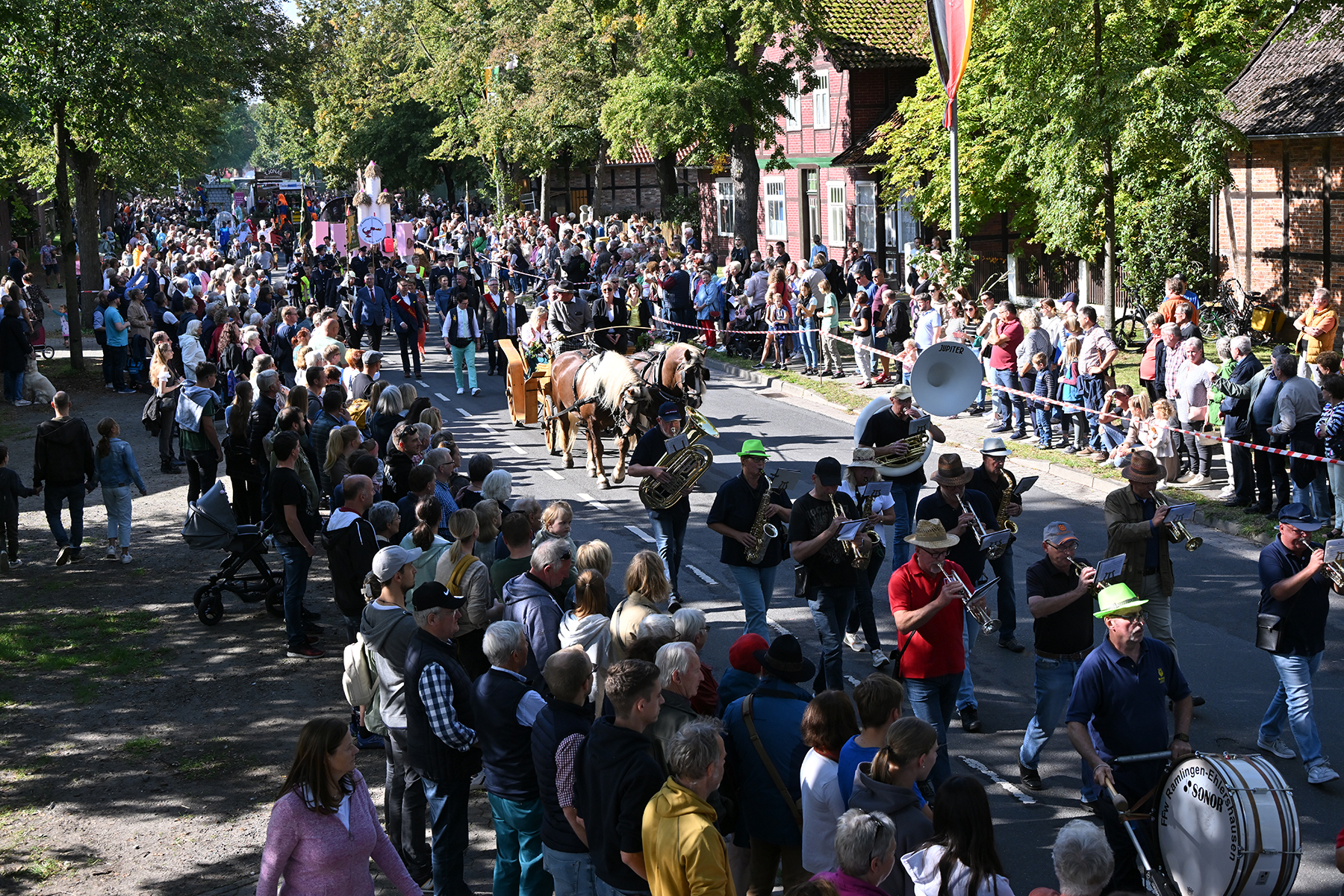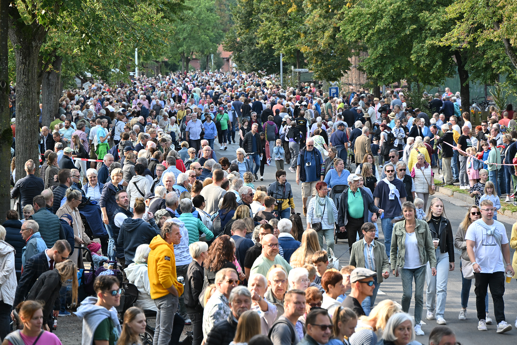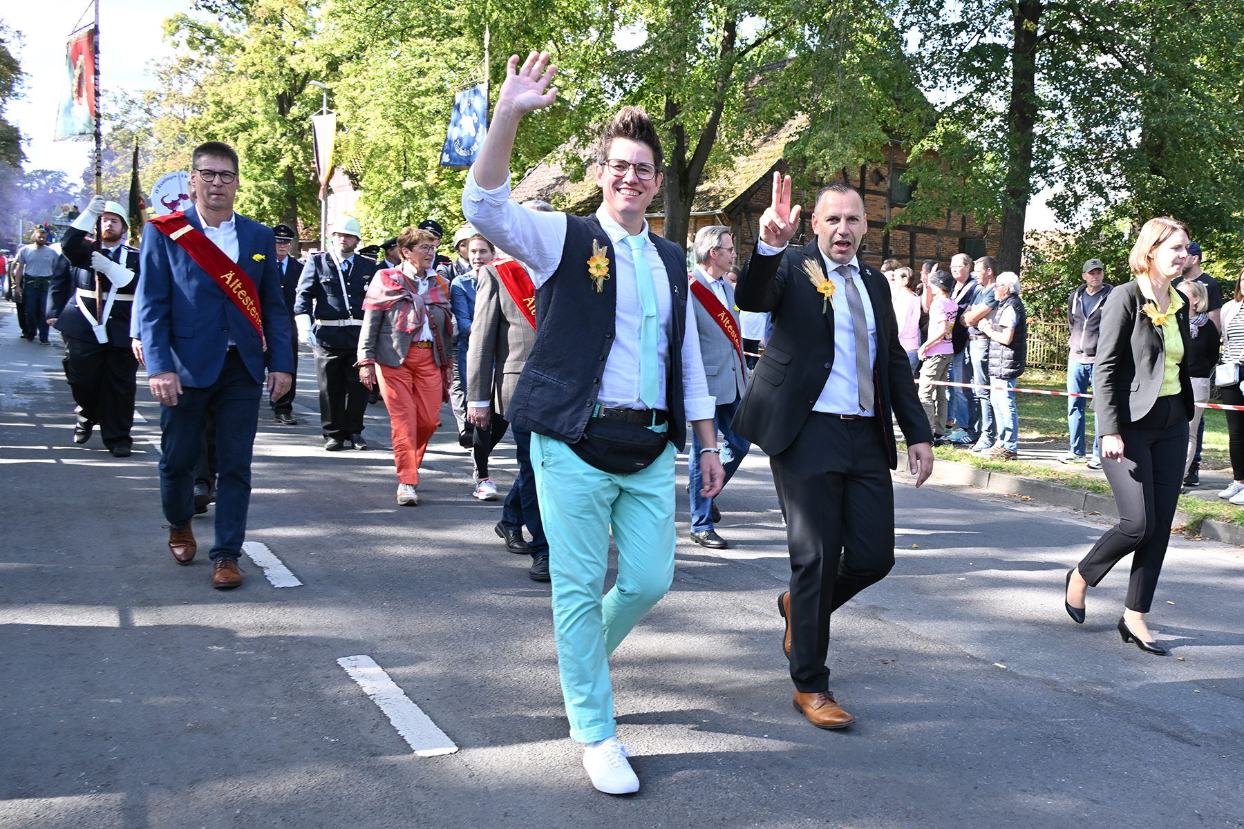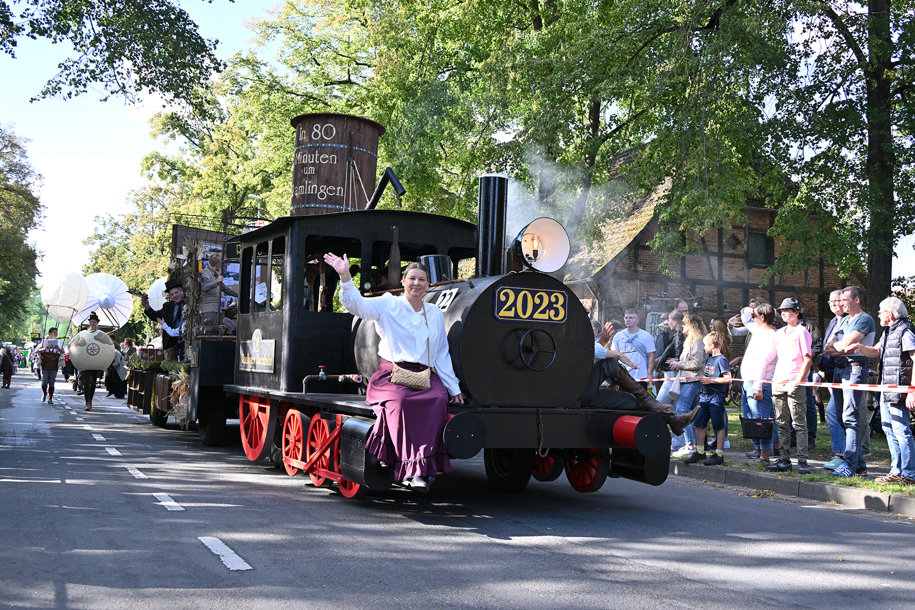 Königswetter beim großen Festumzug im Dorf der Könige: Am heutigen Sonntag, 24. September 2023, war der Burgdorfer Ortsteil Ramlingen der Mittelpunkt der Region. 27 Erntewagen und Fußgruppen machten sich zum Erntefest auf den Weg durch den Ort. Mit geschätzten 4000 Besuchern waren die Grüne Allee und der Festplatz von so vielen Besuchern gesäumt wie noch nie.