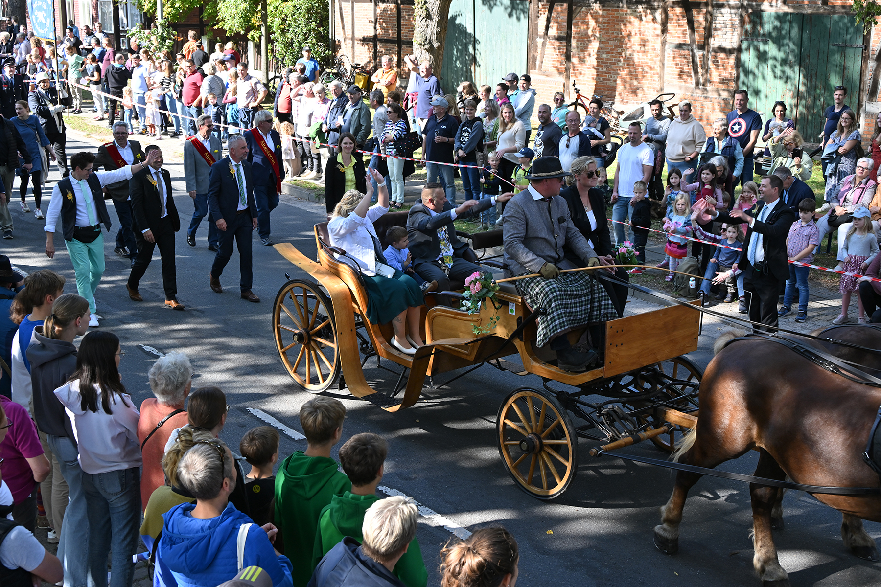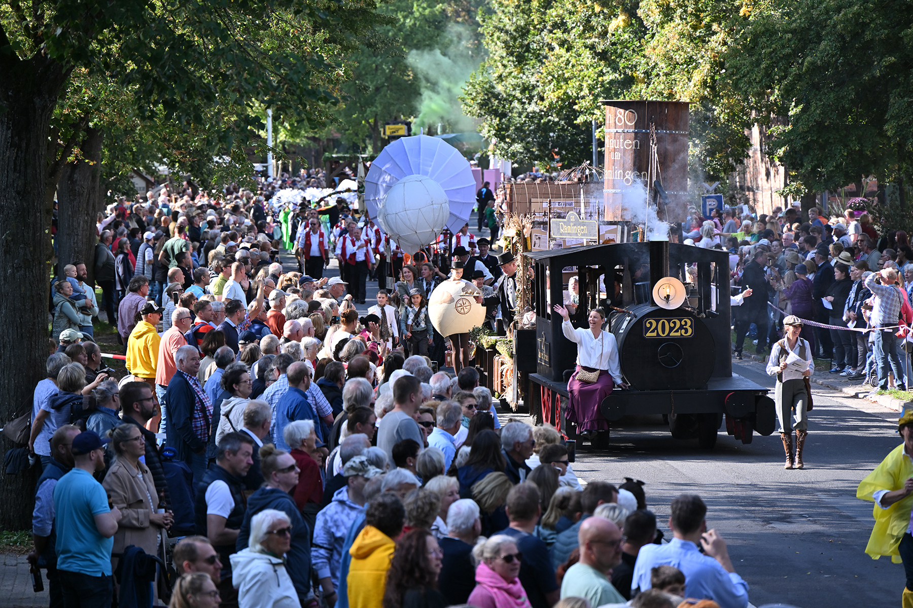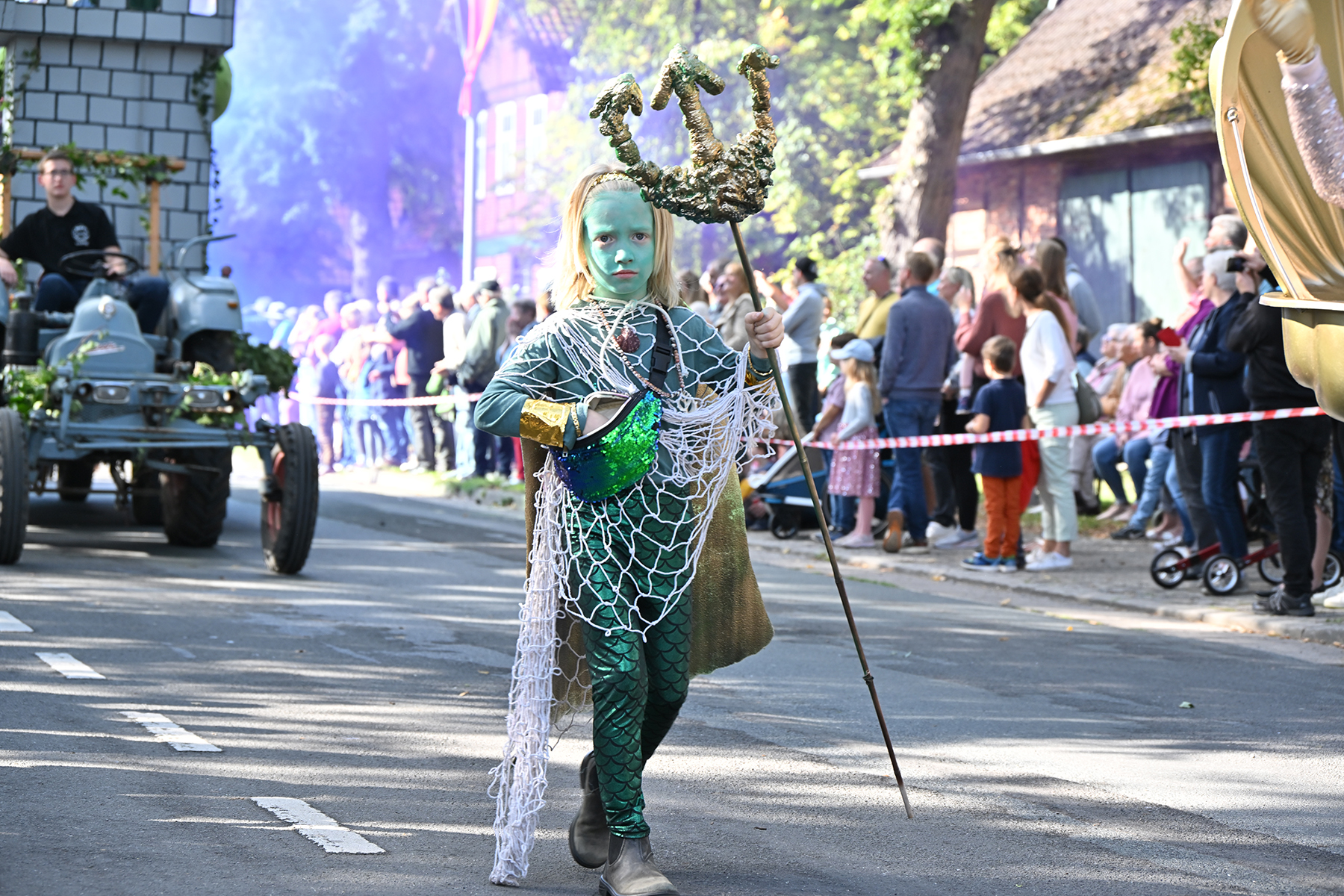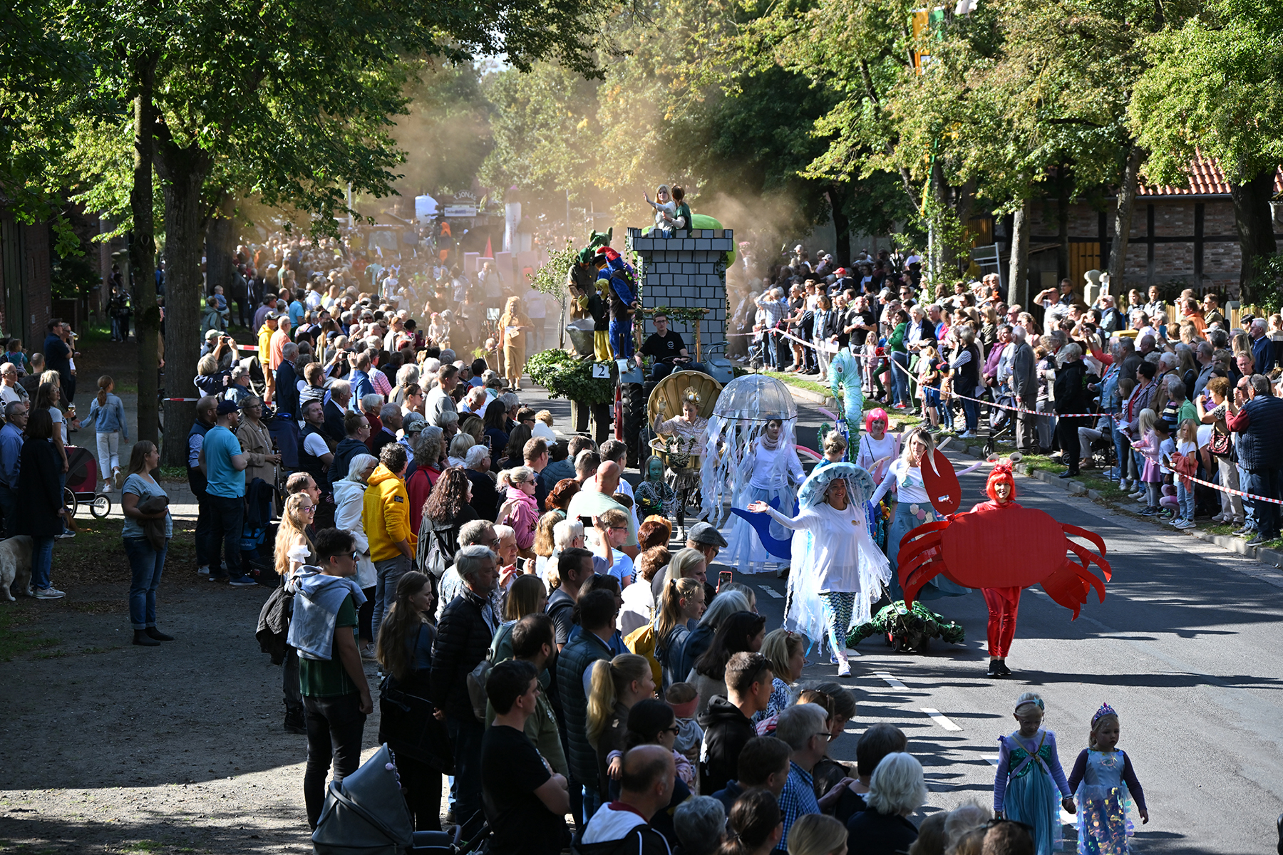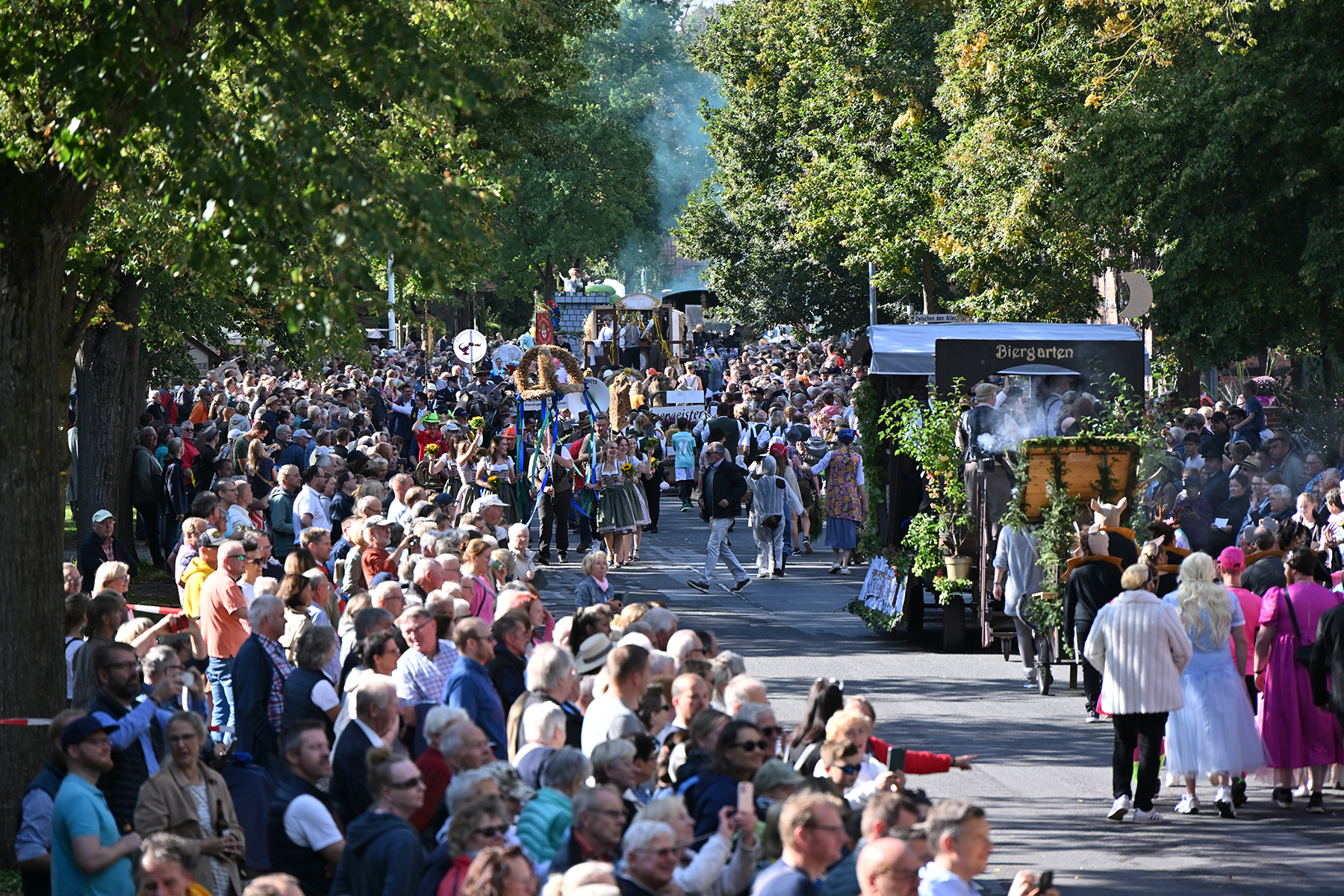 Königswetter beim großen Festumzug im Dorf der Könige: Am heutigen Sonntag, 24. September 2023, war der Burgdorfer Ortsteil Ramlingen der Mittelpunkt der Region. 27 Erntewagen und Fußgruppen machten sich zum Erntefest auf den Weg durch den Ort. Mit geschätzten 4000 Besuchern waren die Grüne Allee und der Festplatz von so vielen Besuchern gesäumt wie noch nie.