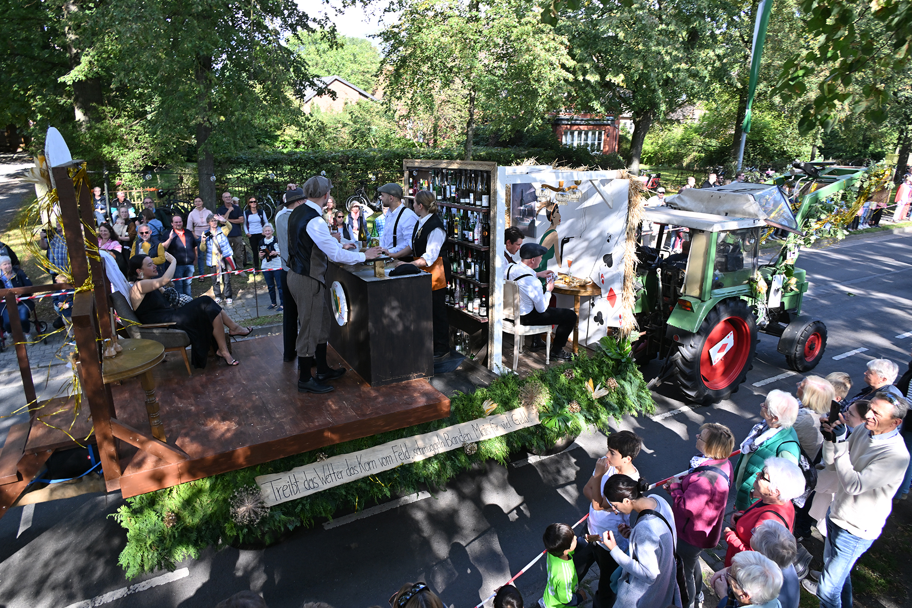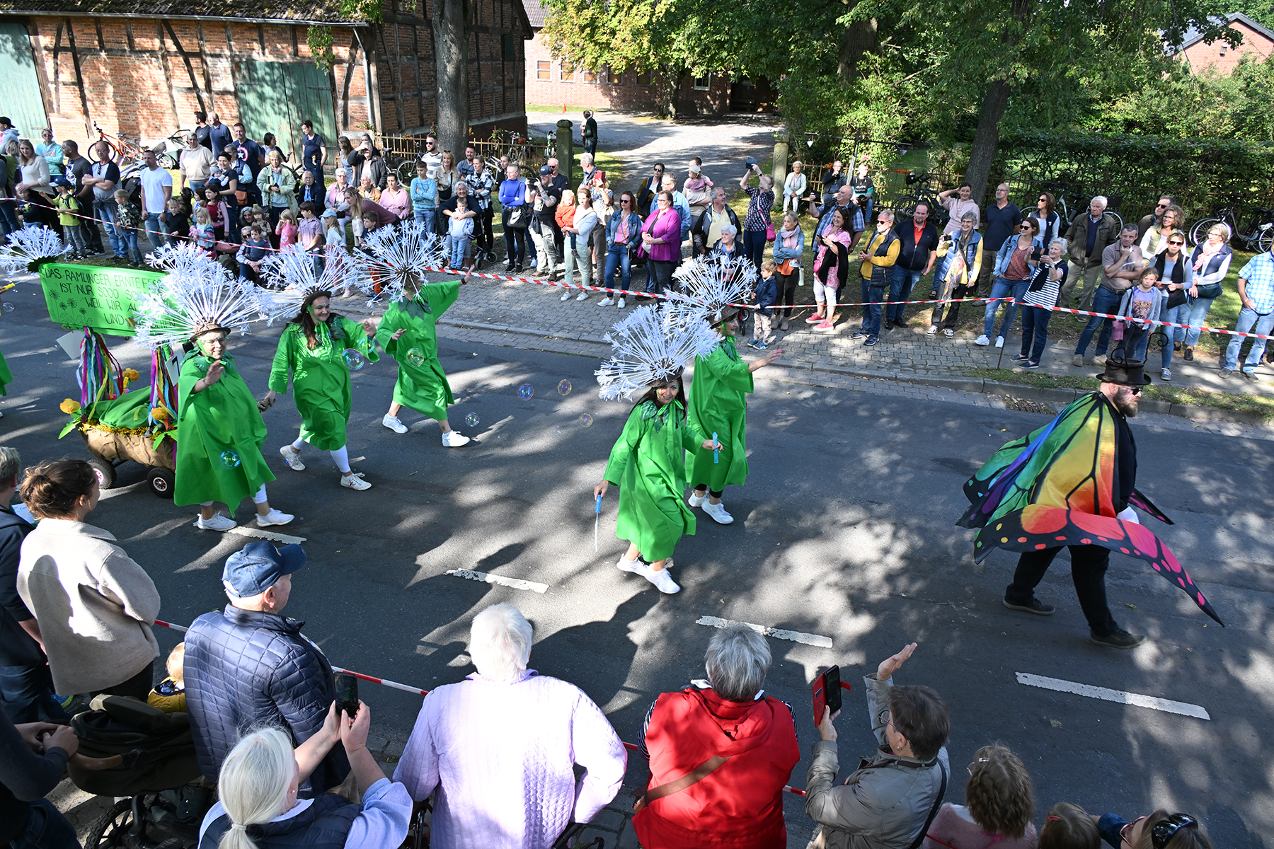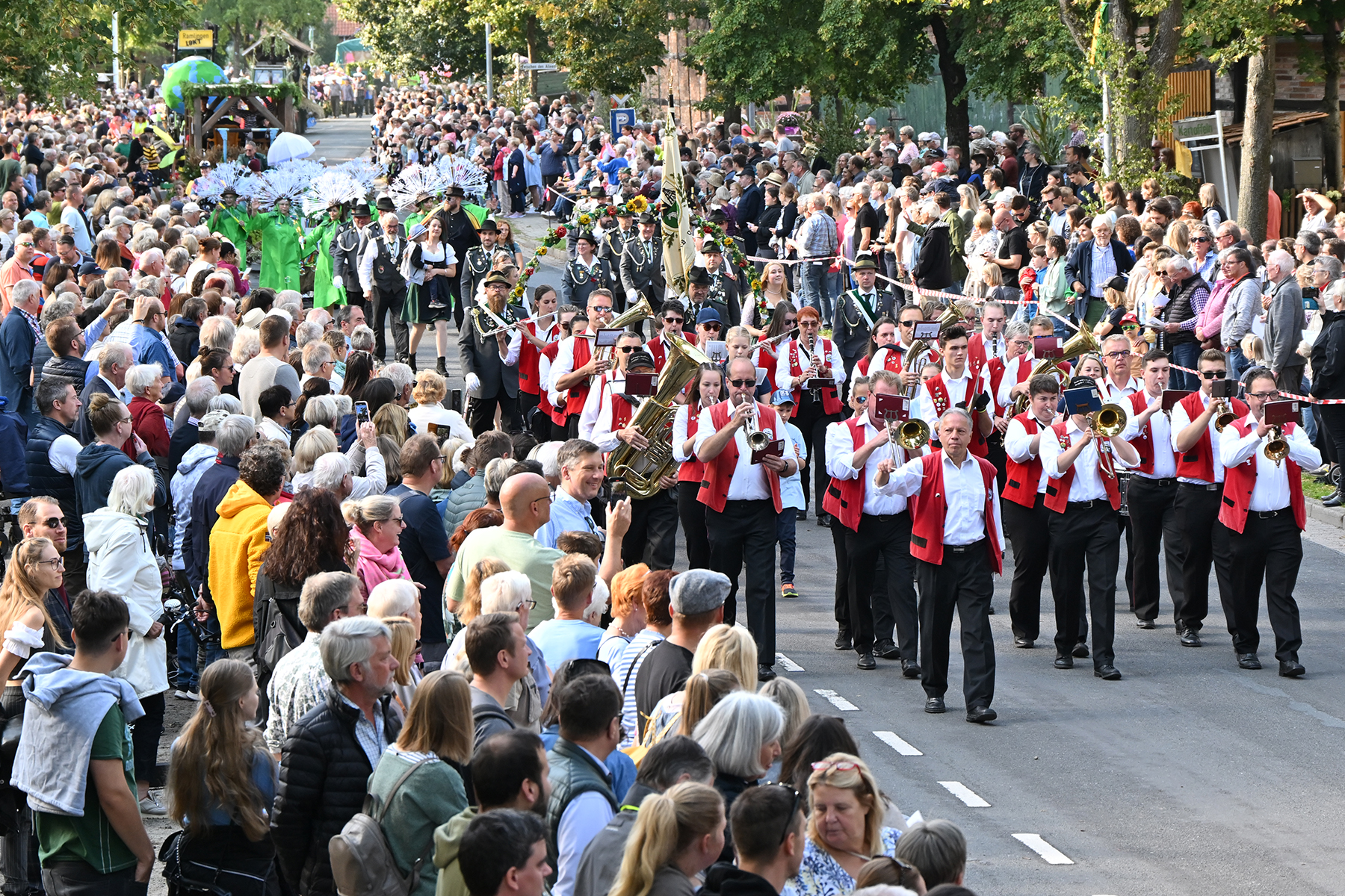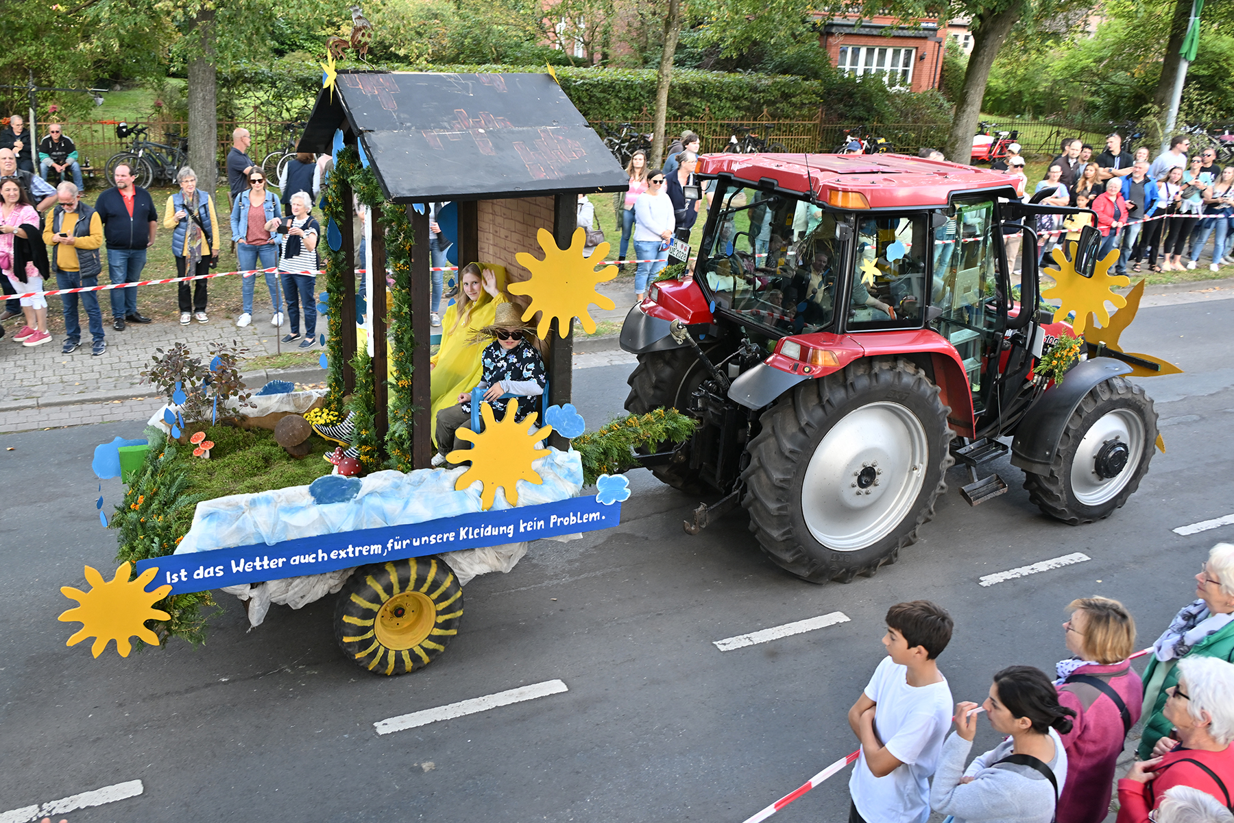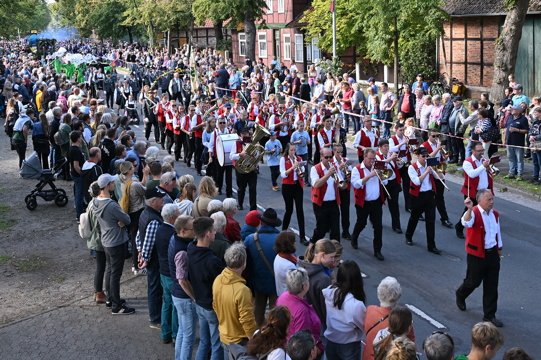 Königswetter beim großen Festumzug im Dorf der Könige: Am heutigen Sonntag, 24. September 2023, war der Burgdorfer Ortsteil Ramlingen der Mittelpunkt der Region. 27 Erntewagen und Fußgruppen machten sich zum Erntefest auf den Weg durch den Ort. Mit geschätzten 4000 Besuchern waren die Grüne Allee und der Festplatz von so vielen Besuchern gesäumt wie noch nie.