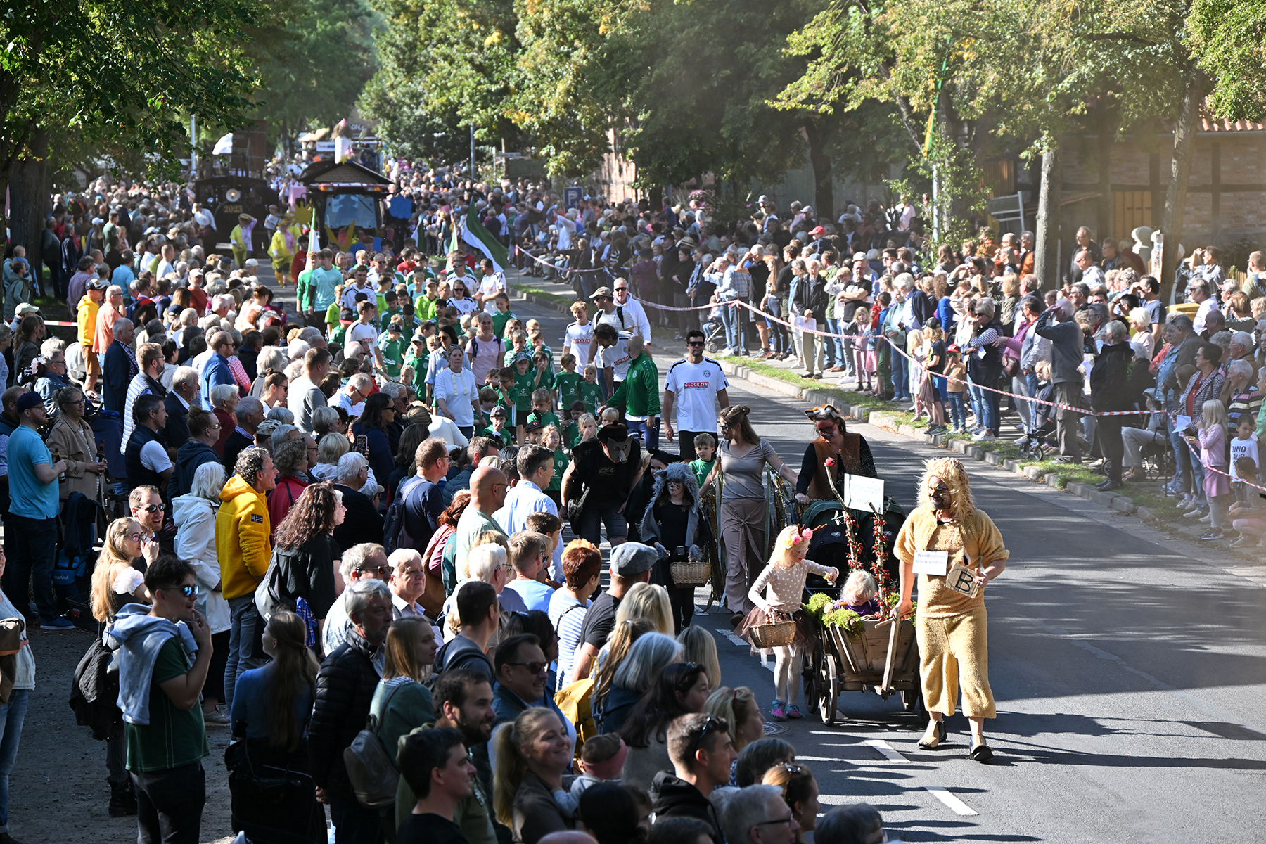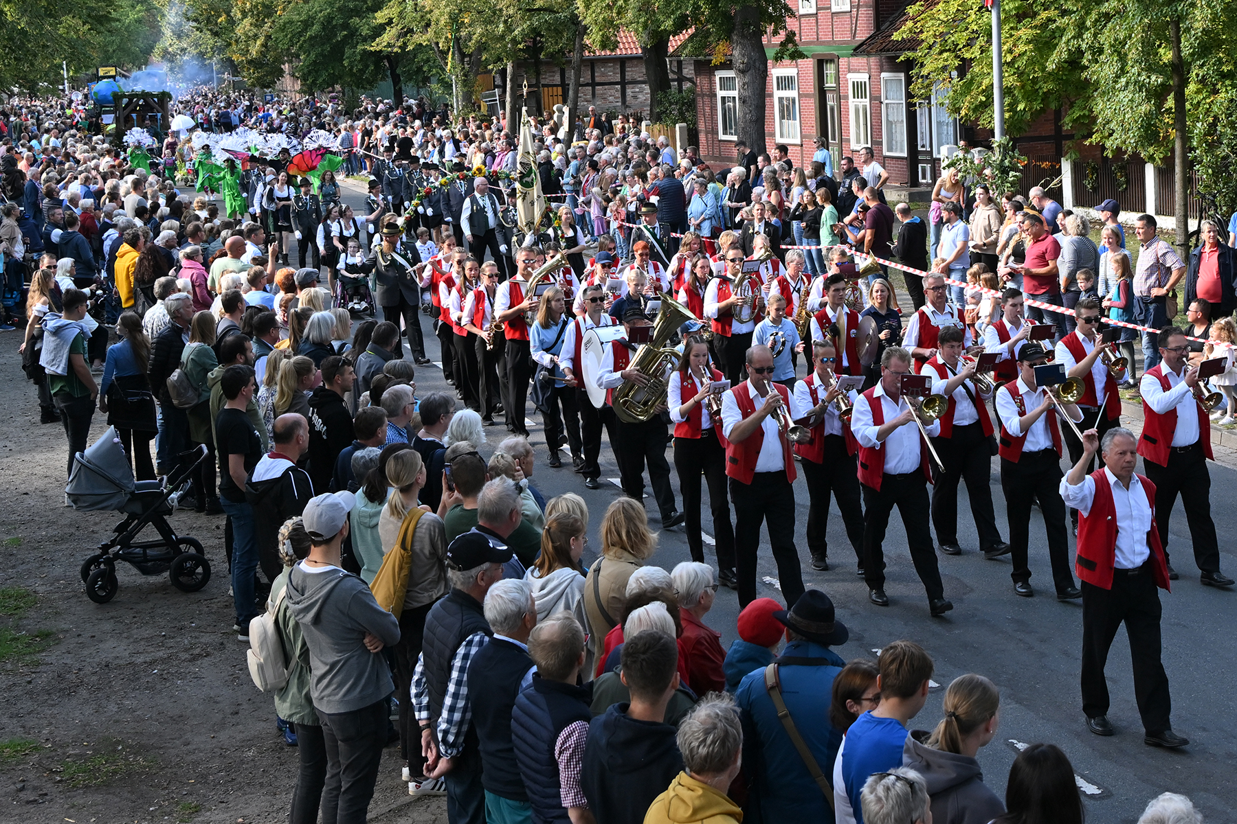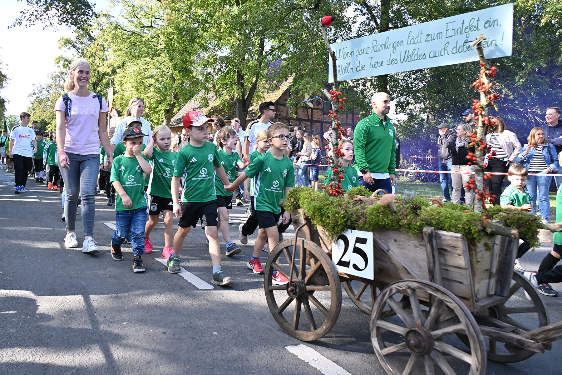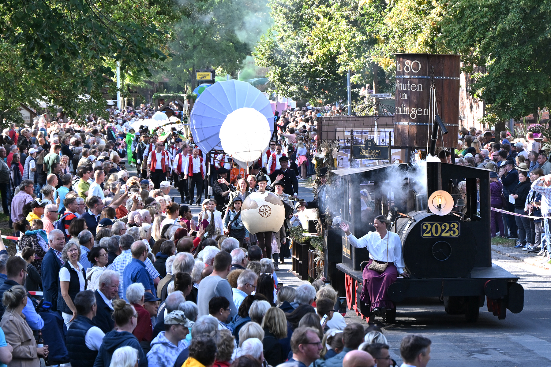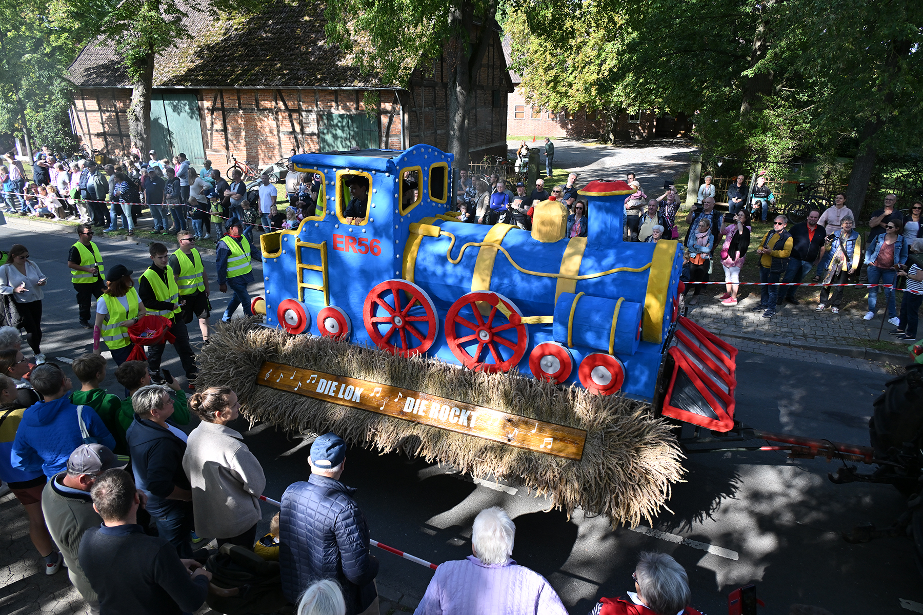 Königswetter beim großen Festumzug im Dorf der Könige: Am heutigen Sonntag, 24. September 2023, war der Burgdorfer Ortsteil Ramlingen der Mittelpunkt der Region. 27 Erntewagen und Fußgruppen machten sich zum Erntefest auf den Weg durch den Ort. Mit geschätzten 4000 Besuchern waren die Grüne Allee und der Festplatz von so vielen Besuchern gesäumt wie noch nie.