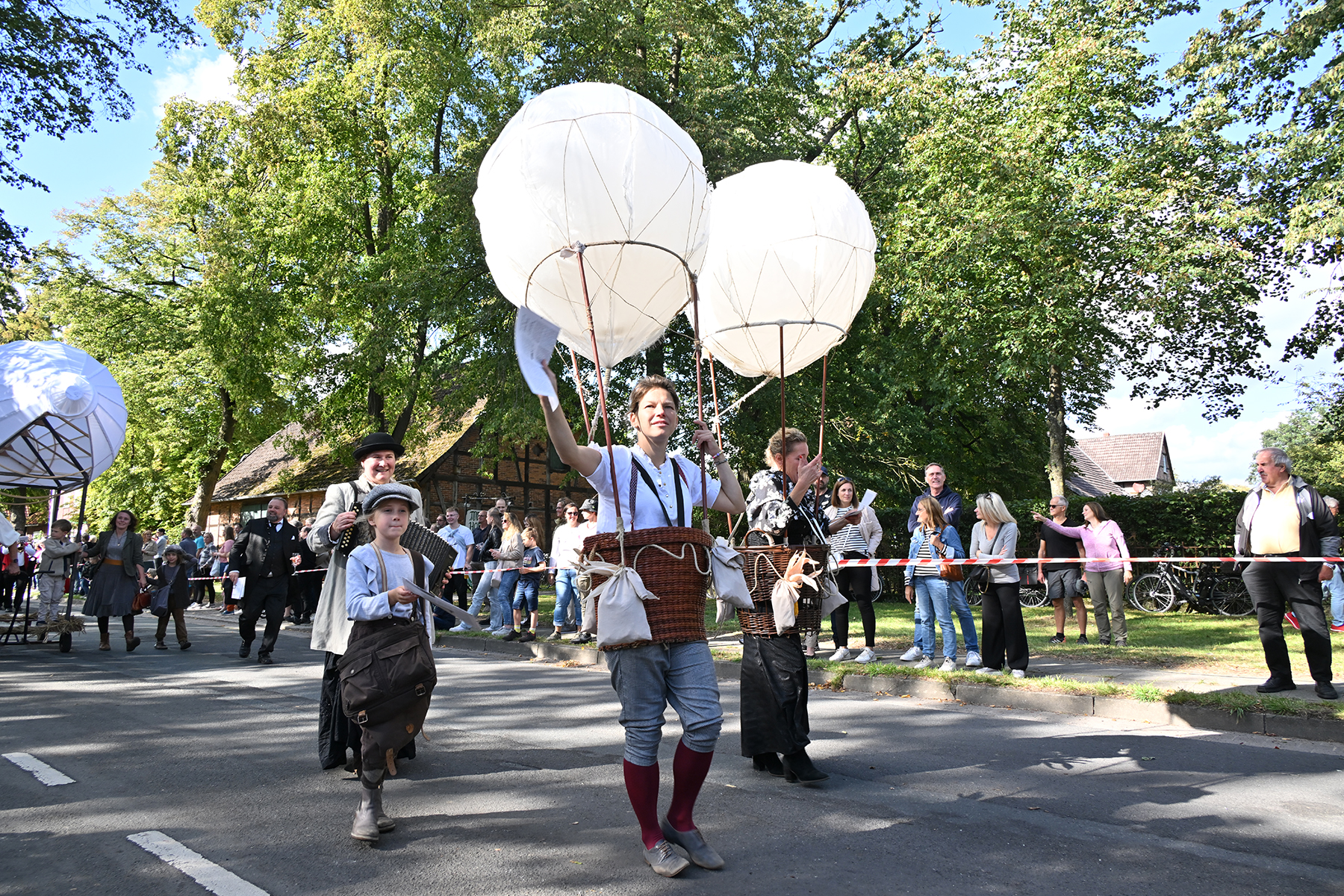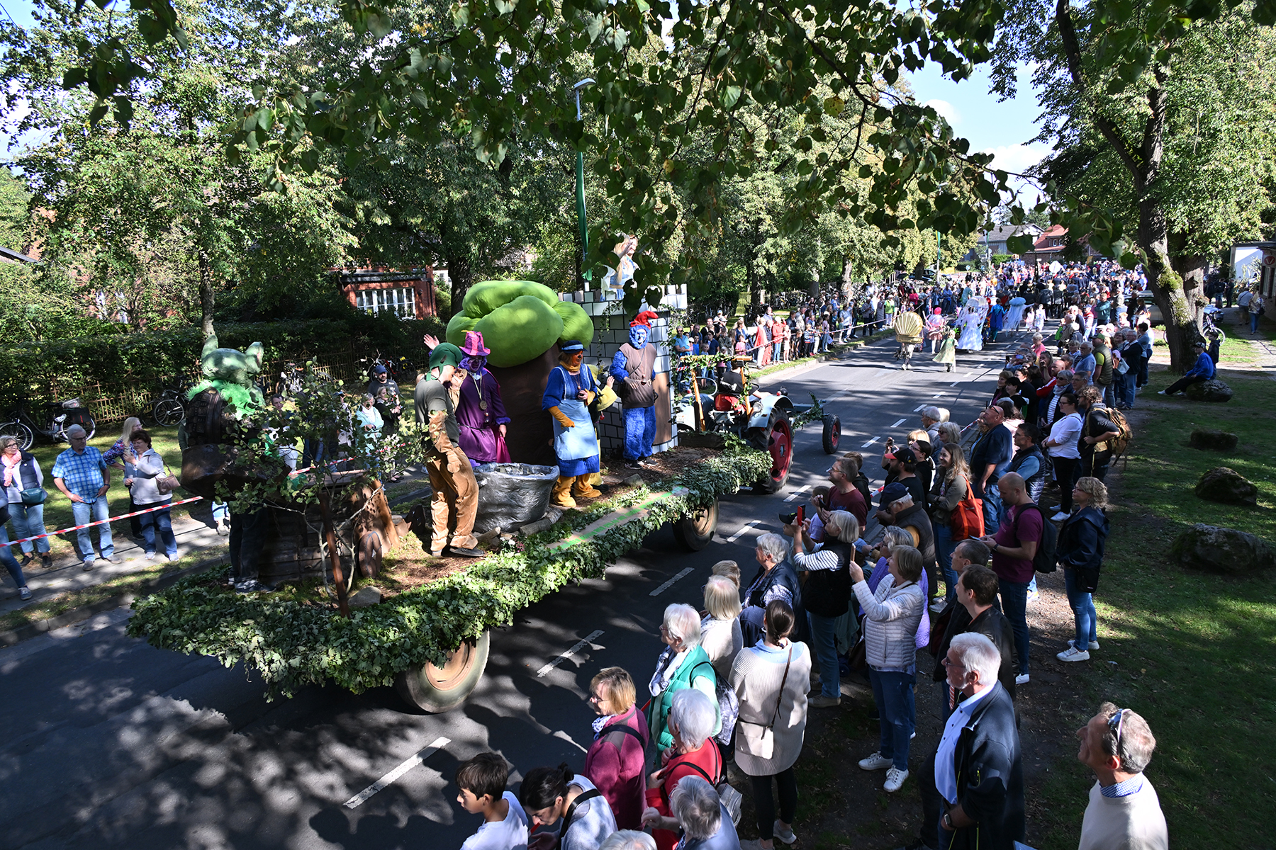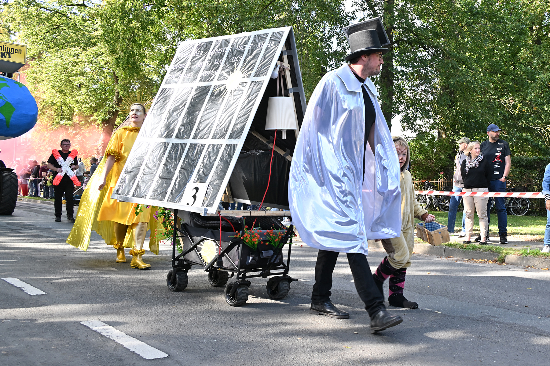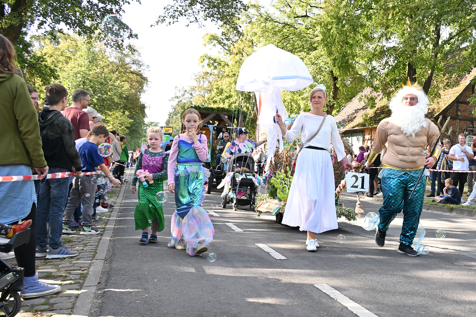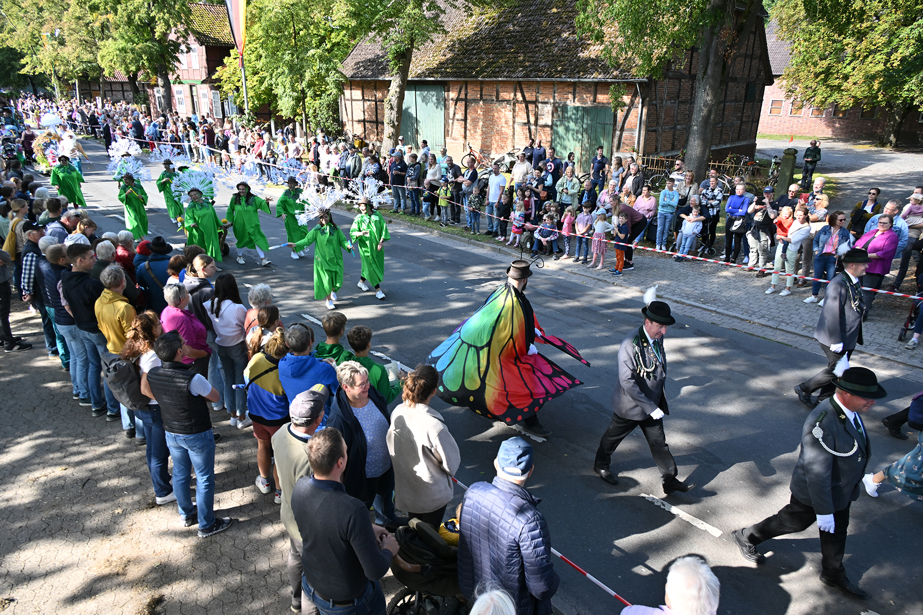 Königswetter beim großen Festumzug im Dorf der Könige: Am heutigen Sonntag, 24. September 2023, war der Burgdorfer Ortsteil Ramlingen der Mittelpunkt der Region. 27 Erntewagen und Fußgruppen machten sich zum Erntefest auf den Weg durch den Ort. Mit geschätzten 4000 Besuchern waren die Grüne Allee und der Festplatz von so vielen Besuchern gesäumt wie noch nie.