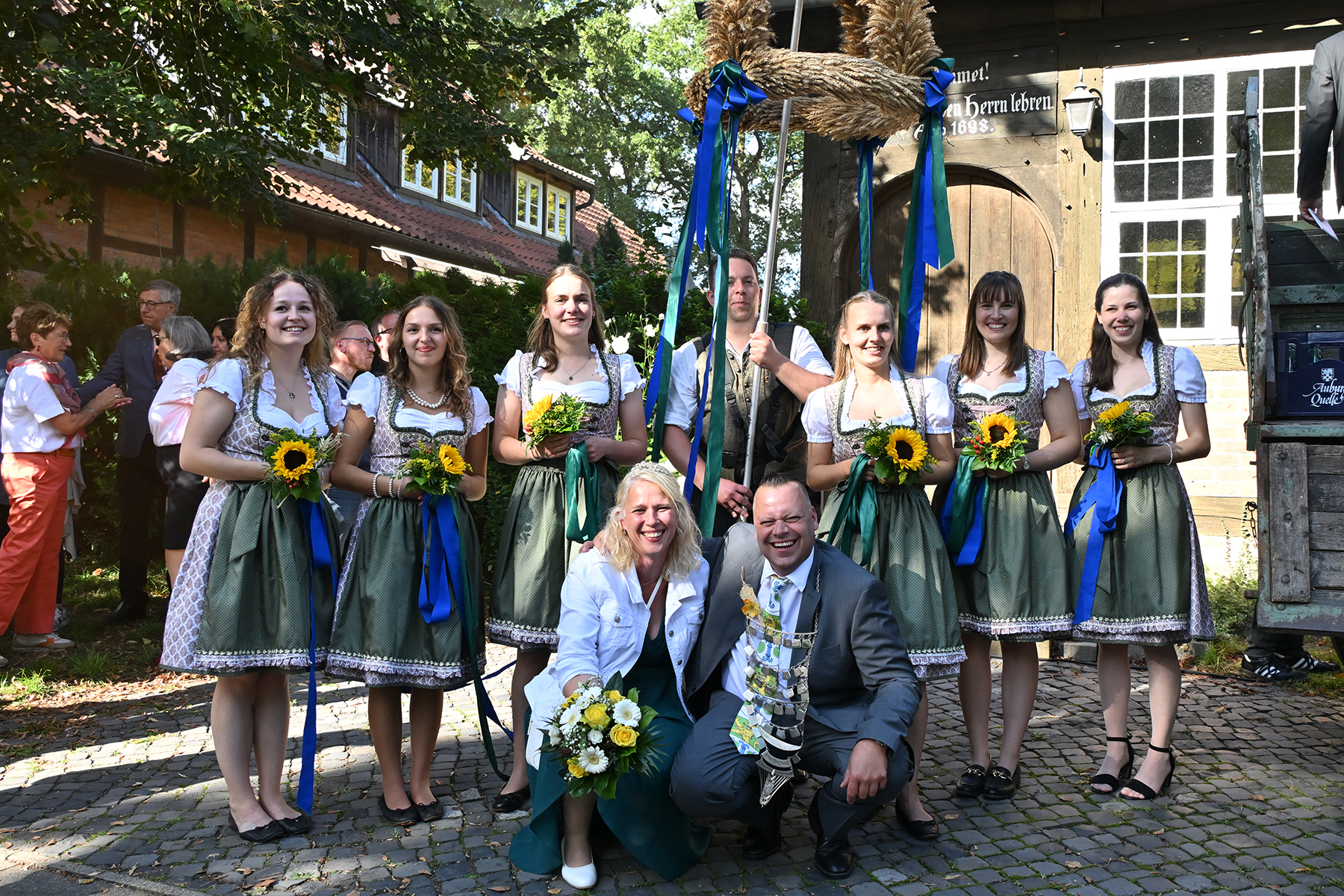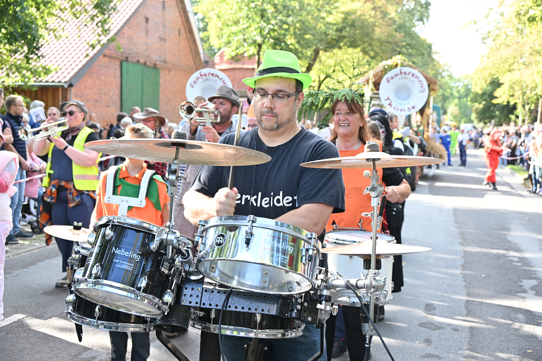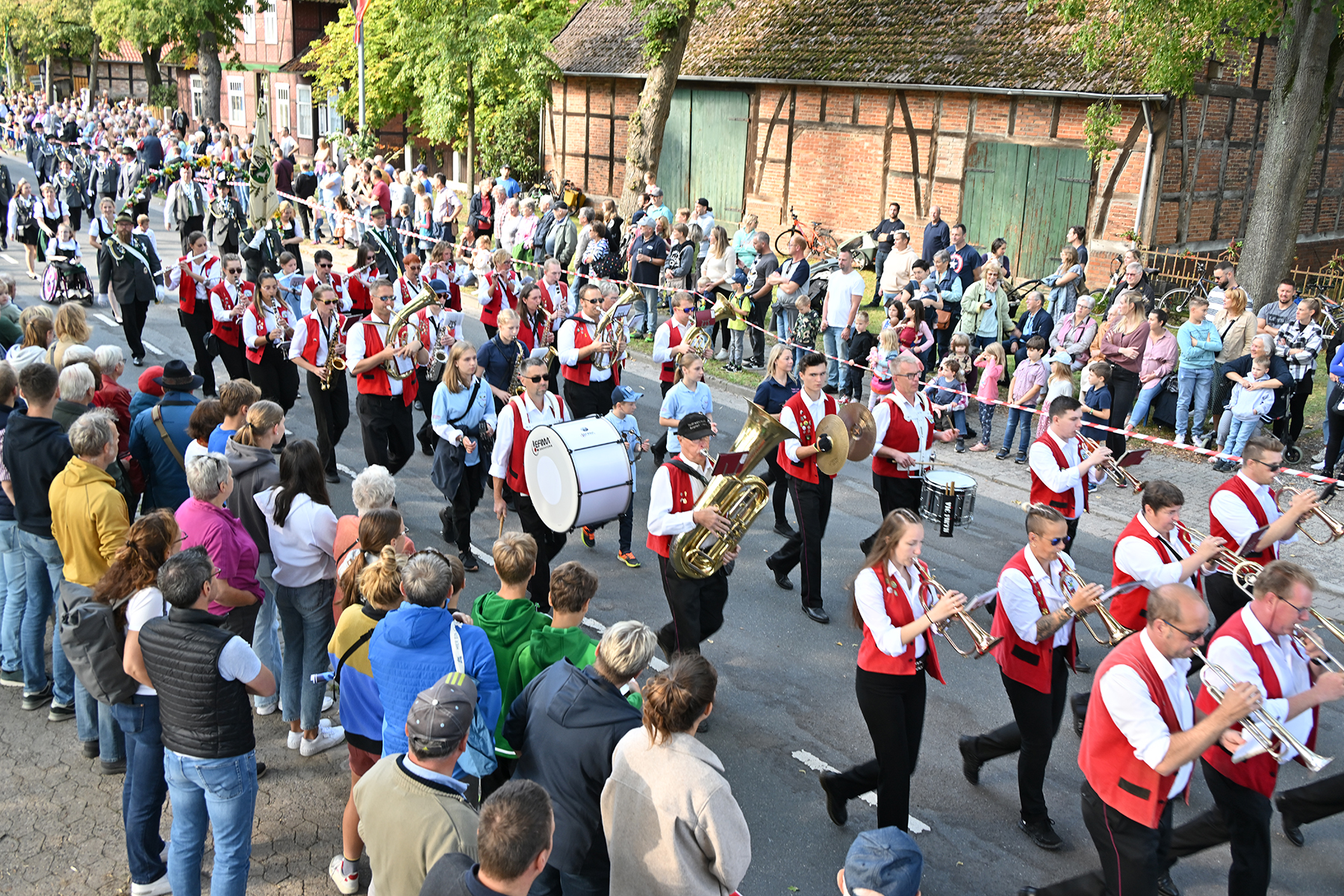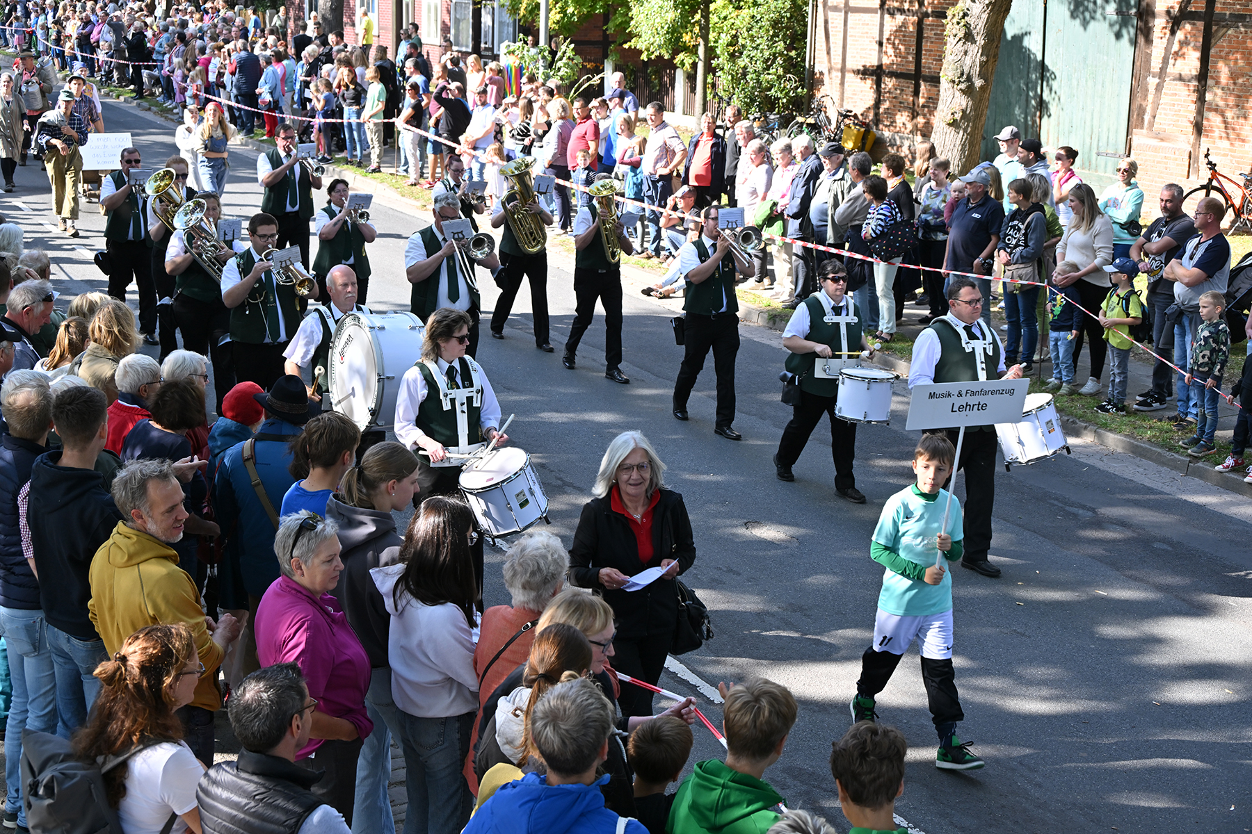 Anschließend reihten sich Erntekrone, Erntekönig und Ortsrat in den Zug ein, der dann zweimal durch den Ort führte. Begleitet wurde der Umzug vom Feuerwehrmusikzug Ramlingen-Ehlershausen, zum Fanfarencorps Thönse, vom Musikzug der Freiwilligen Feuerwehren Burgdorf und Hänigsen sowie vom Musik- und Fanfarenzug des Schützen-Corps Lehrte. Abgesichert wurde der Umzug wie immer von Ehrenamtlichen der Freiwilligen Feuerwehr Weferlingsen.