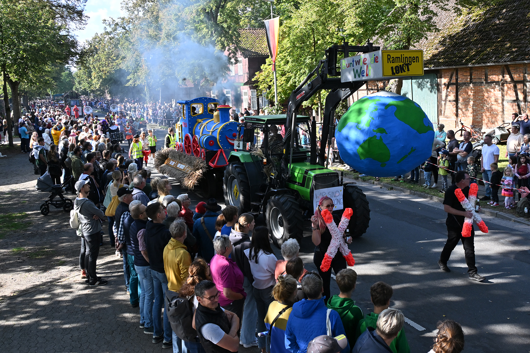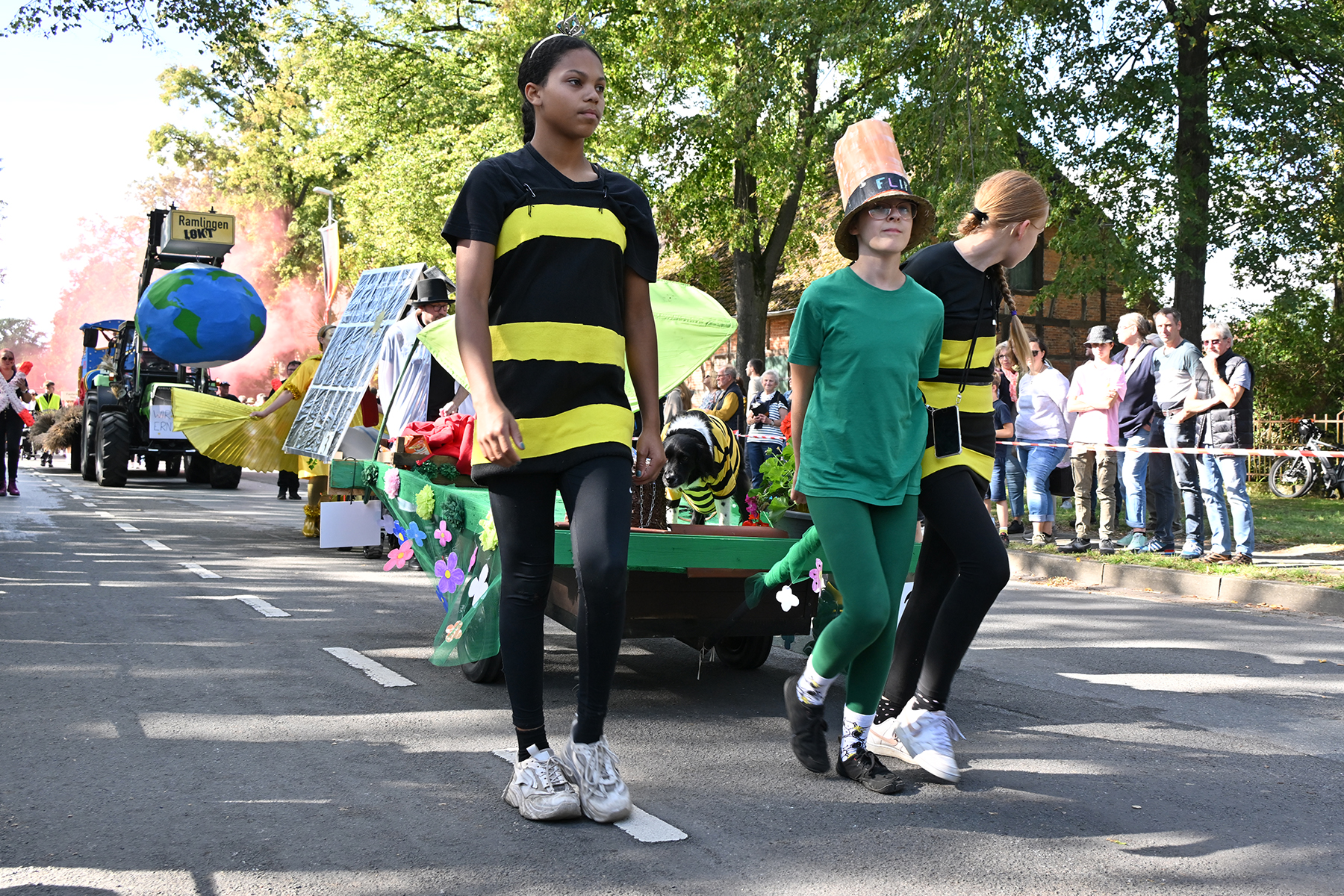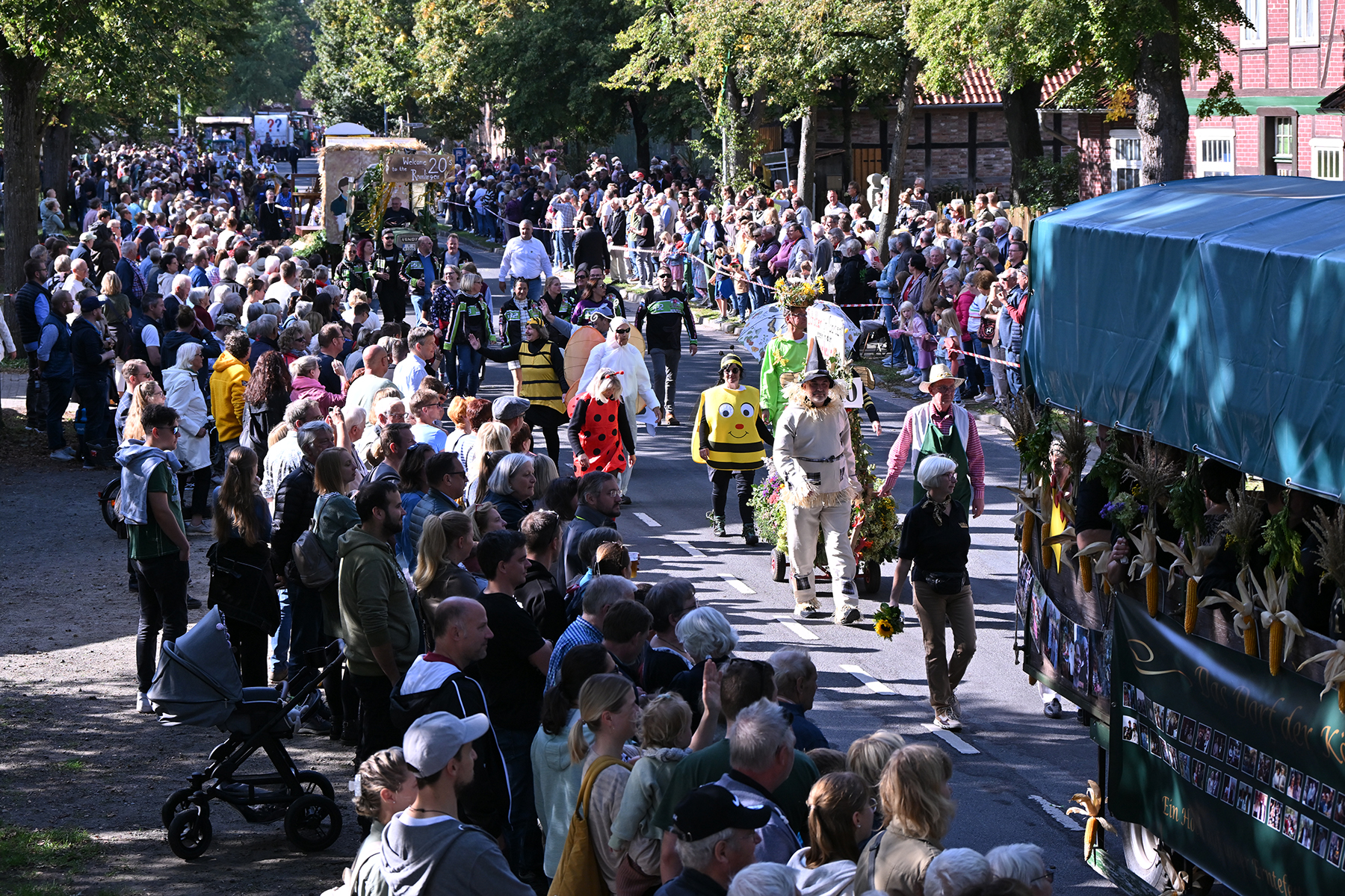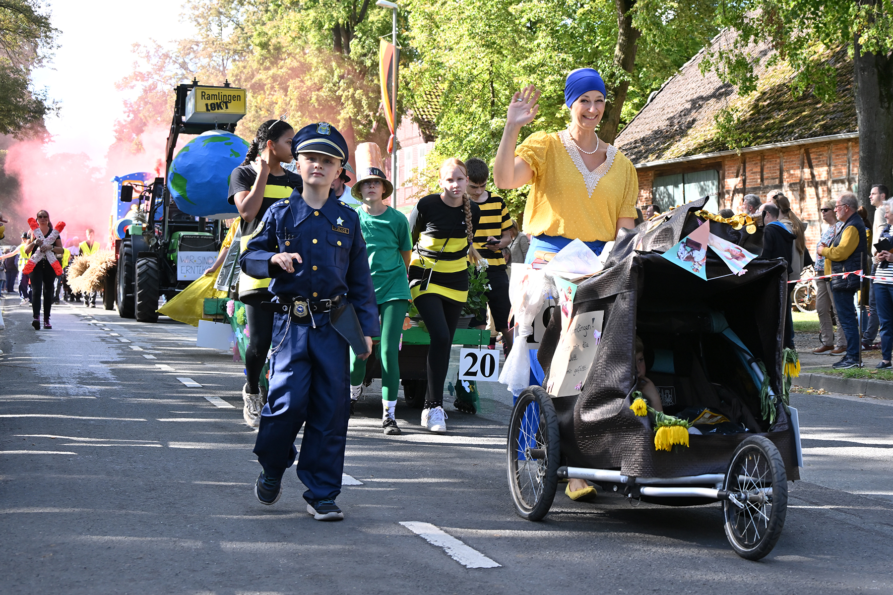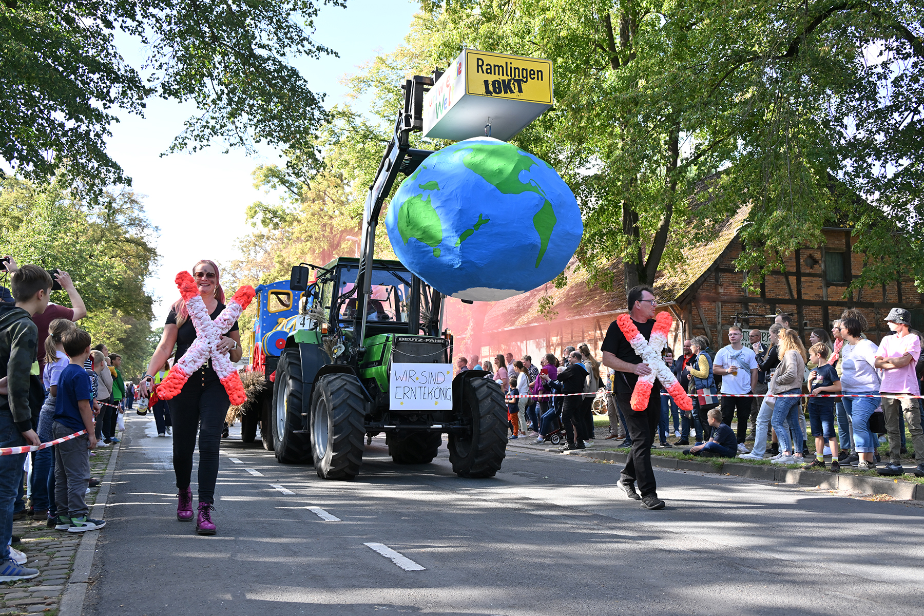 Es ist das Wochenende, auf das in Ramlingen das ganze Jahr hingefiebert wird. Im Geheimen werden die Erntewagen gebaut und die Gruppen lassen sich jedes Jahr neue Dinge einfallen. Noch ausgeklügelter, noch detailreicher. Aber auch die Fußgruppen überzeugten in diesem Jahr wieder einmal mehr durch fantasievolle Kostüme, die eigens für das Erntefest gefertigt wurden.