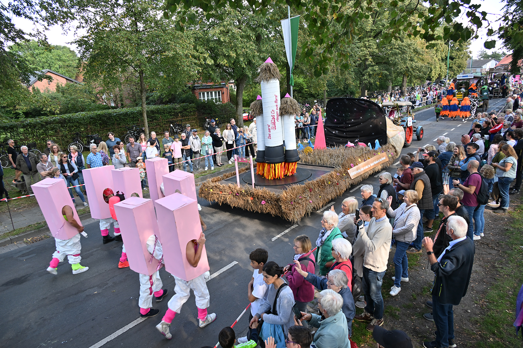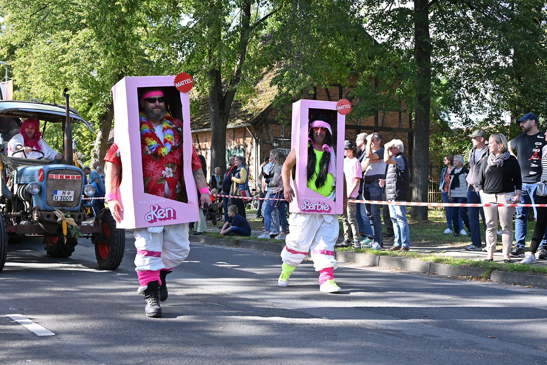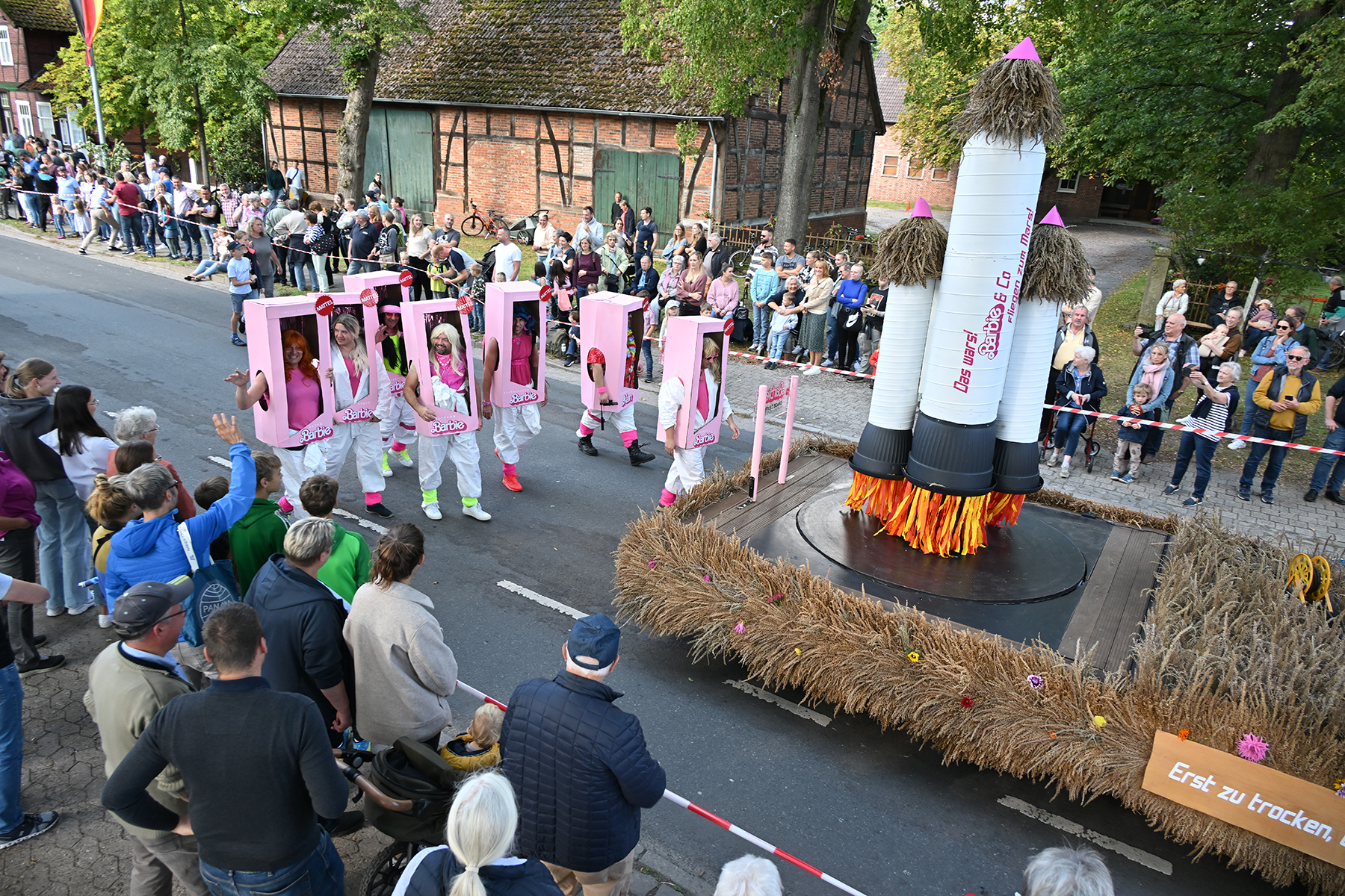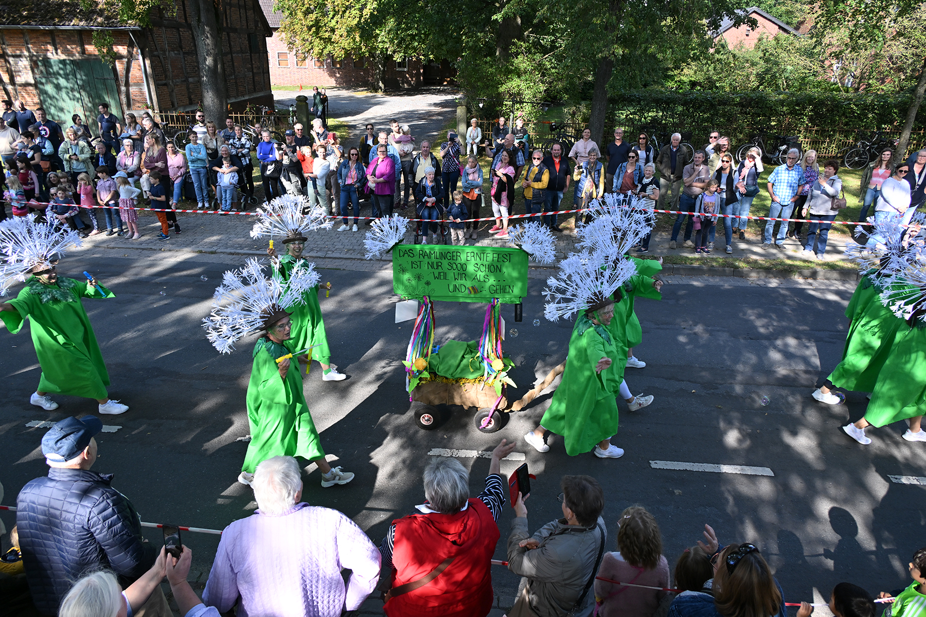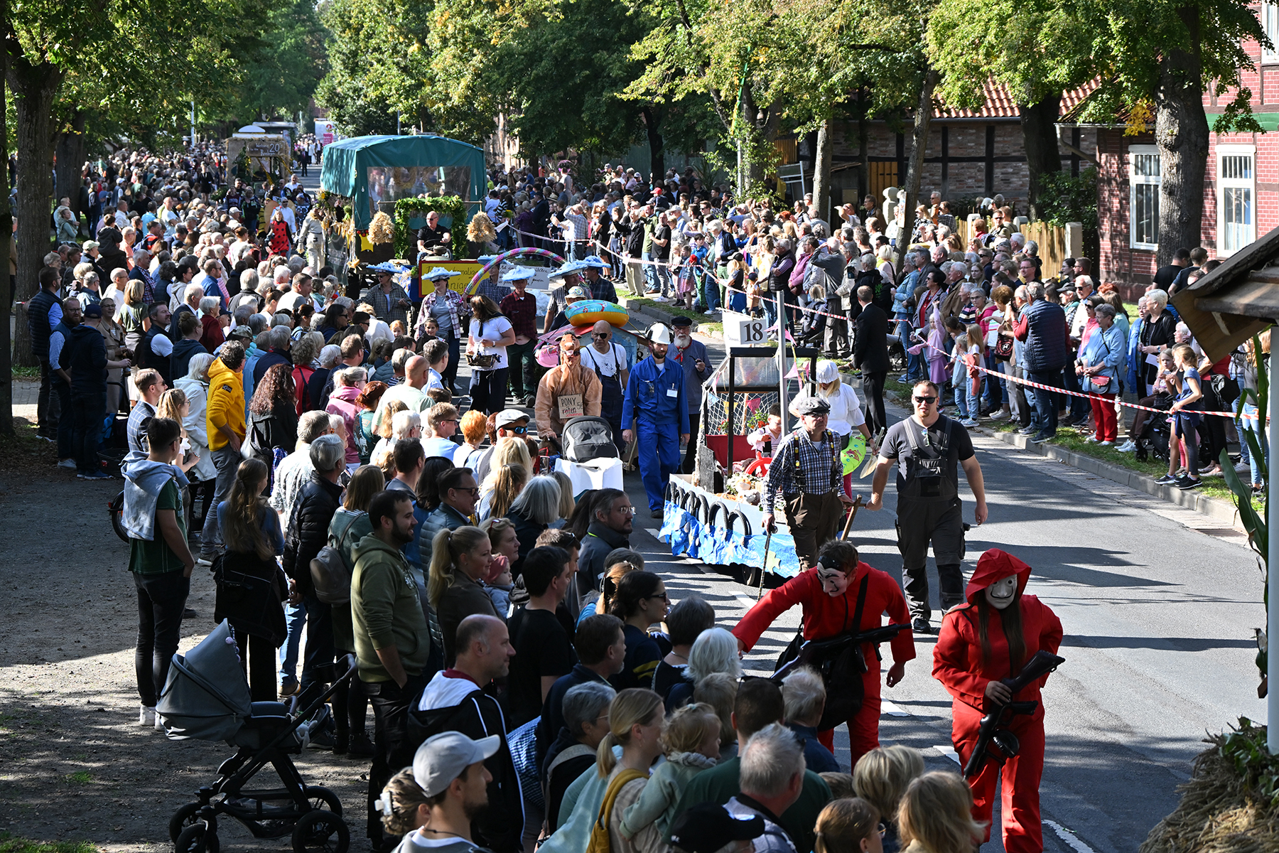 Es ist das Wochenende, auf das in Ramlingen das ganze Jahr hingefiebert wird. Im Geheimen werden die Erntewagen gebaut und die Gruppen lassen sich jedes Jahr neue Dinge einfallen. Noch ausgeklügelter, noch detailreicher. Aber auch die Fußgruppen überzeugten in diesem Jahr wieder einmal mehr durch fantasievolle Kostüme, die eigens für das Erntefest gefertigt wurden.