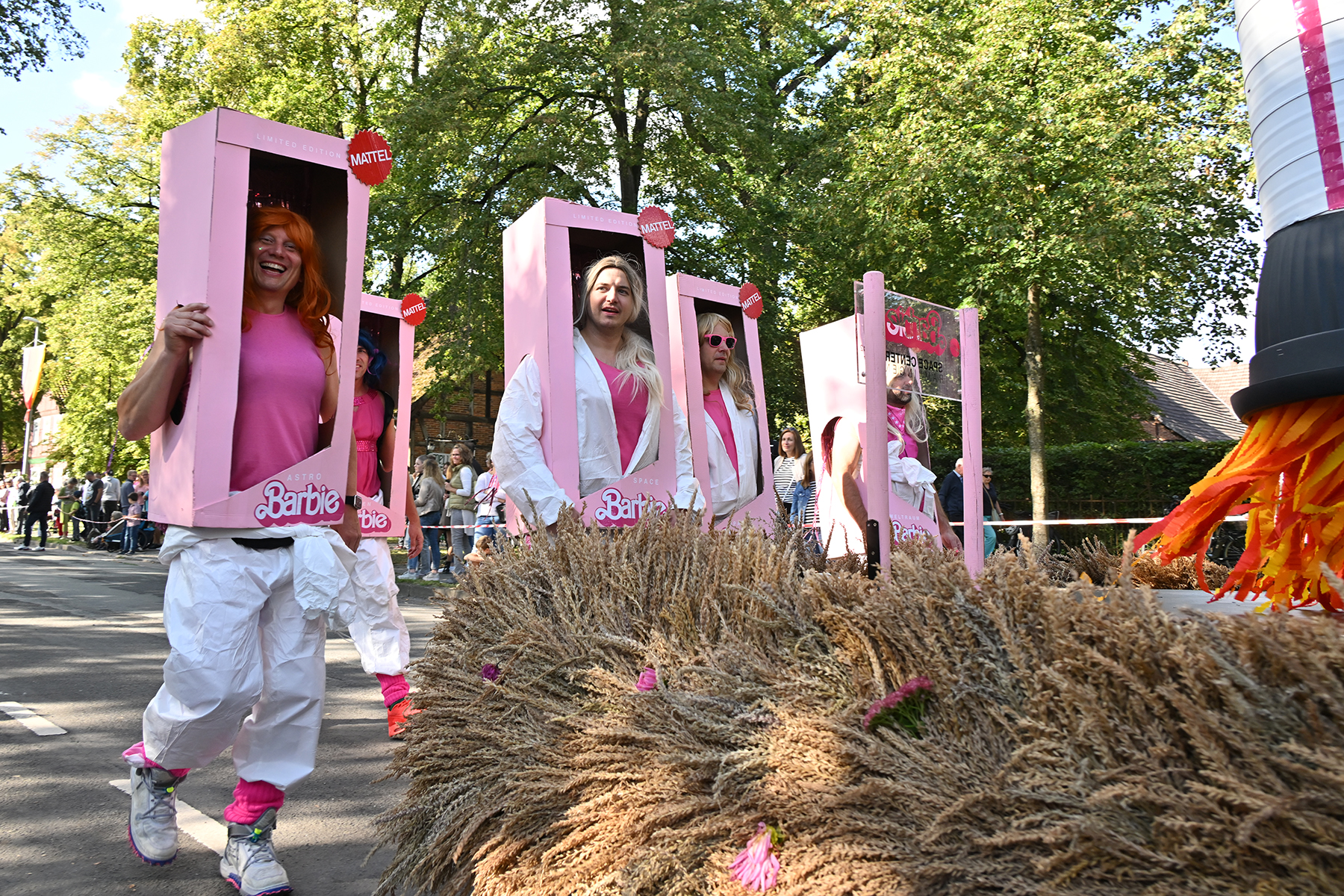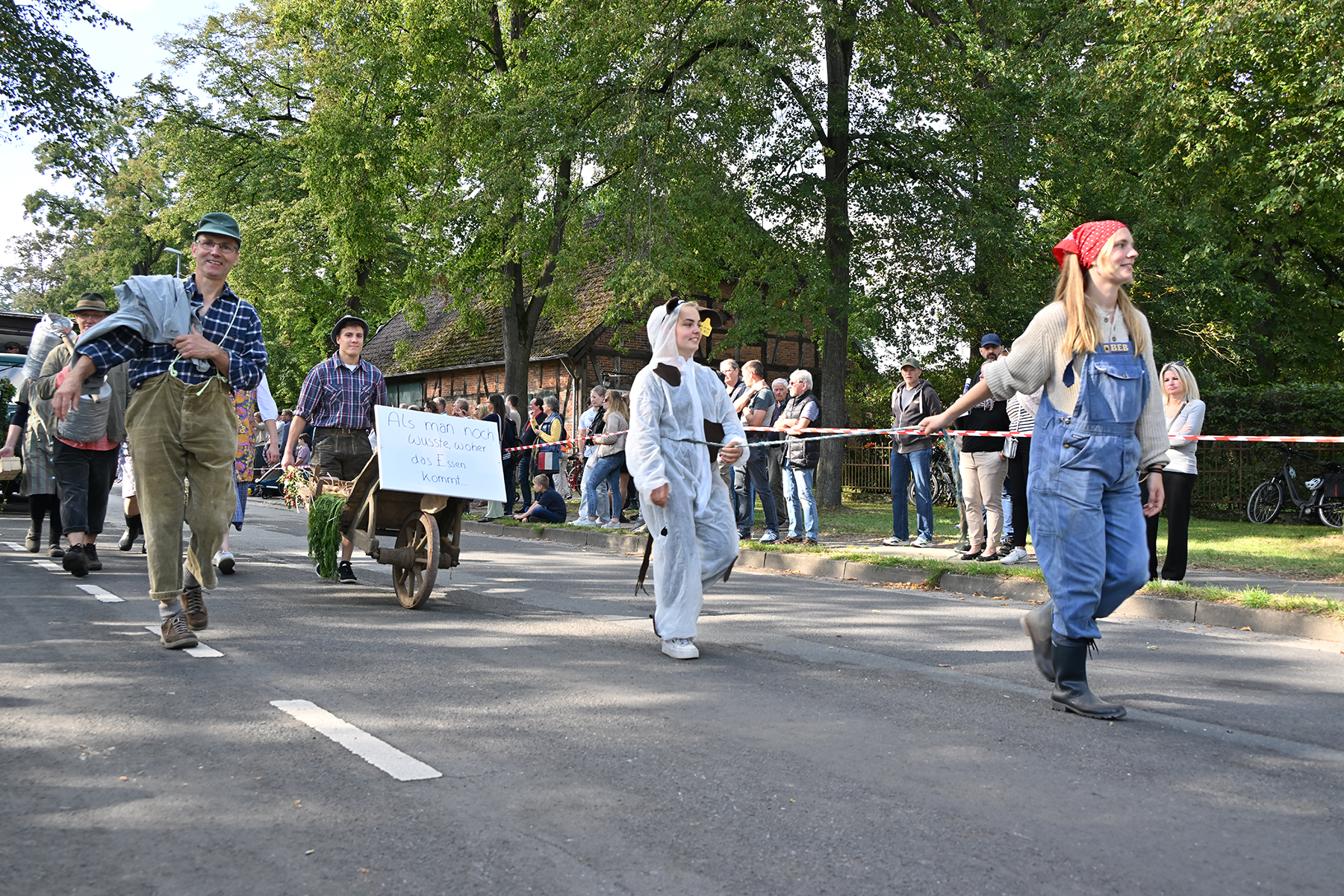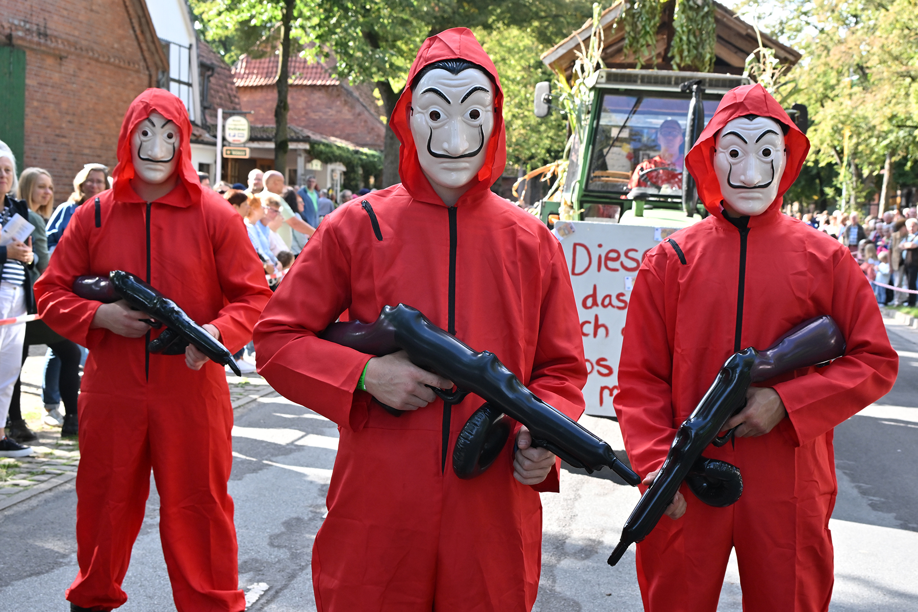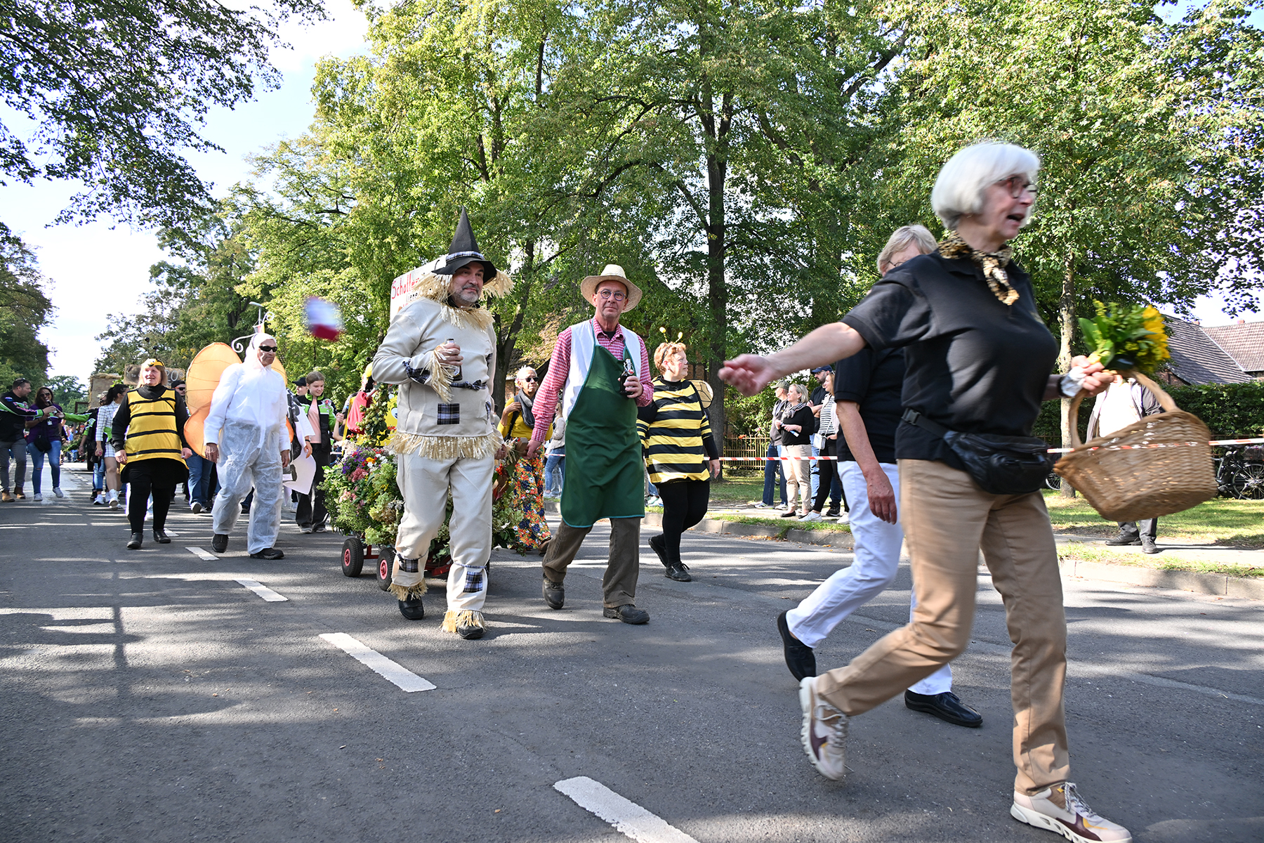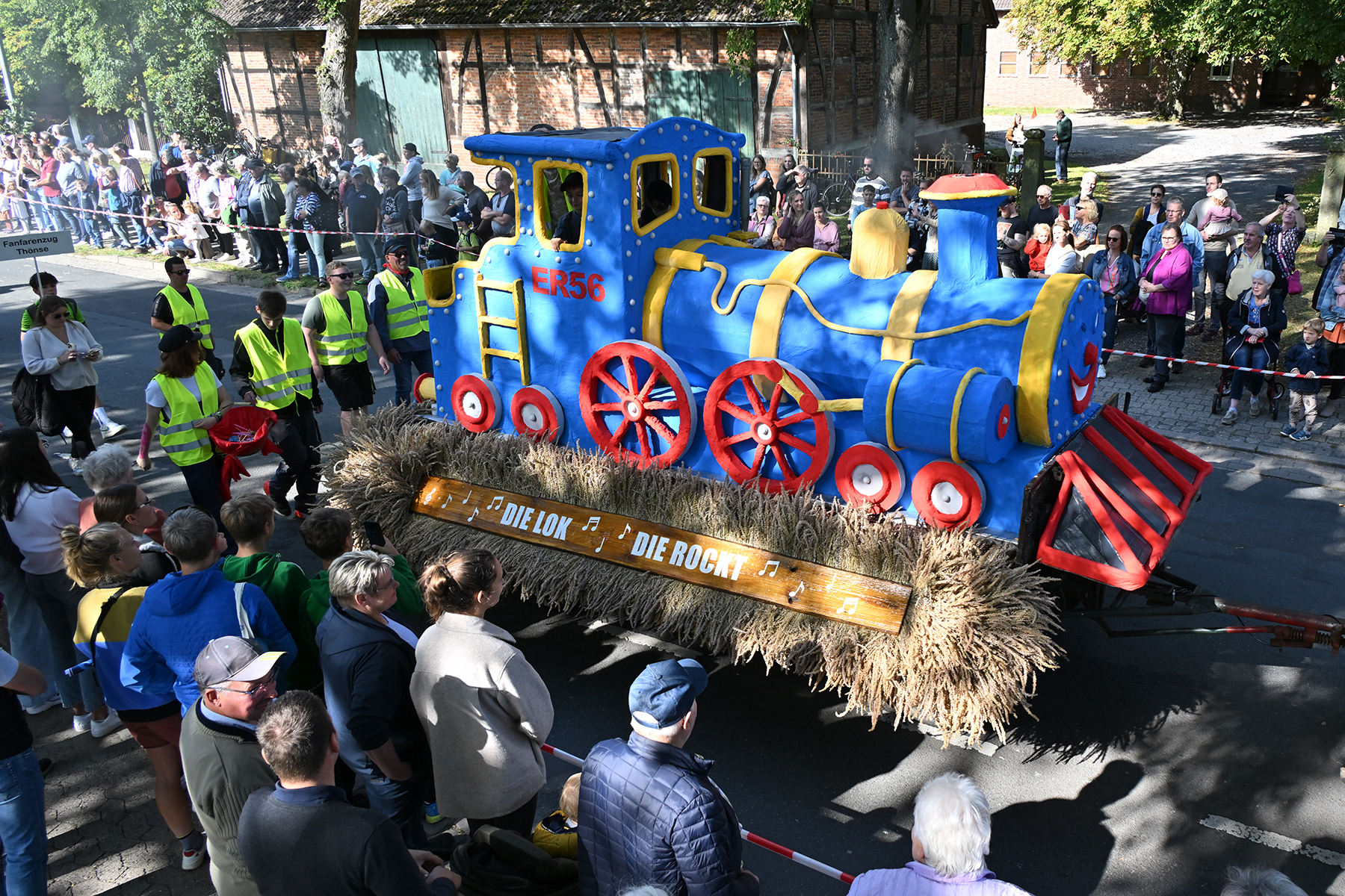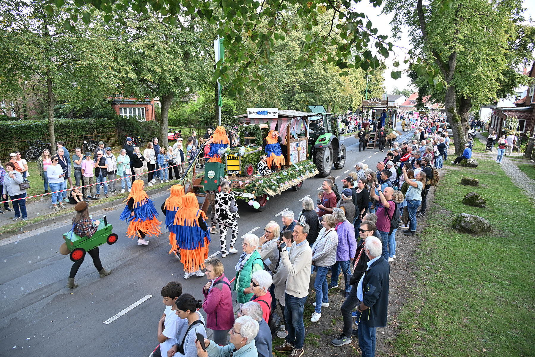 Es ist das Wochenende, auf das in Ramlingen das ganze Jahr hingefiebert wird. Im Geheimen werden die Erntewagen gebaut und die Gruppen lassen sich jedes Jahr neue Dinge einfallen. Noch ausgeklügelter, noch detailreicher. Aber auch die Fußgruppen überzeugten in diesem Jahr wieder einmal mehr durch fantasievolle Kostüme, die eigens für das Erntefest gefertigt wurden.