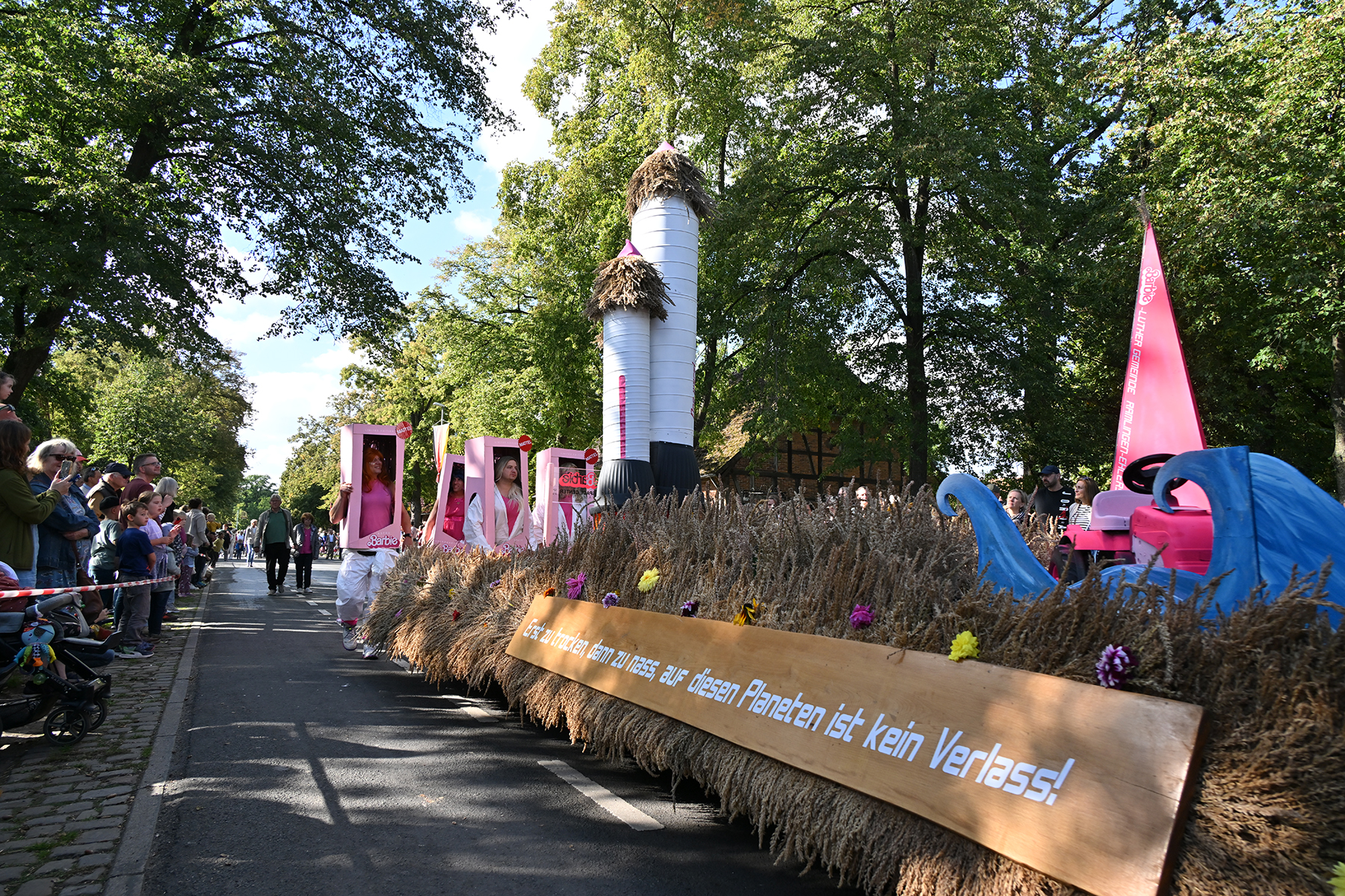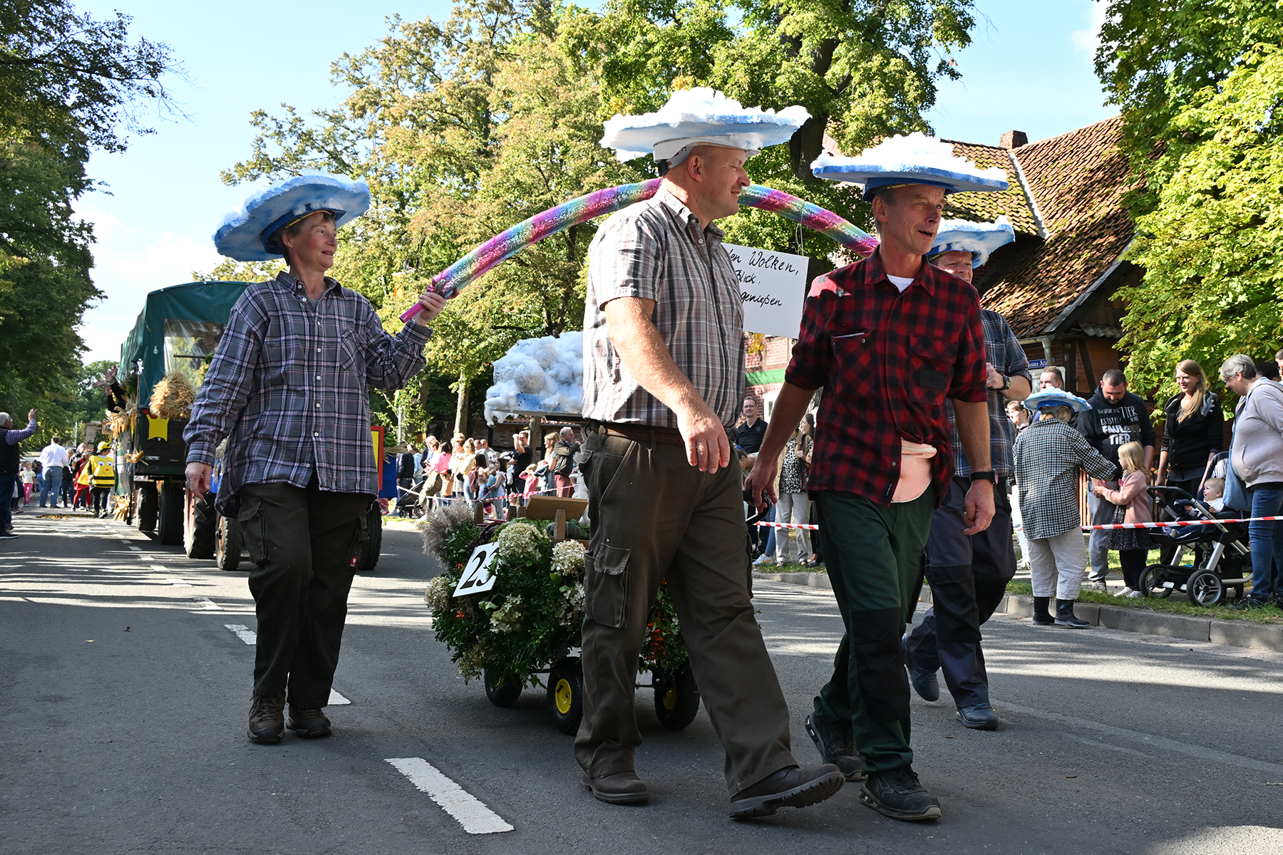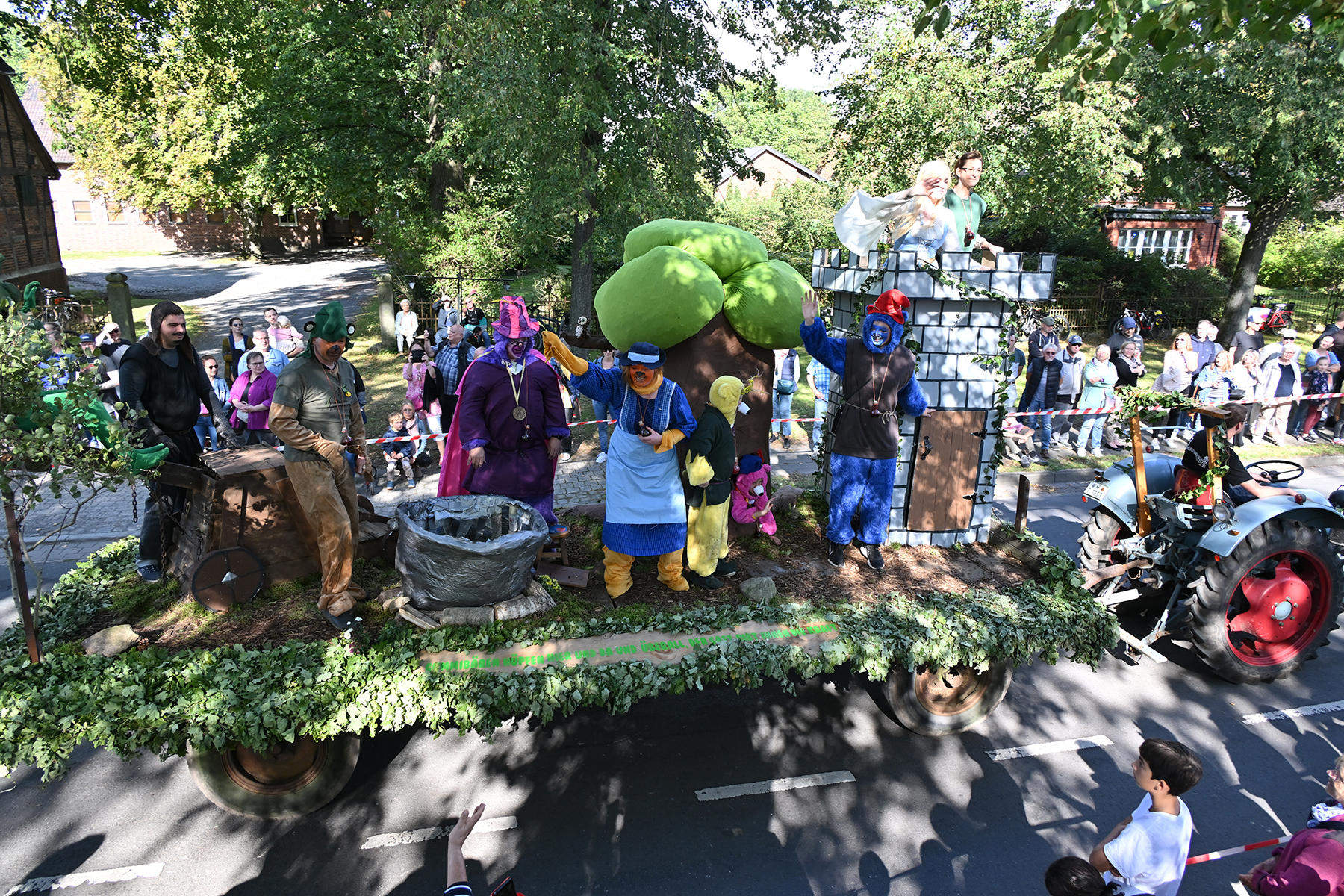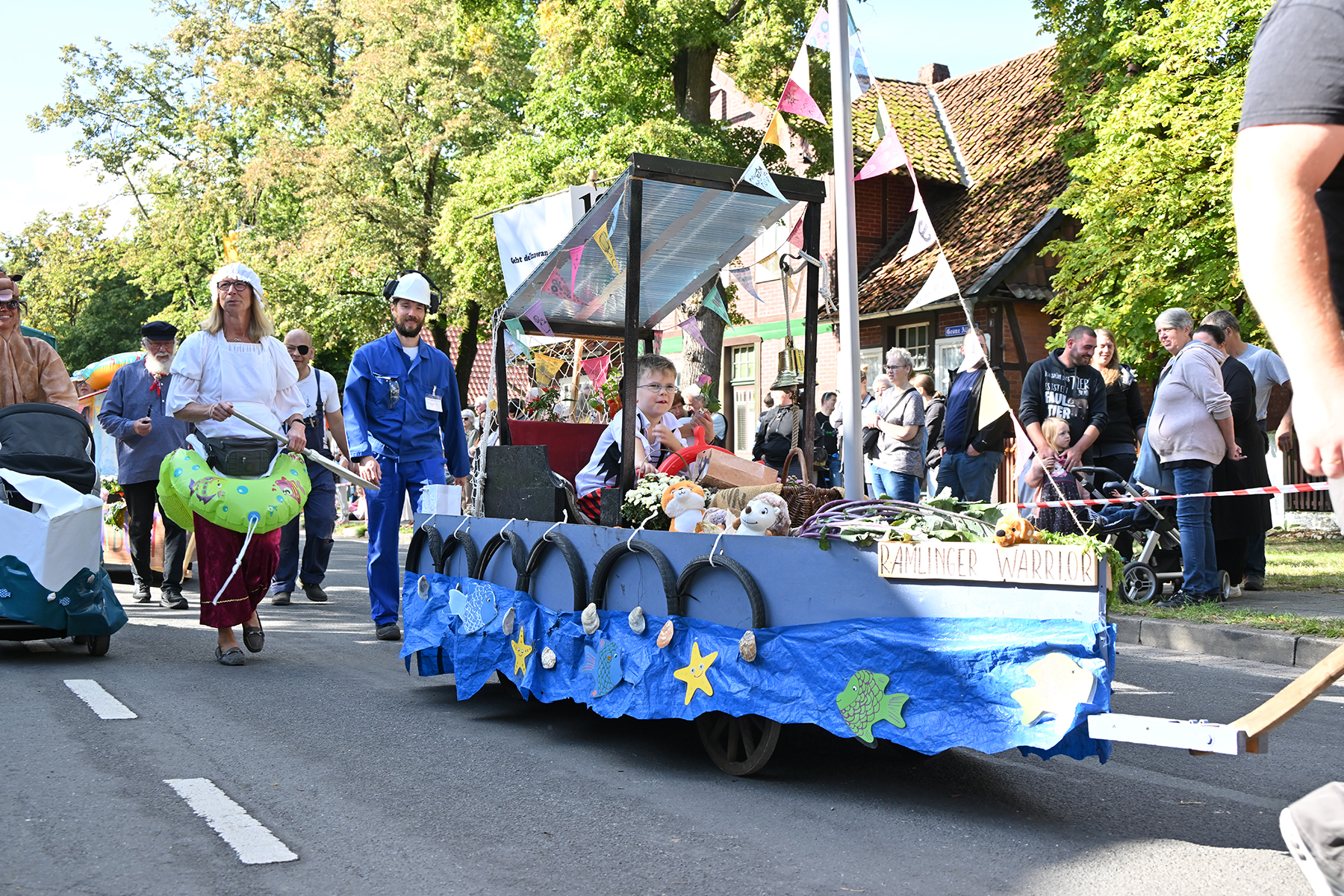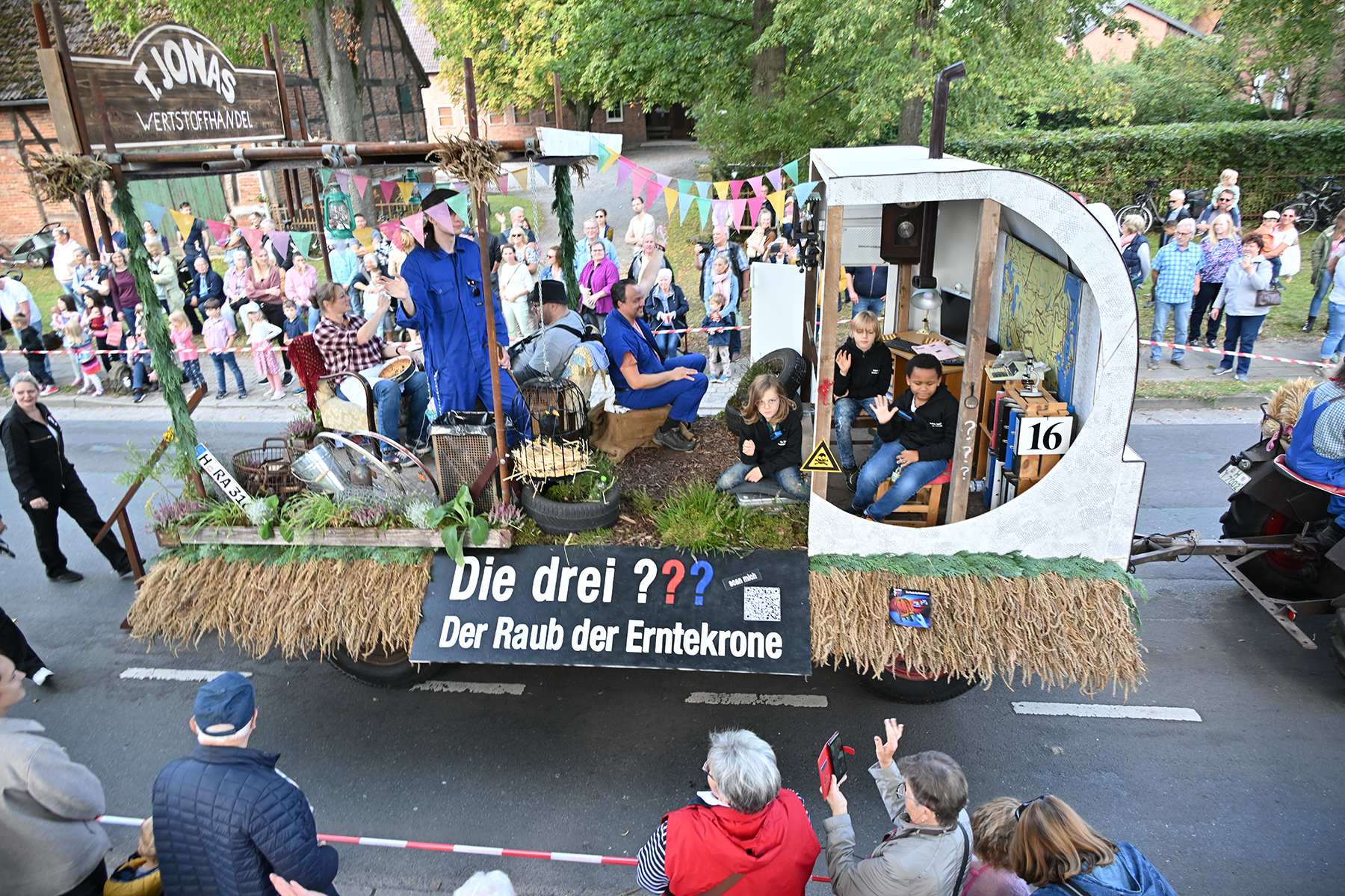 Es ist das Wochenende, auf das in Ramlingen das ganze Jahr hingefiebert wird. Im Geheimen werden die Erntewagen gebaut und die Gruppen lassen sich jedes Jahr neue Dinge einfallen. Noch ausgeklügelter, noch detailreicher. Aber auch die Fußgruppen überzeugten in diesem Jahr wieder einmal mehr durch fantasievolle Kostüme, die eigens für das Erntefest gefertigt wurden.