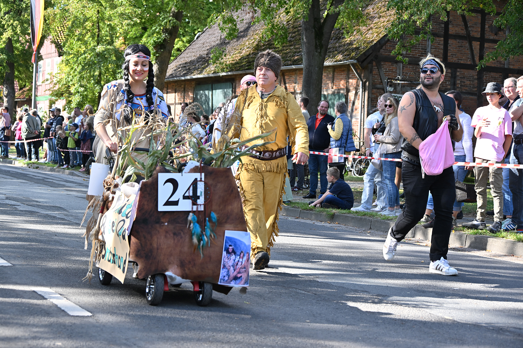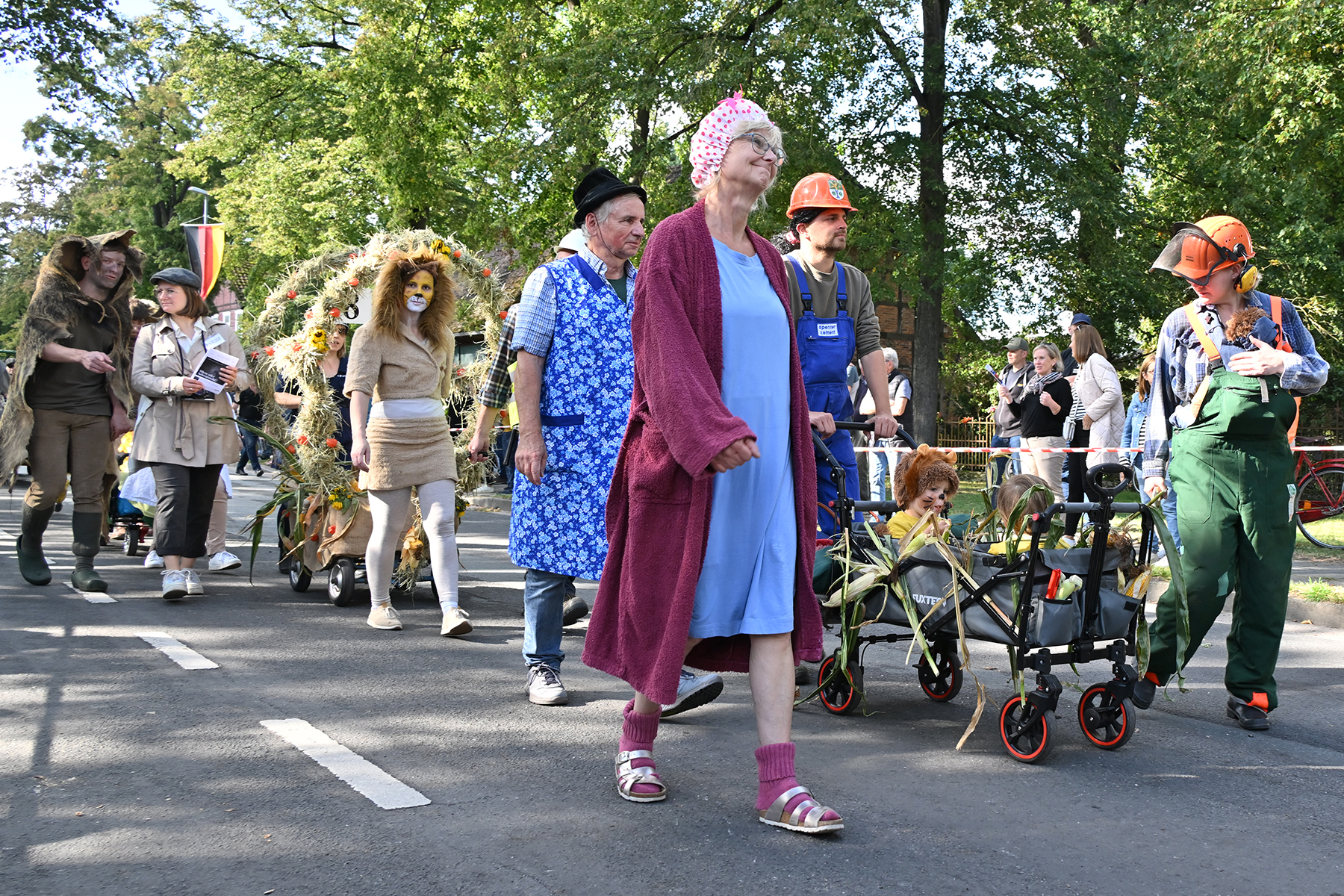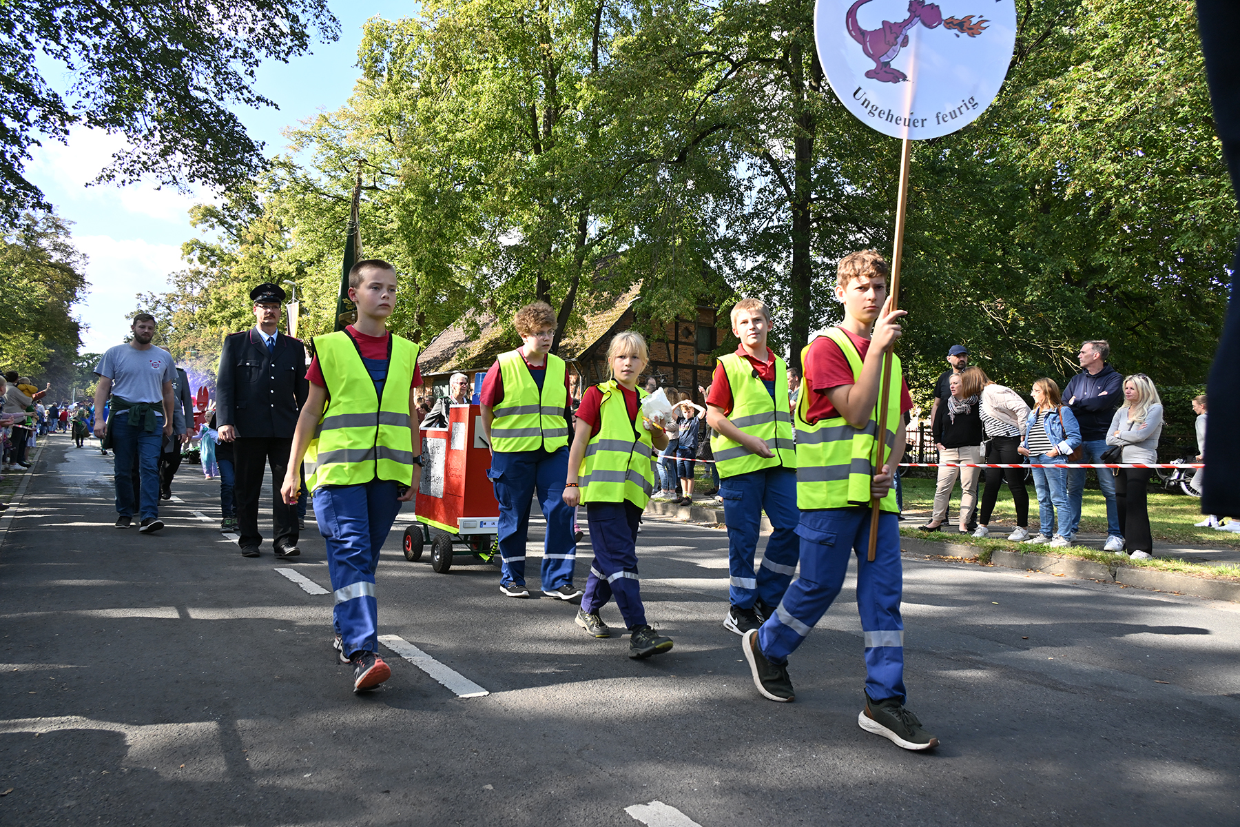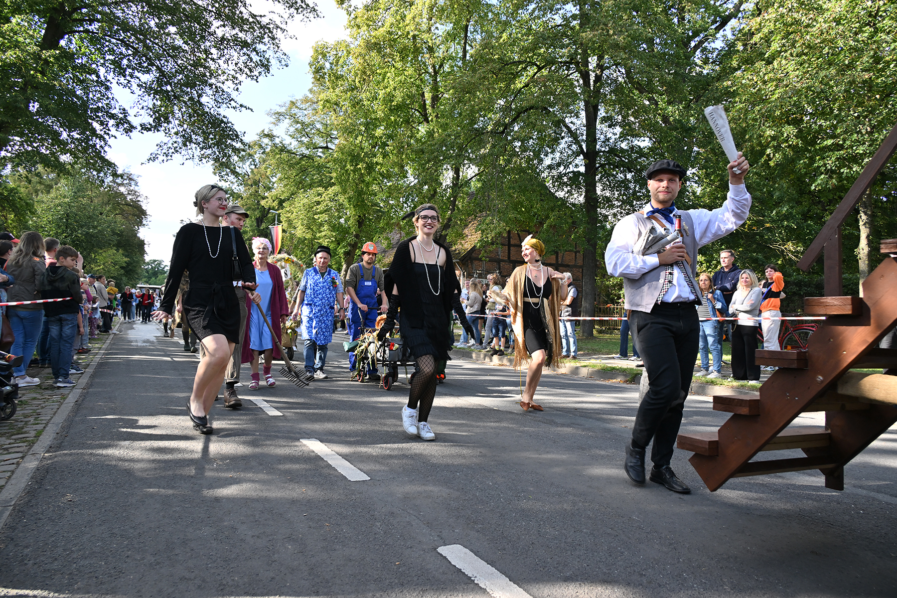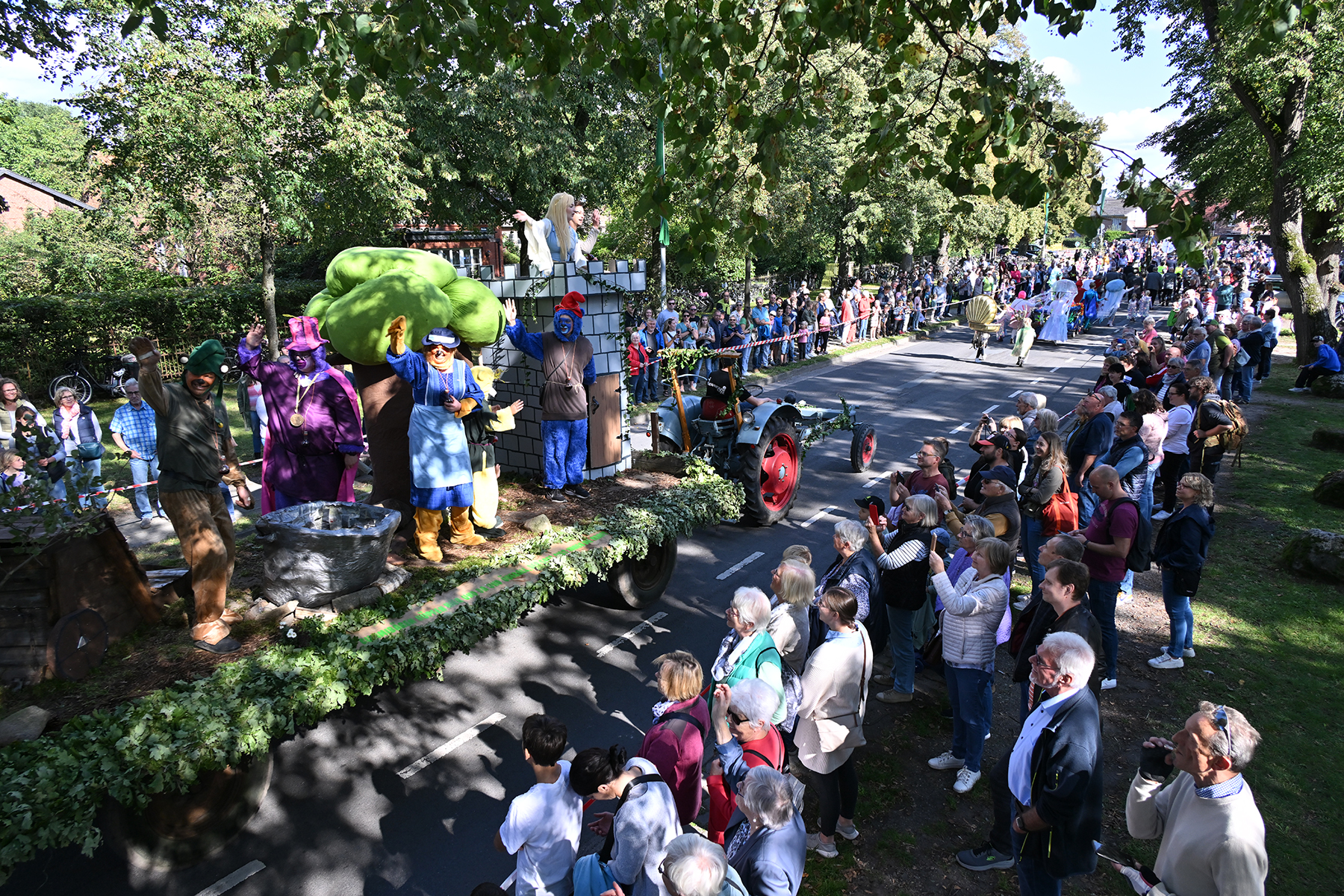 Es ist das Wochenende, auf das in Ramlingen das ganze Jahr hingefiebert wird. Im Geheimen werden die Erntewagen gebaut und die Gruppen lassen sich jedes Jahr neue Dinge einfallen. Noch ausgeklügelter, noch detailreicher. Aber auch die Fußgruppen überzeugten in diesem Jahr wieder einmal mehr durch fantasievolle Kostüme, die eigens für das Erntefest gefertigt wurden.