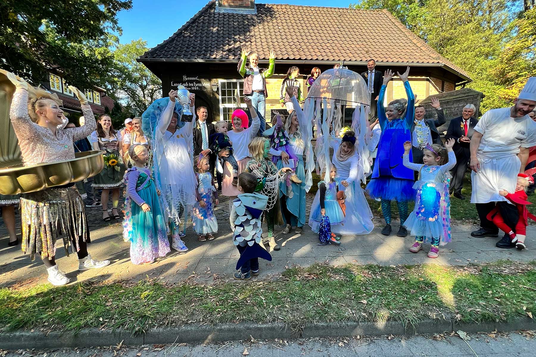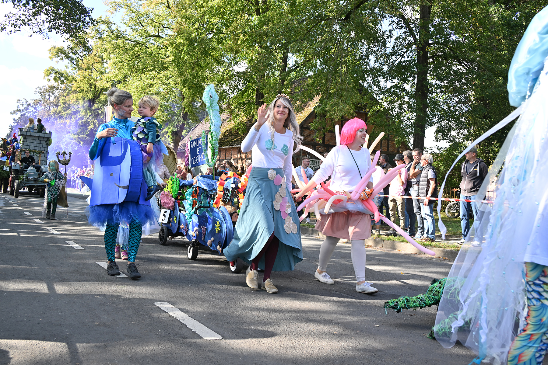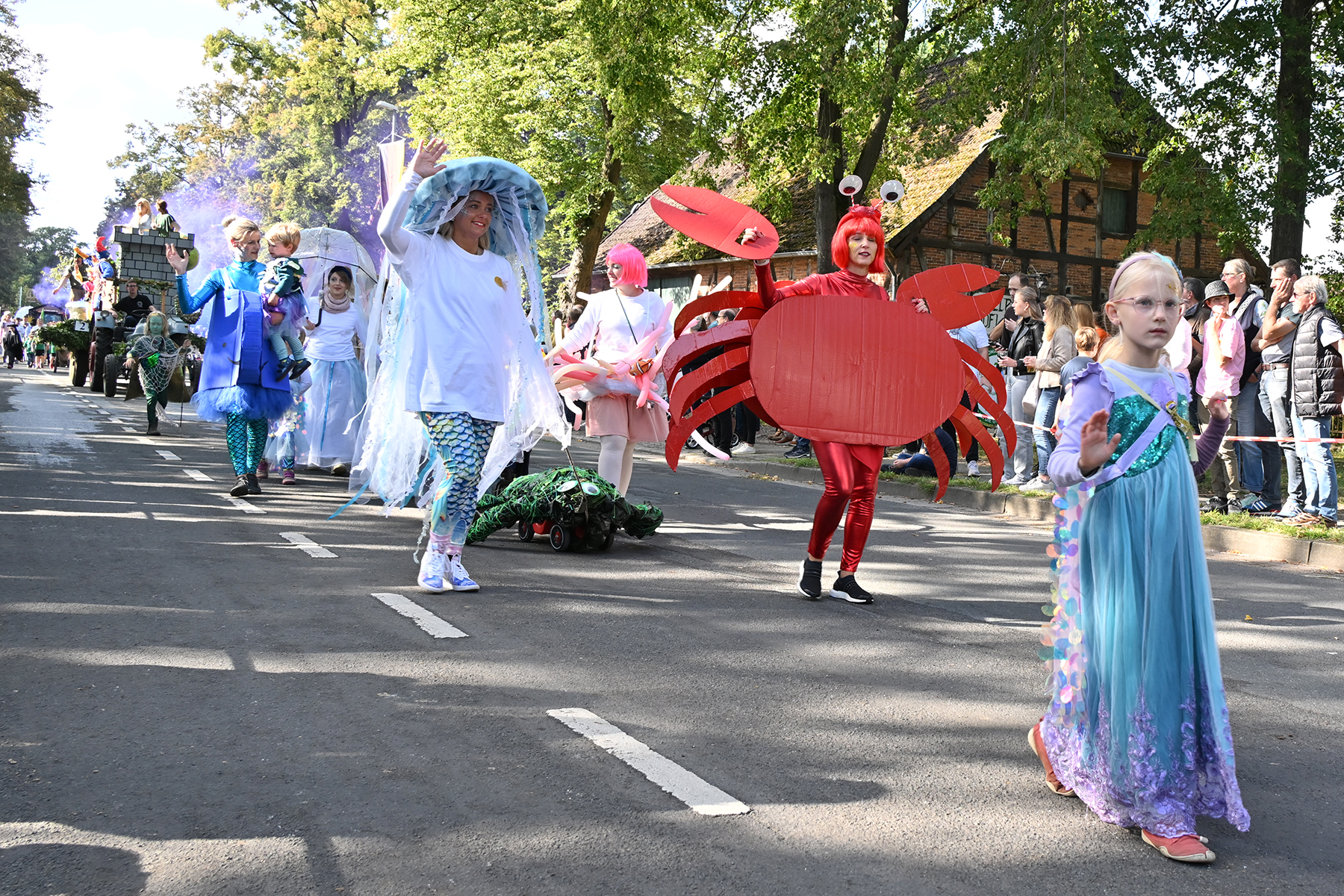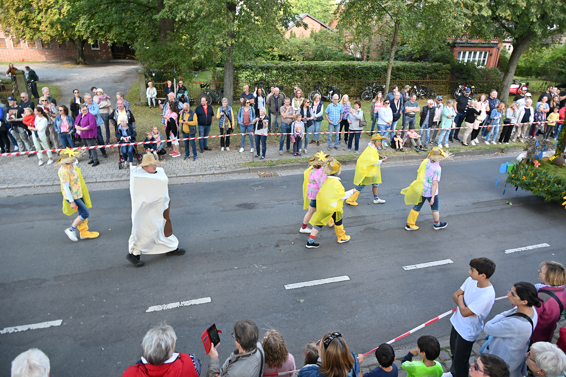 Bei den Fußgruppen gewann die Gruppe "Ramlingen ist Mee(r)" vor "Barbieland hin oder her, Erntefest liebt Barbie viel mehr" und dem Team "Das Ramlinger Erntefest ist nur soooo schön, weil wir als Pusteblume und Schmetterling gehen".