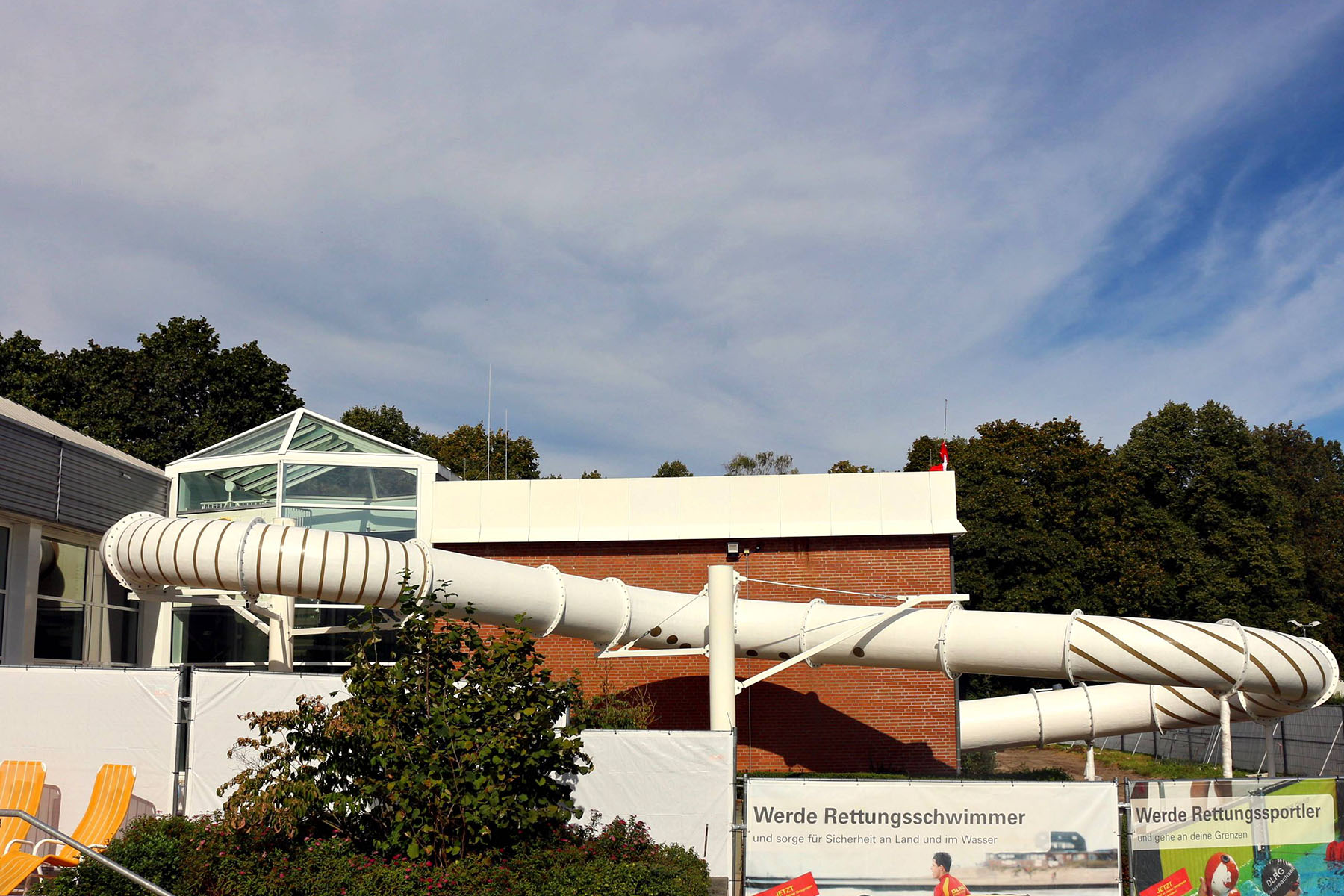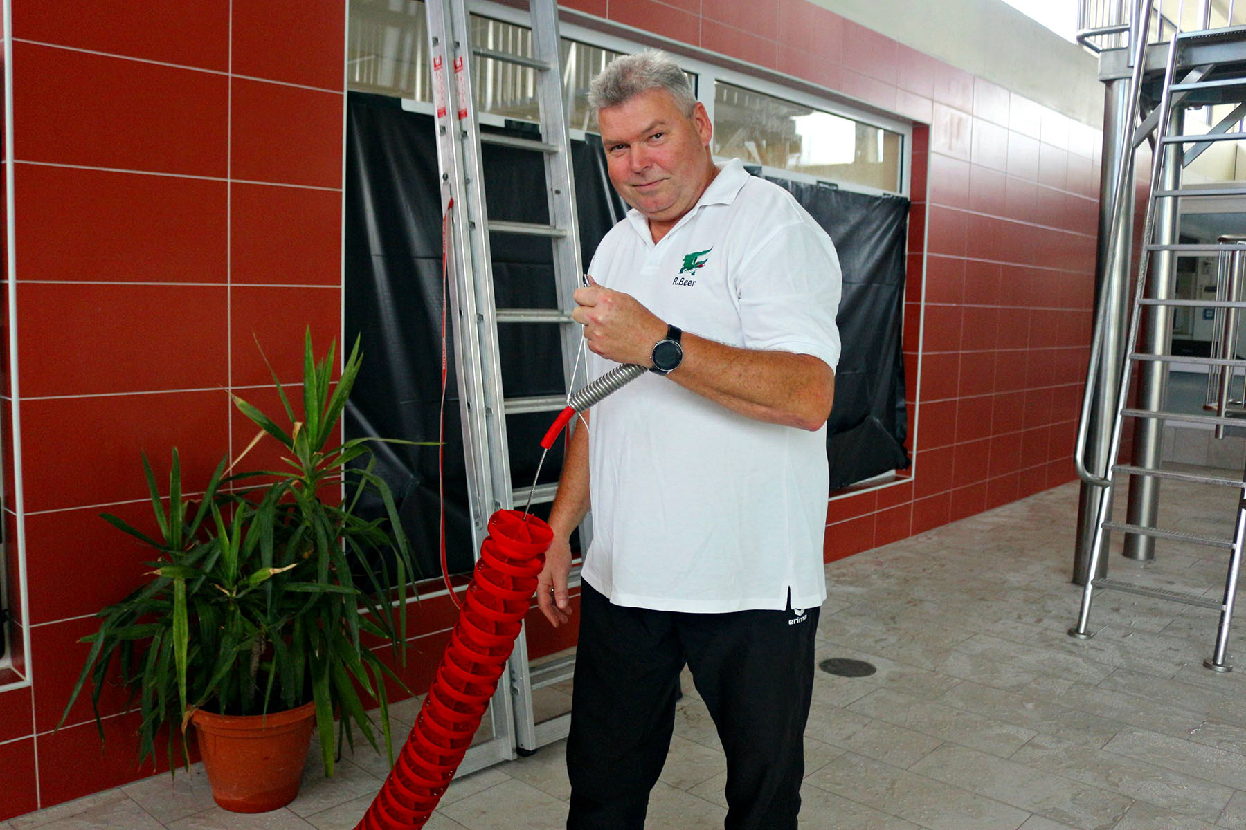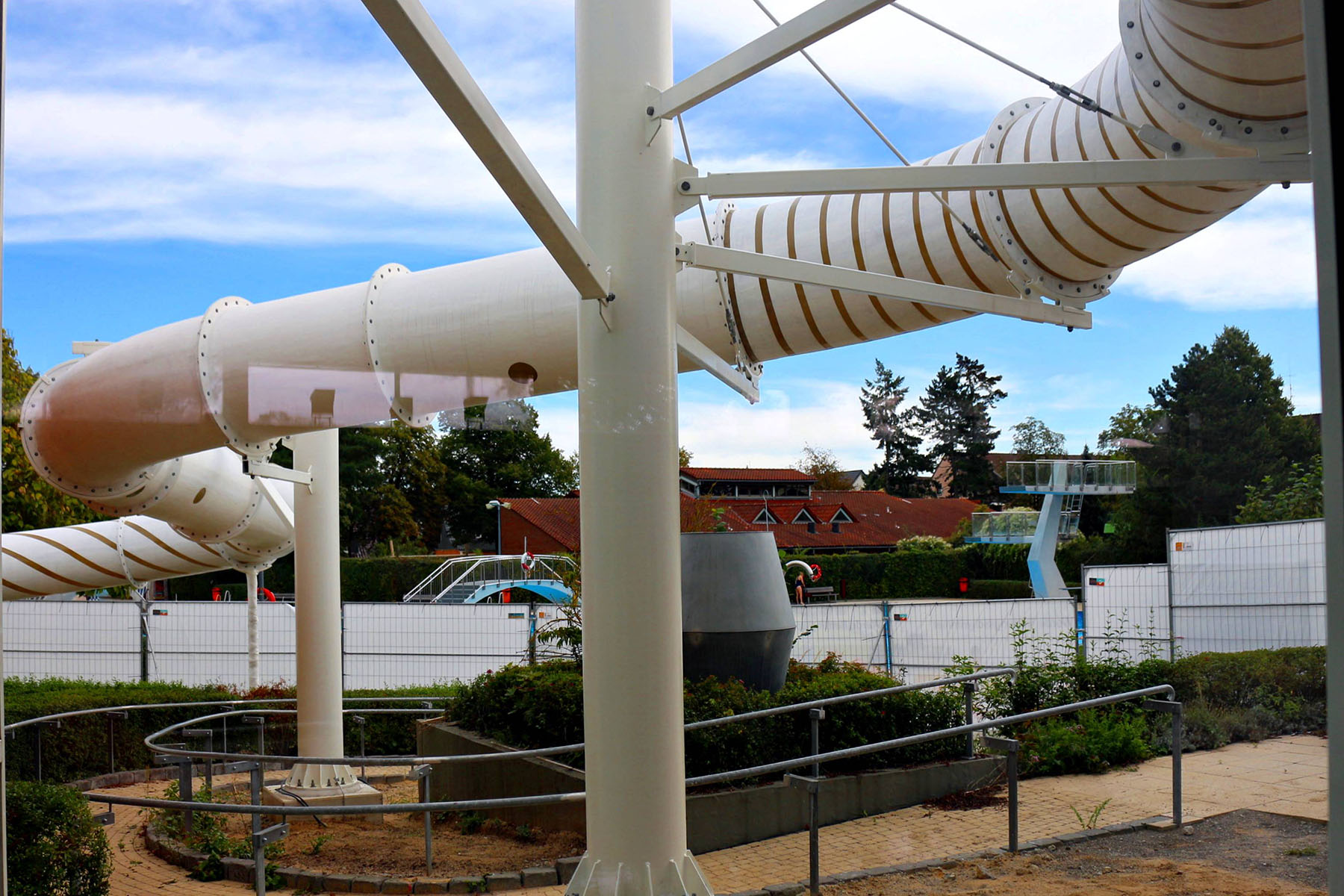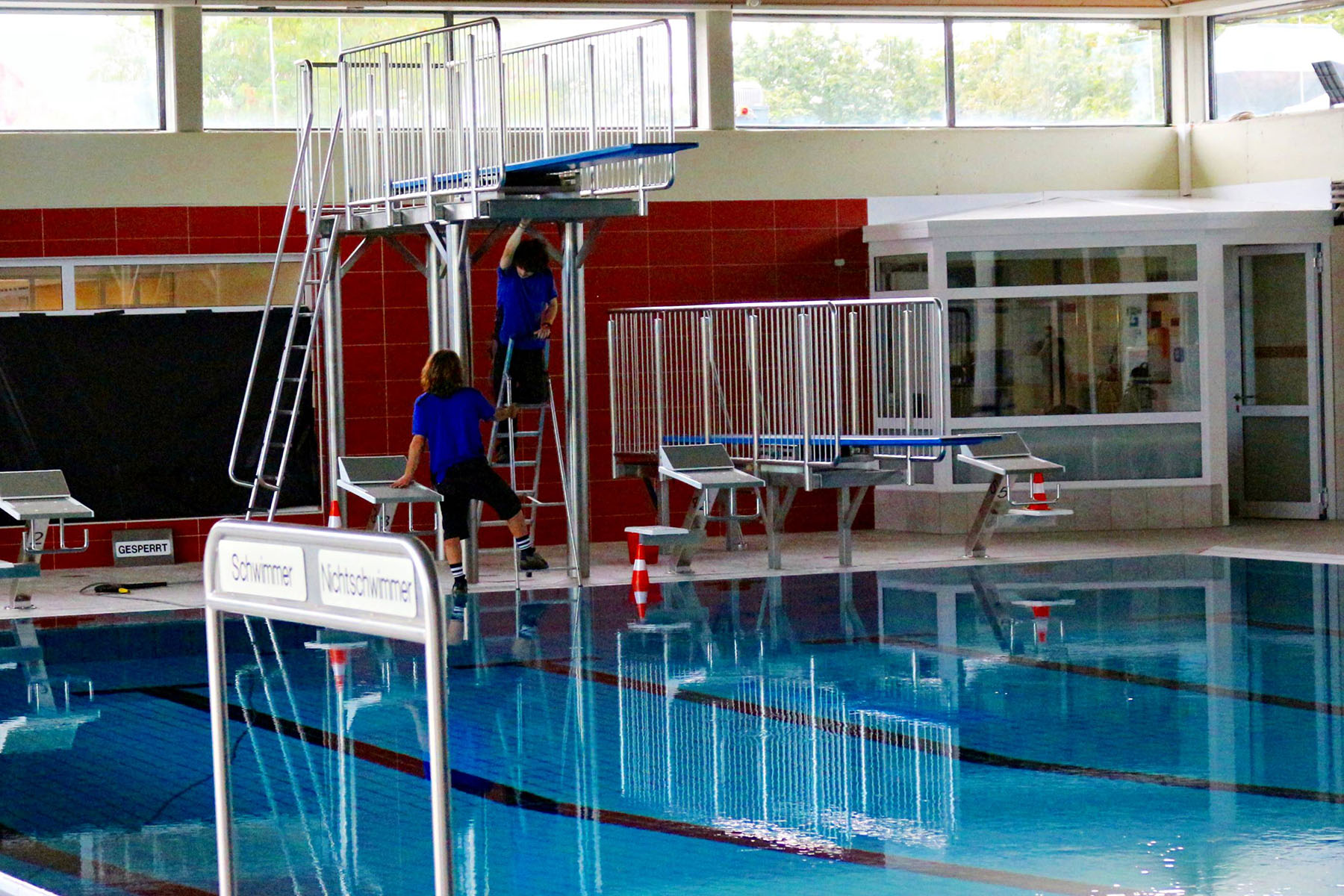 Die Installation der Rutsche hätte schon vor knapp einem Jahr erledigt sein sollen, aber erst ein "Endspurt" der niederländischen Fachfirma in den vergangenen zwei Monaten brachte den Einbau jetzt zum Abschluss. Der TÜV hat die Konstruktion bereits abgenickt, aber wegen einiger geringfügiger Vorbehalte ist die Inbetriebnahme noch nicht ganz freigegeben. "Wir erwarten jeden Tag den endgültigen Stempel und haben die Hoffnung, dass die Rutsche bereits am Wiedereröffnungstag genutzt werden kann. Die Chancen stehen fifty fifty", erklärten Jankowski-Zumbrink und Schwimmmeister Ralf Beer.