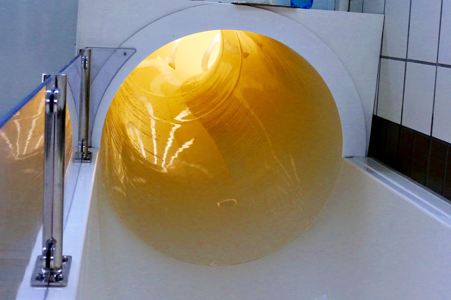 Darüber hinaus stehen noch die gelbe Außenummantelung der Rutsche sowie die Positionierung von Lichtelementen für die Röhre aus.