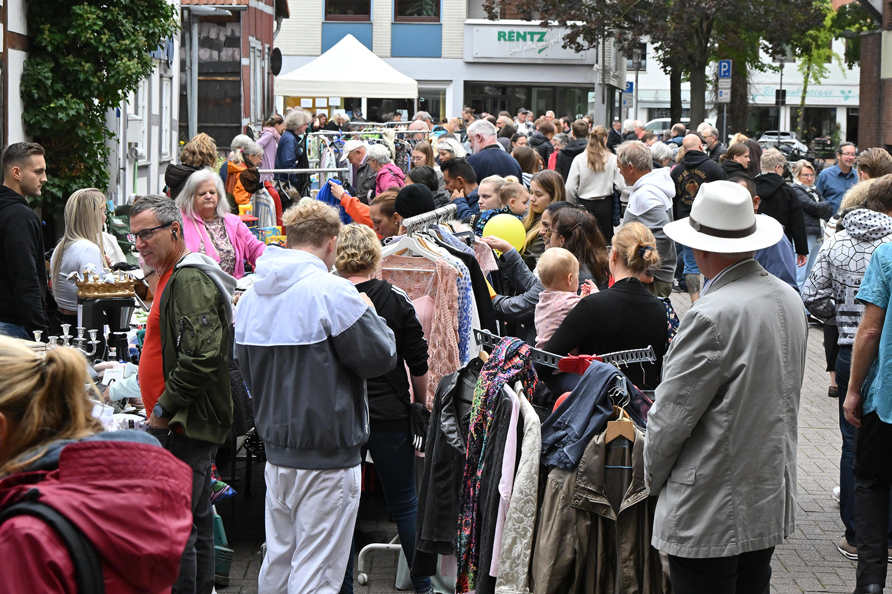Ein großer Magnet am heutigen Sonntag, 1. Oktober 2023, war natürlich der Flohmarkt in den Straßen der Burgdorfer Innenstadt. Zahlreiche Flohmarktfreunde fanden sich ein, um Schnäppchen zu machen und Dinge zu tauschen. Aber auch auf den Bühnen gab es wieder einiges zu erleben. Bei den Junggesellen standen ab 11 Uhr zum Frühschoppen der Fanfarenzug "Wikinger" Burgdorf auf der Bühne. Zu Ehren der Junggesellen, die in diesem Jahr den 375. Geburtstag feiern, spendierten die "Wikinger" ihren Auftritt und durften zudem erst nach drei Zugaben wieder gehen. Zwischendurch bekam Sascha Biewer, ehemaliger Schützenkönig der Junggesellen, anlässlich seines Geburtstages ein eigenes besonderes Ständchen.