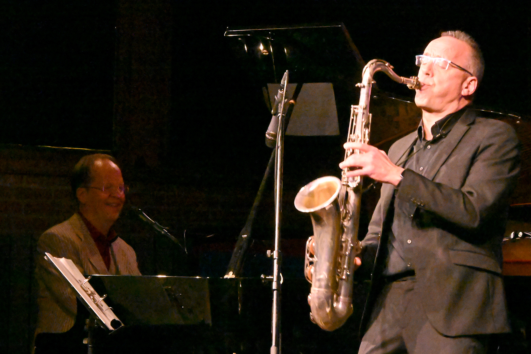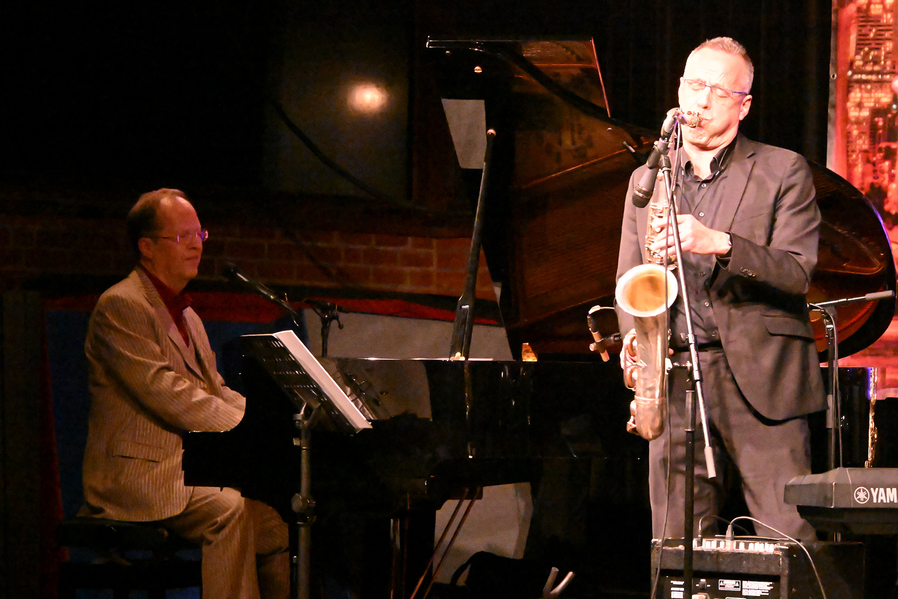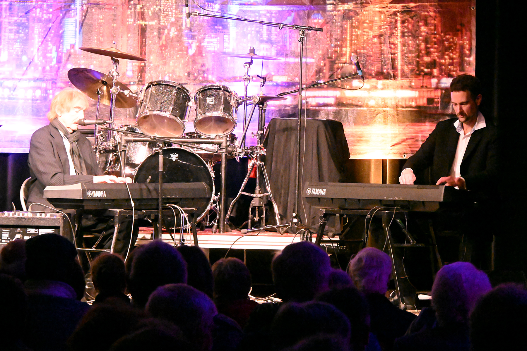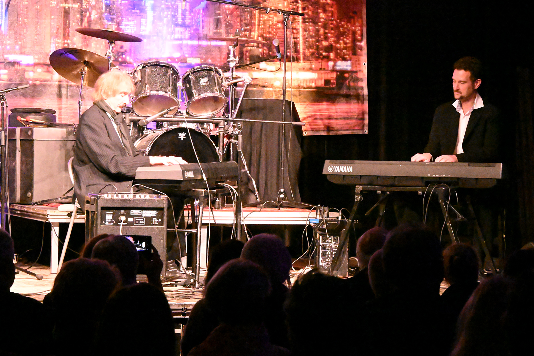 Das Augenmerk der Besucher richtete sich natürlich auf den Senior Joe, der agil performte – von Joe Sullivan´s -Little Rock" über "Pinetop’s Boogie Woogie", einem Gershwin Medley bis zum Standard "I Found A New Baby" – stets begleitet von Kilian an zwei Pianos.
