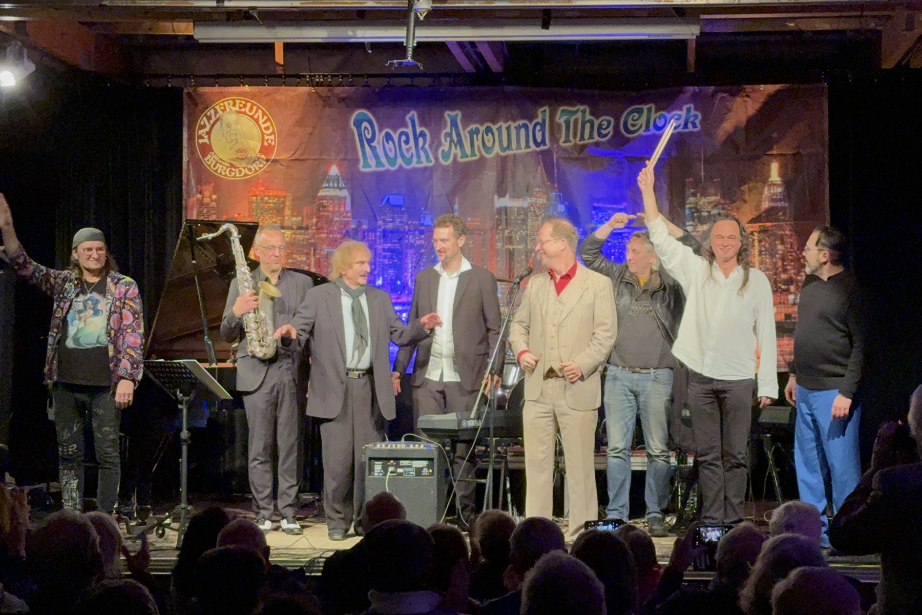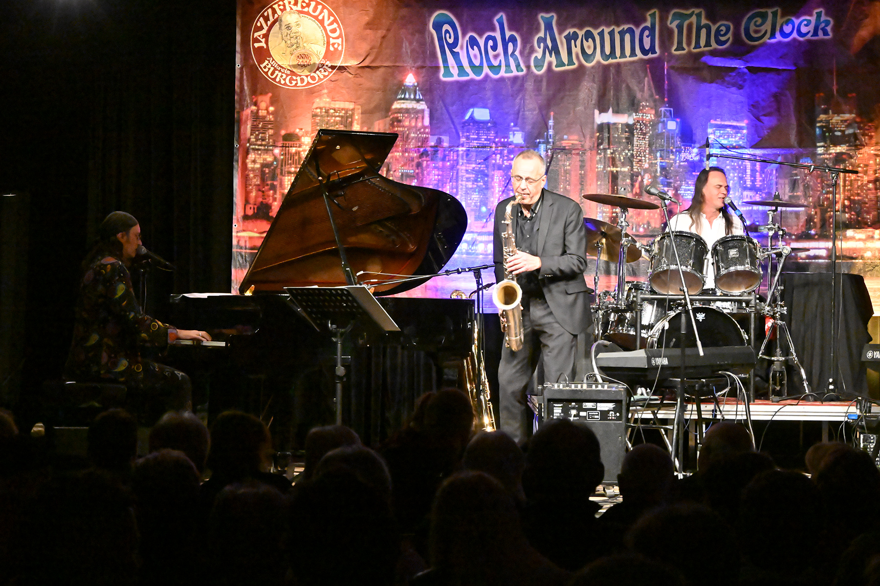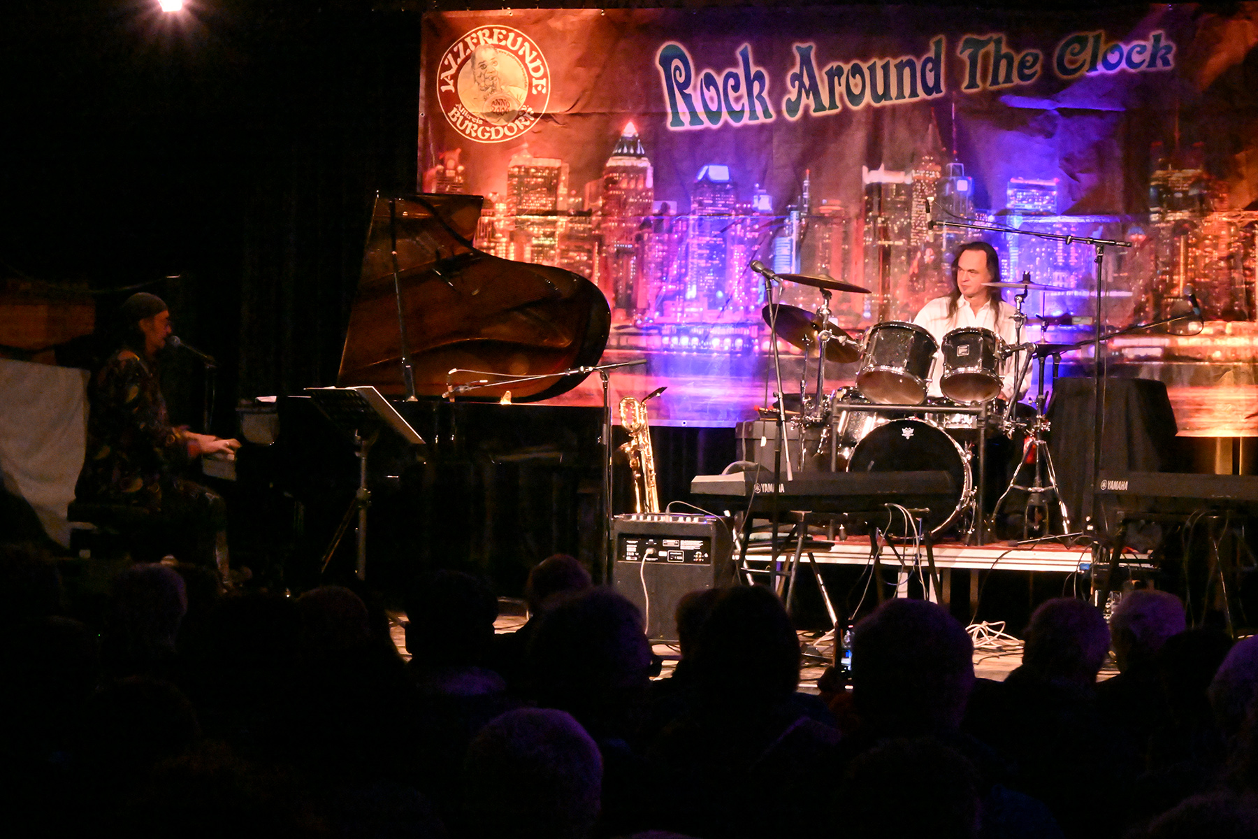 Organisator K.C. Miller (p, voc) & Thorsten "Tosh" Doll (s), Joe Pentzlin (87, p) & Gregor Kilian (p), Ecki Hüdepohl (p, voc) & Alex Holtzmeyer (d) von "It’s M.E." sowie Thomas Strauss als Techniker und Pianist lieferten eine musikalisch perfekte Bühnenshow.