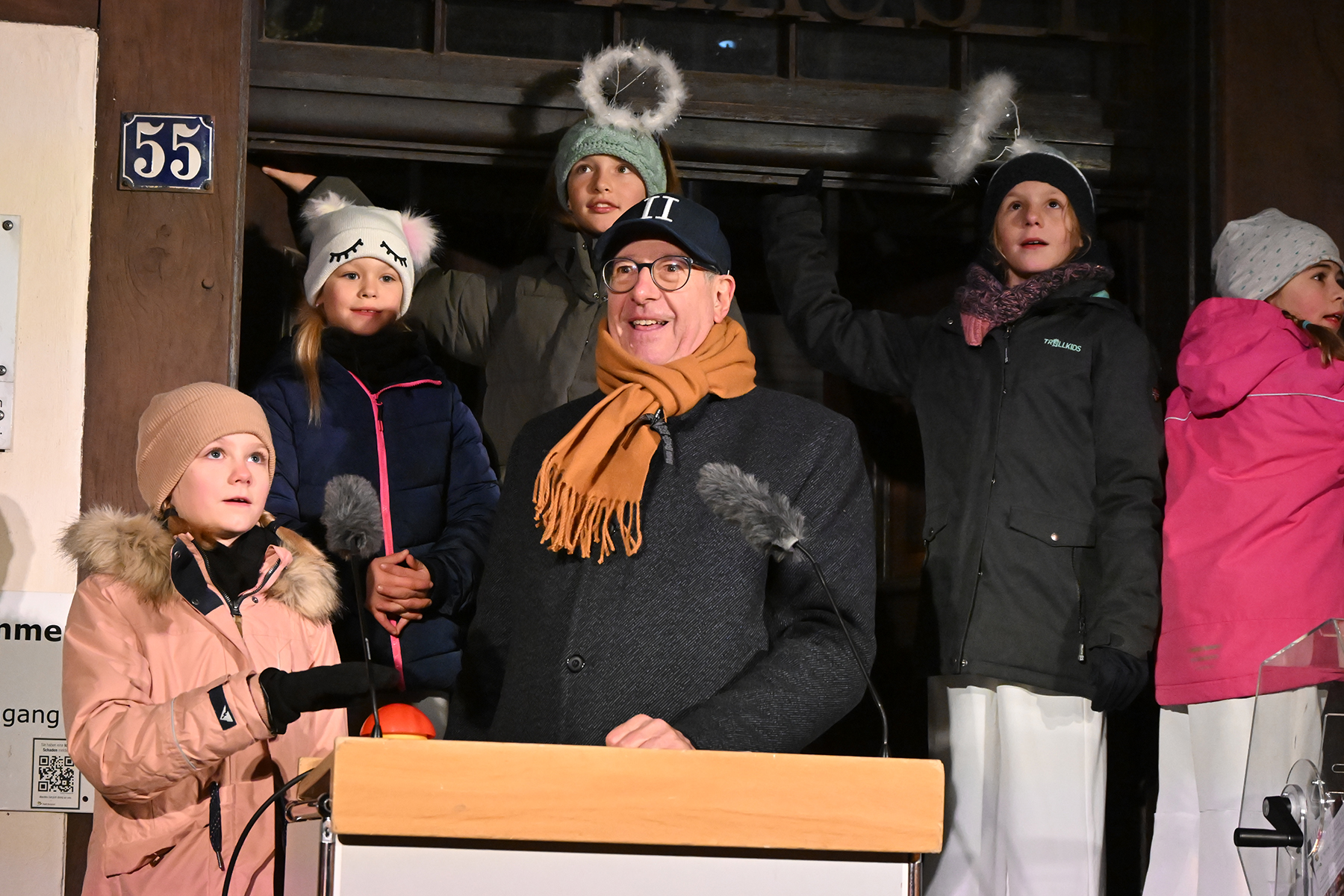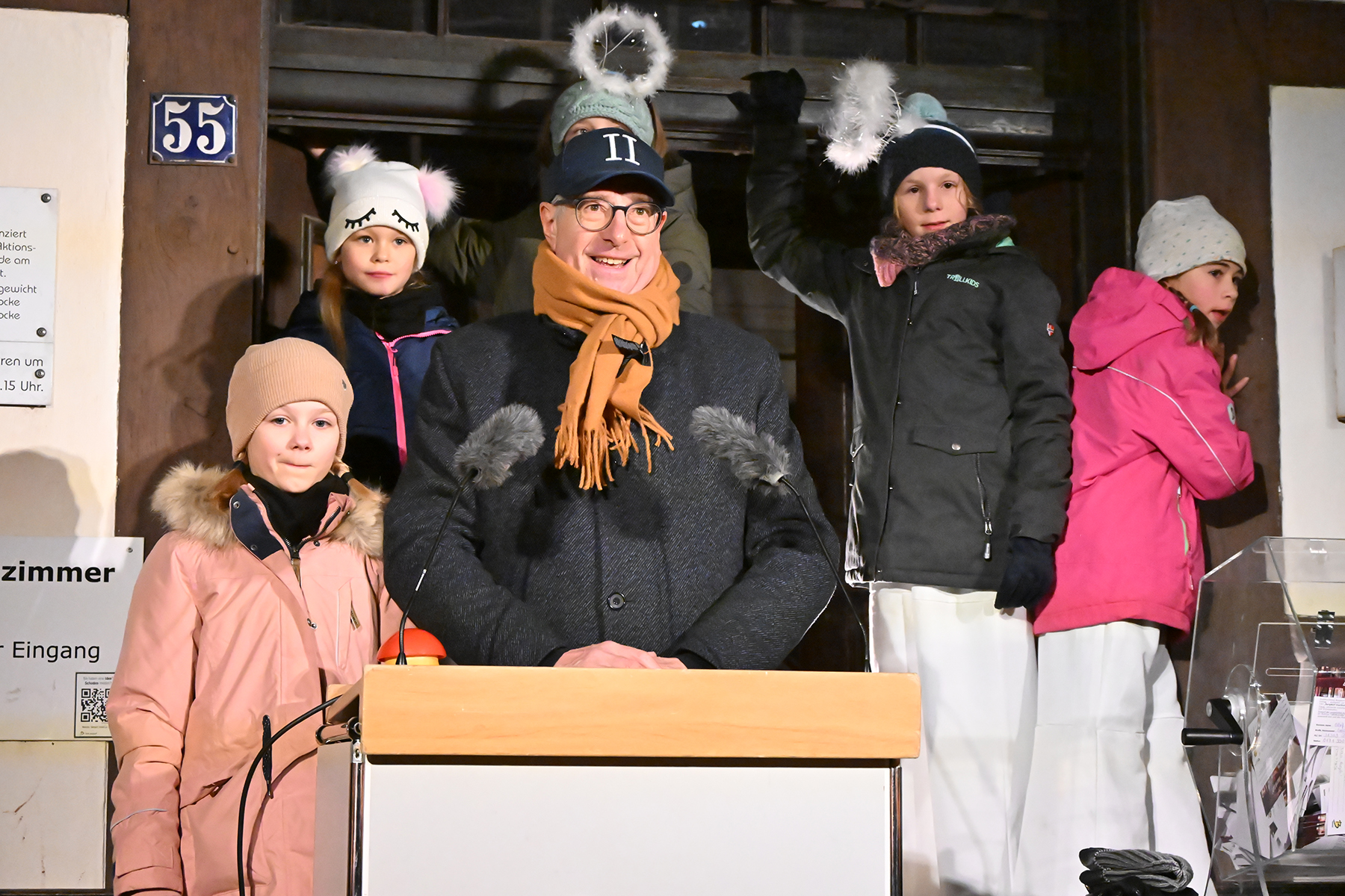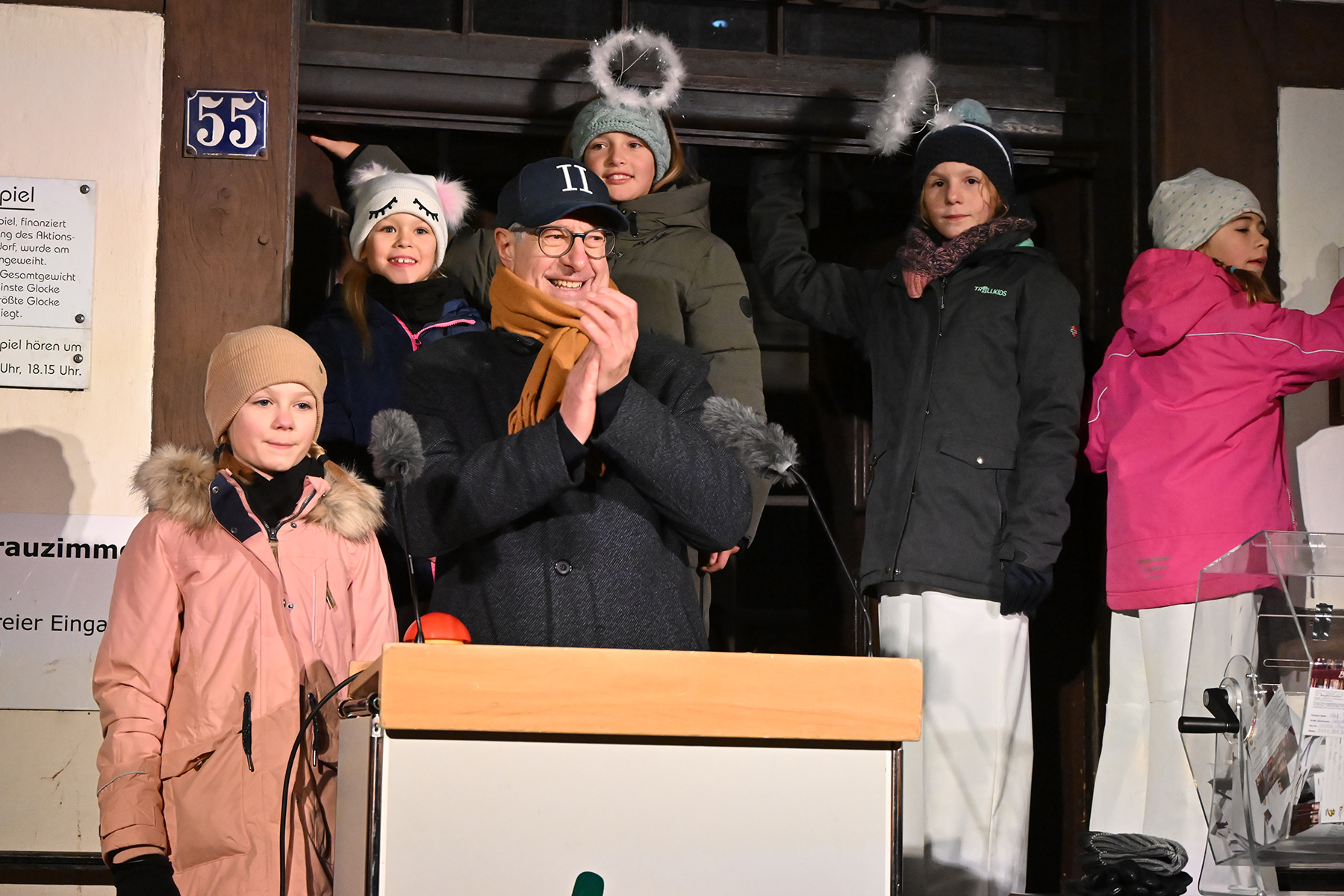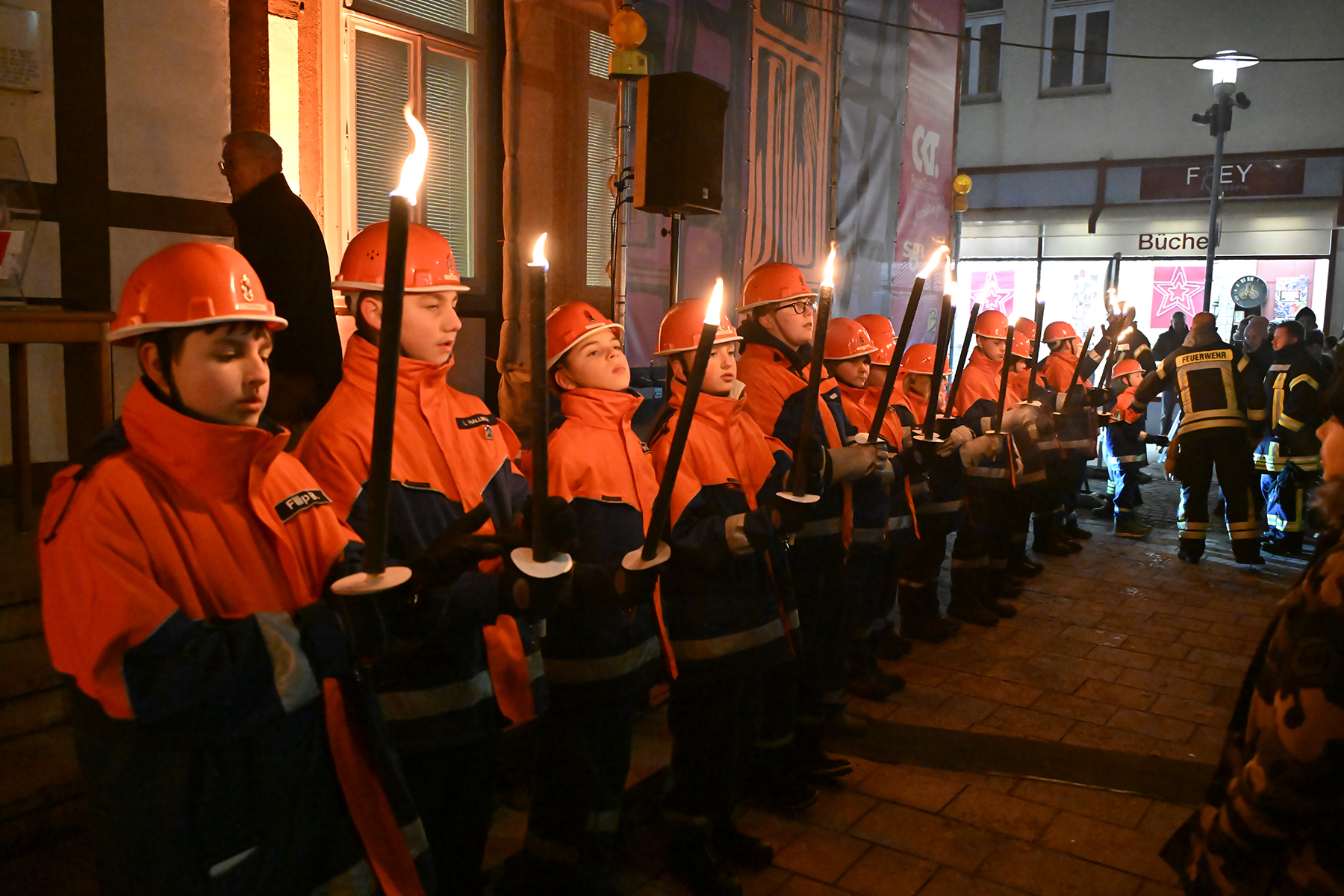 Zuvor hatte die neunjährige Elina den roten Buzzer gedrückt und damit die Weihnachtsbeleuchtung in Burgdorf eingeschaltet. Lautstark wurde von Zehn der Countdown von den Anwesenden heruntergezählt und bei Null mit Freude die eingeschaltete Weihnachtsbeleuchtung betrachtet. 230.000 Lichter leuchten nun in der Innenstadt, wie der Bürgermeister verriet. Er dankte den Organisatoren und Sponsoren. "Wir würden das nicht hinbekommen ohne die Sponsoren", so der Bürgermeister. Rund 70 Unternehmen und Vereine unterstützen die Weihnachtsbeleuchtung. Auch in diesem Jahr waren Mitglieder der Jugendfeuerwehren der Stadt Burgdorf mit Fackeln vor Ort und illuminierten die Szenerie vor dem Rathaus I.