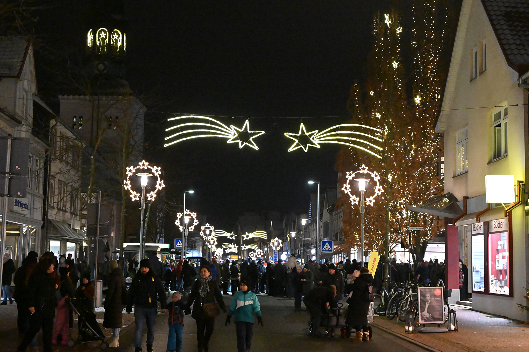 Nun hat auch in Burgdorf die Weihnachtszeit begonnen: Am heutigen Freitag, 1. Dezember 2023, wurde die Weihnachtsbeleuchtung in der Burgdorfer Innenstadt offiziell eingeschaltet. Zum 18. Mal finden die Burgdorfer Lichtwochen statt. Auf dem Spittaplatz laden derweil der Weihnachtsmarkt des Fördervereins der St.-Pankratius-Kirche und der dekorierte Tannenwald vom Verweilen ein..