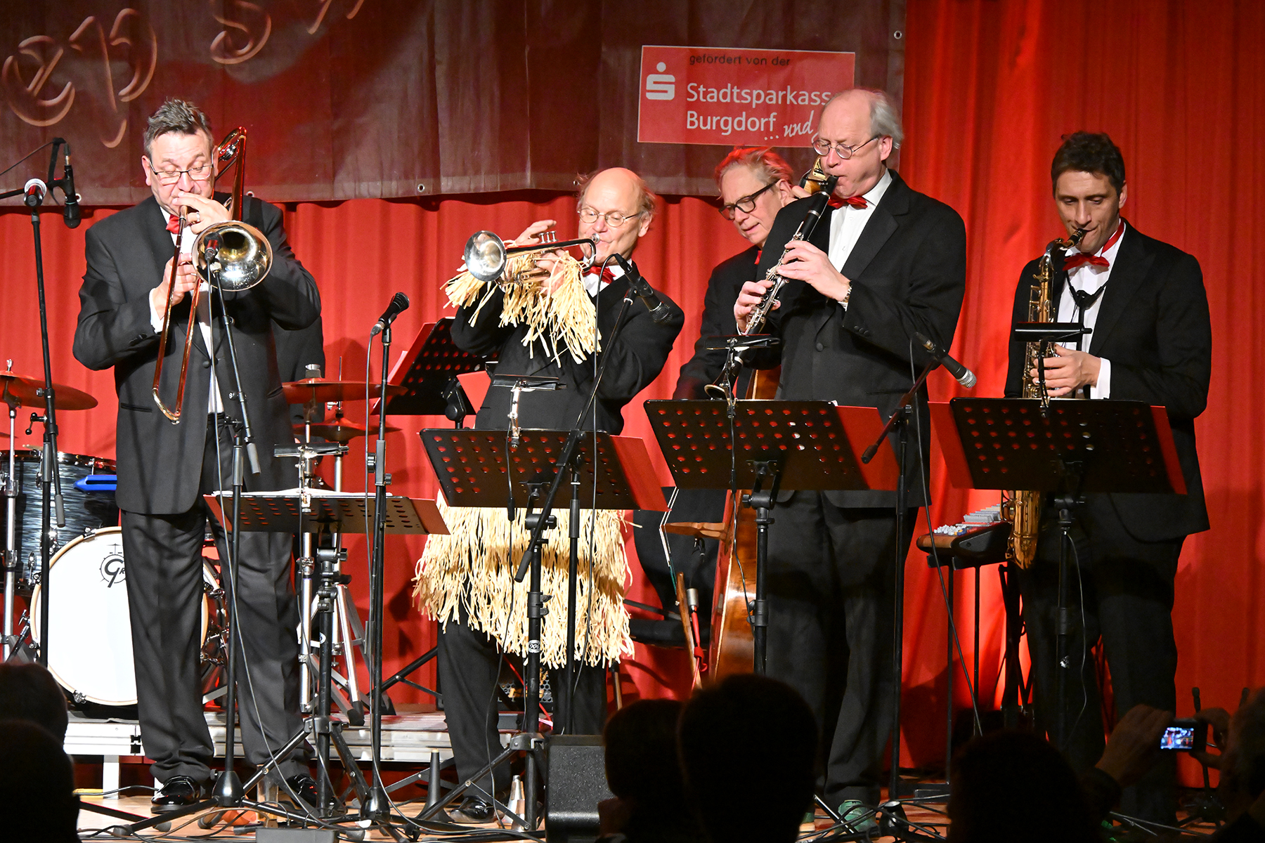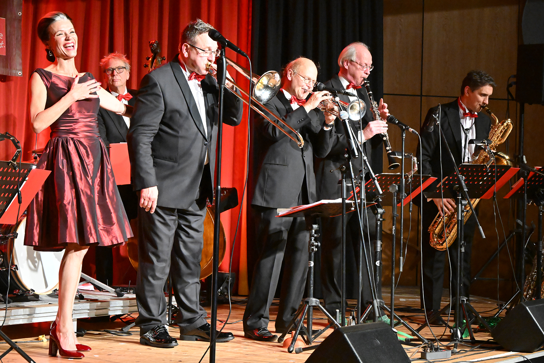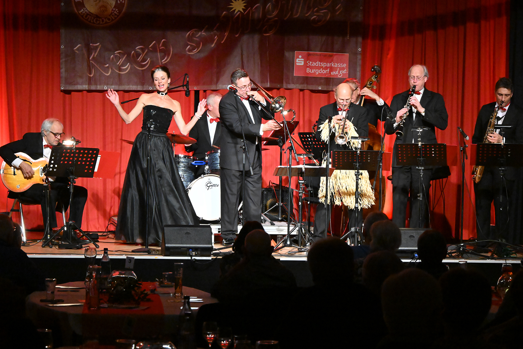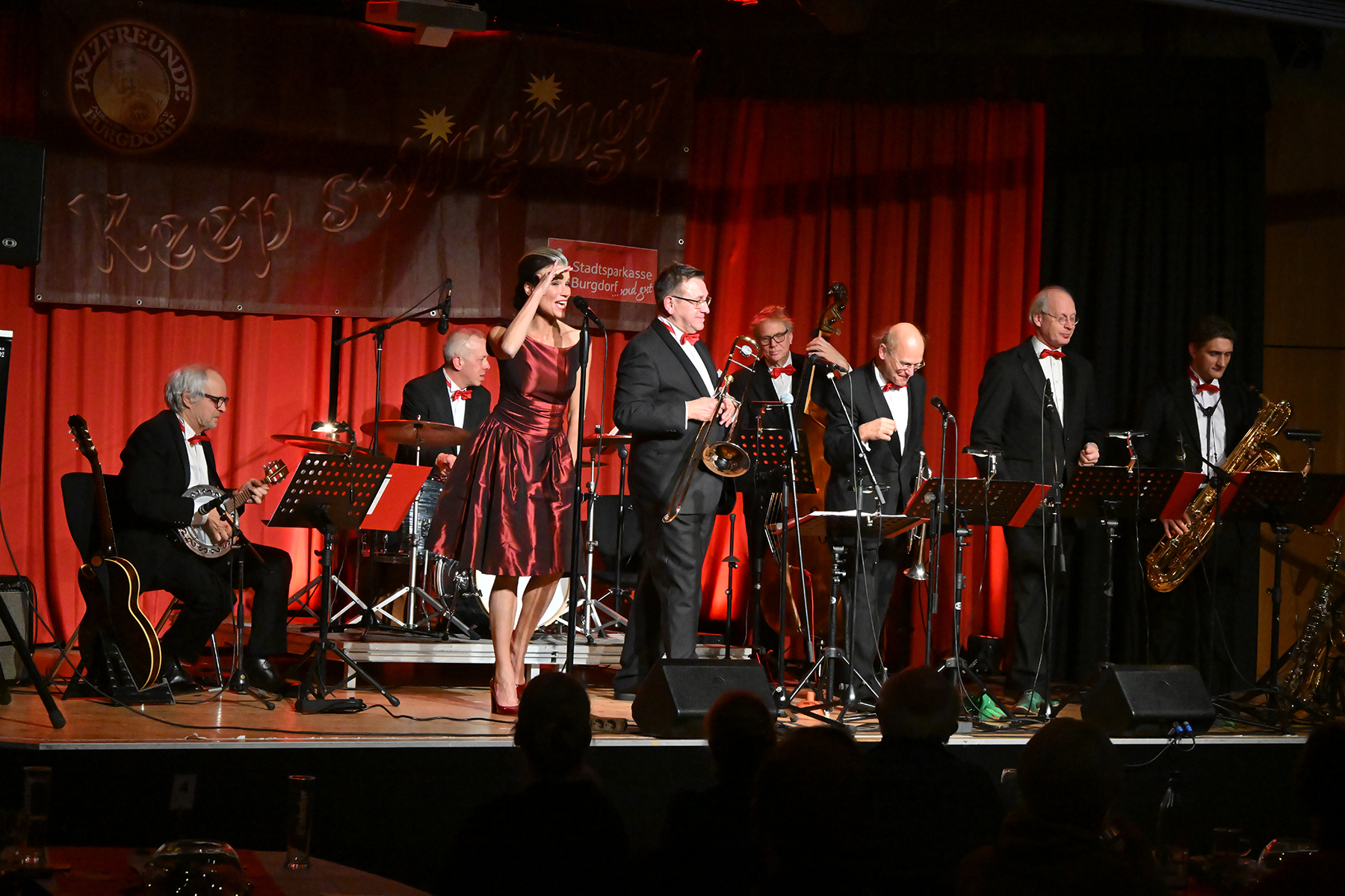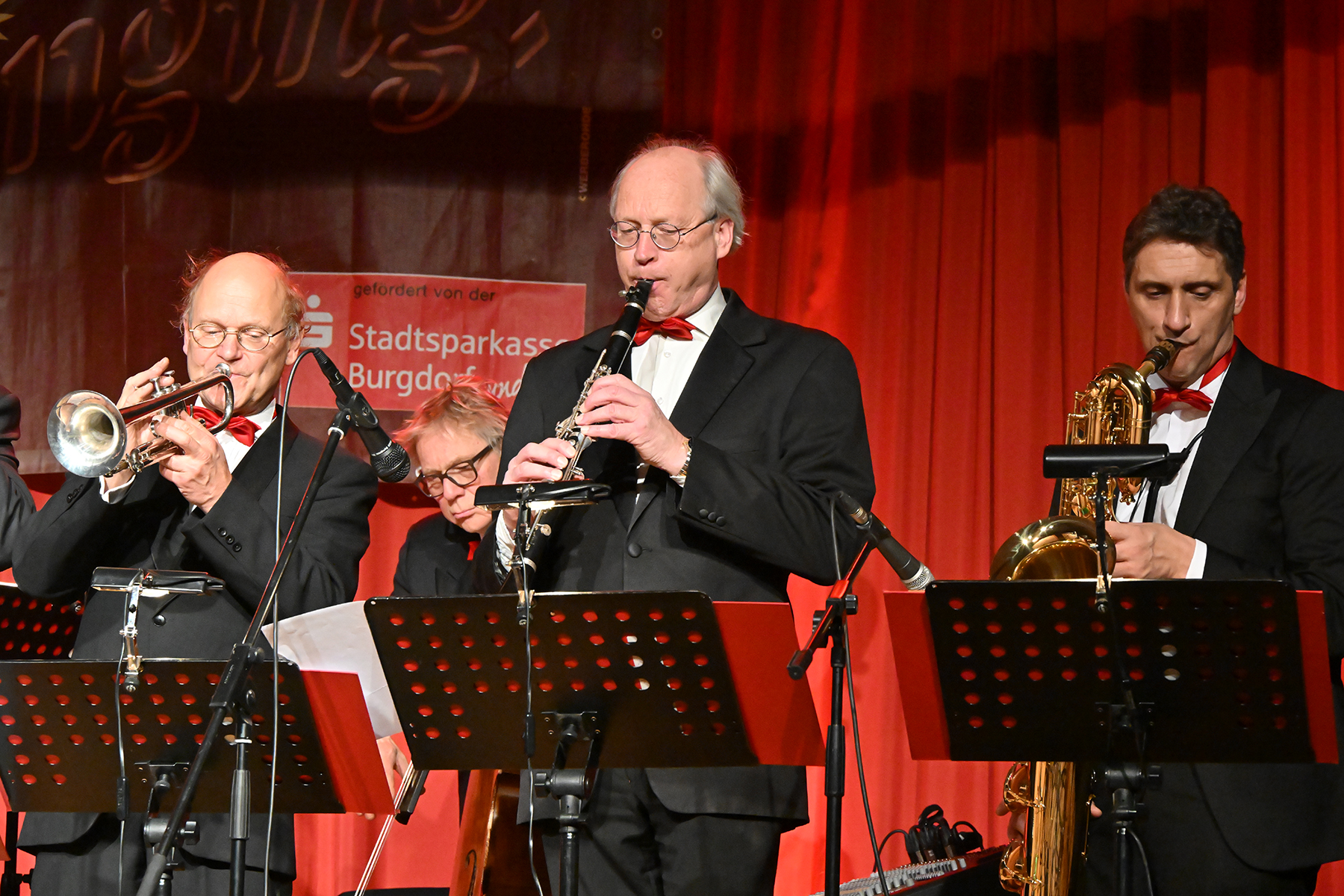 Unter dem Motto "Wonderful Christmas Time" hatten die Jazzfreunde Burgdorf am gestrigen Sonnabend, 9. Dezember 2023, zu einem glanzvollen Konzert im ausverkauften Saal des Stadthauses Burgdorf eingeladen. Joe Wulf & The Gentlemen of Swing präsentierten in unnachahmlicher Art und Weise ihre mitreißende Musik, so dass die Tanzfläche immer gefüllt war. Die Swingtänzer hatten wieder keine Entfernung gescheut, um in Burgdorf zu "performen". Selbst die Band war begeistert.