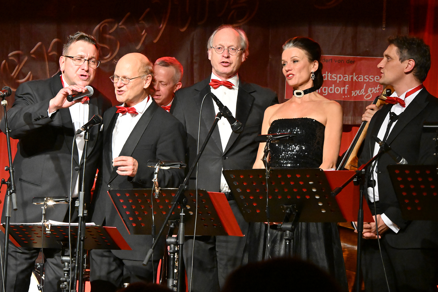 Joe Wulf & The Gentlemen of Swing traten mit Sängerin Angela van Rijthoven im StadtHaus auf. / Foto: Bastian Kroll